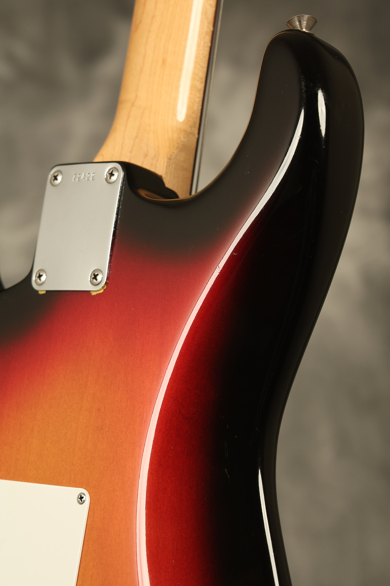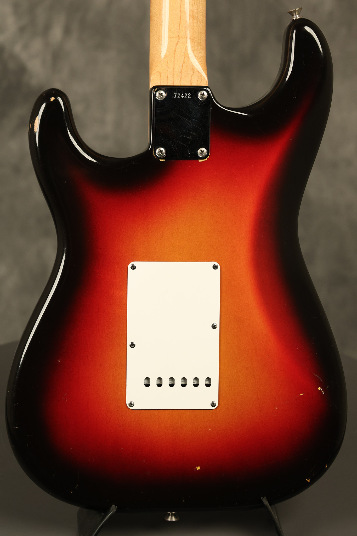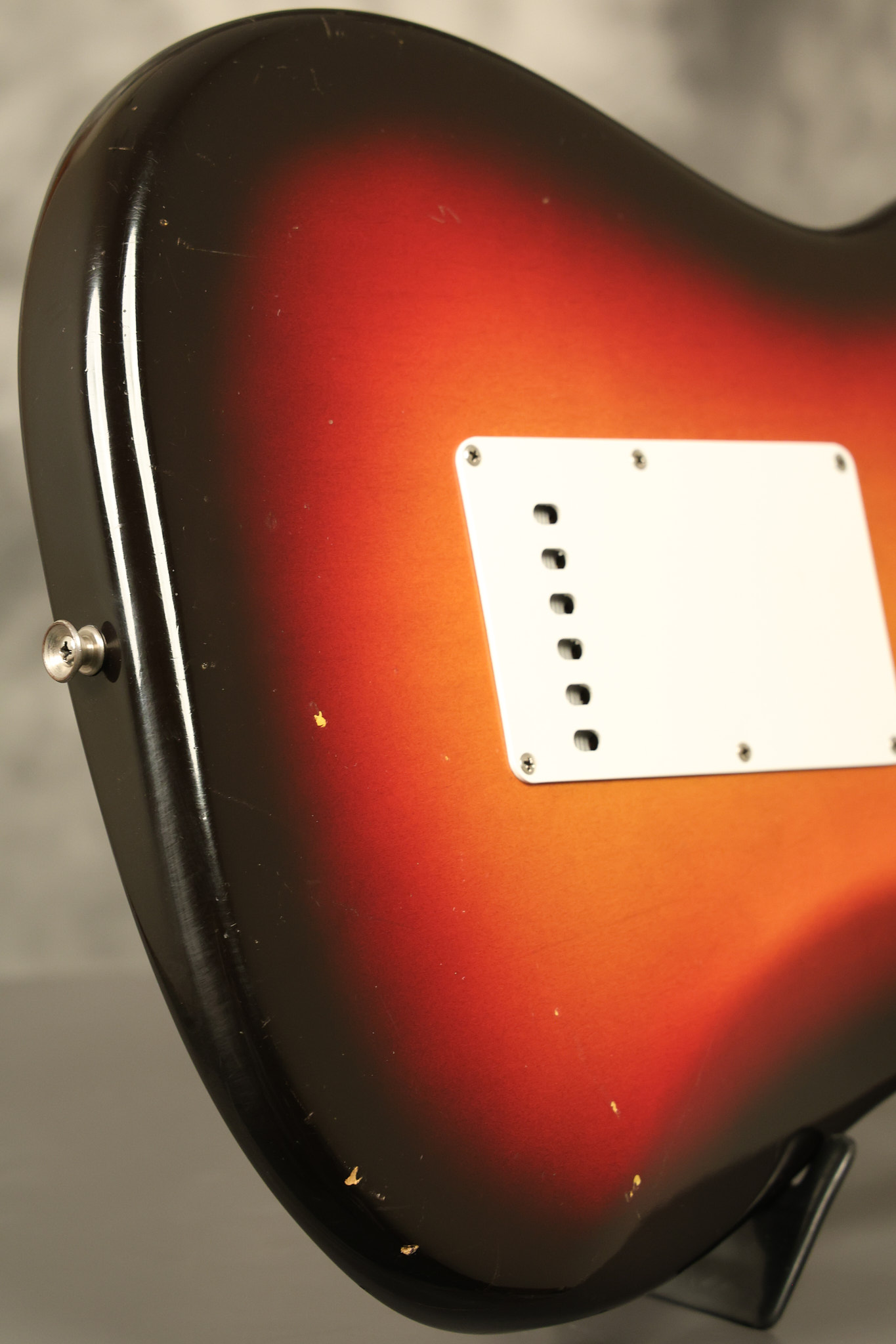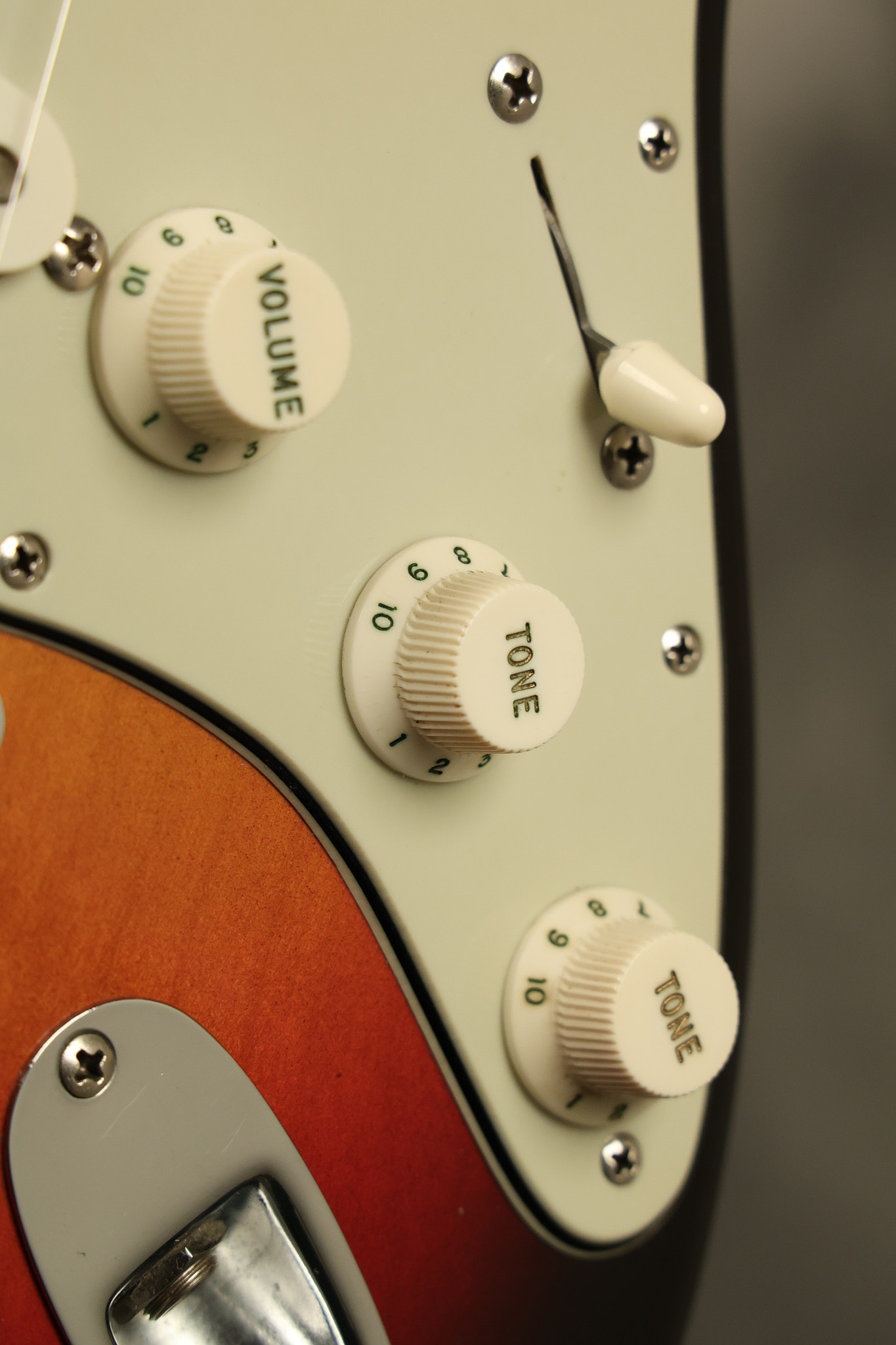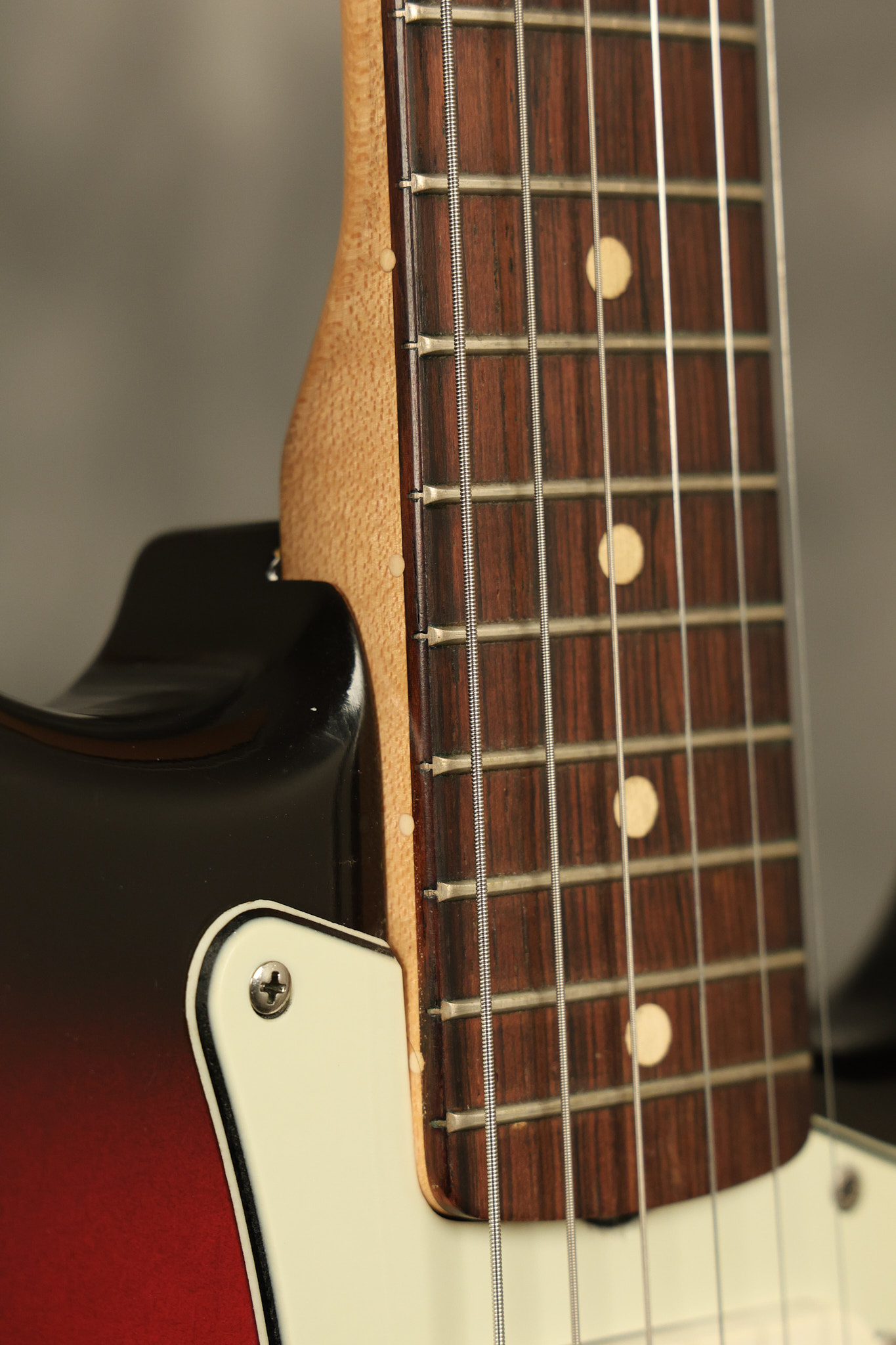 1961 Fender Stratocaster in its original Sunburst finish which has really maintained its original brilliance in color. It has a great playing neck with great frets. It's all original and 100% complete along with its original tremolo arm, original hardshell case and original HANG TAG with the matching serial number and original allen wrench still taped to the inside. It's in EXCELLENT condition with nicks + dings and other cosmetic wear. Everything remains structurally sound with no cracks, breaks or repairs. All electronics work and sound great while all solder joints remain original and untampered with. The weight is 7 lbs. 12.8 oz.