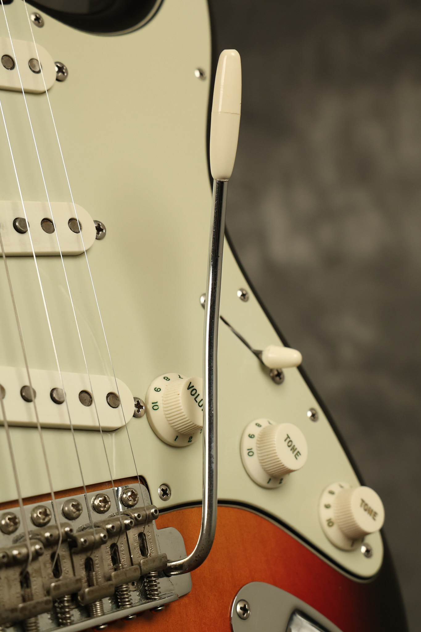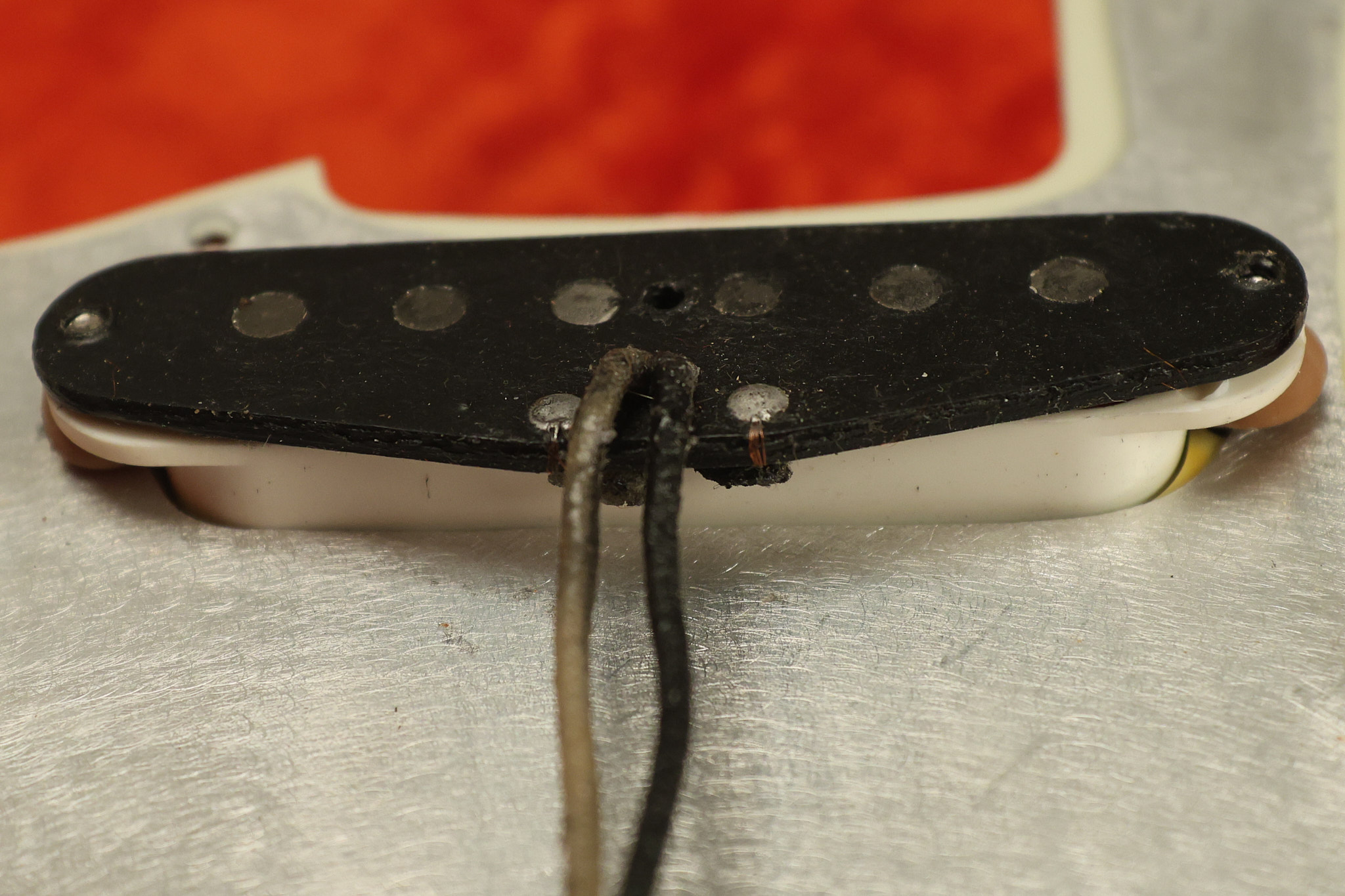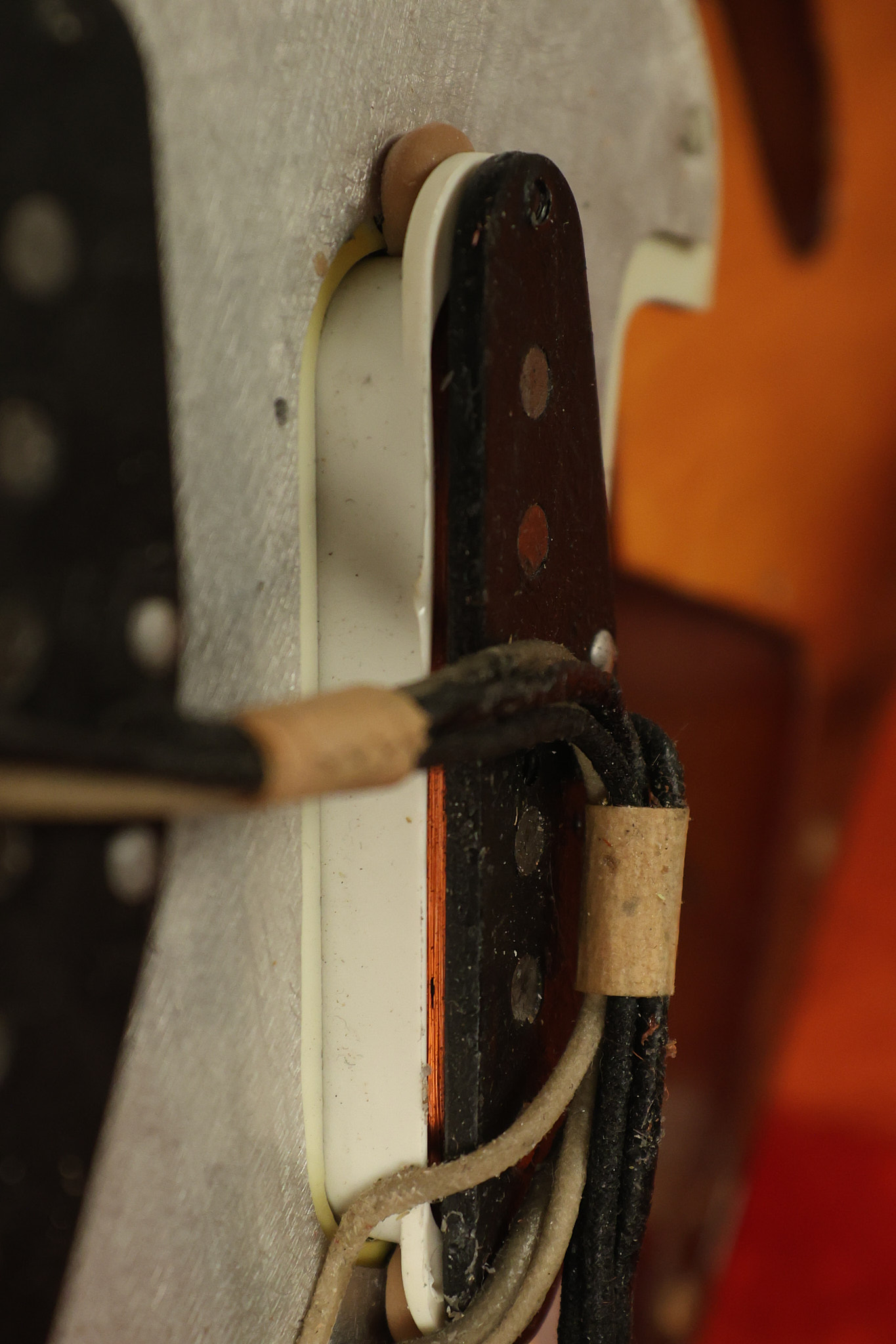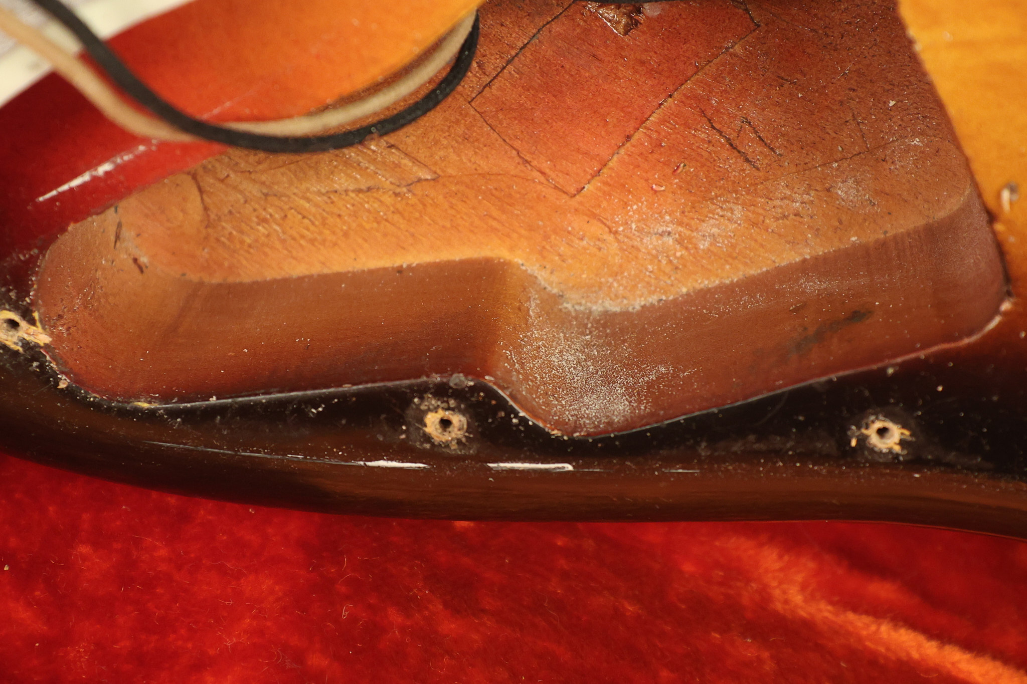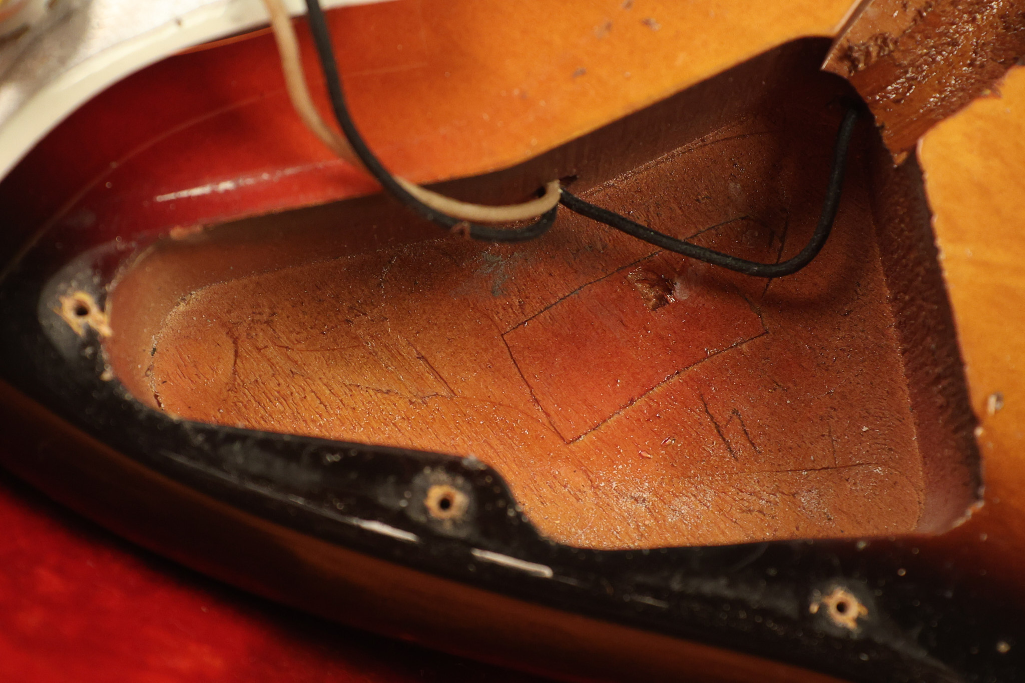 1961 Fender Stratocaster in its original Sunburst finish which has really maintained its original brilliance in color. It has a great playing neck with great frets. It's all original and 100% complete along with its original tremolo arm, original hardshell case and original HANG TAG with the matching serial number and original allen wrench still taped to the inside. It's in EXCELLENT condition with nicks + dings and other cosmetic wear. Everything remains structurally sound with no cracks, breaks or repairs. All electronics work and sound great while all solder joints remain original and untampered with. The weight is 7 lbs. 12.8 oz.