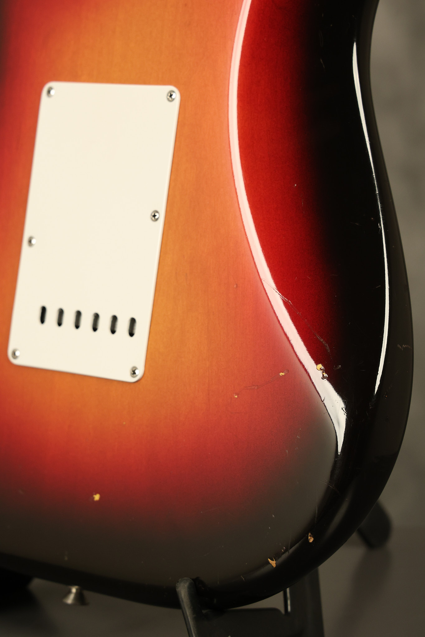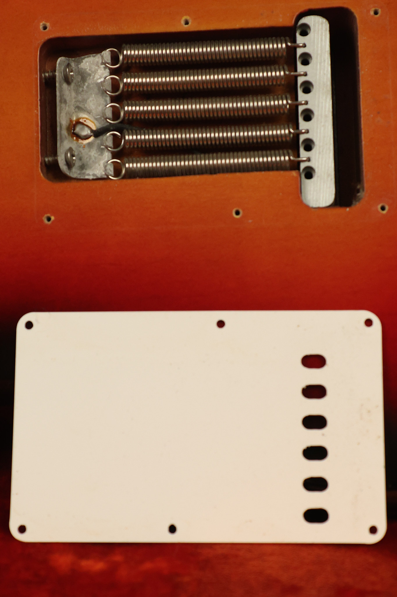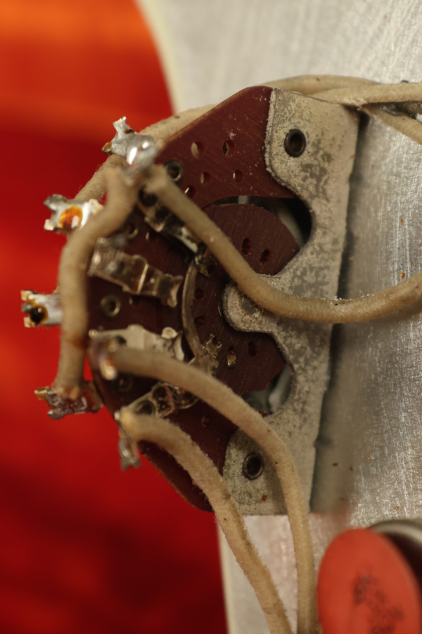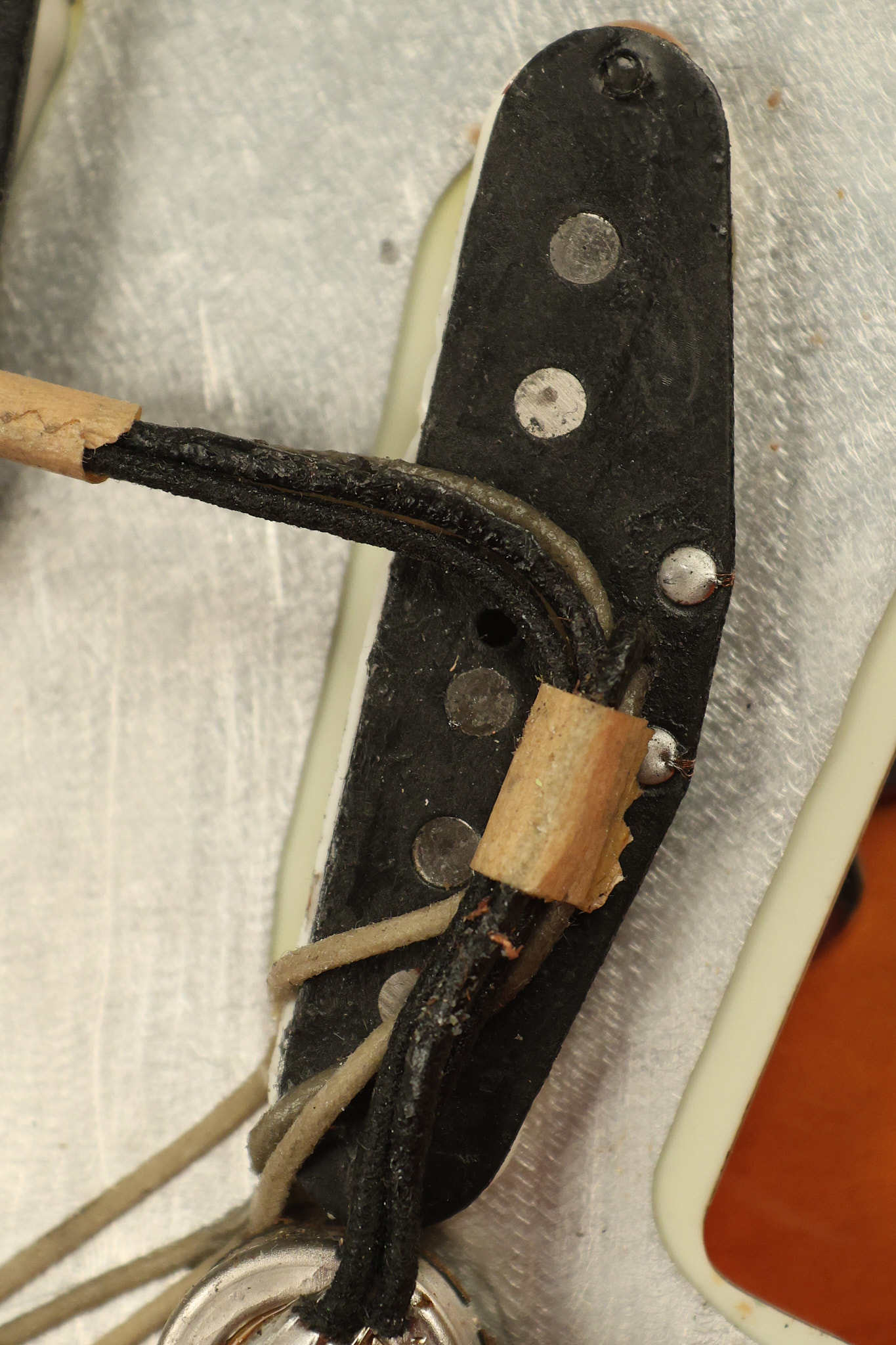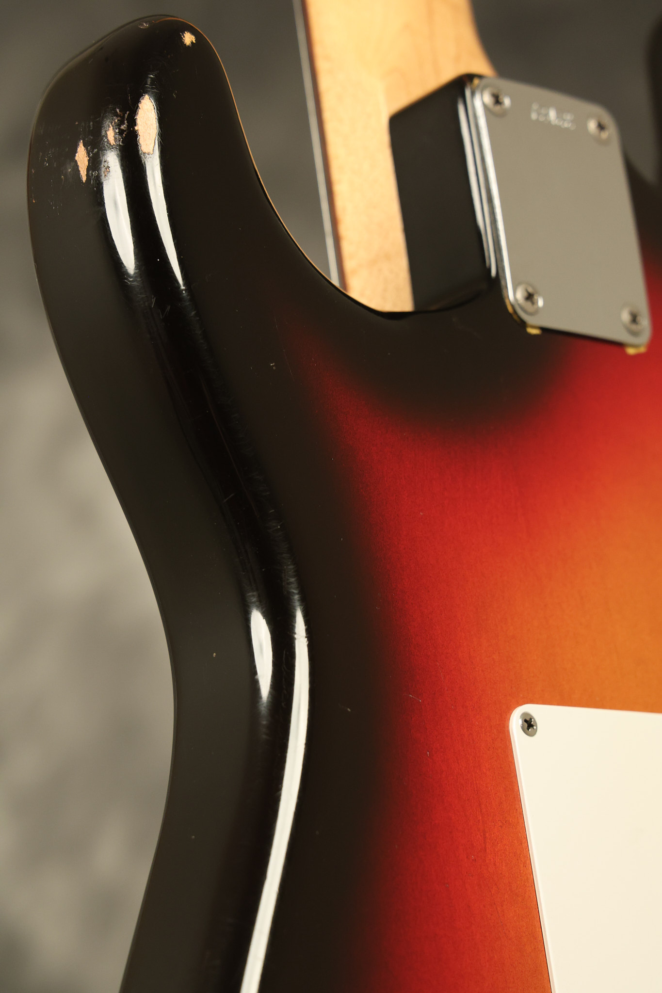 1961 Fender Stratocaster in its original Sunburst finish which has really maintained its original brilliance in color. It has a great playing neck with great frets. It's all original and 100% complete along with its original tremolo arm, original hardshell case and original HANG TAG with the matching serial number and original allen wrench still taped to the inside. It's in EXCELLENT condition with nicks + dings and other cosmetic wear. Everything remains structurally sound with no cracks, breaks or repairs. All electronics work and sound great while all solder joints remain original and untampered with. The weight is 7 lbs. 12.8 oz.