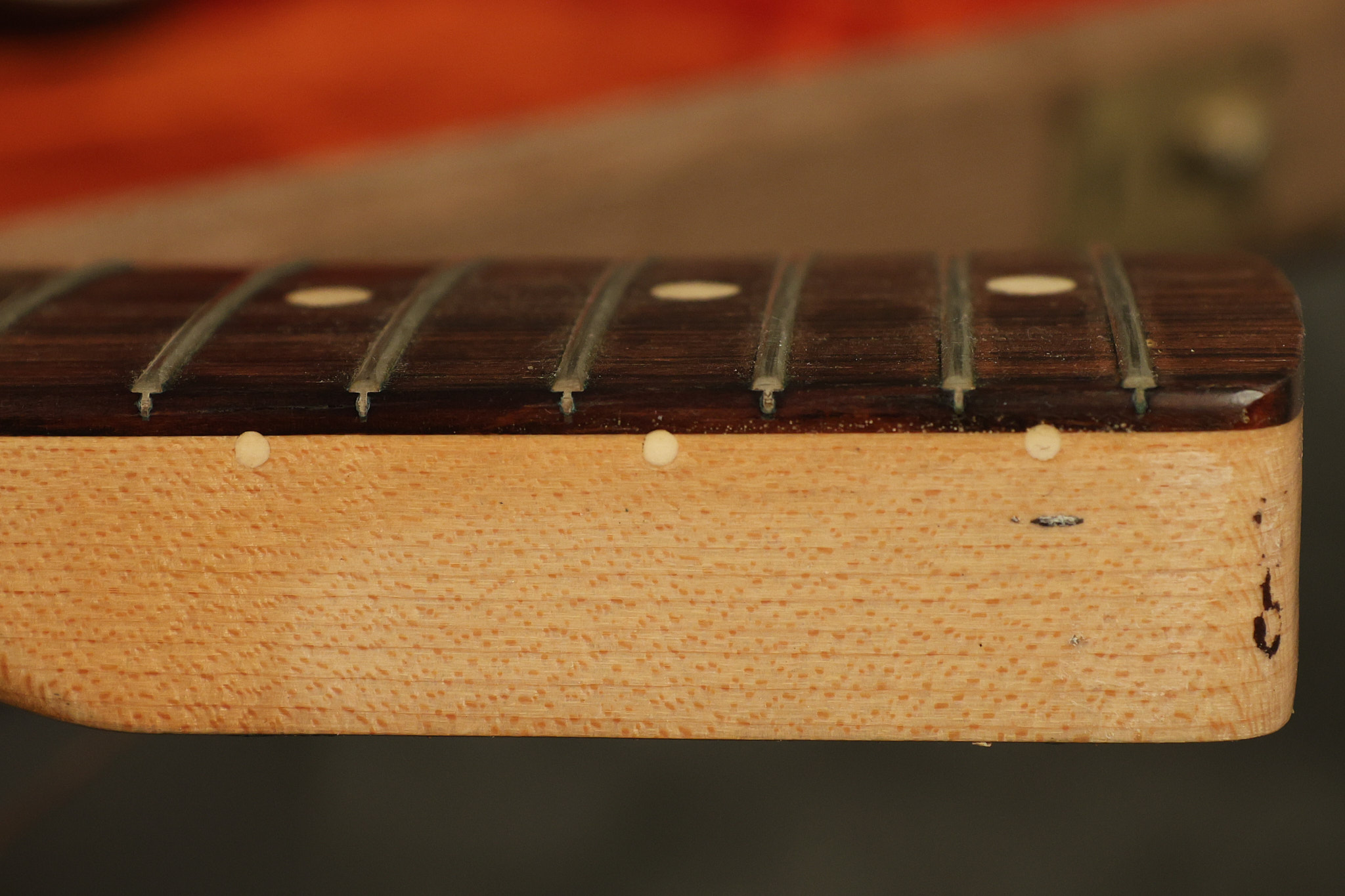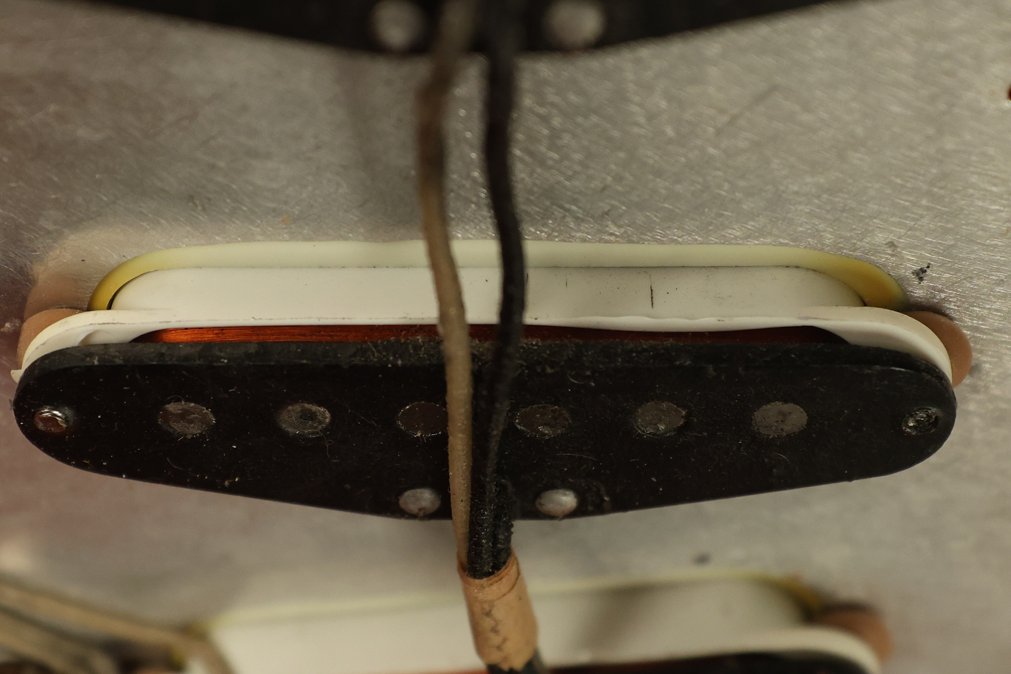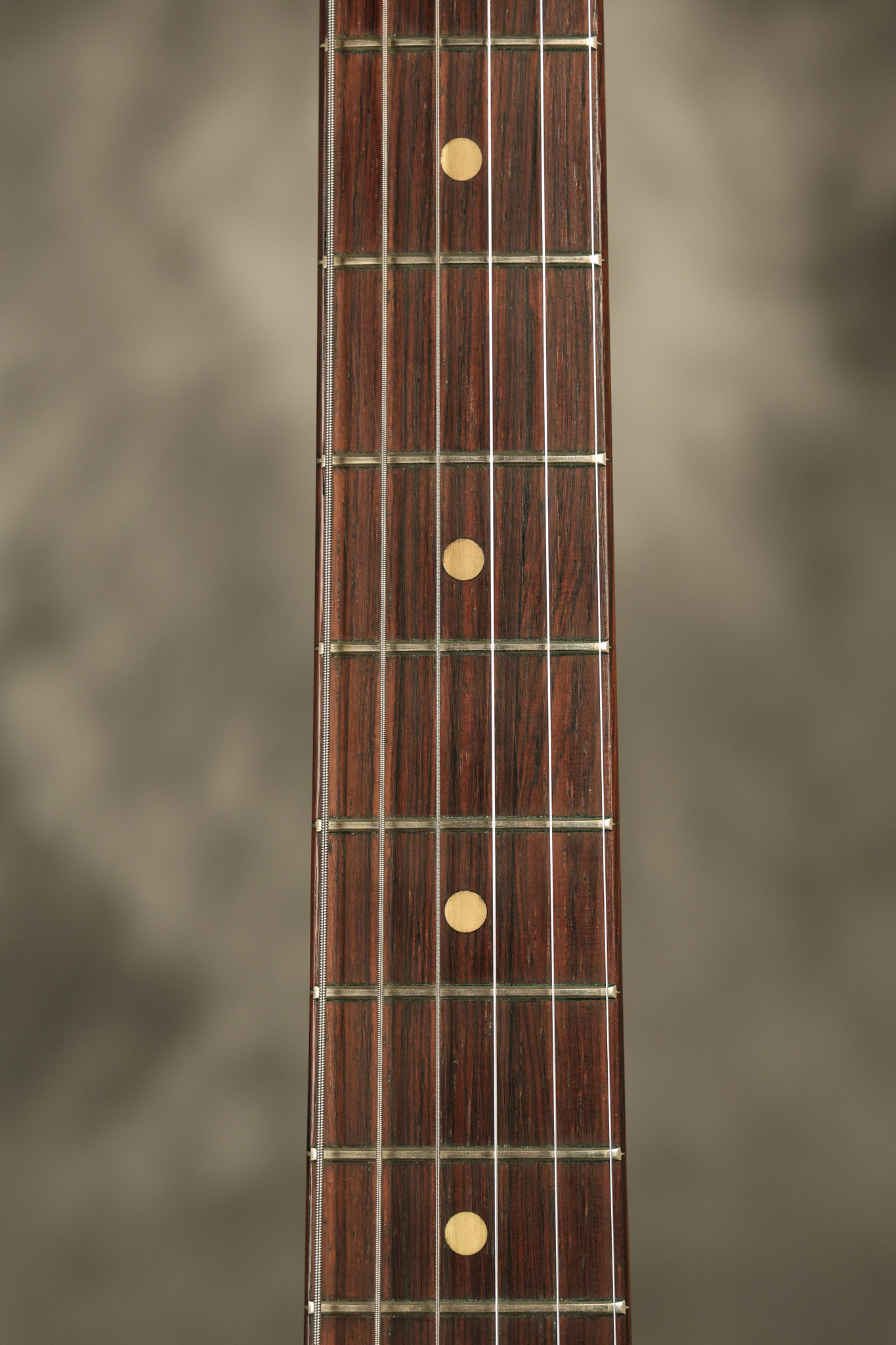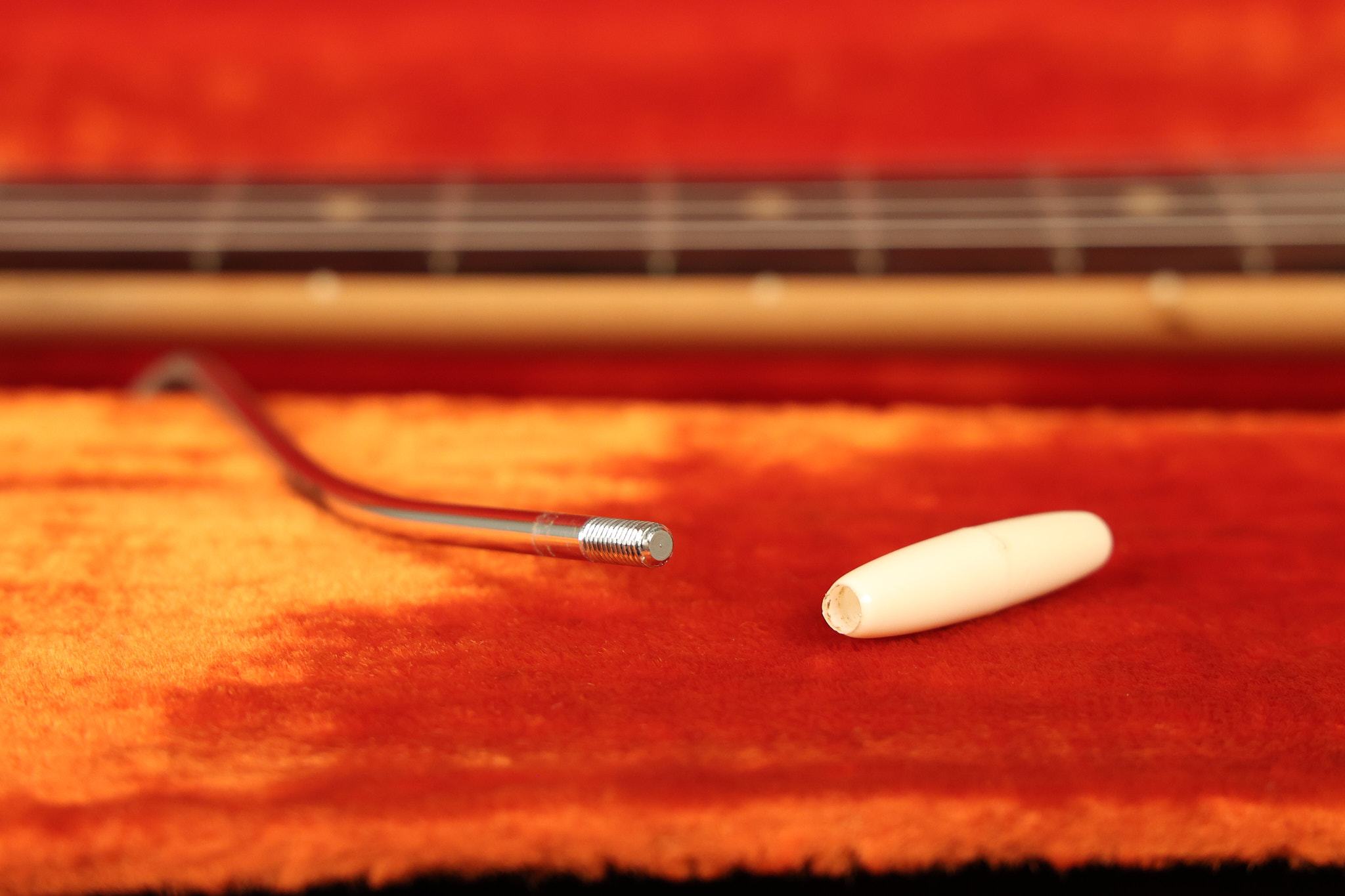 1961 Fender Stratocaster in its original Sunburst finish which has really maintained its original brilliance in color. It has a great playing neck with great frets. It's all original and 100% complete along with its original tremolo arm, original hardshell case and original HANG TAG with the matching serial number and original allen wrench still taped to the inside. It's in EXCELLENT condition with nicks + dings and other cosmetic wear. Everything remains structurally sound with no cracks, breaks or repairs. All electronics work and sound great while all solder joints remain original and untampered with. The weight is 7 lbs. 12.8 oz.