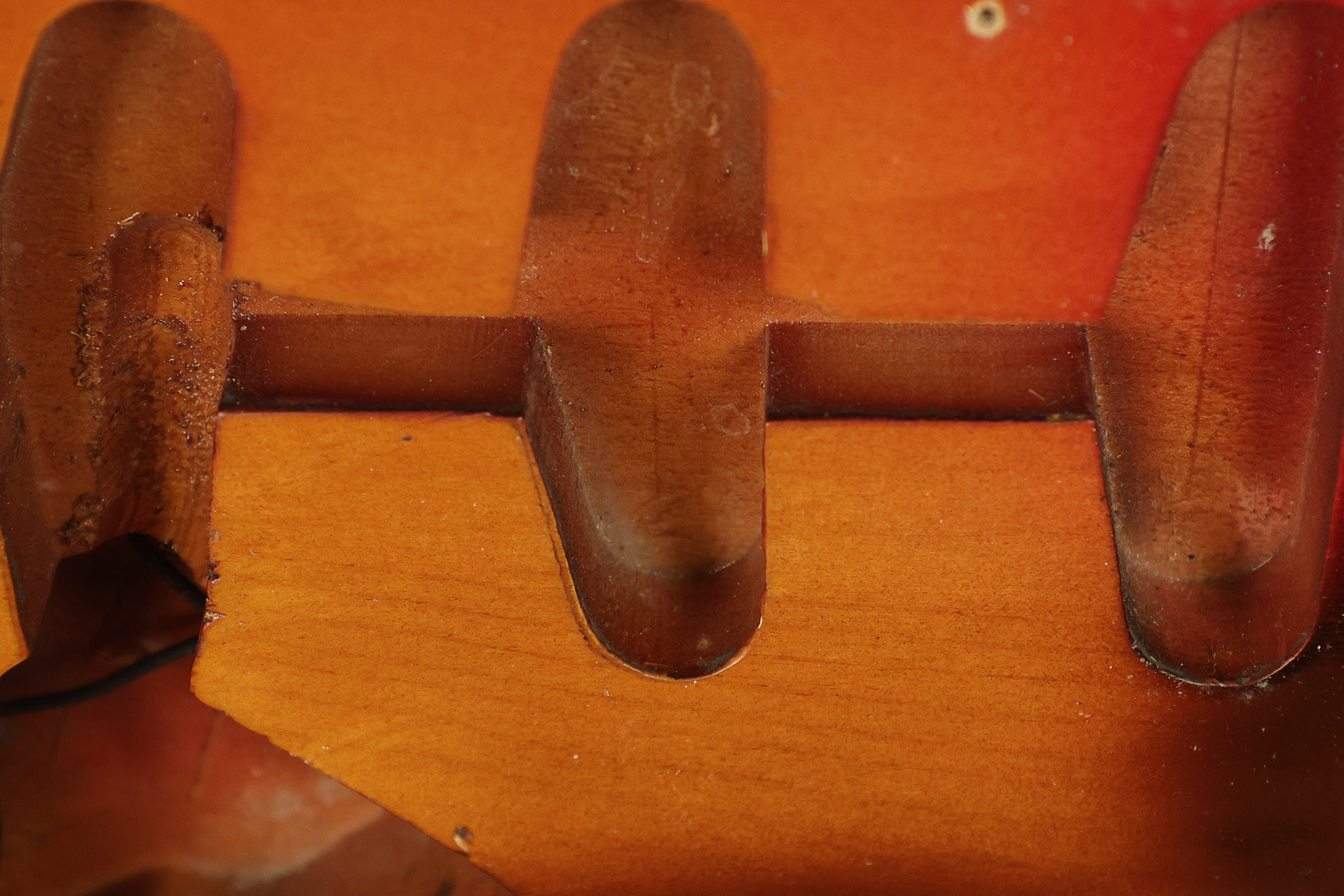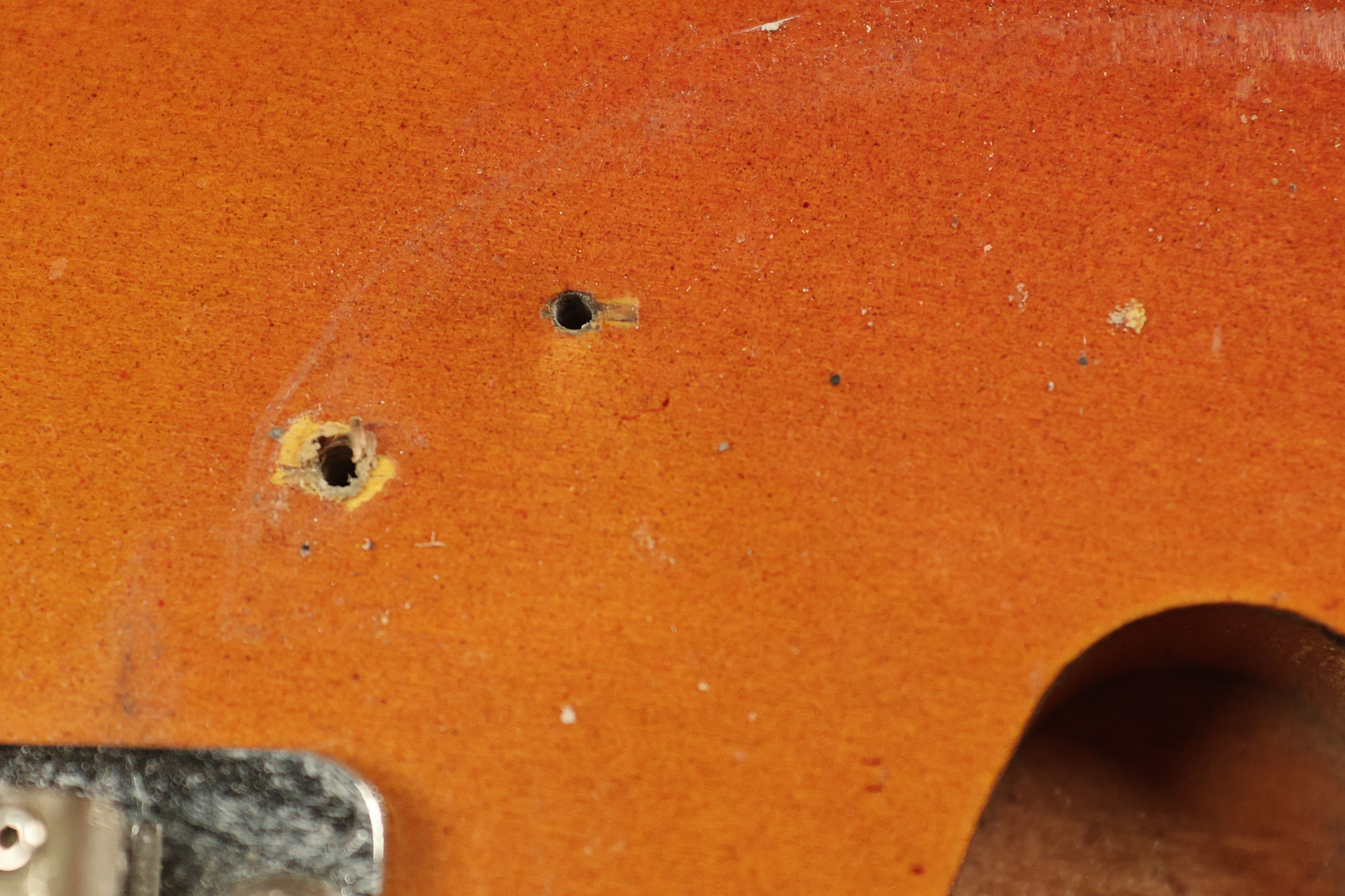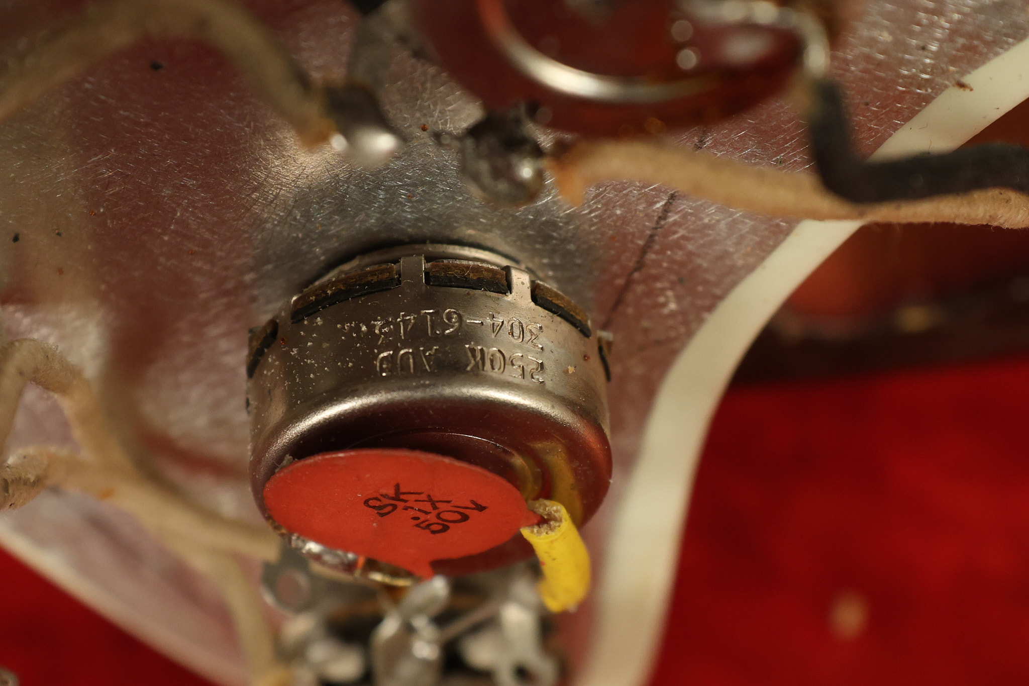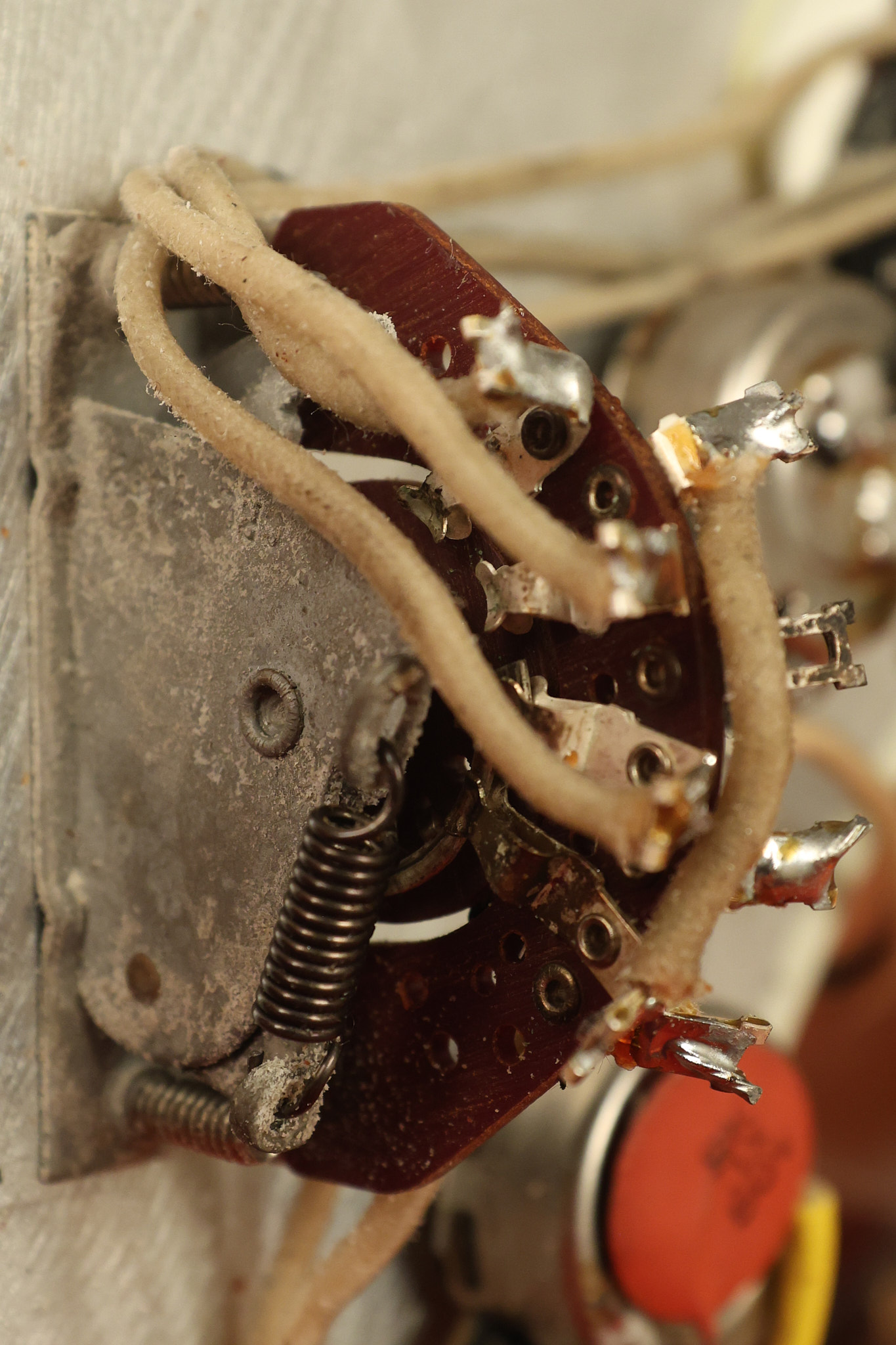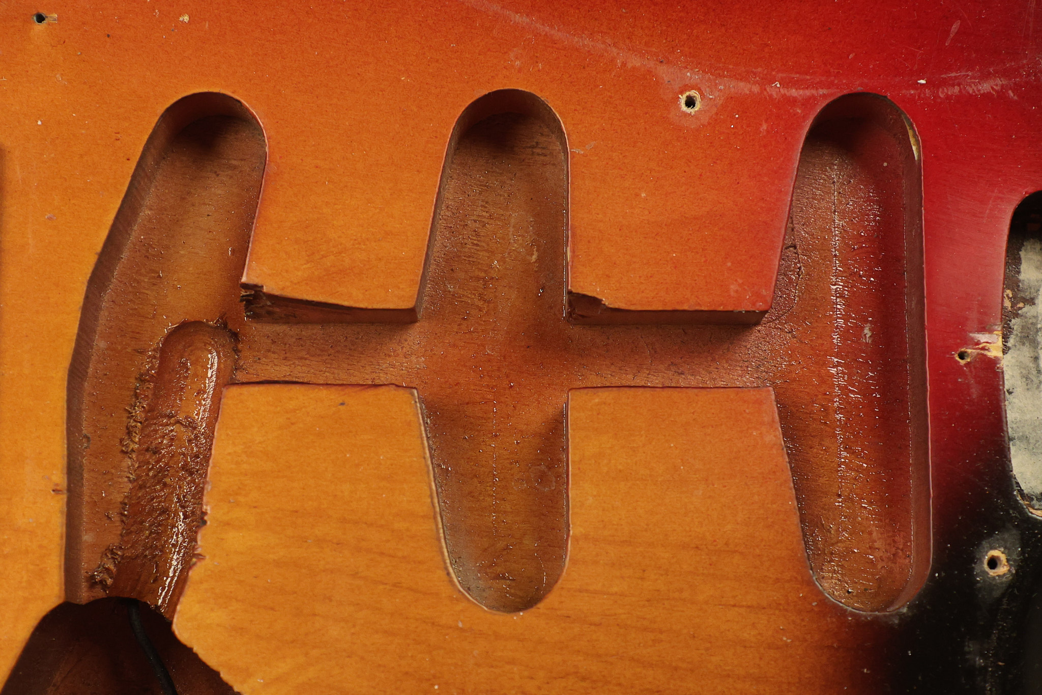 1961 Fender Stratocaster in its original Sunburst finish which has really maintained its original brilliance in color. It has a great playing neck with great frets. It's all original and 100% complete along with its original tremolo arm, original hardshell case and original HANG TAG with the matching serial number and original allen wrench still taped to the inside. It's in EXCELLENT condition with nicks + dings and other cosmetic wear. Everything remains structurally sound with no cracks, breaks or repairs. All electronics work and sound great while all solder joints remain original and untampered with. The weight is 7 lbs. 12.8 oz.