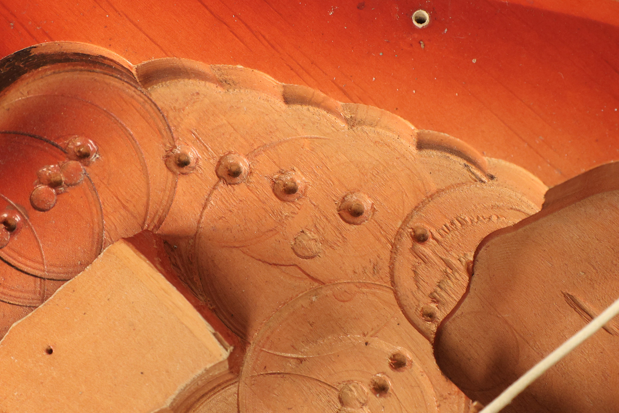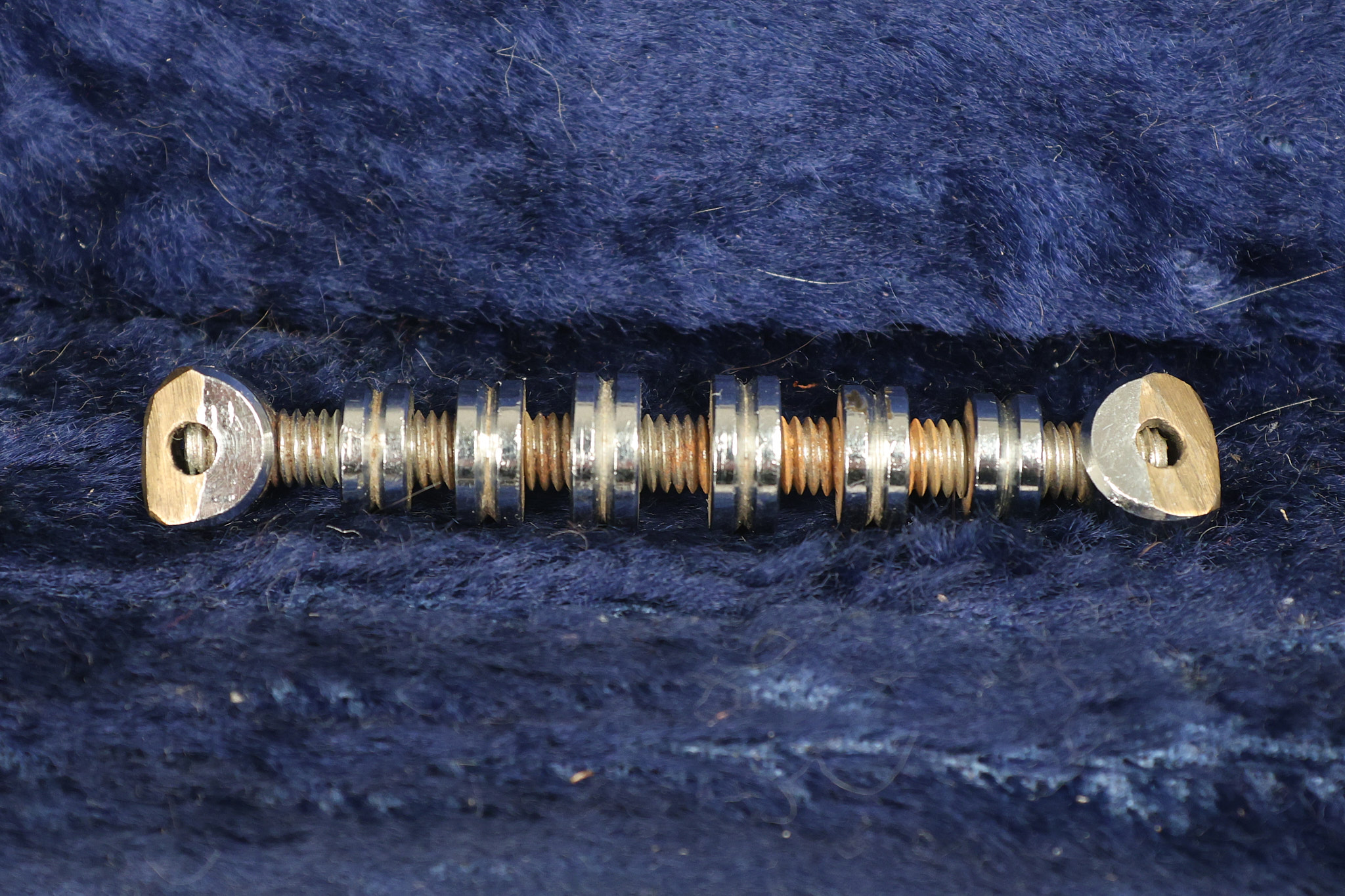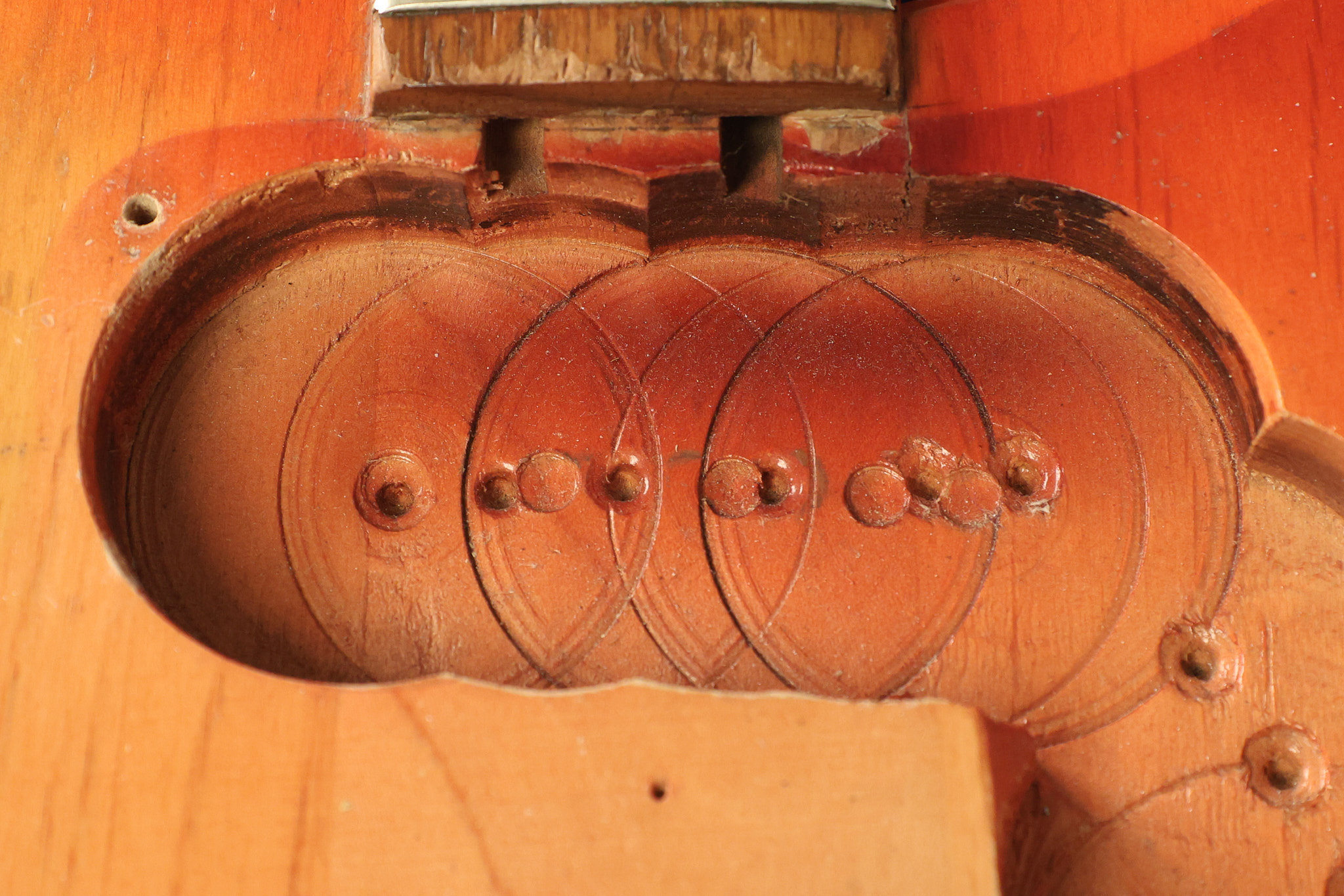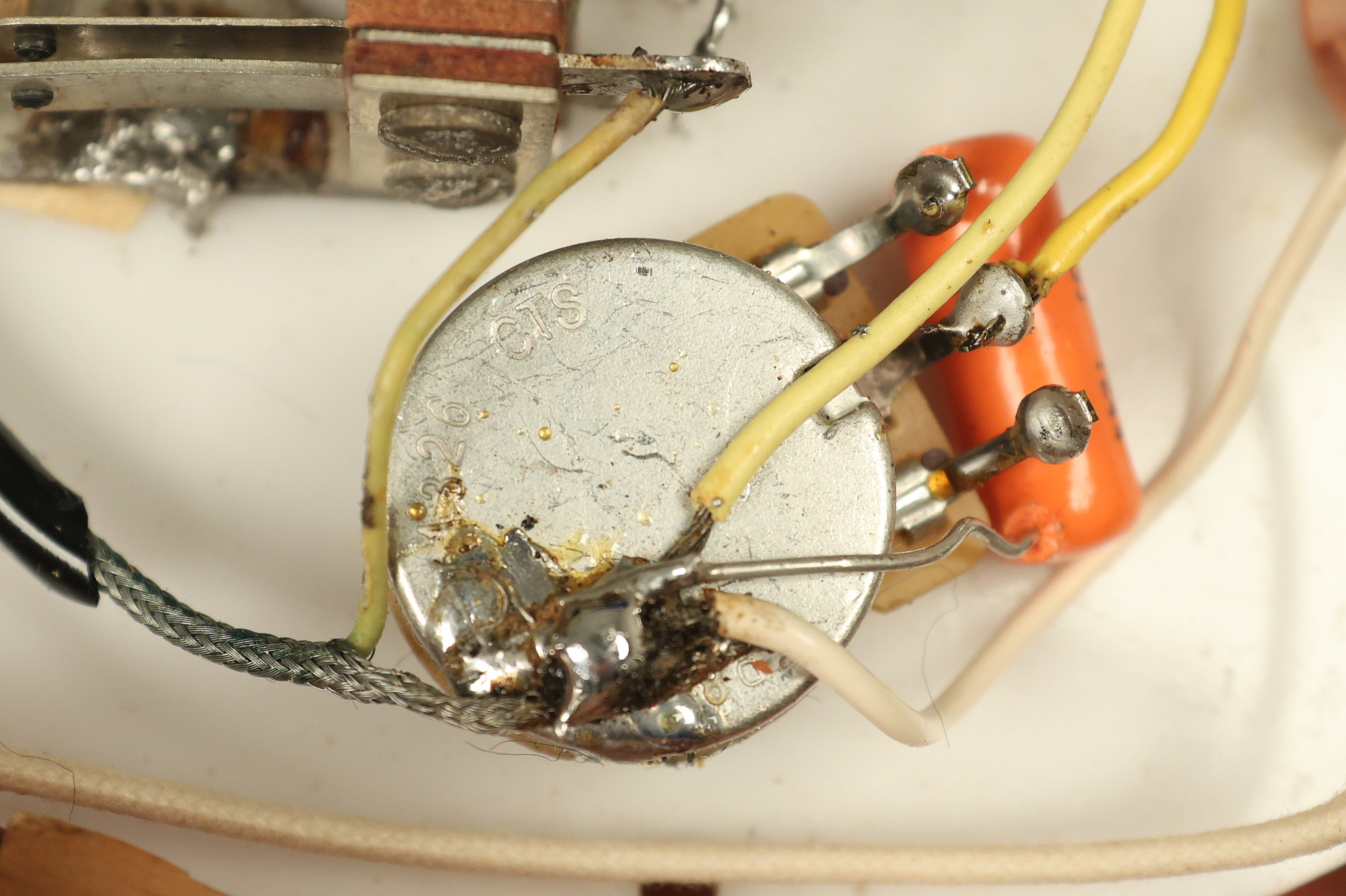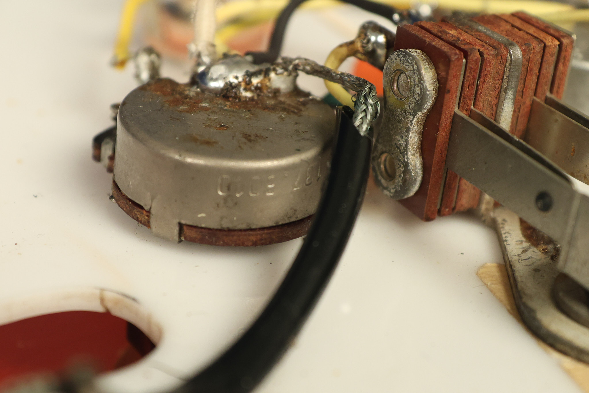1963 Rickenbacker model 950 3/4 scale in its original Fireglo finish. It has a good playing neck with good frets. Parts that have been changed include the bridge, nut, pickguard screws, 2 tuning key screws, one pot, the capacitor, the jack and some of the wires. The pickups are original along with the 3-way rotary tone switch and a pot that dates to 1960. The original hardshell case is also included. A 3-digit number has been stamped into the back of the headstock. There are lots of nicks + dings, belt buckle wear, play wear and other cosmetic wear including some cracks in the pickguard. The guitar itself remains structurally sound. All electronics work and sound great.