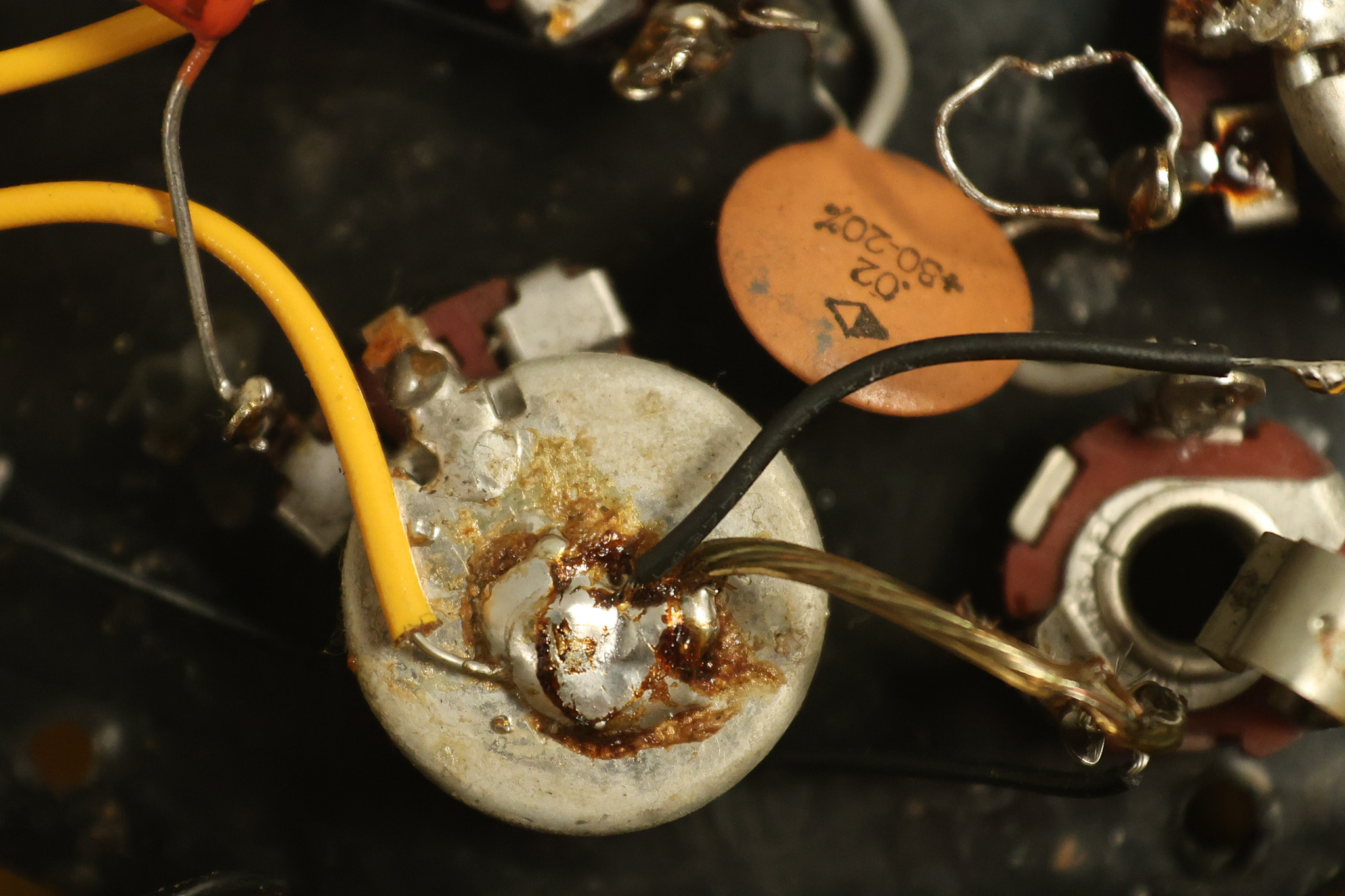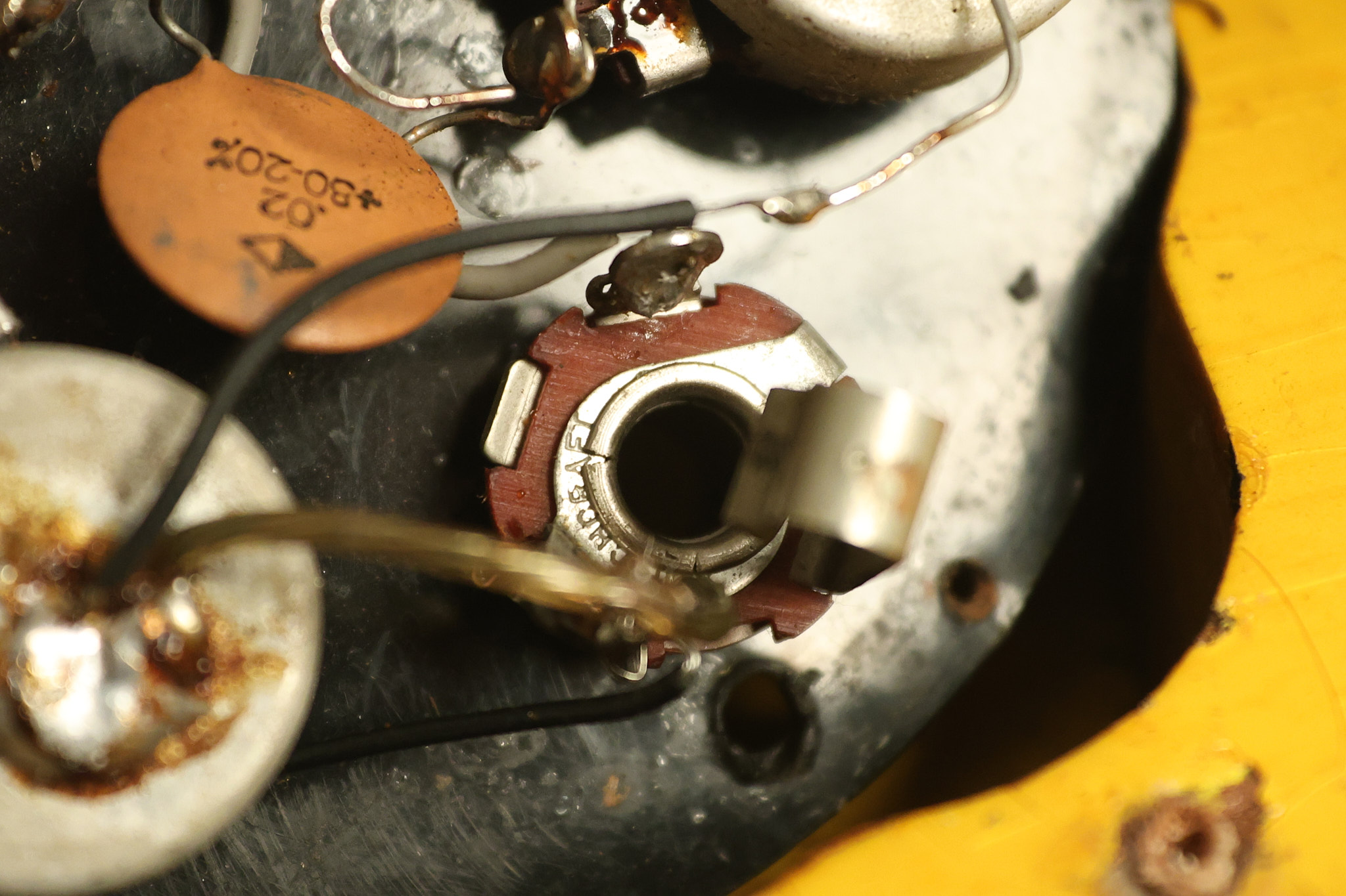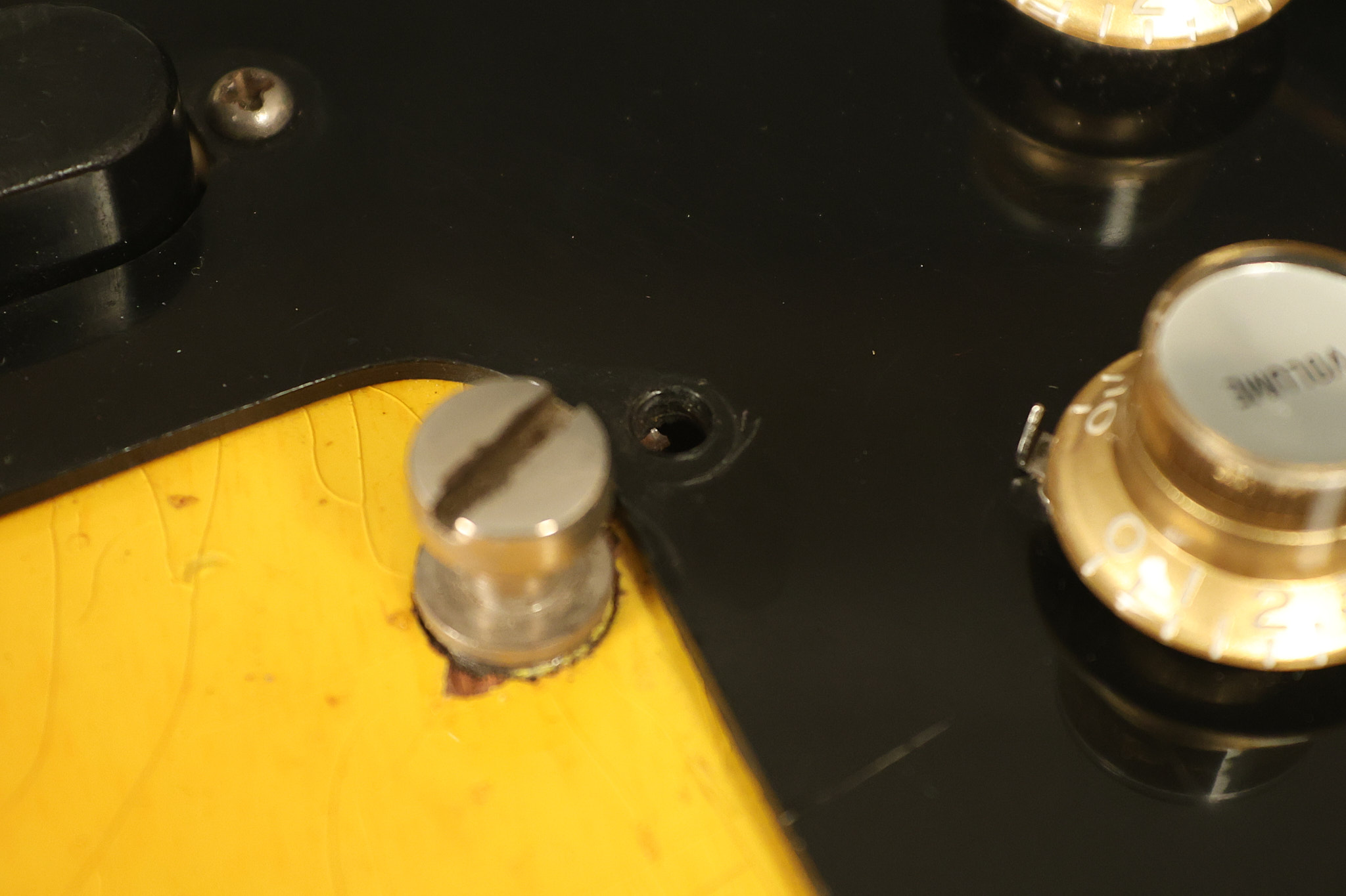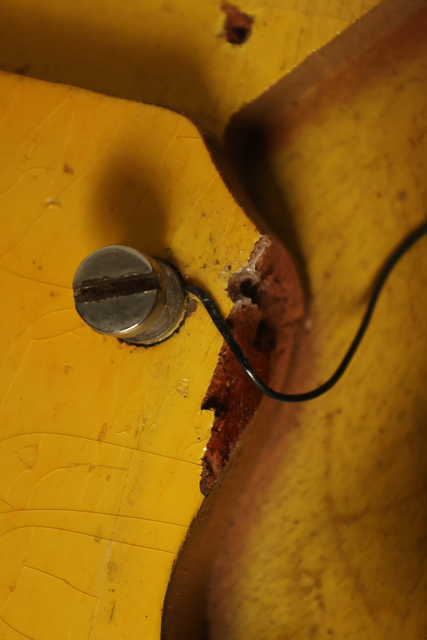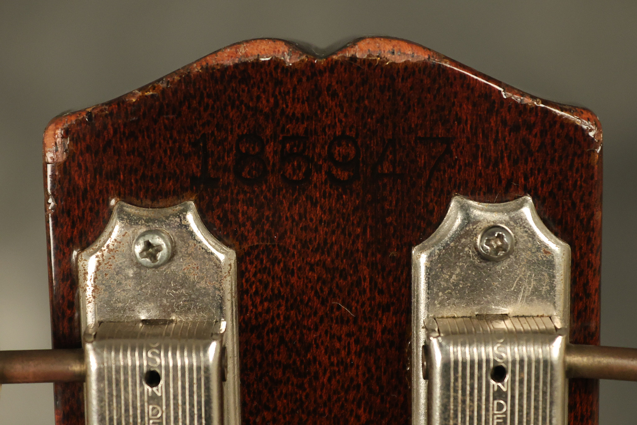 1964 Gibson Melody Maker D in sunburst. It has a great playing C-shaped neck, that is .845" at the 1st fret, and 1.050" at the 12th. The original frets still have a good amount of life left. The pickups are original and sound great, but there have been several changes made to this guitar, which include a changed capacitor, along with some changed wiring, the tailpiece (it is a chrome late '60's with changed adjustment screws), pickguard screws, along with some extra holes in the pickguard, the switch tip, nut, knobs, strap buttons, truss rod cover screws, and tuning key screws. The tuning keys are original, but the D and G tuners are slightly bent, but still function well. The body underneath the pickguard has chipped in a couple of places, hence the extra holes in the pickguard. Everything functions well and properly. There have been no cracks, breaks, repairs. Comes with a non-original vintage chipboard case.