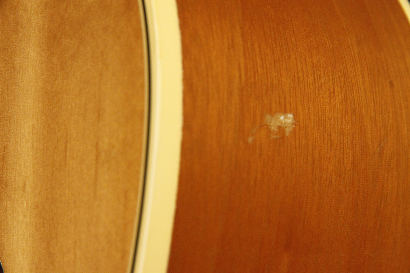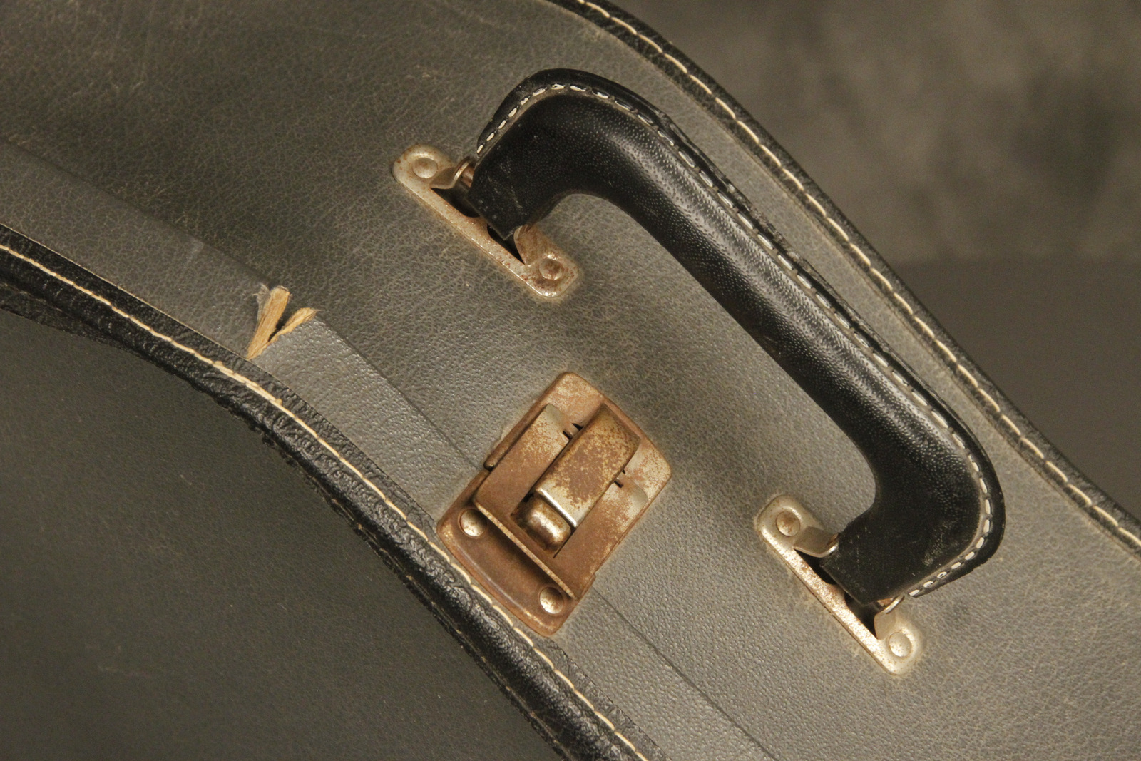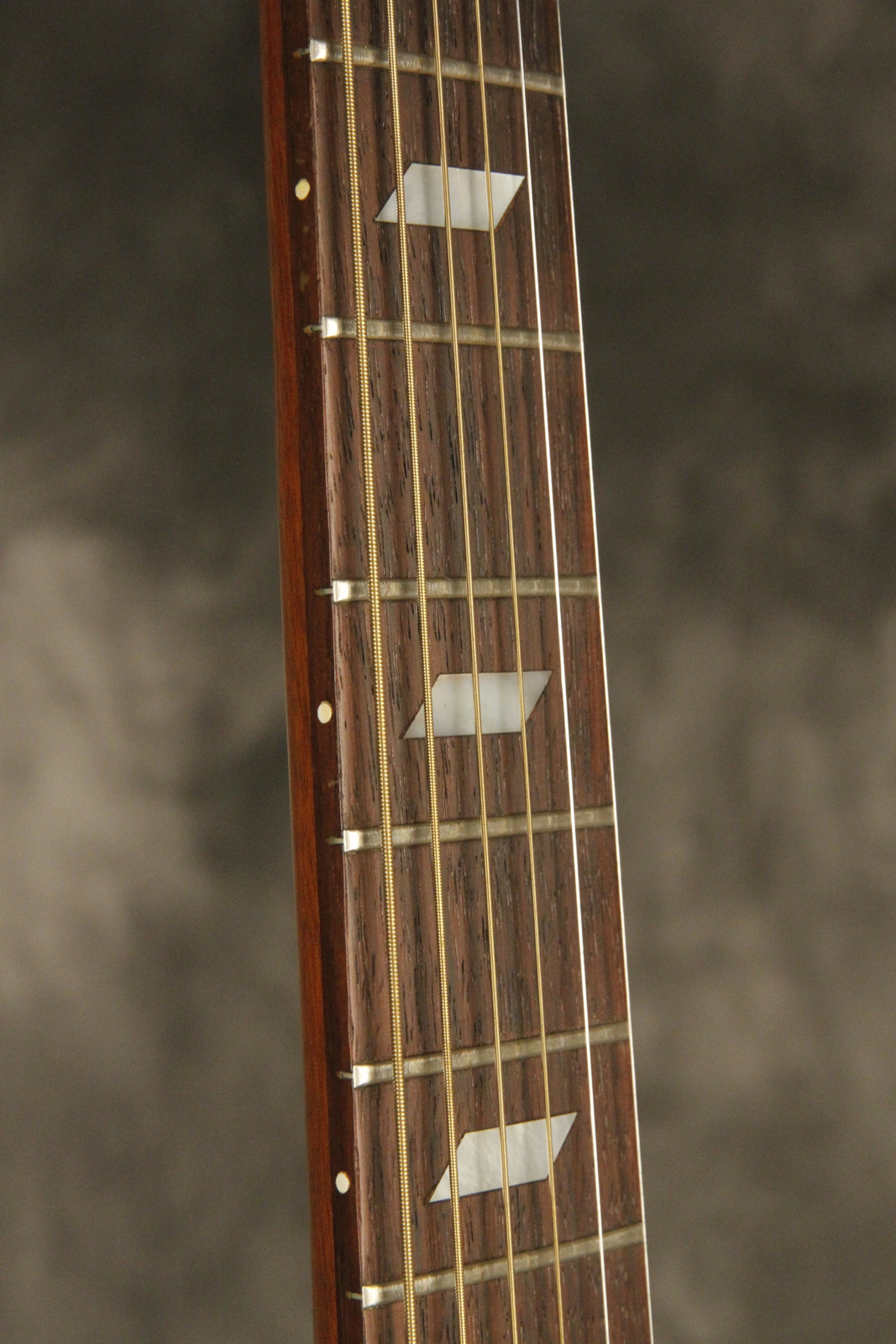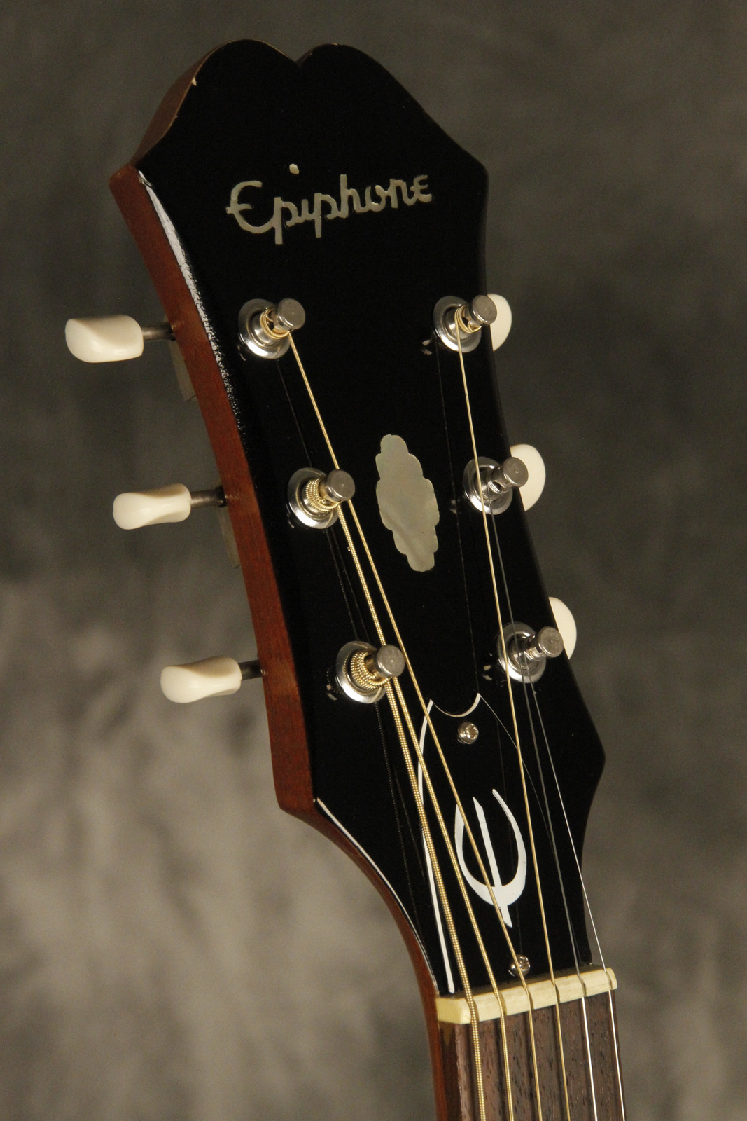 1966 Epiphone FT-79N Texan in its original Natural finish. It has a great playing neck with great frets. The original soft-shell case is included along with its original hang tag and an additional bridge. There is a hairline crack in the top from pickguard shrinkage running along the inner edge of the pickguard between the soundhole and the bridge. There is another very short crack running over the edge of the soundhole to the rosette. These are both more of a cosmetic issue as the guitar itself remains structurally sound. This Texan looks very clean with some nicks + dings and other cosmetic wear including some finish worn off the treble side edge of the neck around the first several frets.