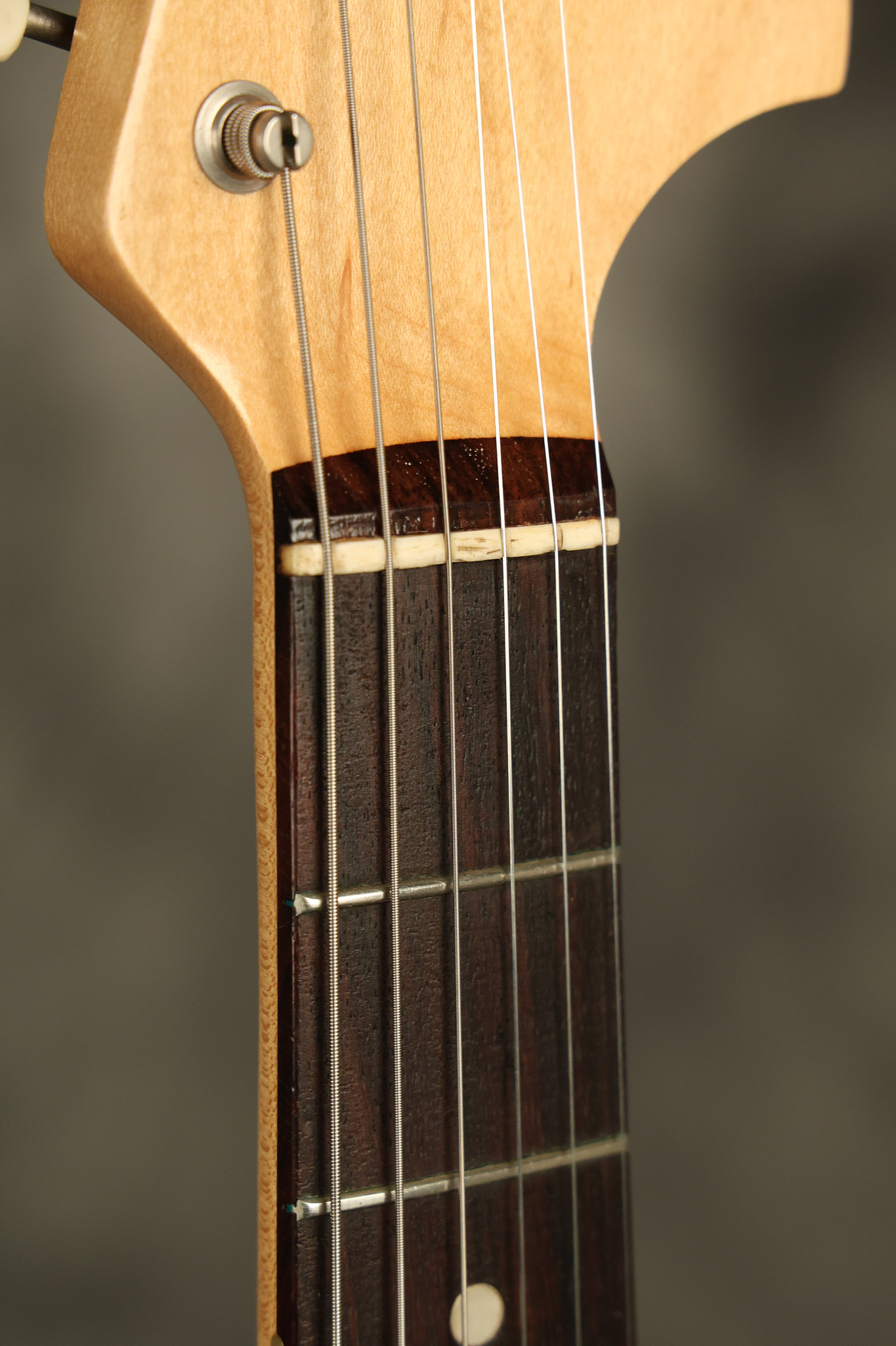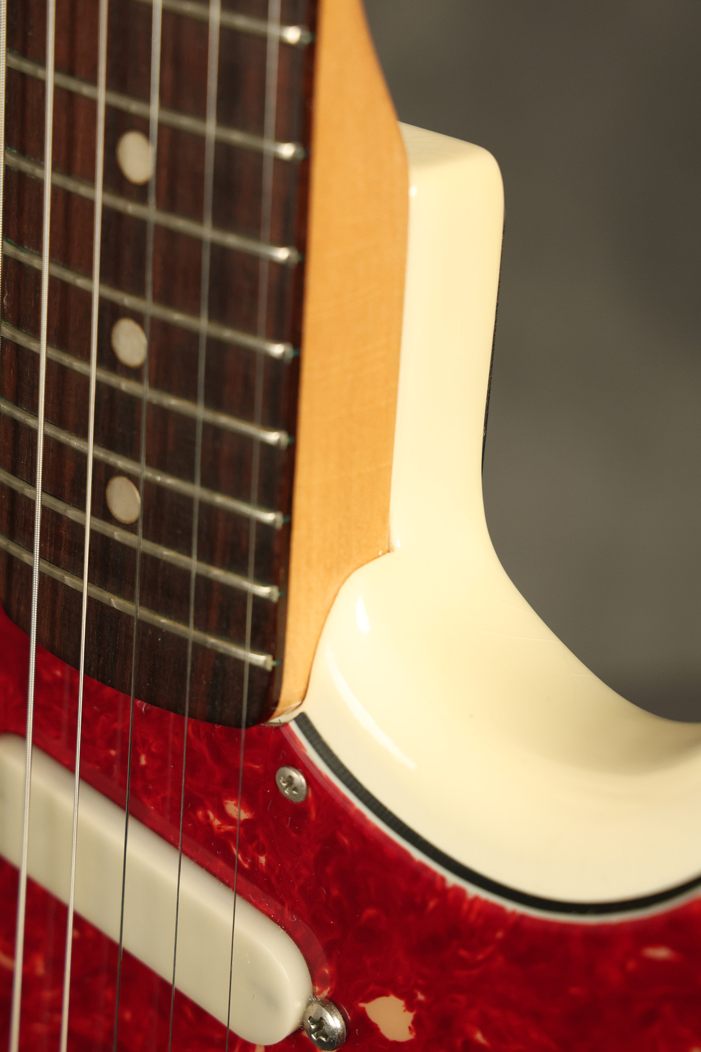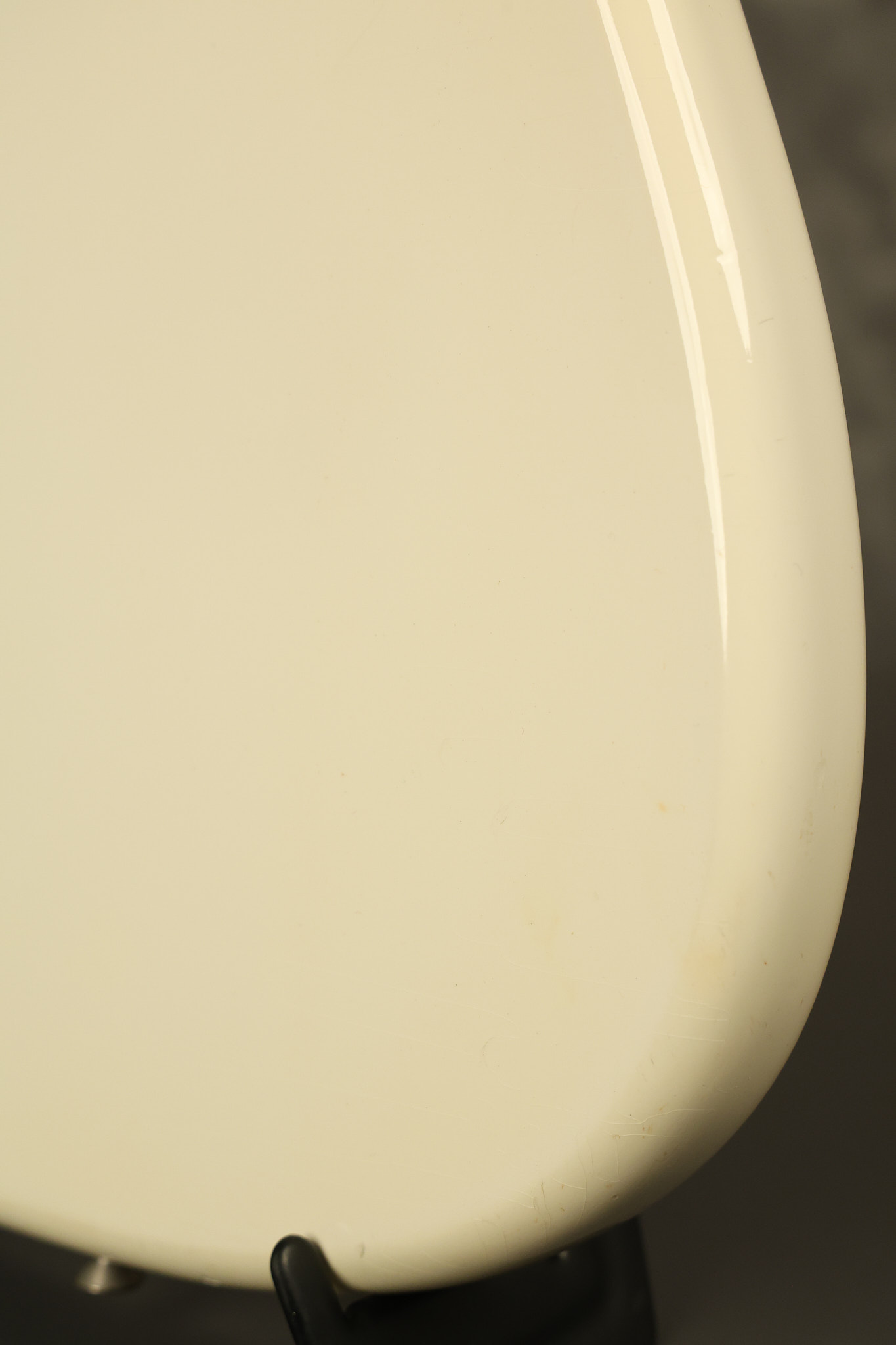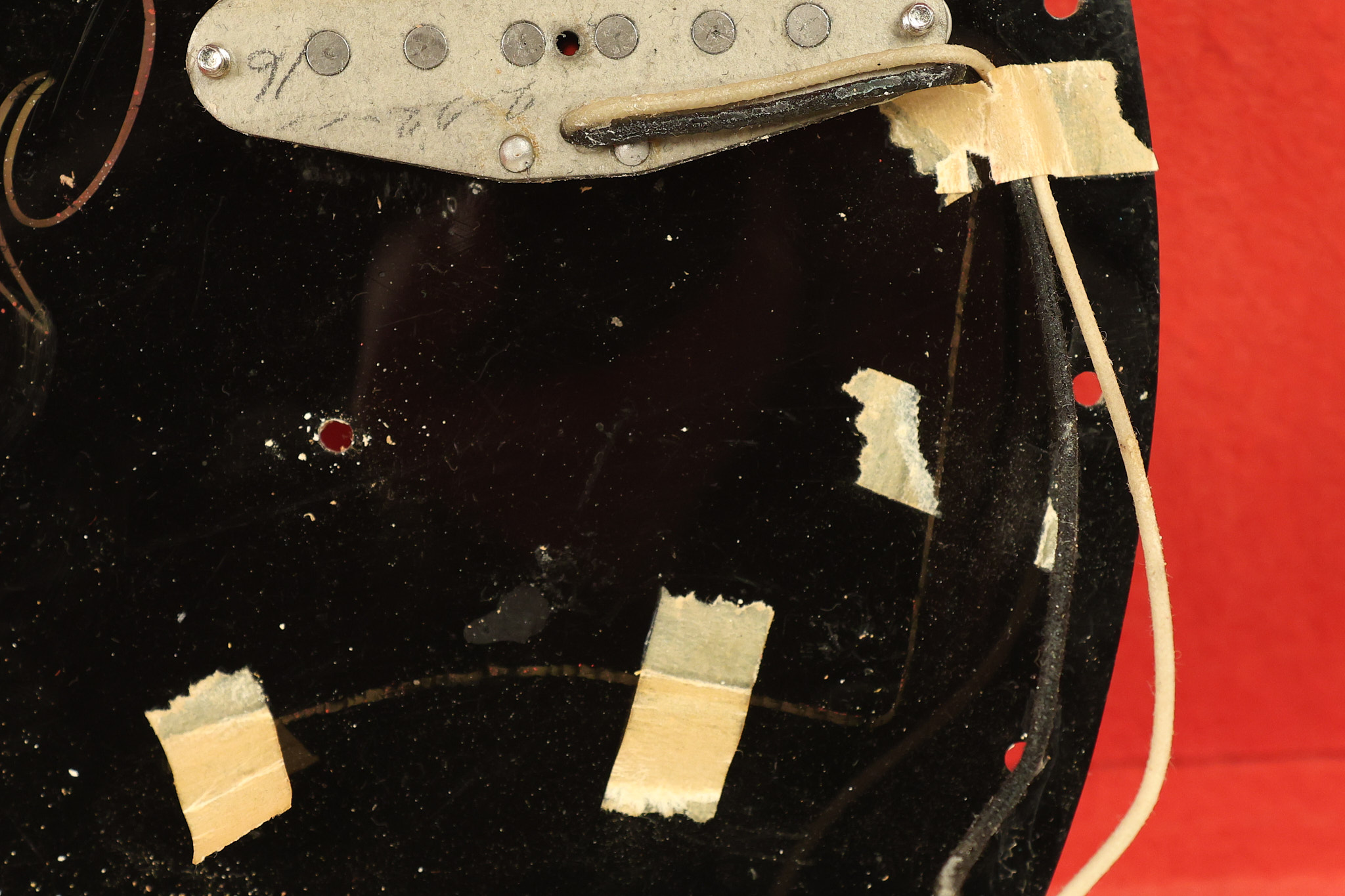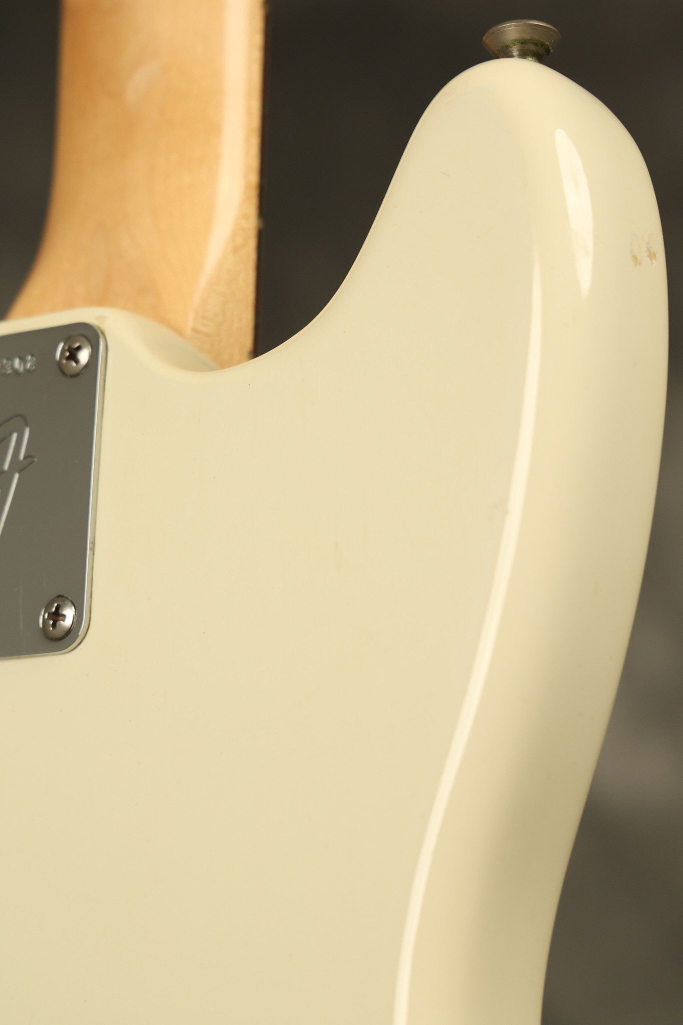 1966 Fender Musicmaster II in its original White finish. It has a great playing SLAB BOARD neck with great frets. It's all original with the exception of the jack and an added ground wire. It's also 100% complete along with it its original hardshell case and HANG TAG with the matching serial number. It's in EXCELLENT condition with only a few nicks + dings, very light finish checking and other cosmetic wear. Everything remains structurally sound with no cracks, breaks or repairs. All electronics work and sound great.