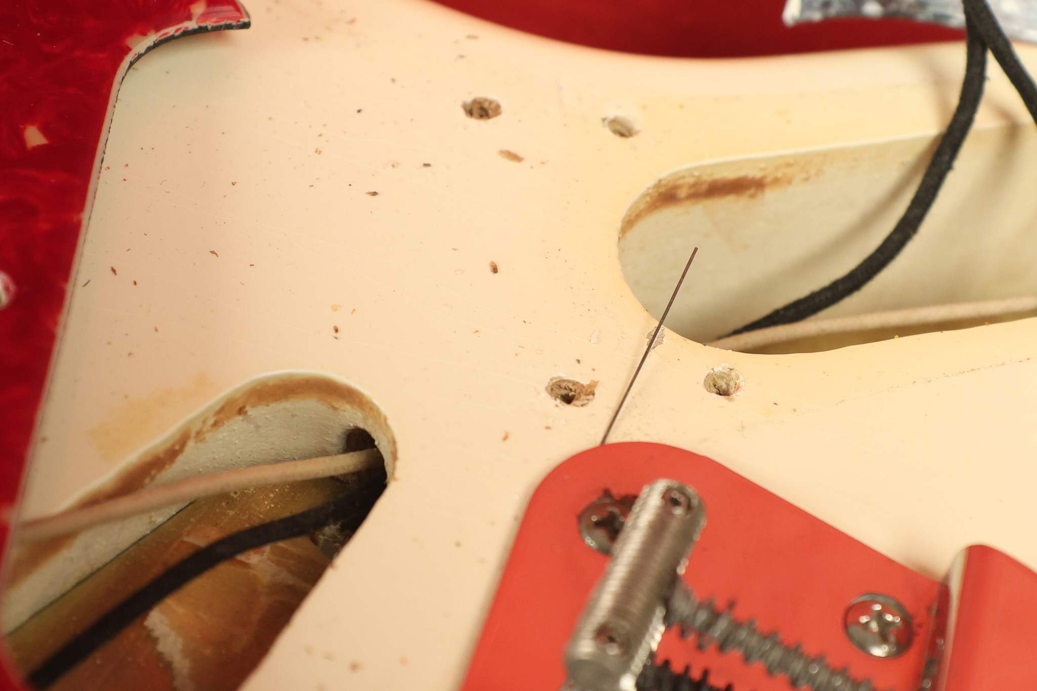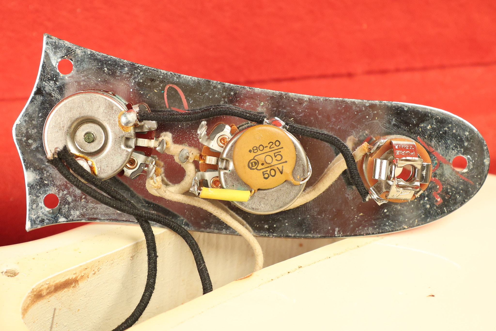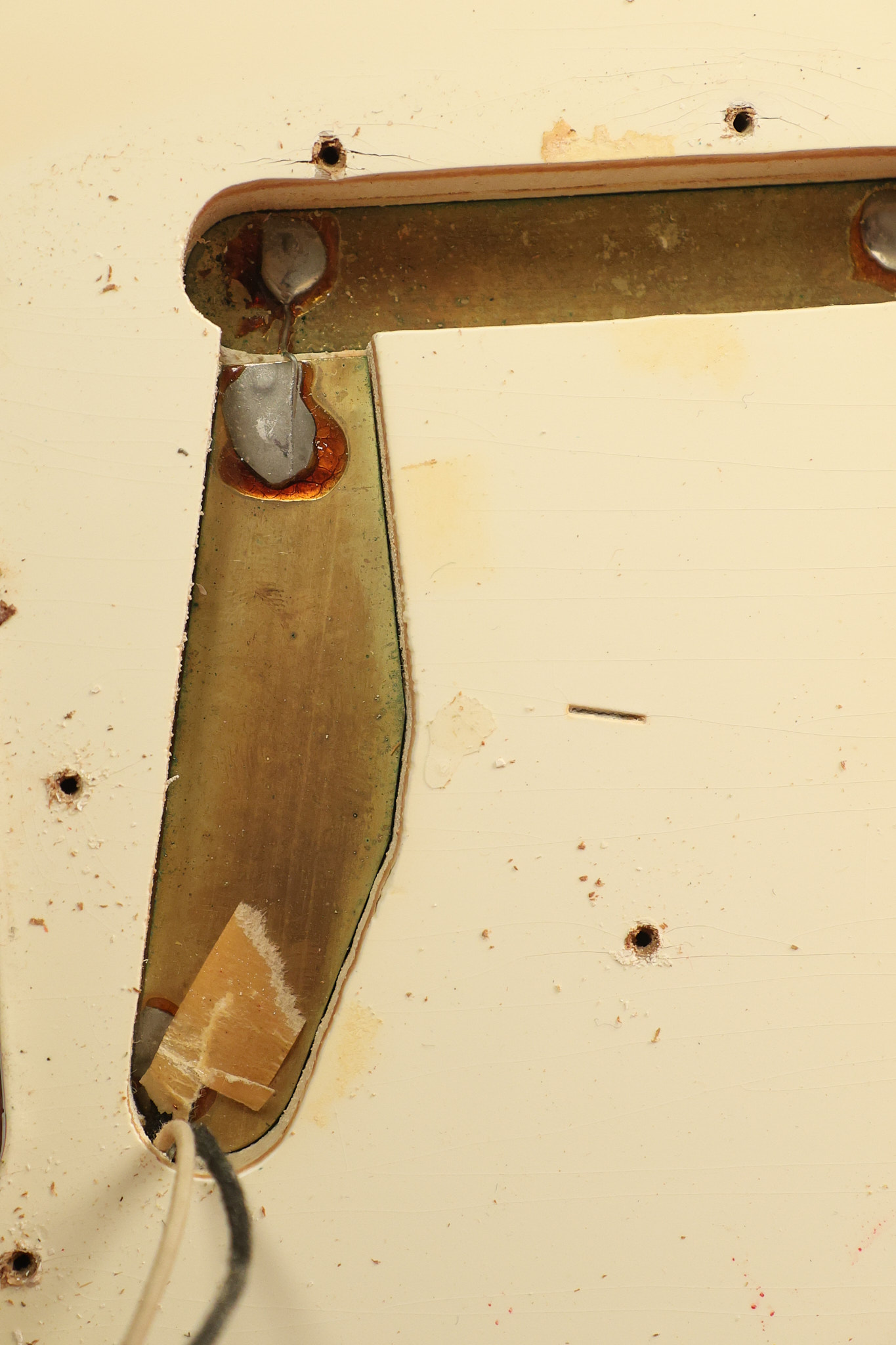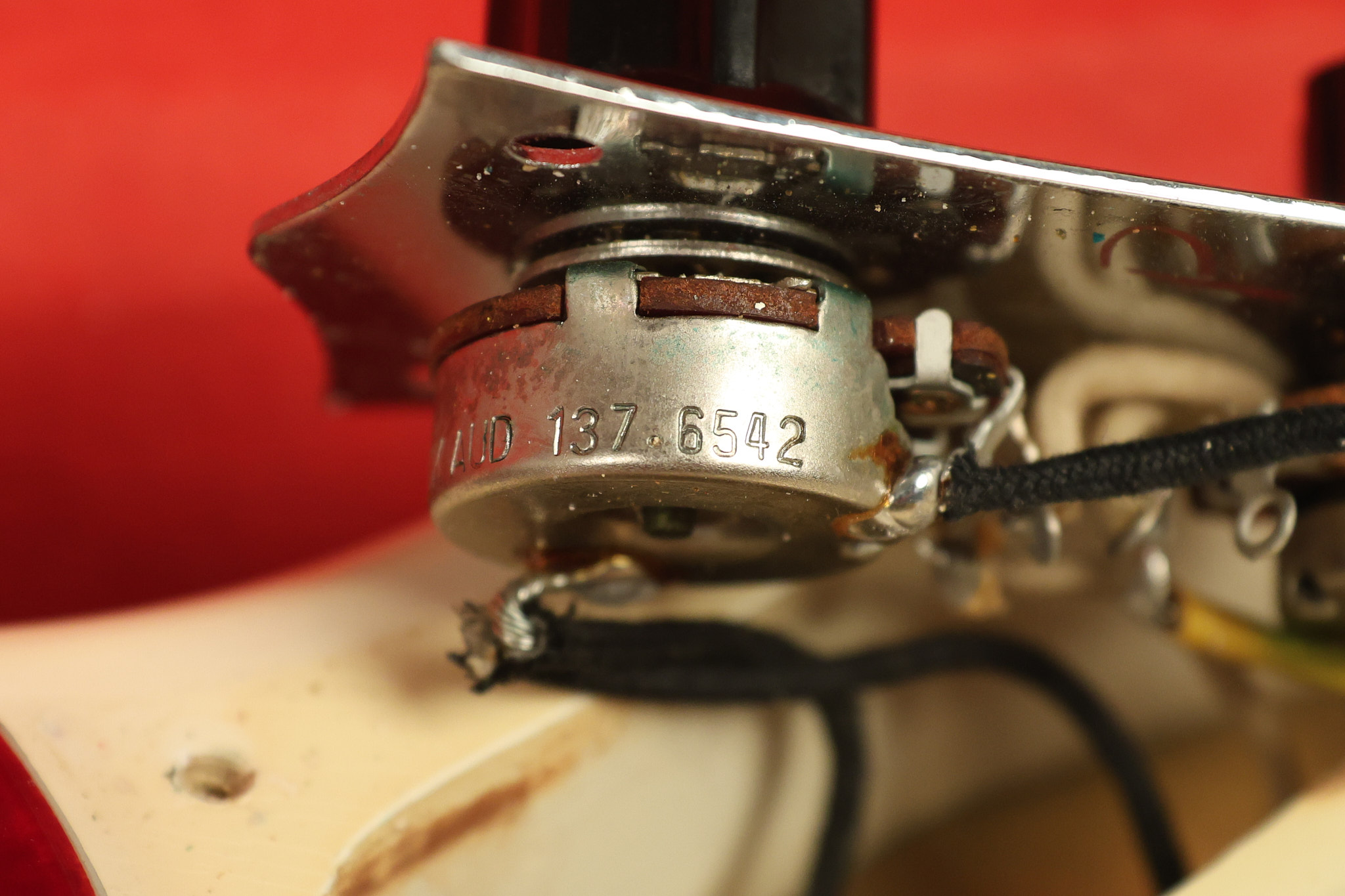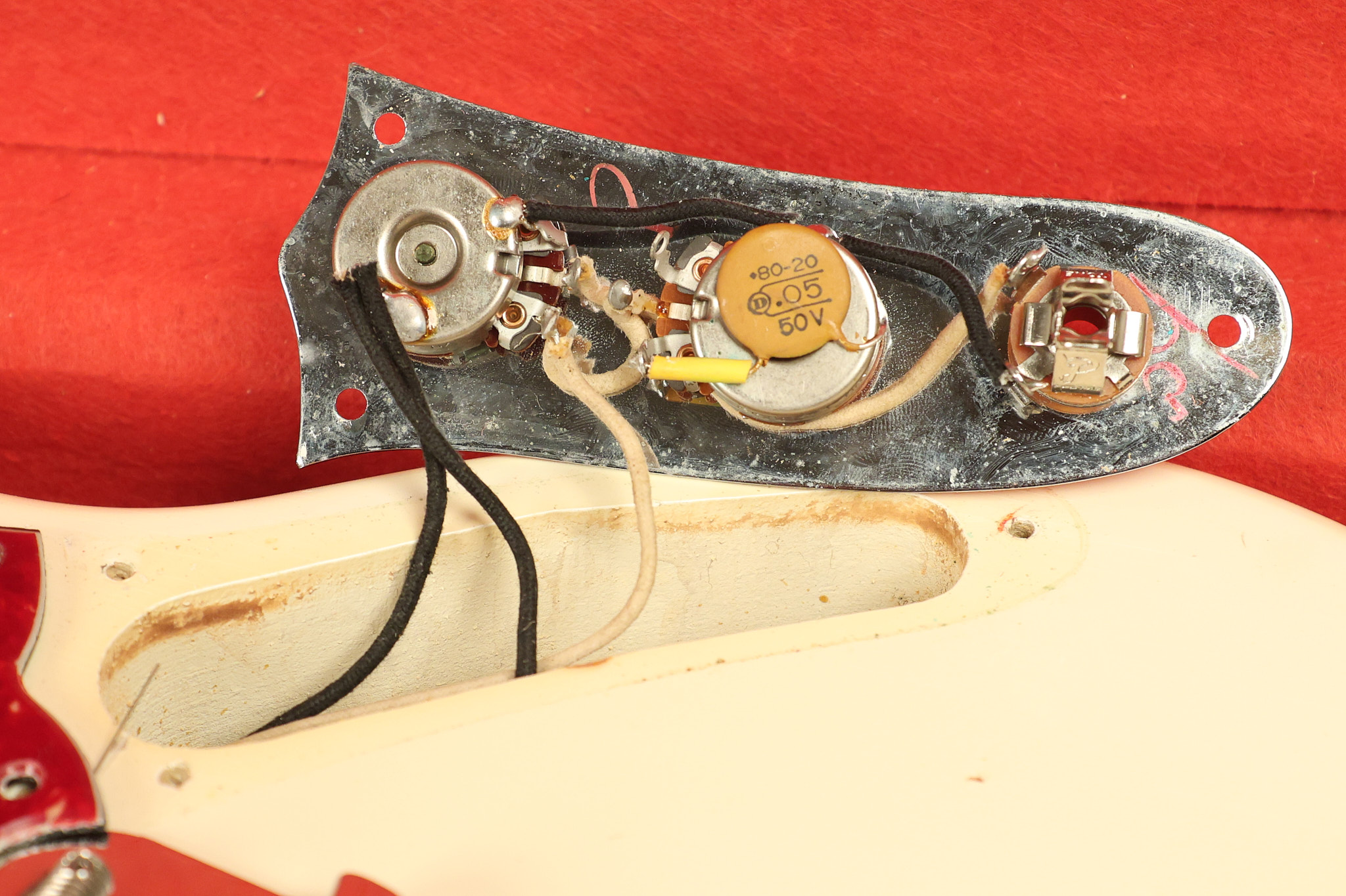 1966 Fender Musicmaster II in its original White finish. It has a great playing SLAB BOARD neck with great frets. It's all original with the exception of the jack and an added ground wire. It's also 100% complete along with it its original hardshell case and HANG TAG with the matching serial number. It's in EXCELLENT condition with only a few nicks + dings, very light finish checking and other cosmetic wear. Everything remains structurally sound with no cracks, breaks or repairs. All electronics work and sound great.