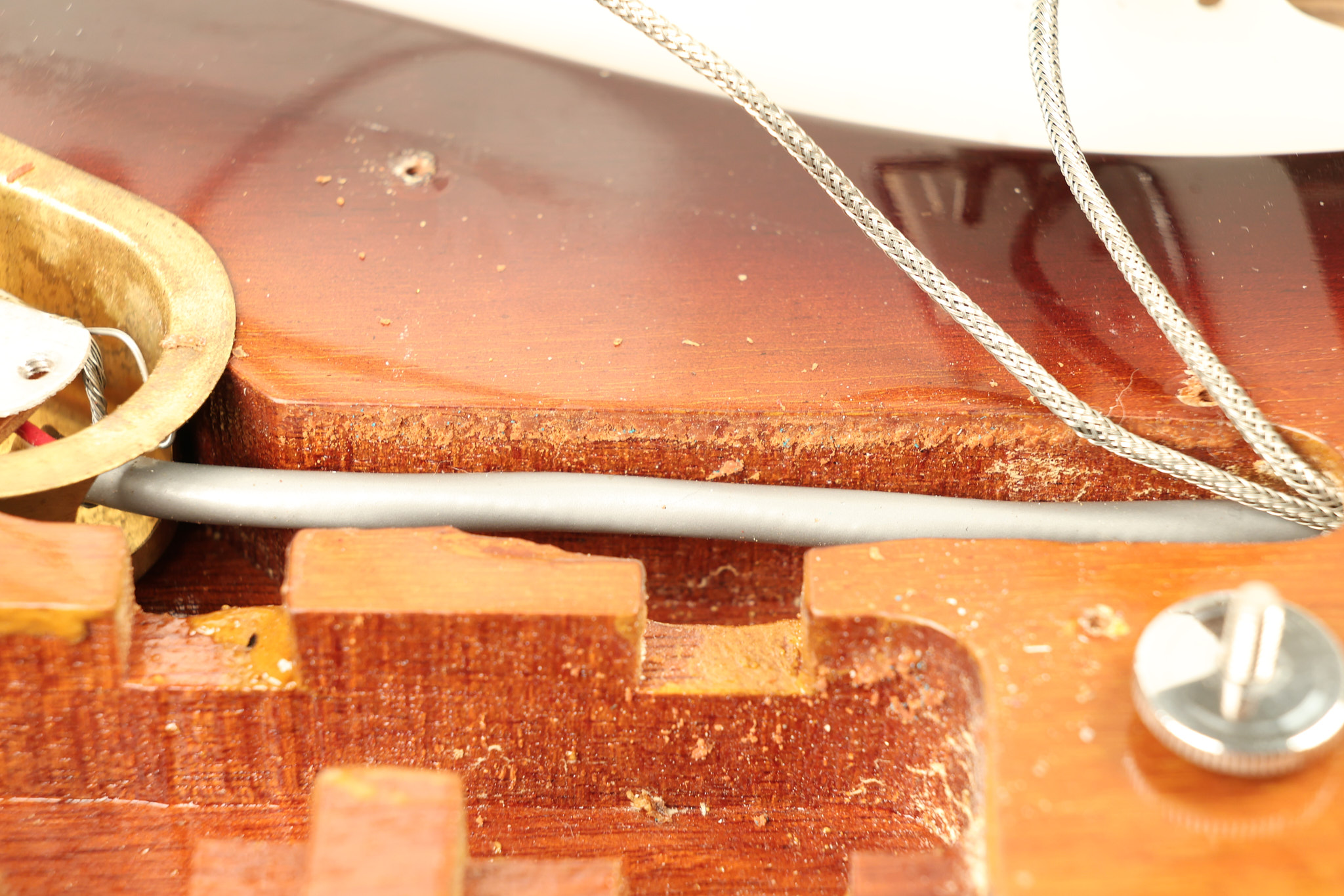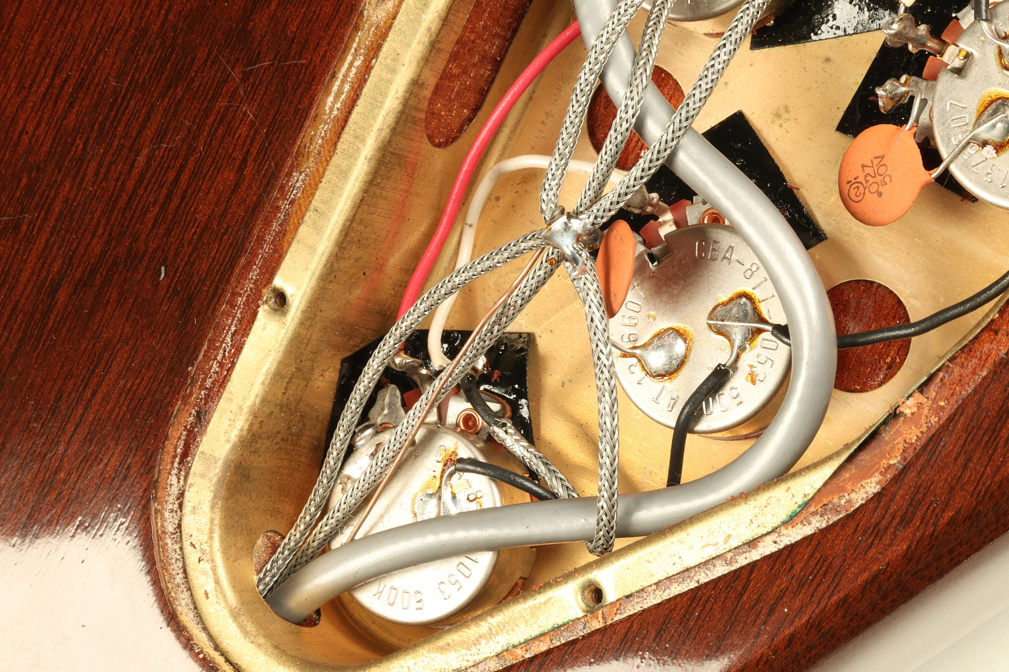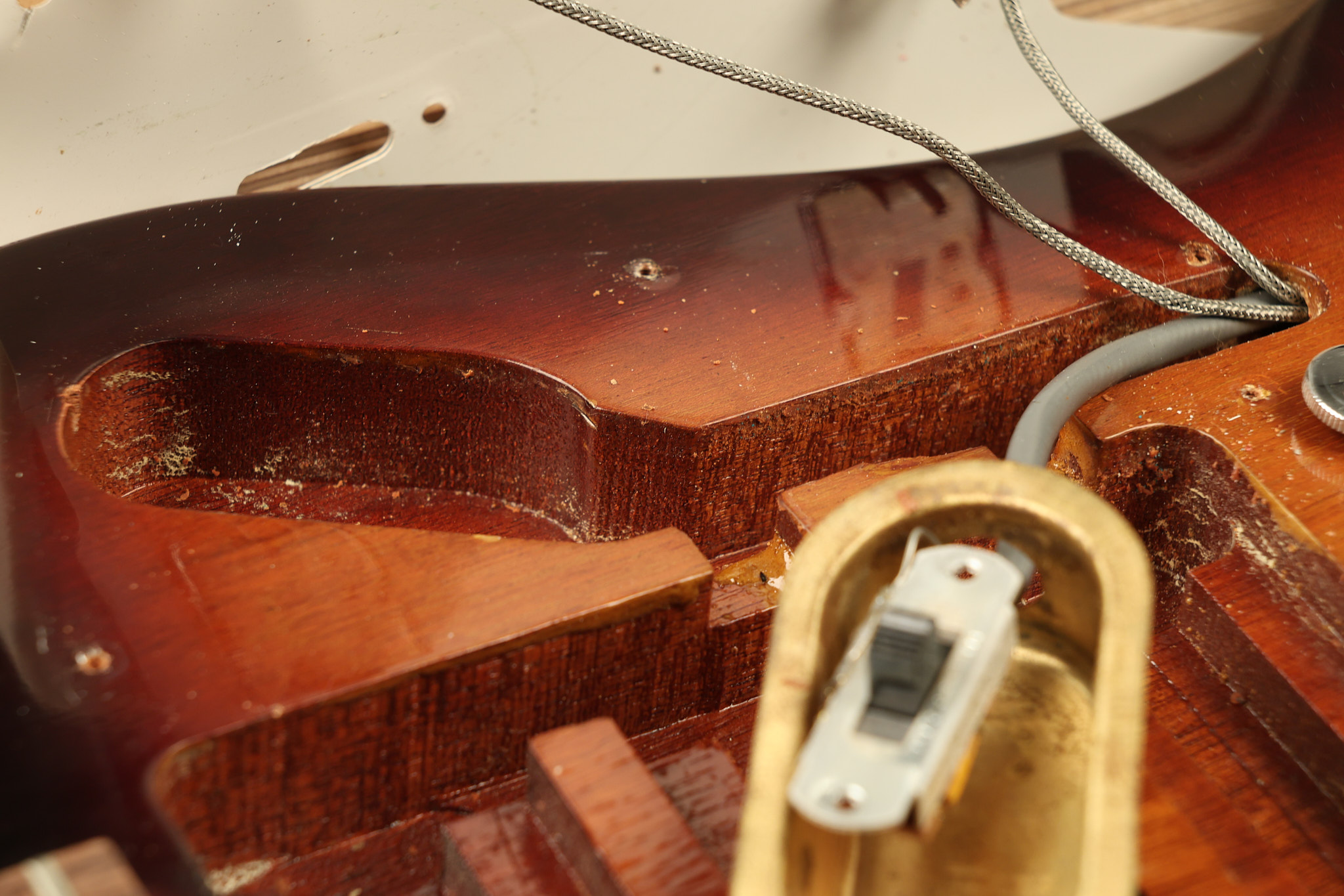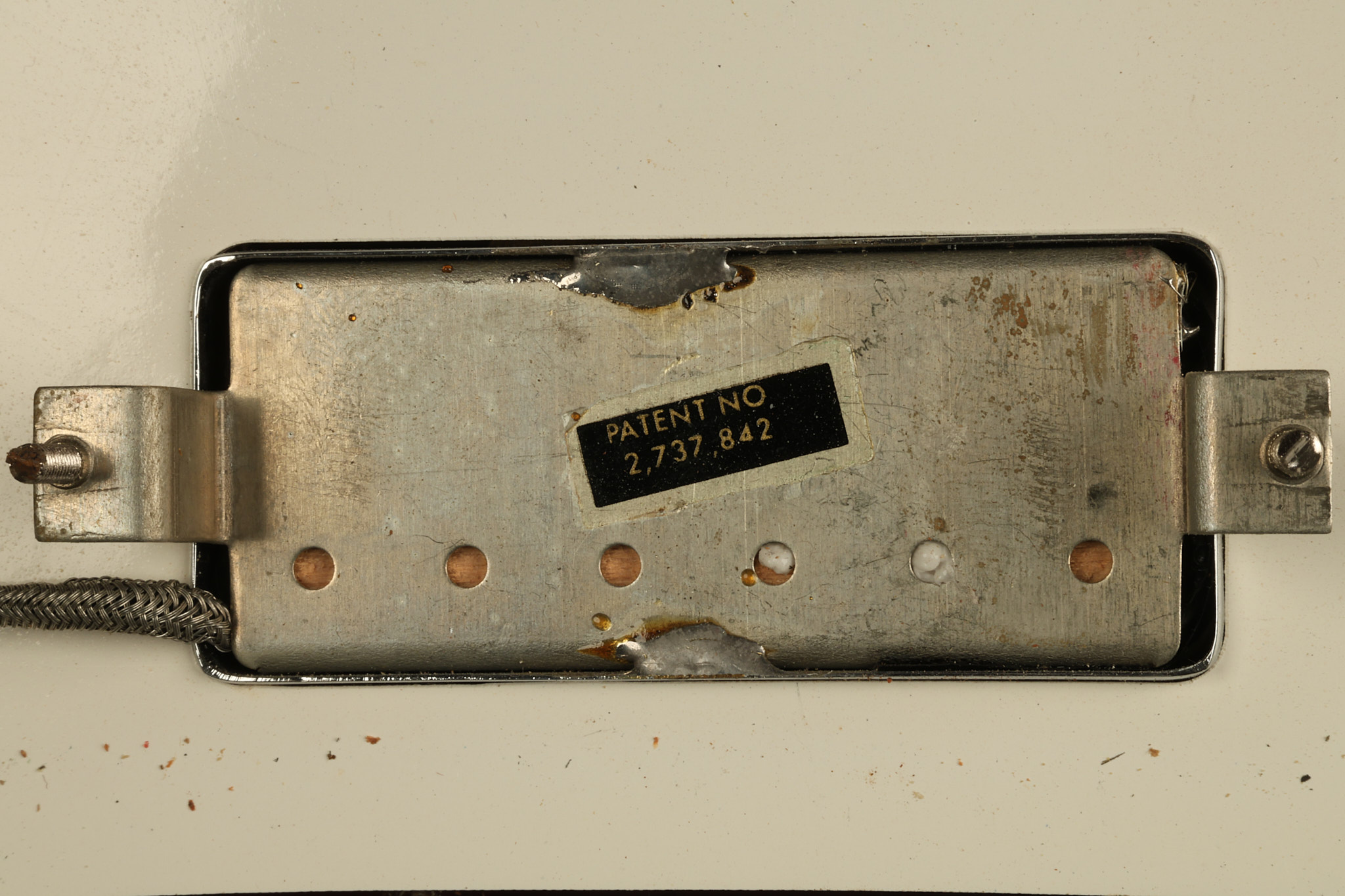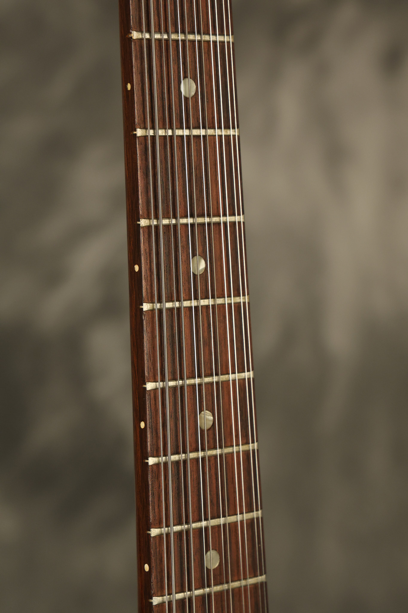 1966 Gibson non-reverse Firebird XII in its original Sunburst finish. It has a a great playing neck with great frets. It's all original and 100% complete along with its original hardshell case, hang tags and original cable. It's in very good condition with some nicks + dings and other cosmetic wear including a couple of tiny cracks in the pickguard around one of the screws. There is also a small hairline crack on the bottom edge of the body running over the back edge of the body towards the control cavity where the wood has the most shallow depth from the cavity wall to the edge of the body. It does not run over the top edge of the body and remains more of a cosmetic issue as the guitar itself remains structurally sound. All electronics work and sound great while all solder joints remain original and untampered with.