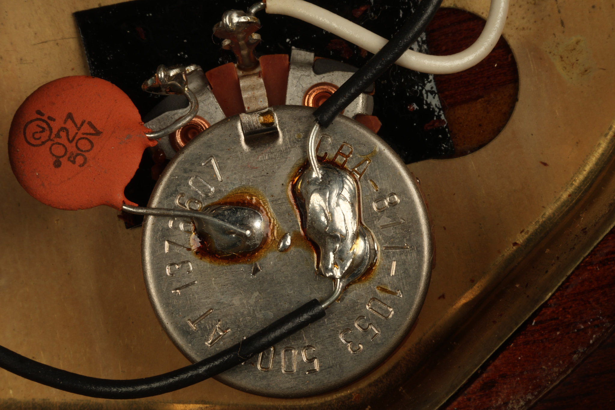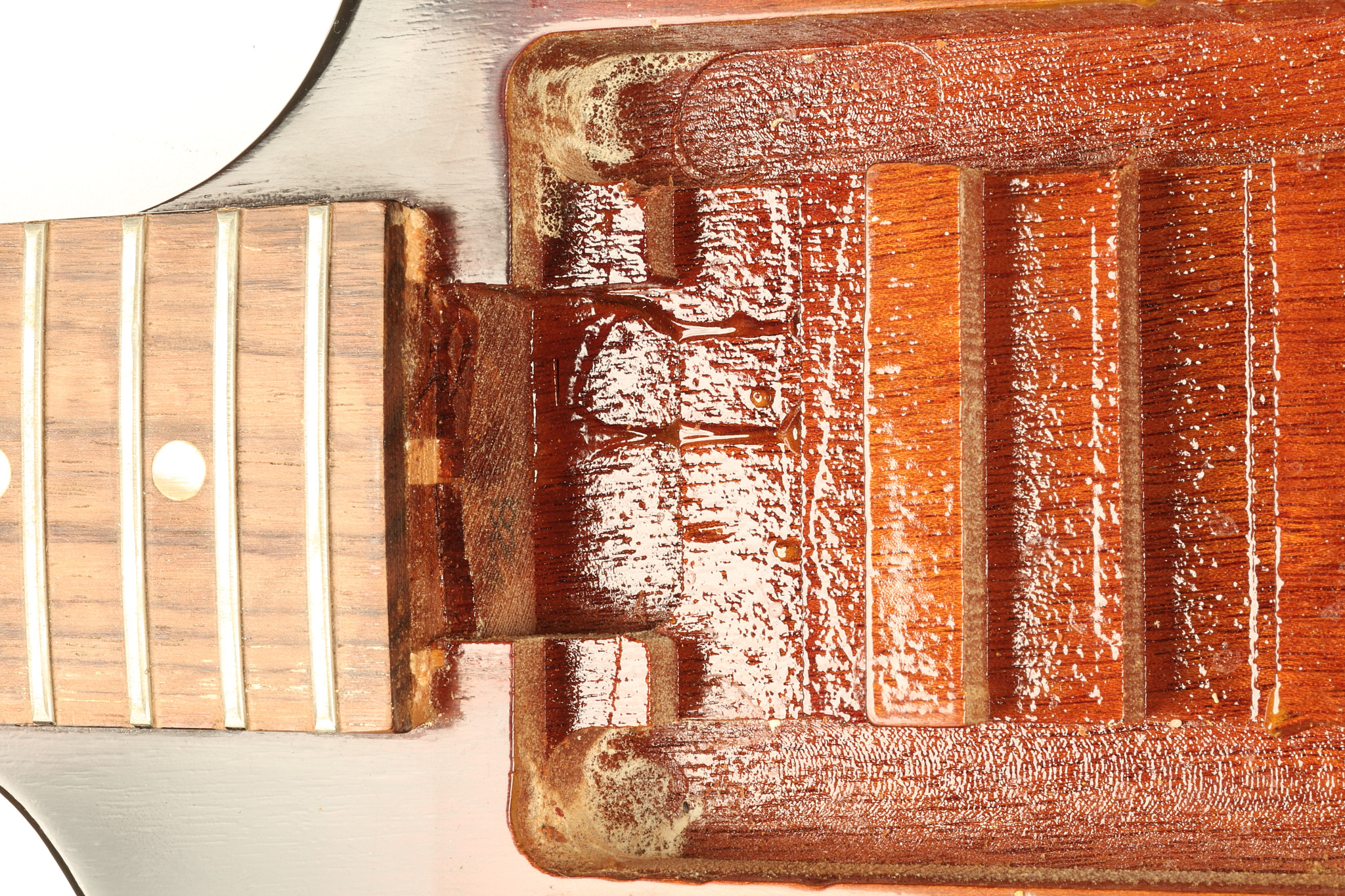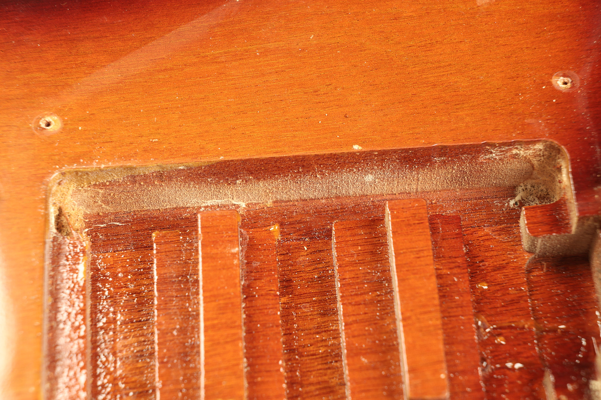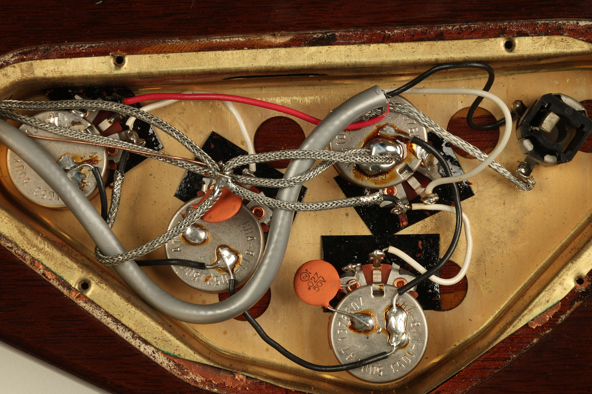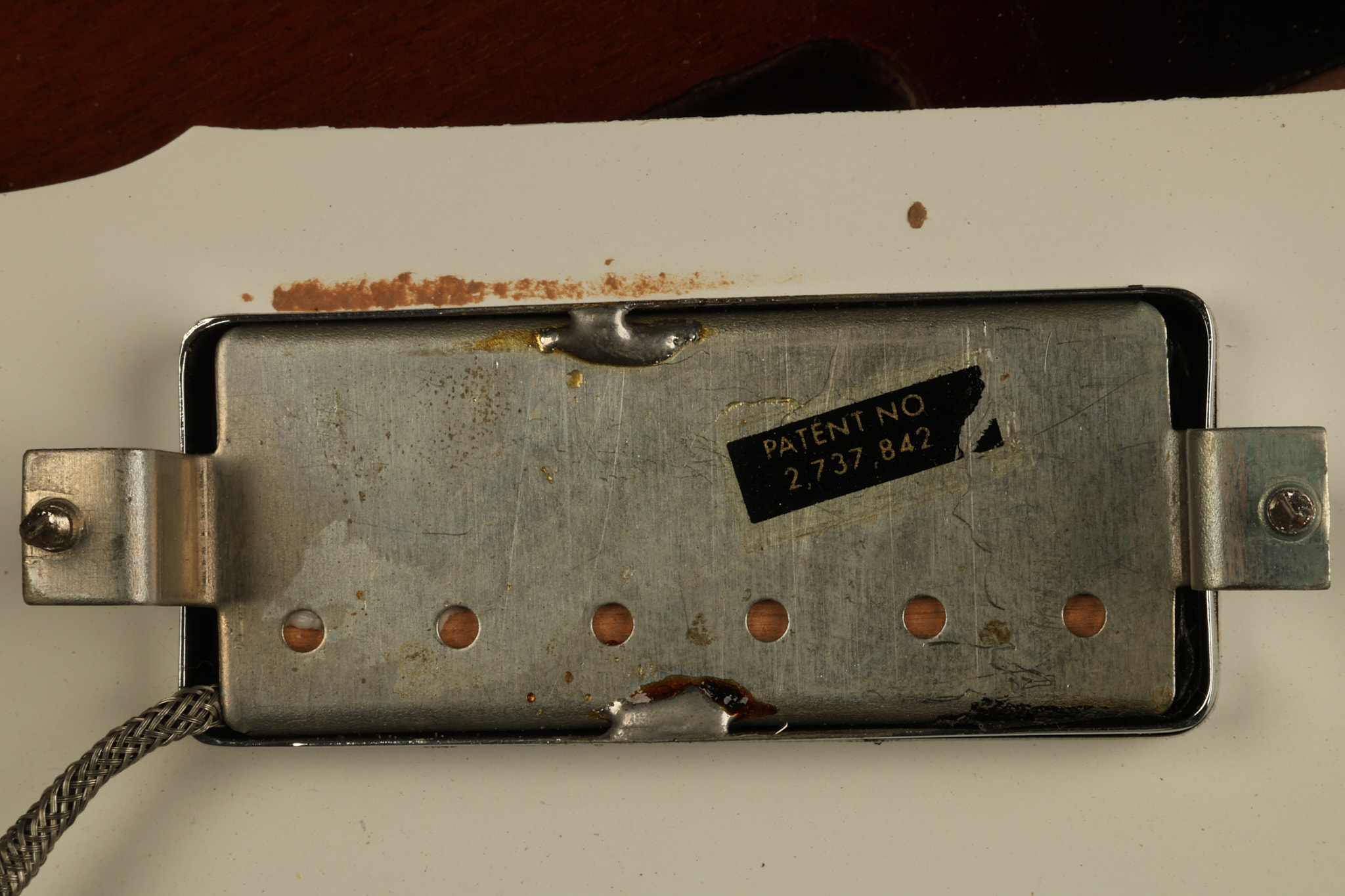 1966 Gibson non-reverse Firebird XII in its original Sunburst finish. It has a a great playing neck with great frets. It's all original and 100% complete along with its original hardshell case, hang tags and original cable. It's in very good condition with some nicks + dings and other cosmetic wear including a couple of tiny cracks in the pickguard around one of the screws. There is also a small hairline crack on the bottom edge of the body running over the back edge of the body towards the control cavity where the wood has the most shallow depth from the cavity wall to the edge of the body. It does not run over the top edge of the body and remains more of a cosmetic issue as the guitar itself remains structurally sound. All electronics work and sound great while all solder joints remain original and untampered with.