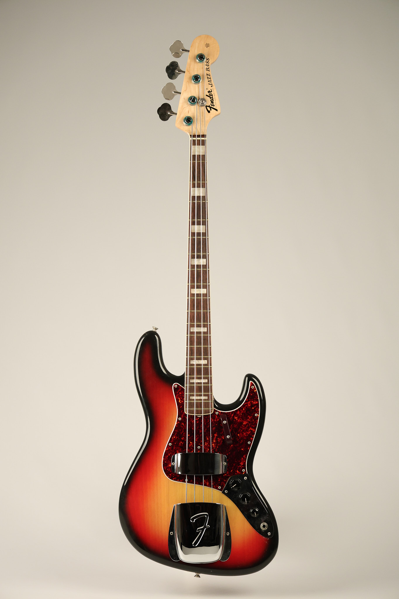 1973 Fender Jazz Bass in its original brilliant Sunburst finish. It has a great playing neck with great frets in a Rosewood fretboard. All parts are original and the pickups were professionally rewound by Tom Brantley. It's also 100% complete along with its two chrome covers. A slightly later Fender hardshell case is included. This Jazz Bass is in EXCELLENT condition with some very minor nicks + dings and other minor cosmetic wear. The bass itself remains structurally sound with no cracks, breaks or repairs. All electronics work and sound great.