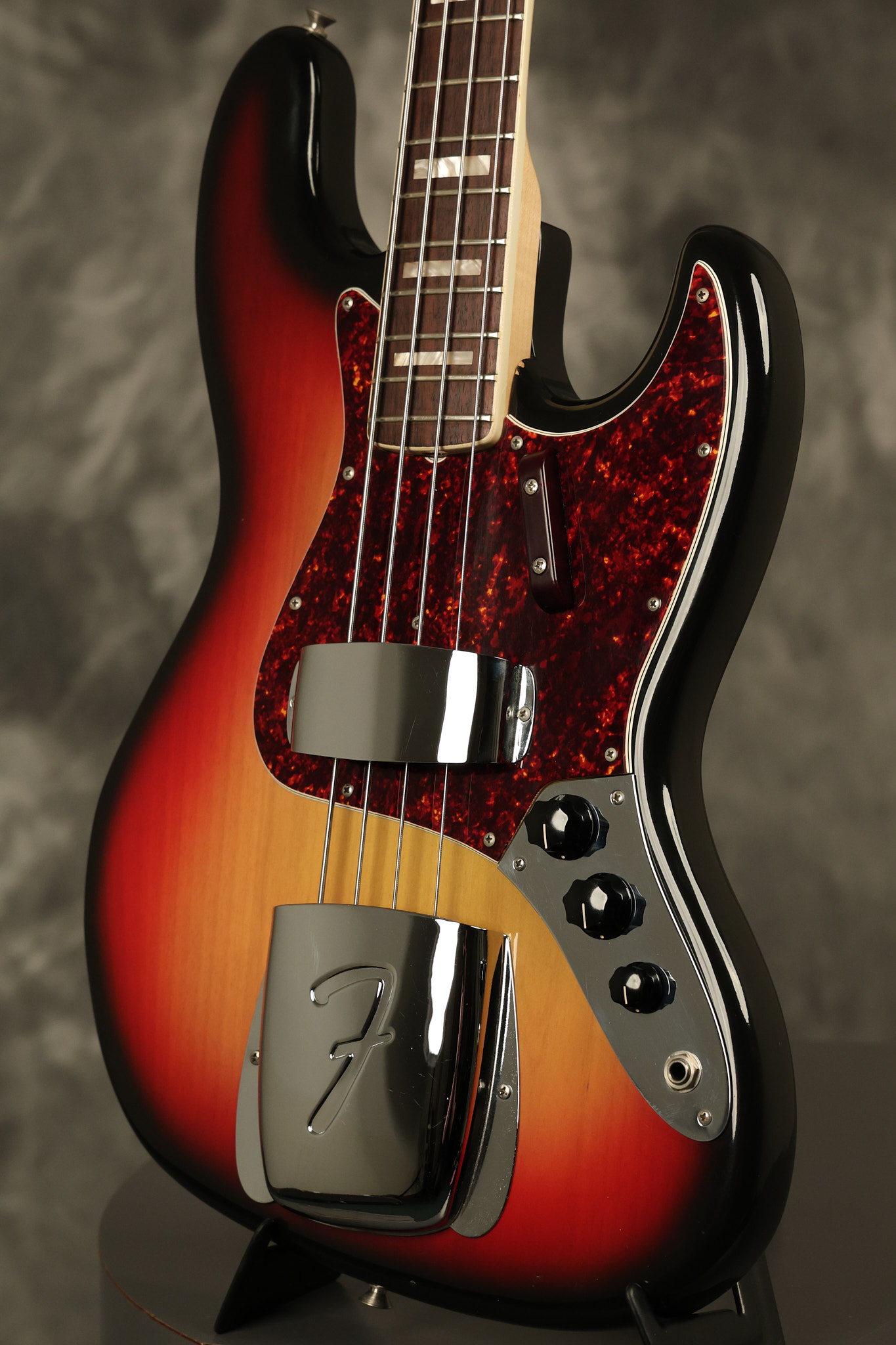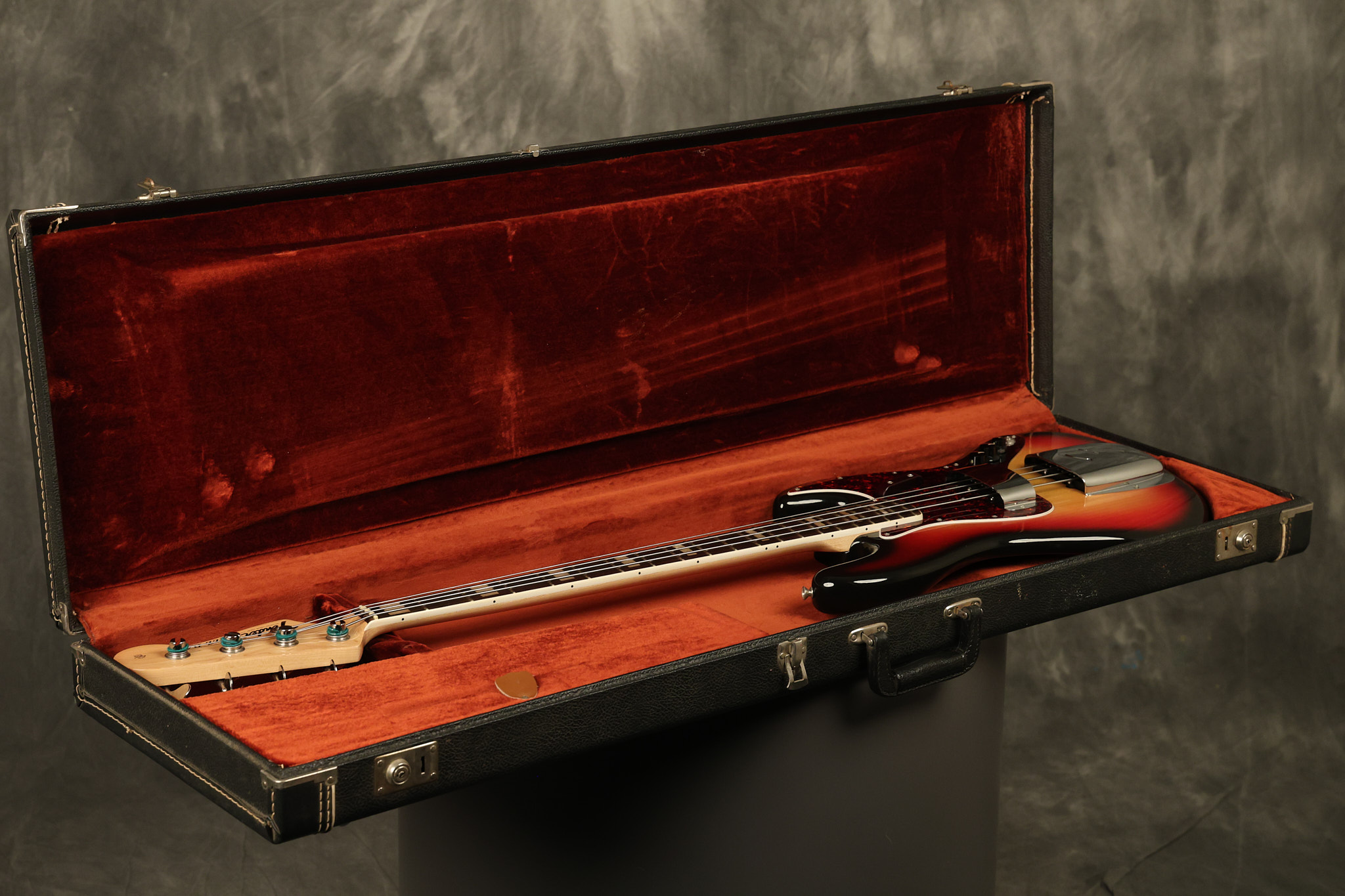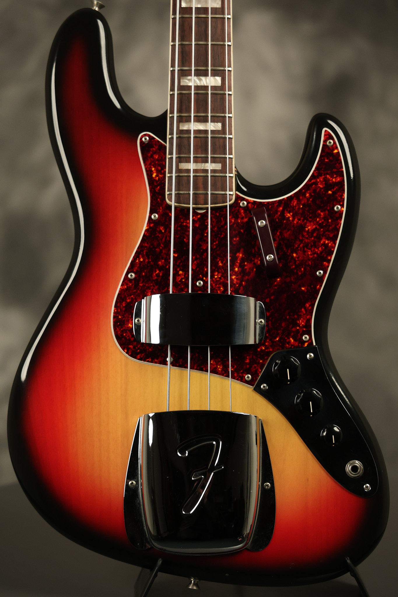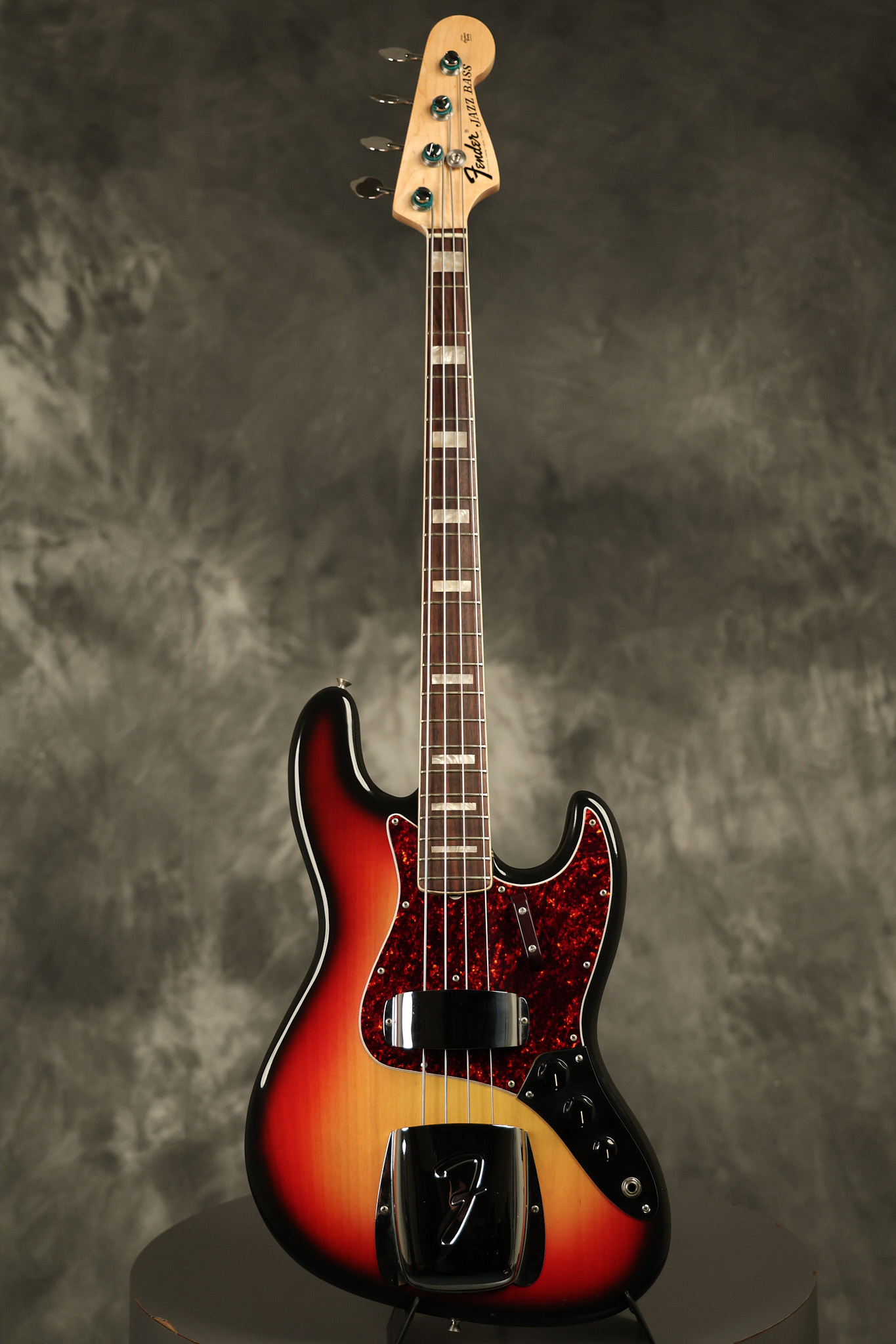 1973 Fender Jazz Bass in its original brilliant Sunburst finish. It has a great playing neck with great frets in a Rosewood fretboard. All parts are original and the pickups were professionally rewound by Tom Brantley. It's also 100% complete along with its two chrome covers. A slightly later Fender hardshell case is included. This Jazz Bass is in EXCELLENT condition with some very minor nicks + dings and other minor cosmetic wear. The bass itself remains structurally sound with no cracks, breaks or repairs. All electronics work and sound great.