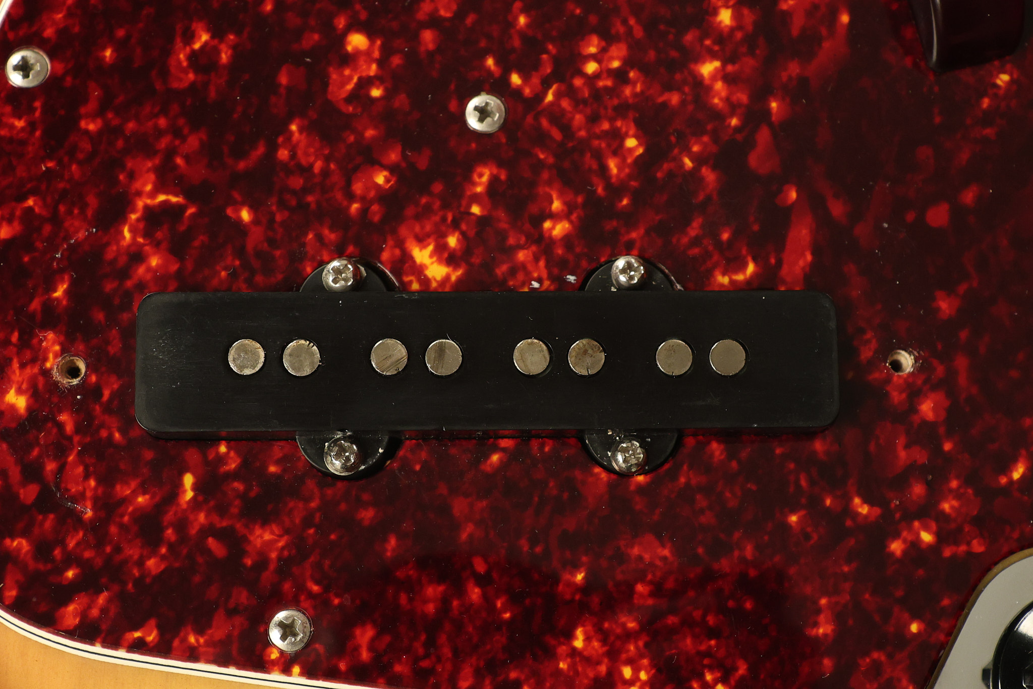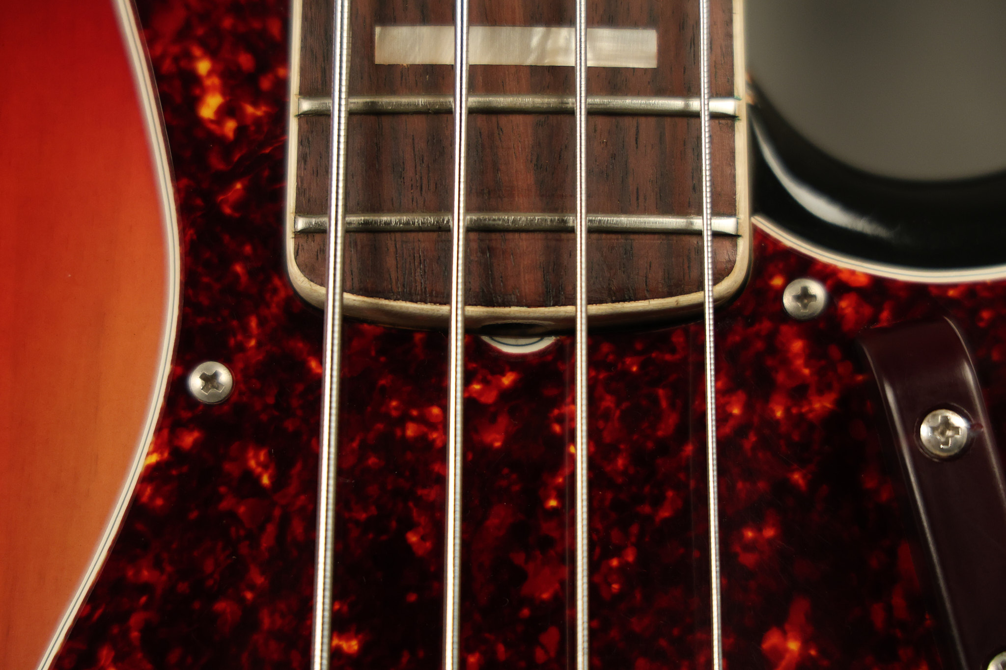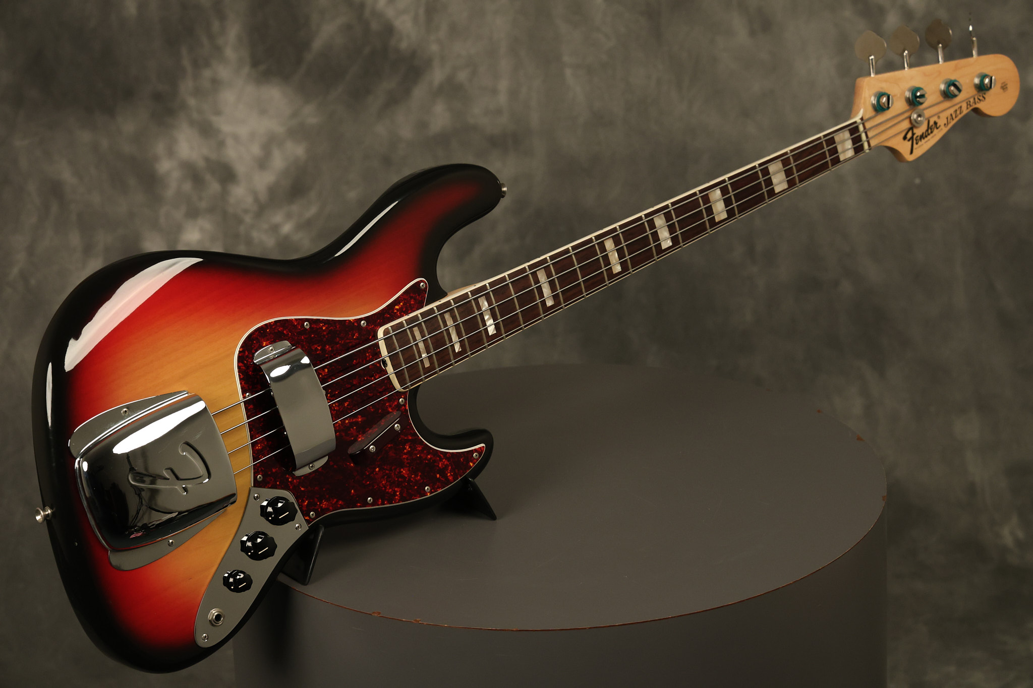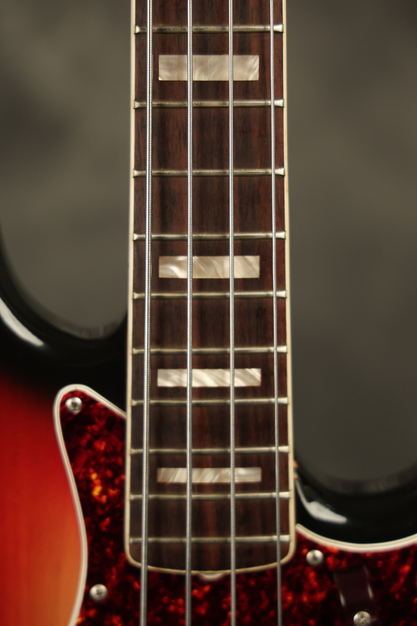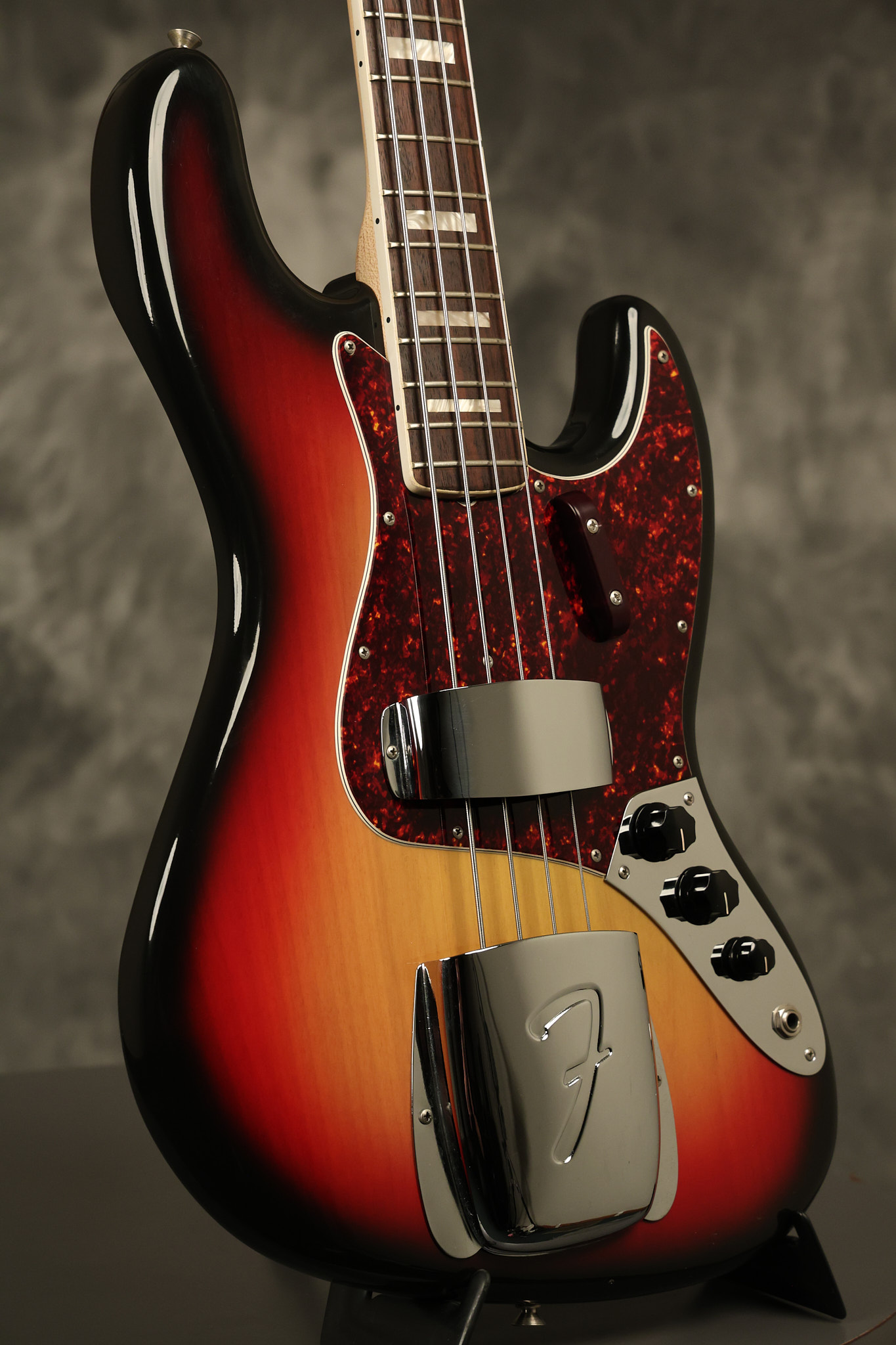 1973 Fender Jazz Bass in its original brilliant Sunburst finish. It has a great playing neck with great frets in a Rosewood fretboard. All parts are original and the pickups were professionally rewound by Tom Brantley. It's also 100% complete along with its two chrome covers. A slightly later Fender hardshell case is included. This Jazz Bass is in EXCELLENT condition with some very minor nicks + dings and other minor cosmetic wear. The bass itself remains structurally sound with no cracks, breaks or repairs. All electronics work and sound great.