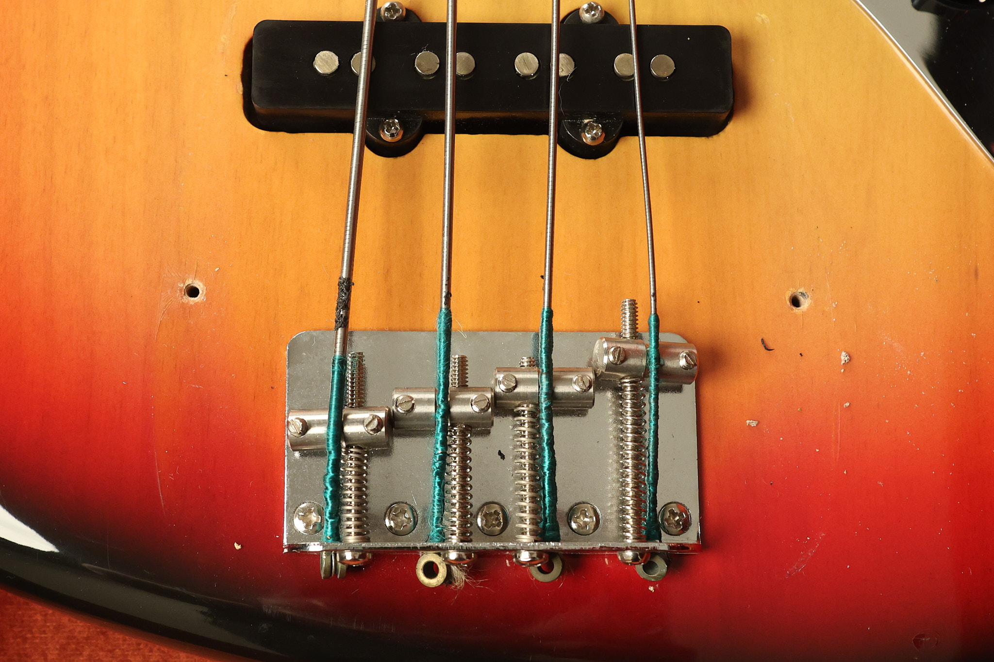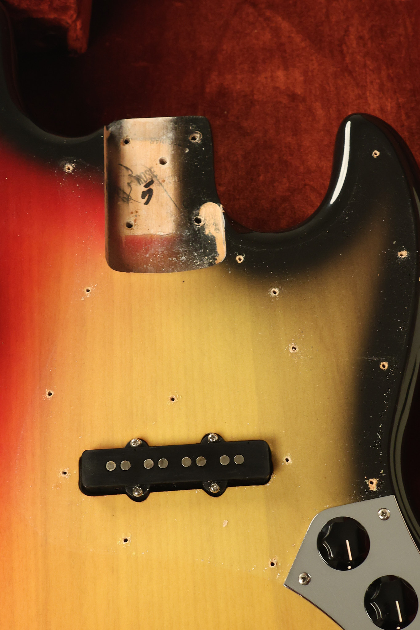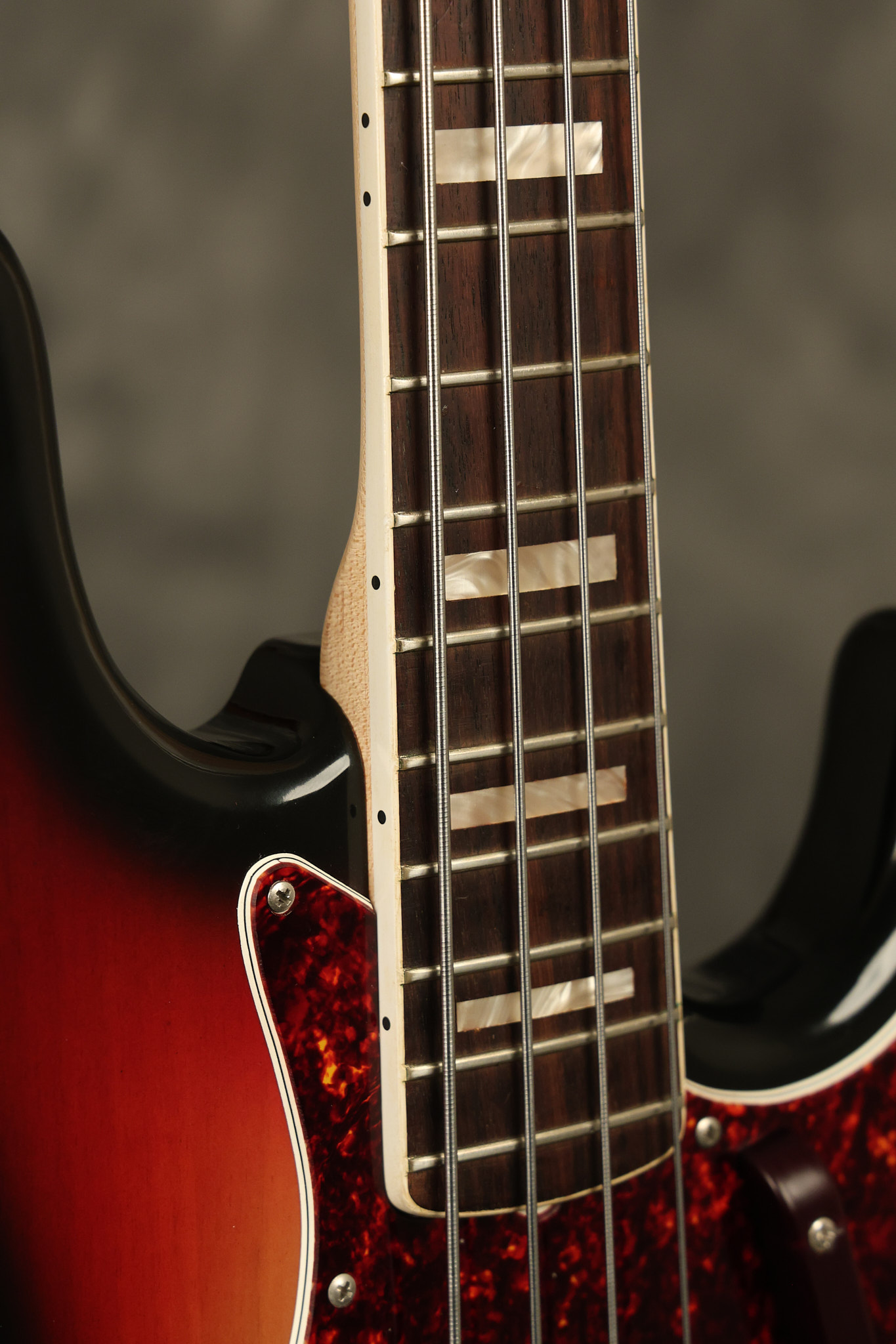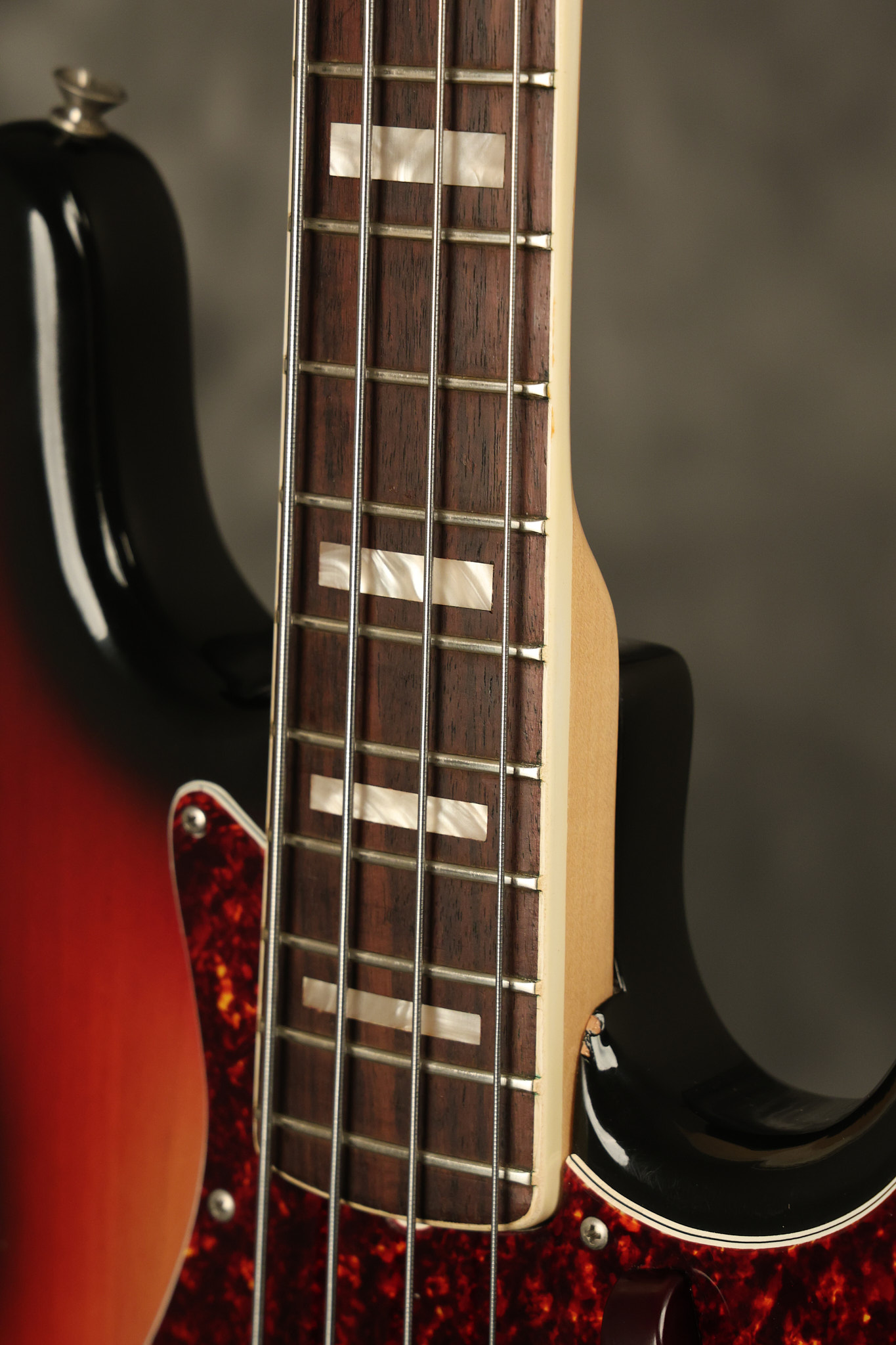 1973 Fender Jazz Bass in its original brilliant Sunburst finish. It has a great playing neck with great frets in a Rosewood fretboard. All parts are original and the pickups were professionally rewound by Tom Brantley. It's also 100% complete along with its two chrome covers. A slightly later Fender hardshell case is included. This Jazz Bass is in EXCELLENT condition with some very minor nicks + dings and other minor cosmetic wear. The bass itself remains structurally sound with no cracks, breaks or repairs. All electronics work and sound great.