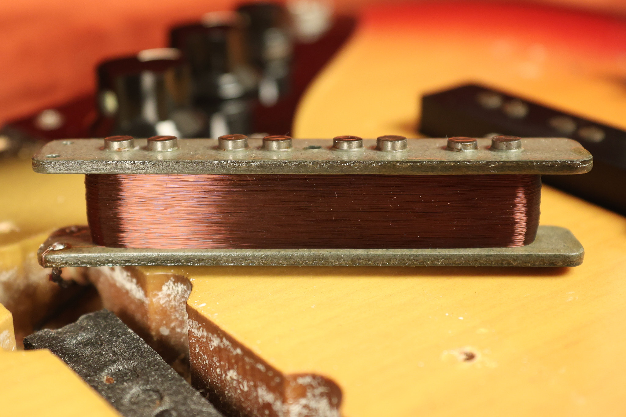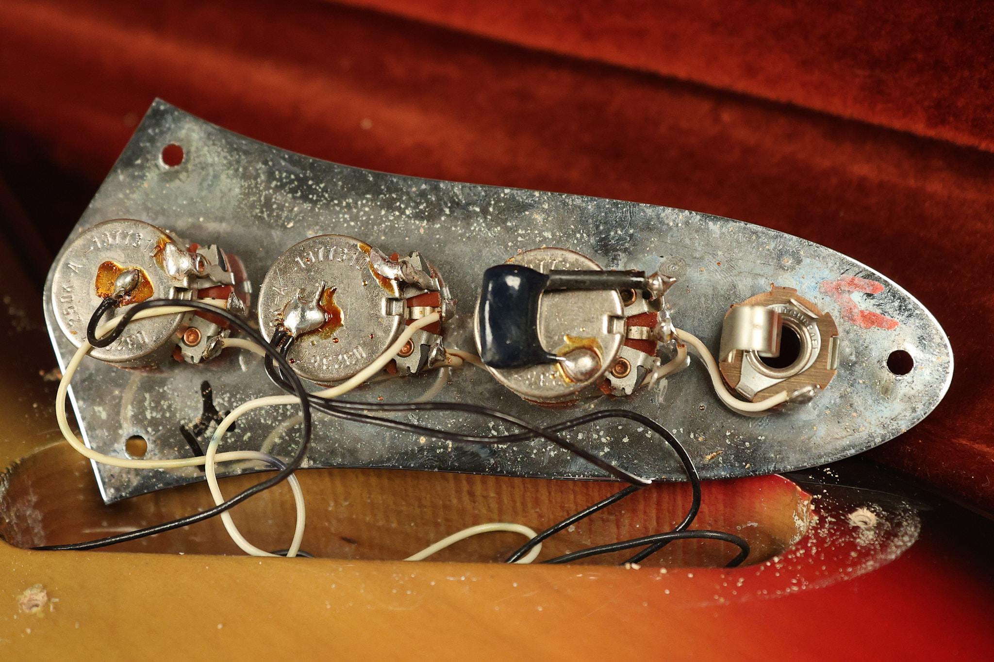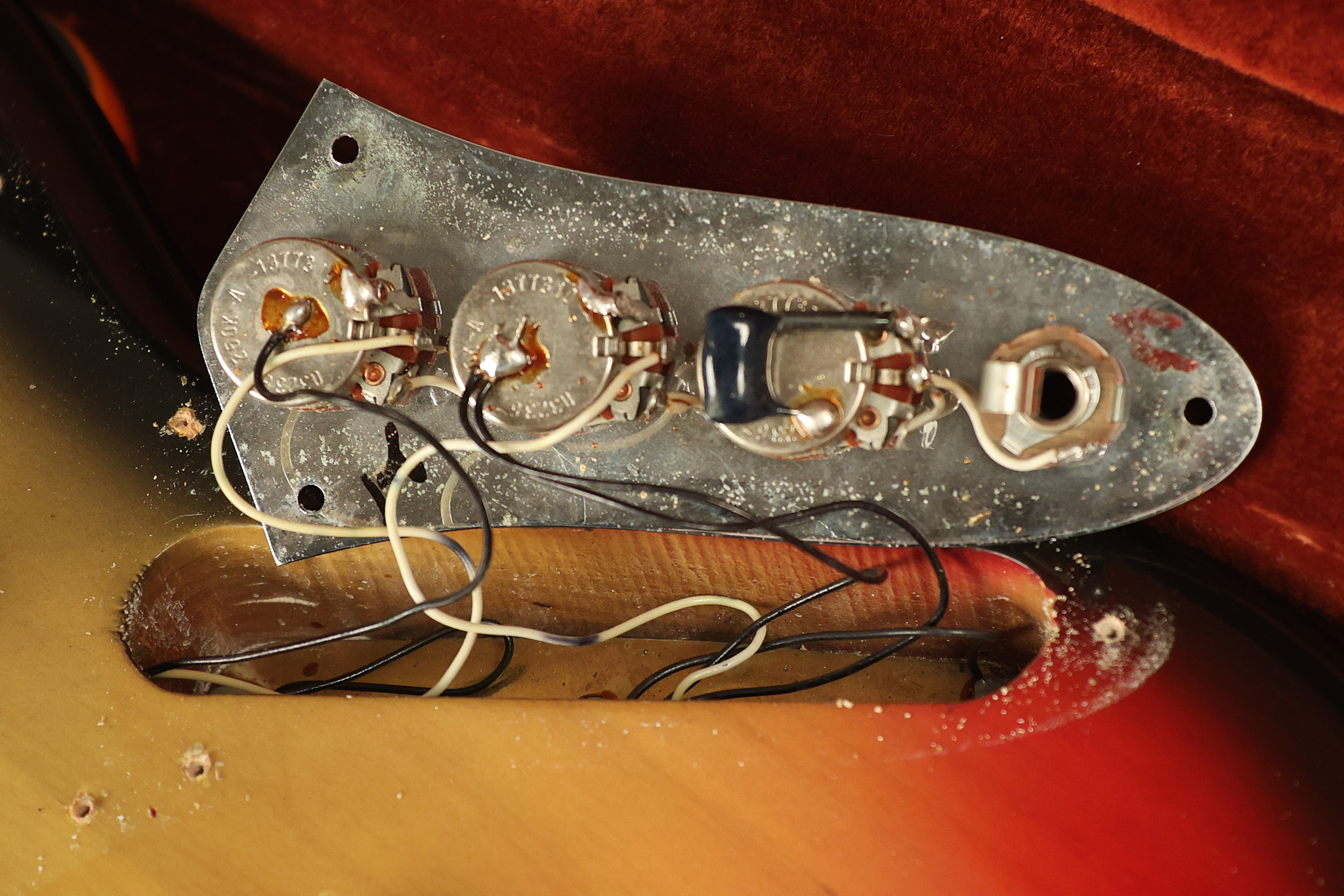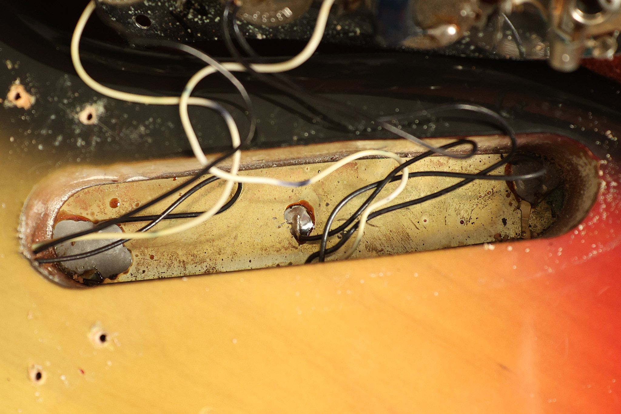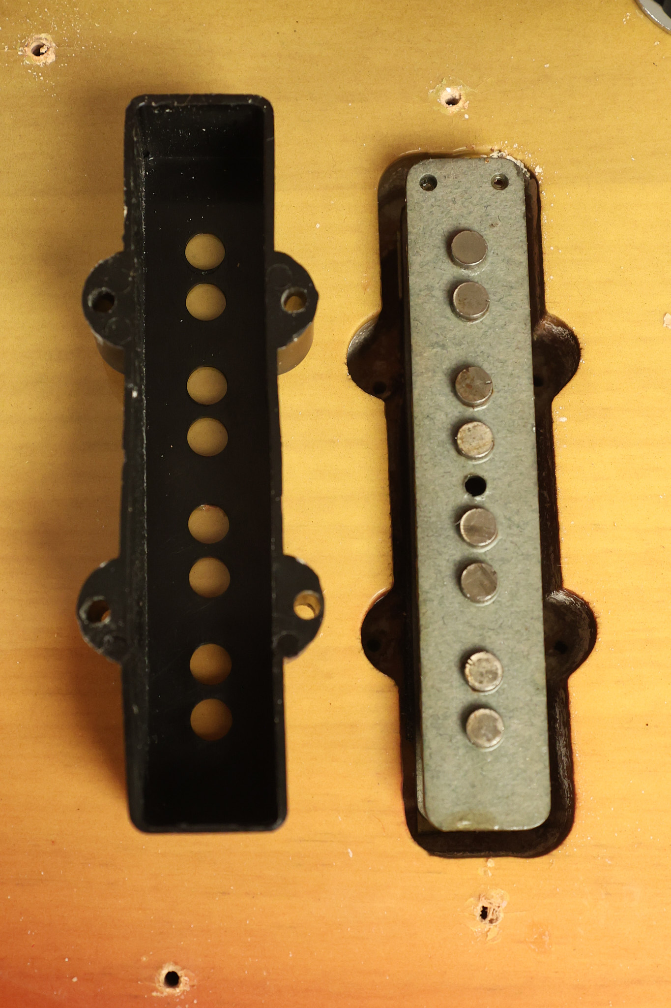 1973 Fender Jazz Bass in its original brilliant Sunburst finish. It has a great playing neck with great frets in a Rosewood fretboard. All parts are original and the pickups were professionally rewound by Tom Brantley. It's also 100% complete along with its two chrome covers. A slightly later Fender hardshell case is included. This Jazz Bass is in EXCELLENT condition with some very minor nicks + dings and other minor cosmetic wear. The bass itself remains structurally sound with no cracks, breaks or repairs. All electronics work and sound great.