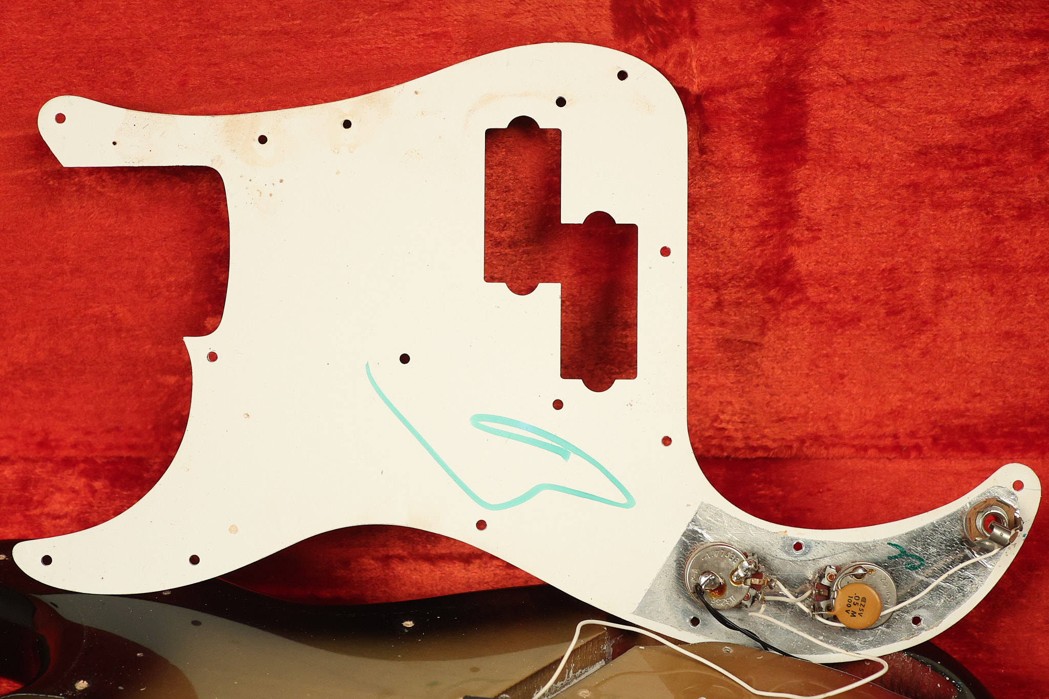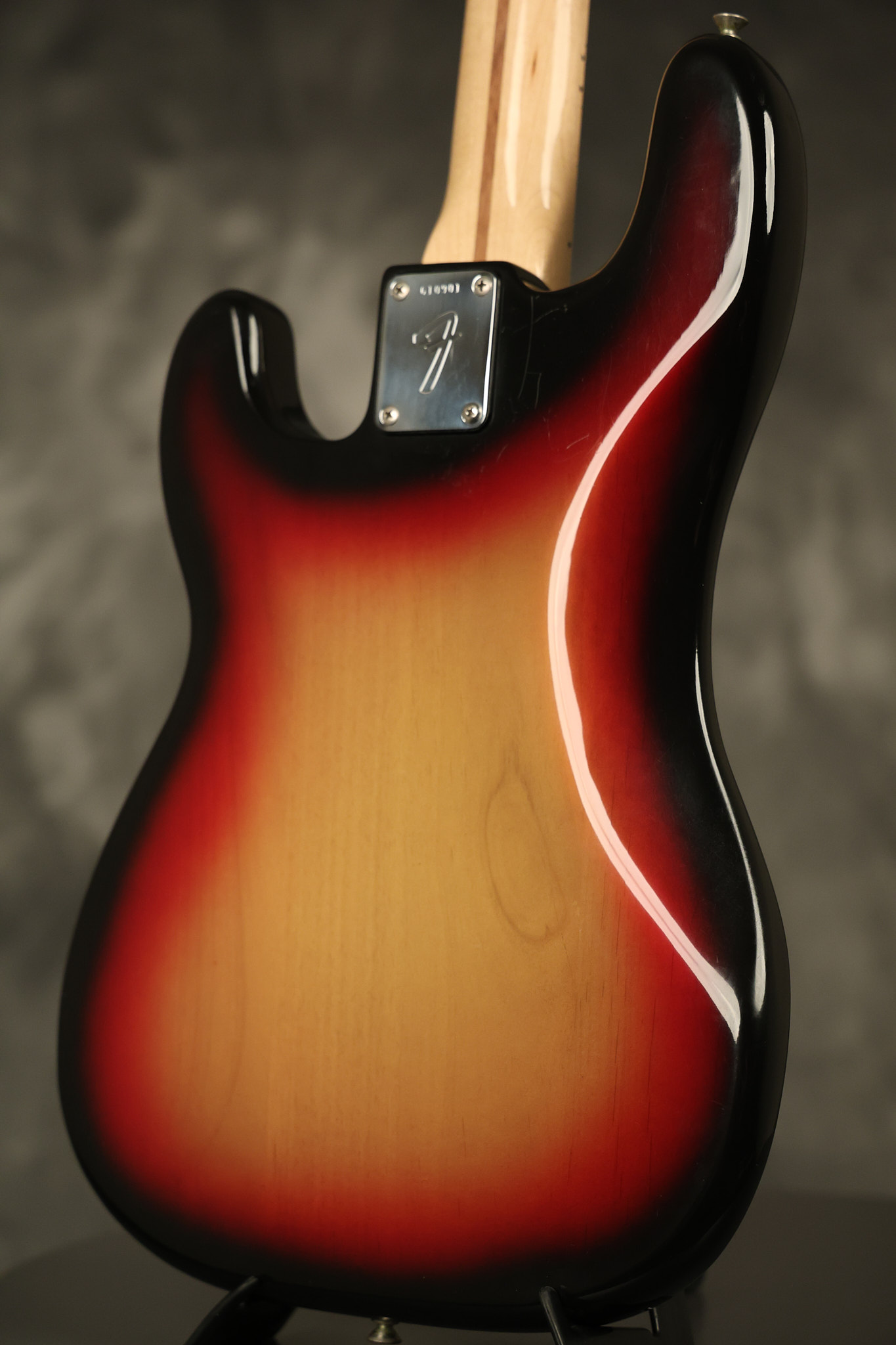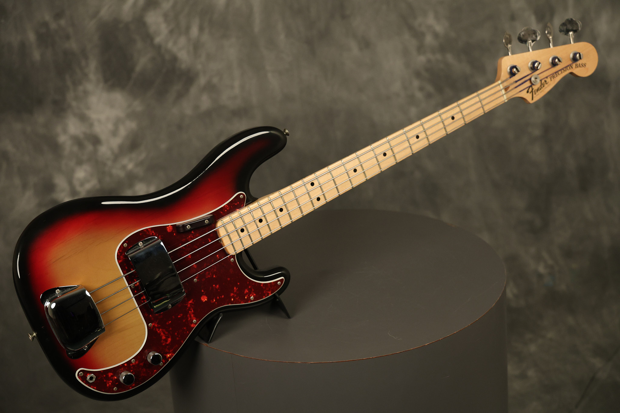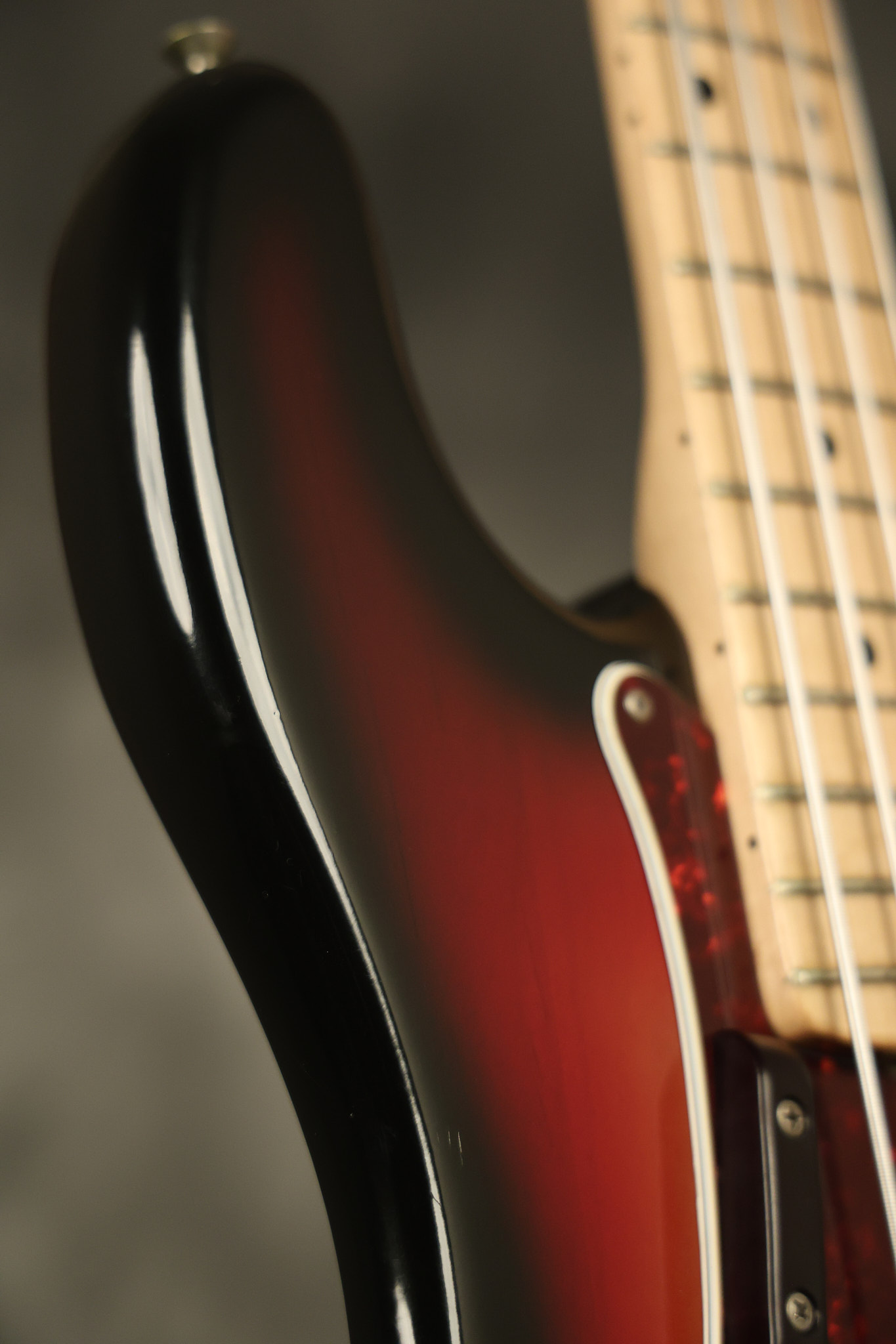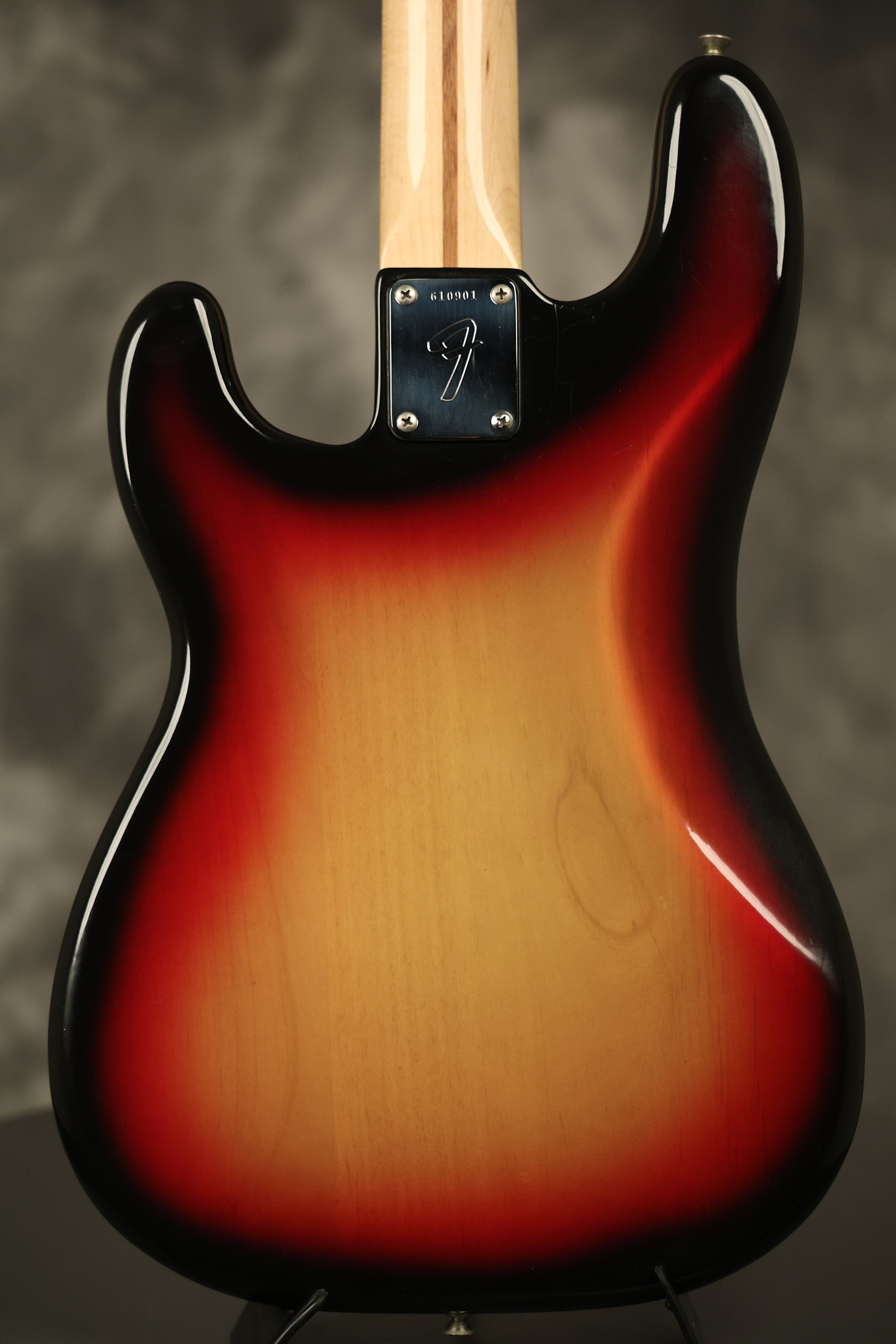 1974 Fender Precision Bass in its original Sunburst finish. It has a great playing neck with great frets. A shim has been placed at the top end of the neck pocket to allow more adjustment range for the bridge saddles. It's all original and 100% complete including both chrome covers, original owner's manual and the original hardshell case. It's in EXCELLENT condition with only some very minor nicks + dings and other very minor cosmetic wear including one tiny pickguard crack near the input jack. The guitar itself remains structurally sound with no cracks, breaks or repairs. All electronics work and sound great as it provides an authentic '70's P-Bass tone. The weight is 8 lbs. 6.2 oz without the chrome covers.