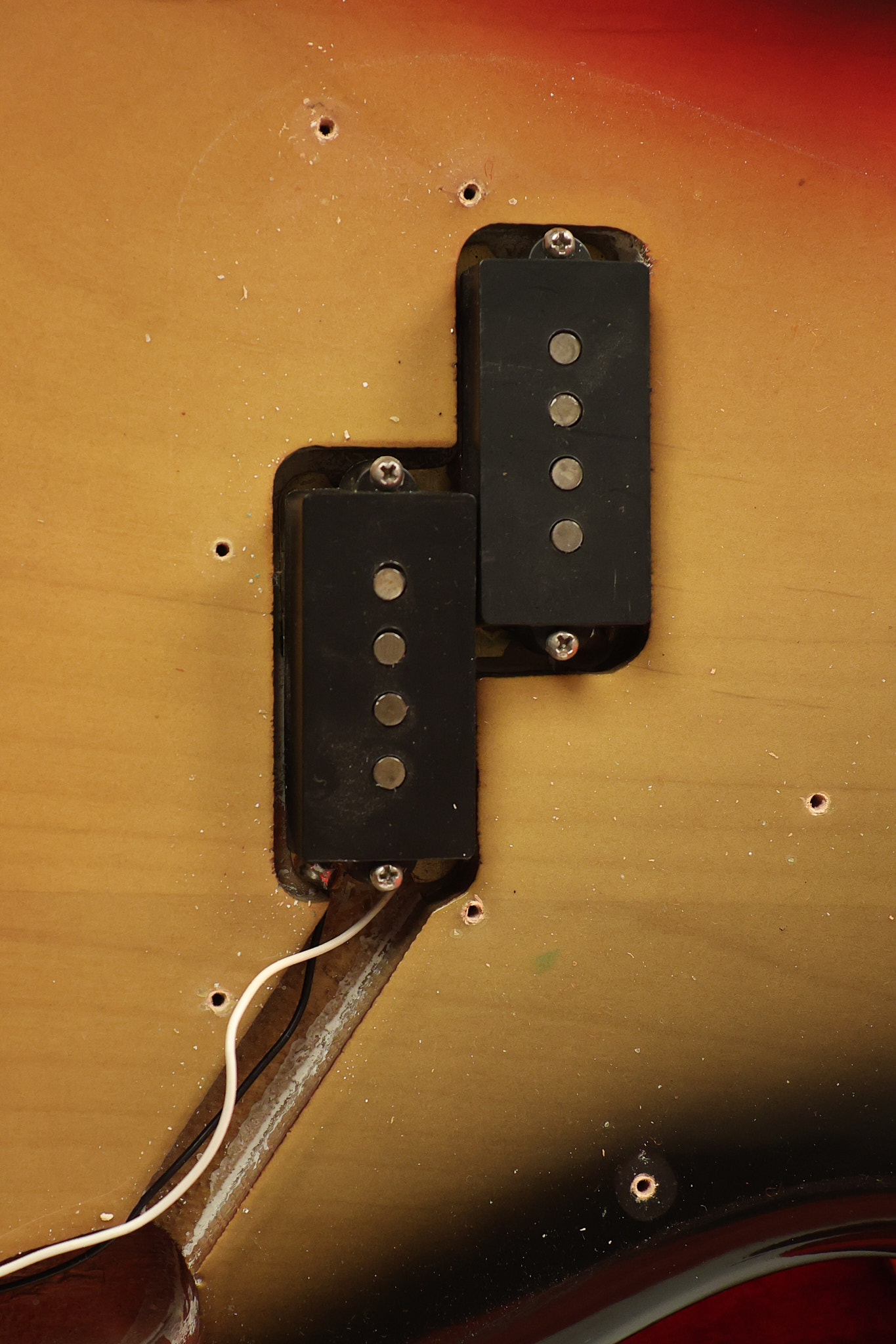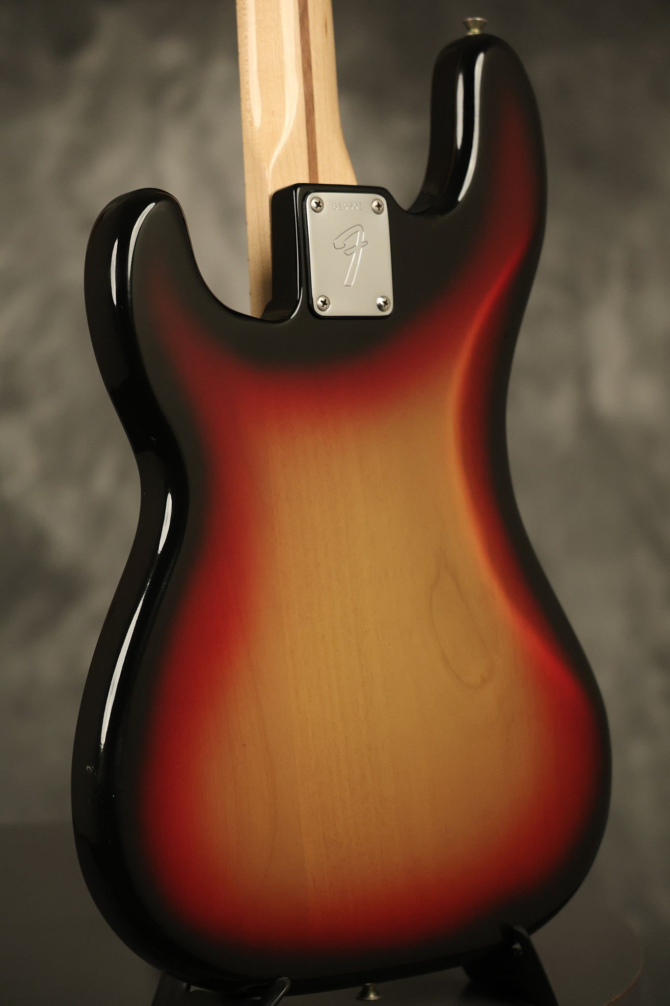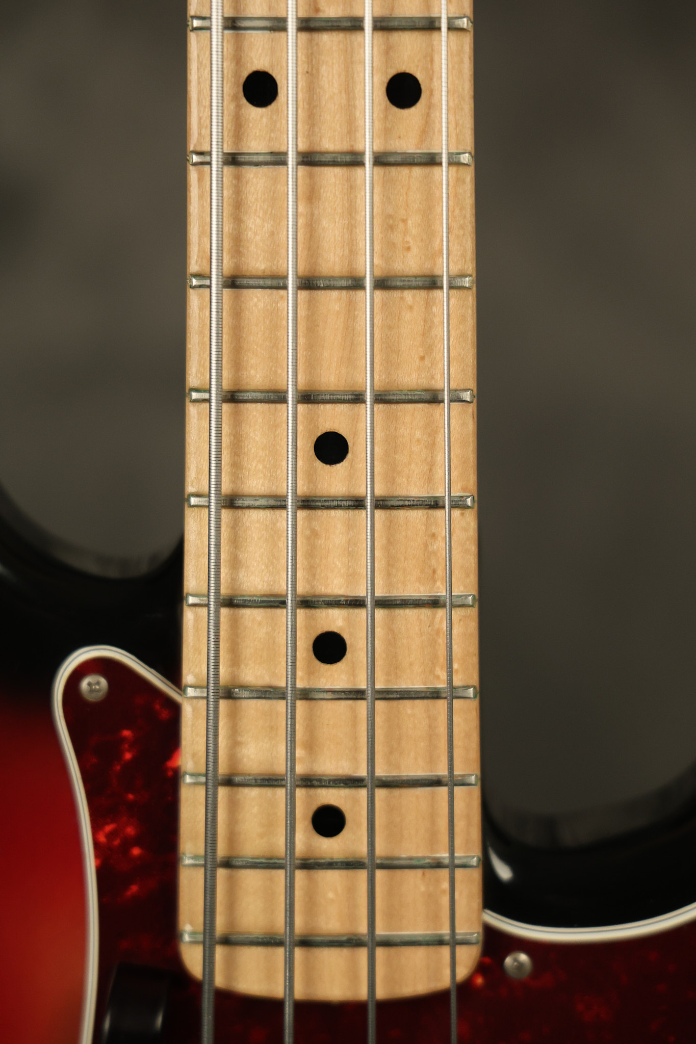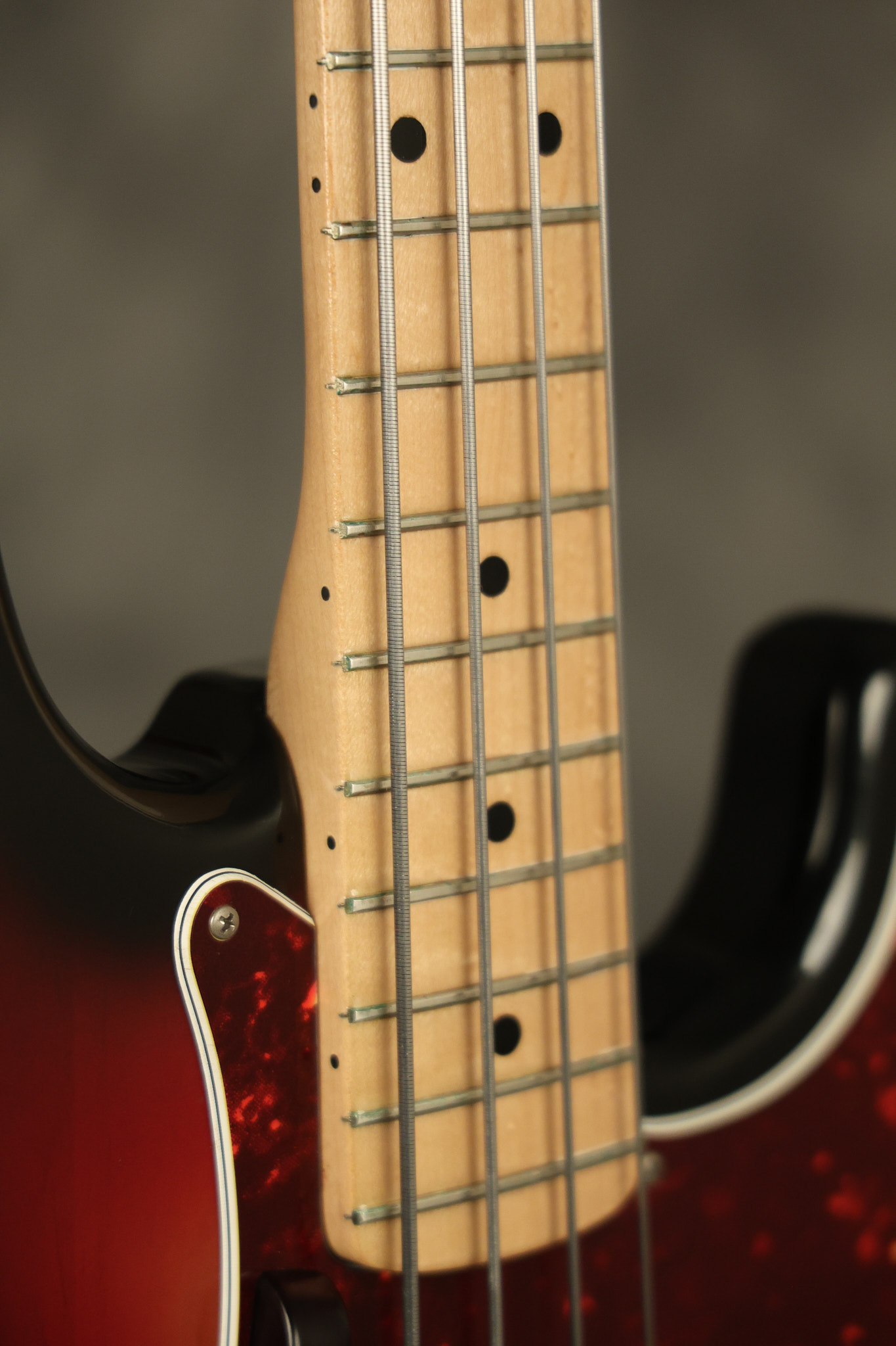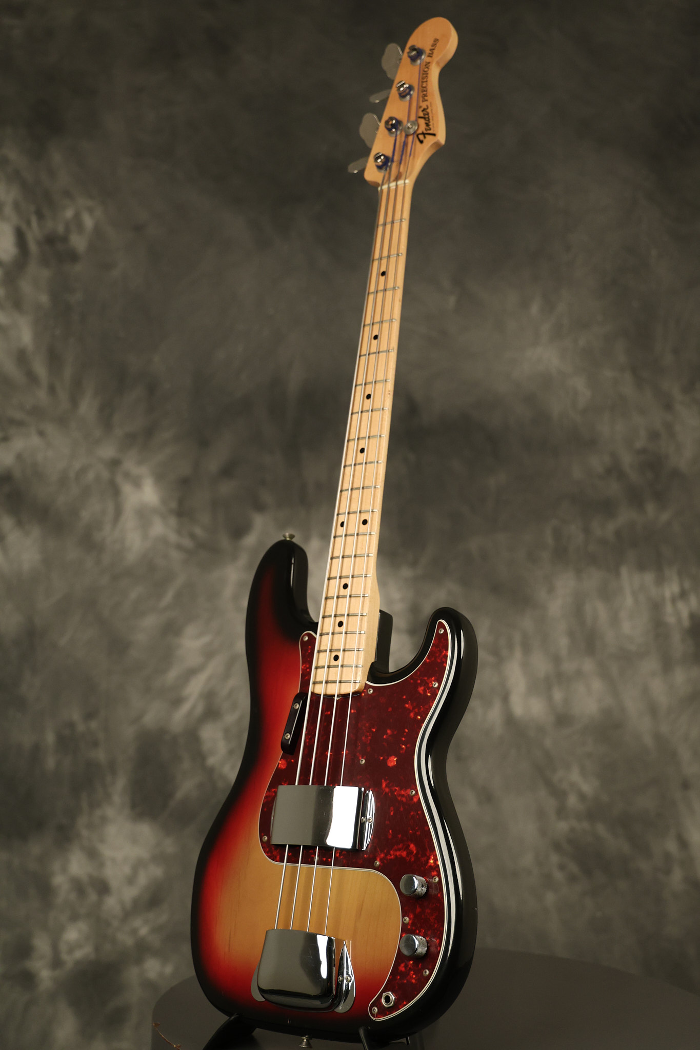 1974 Fender Precision Bass in its original Sunburst finish. It has a great playing neck with great frets. A shim has been placed at the top end of the neck pocket to allow more adjustment range for the bridge saddles. It's all original and 100% complete including both chrome covers, original owner's manual and the original hardshell case. It's in EXCELLENT condition with only some very minor nicks + dings and other very minor cosmetic wear including one tiny pickguard crack near the input jack. The guitar itself remains structurally sound with no cracks, breaks or repairs. All electronics work and sound great as it provides an authentic '70's P-Bass tone. The weight is 8 lbs. 6.2 oz without the chrome covers.