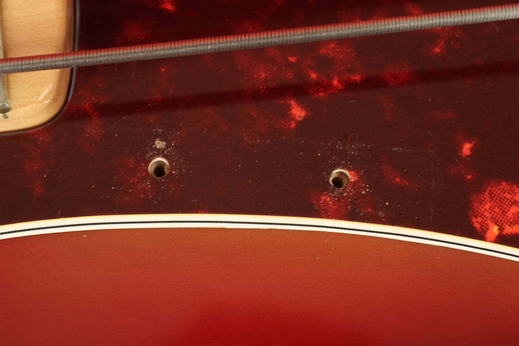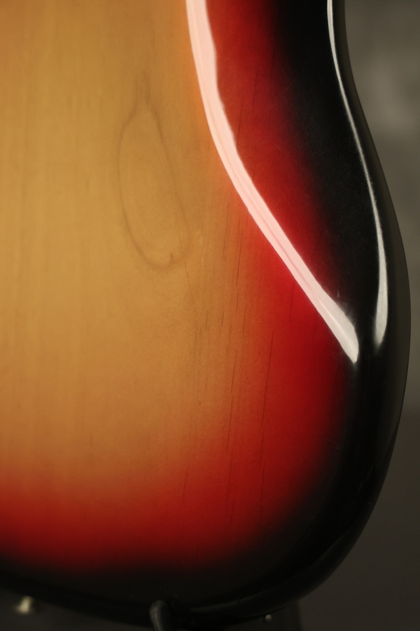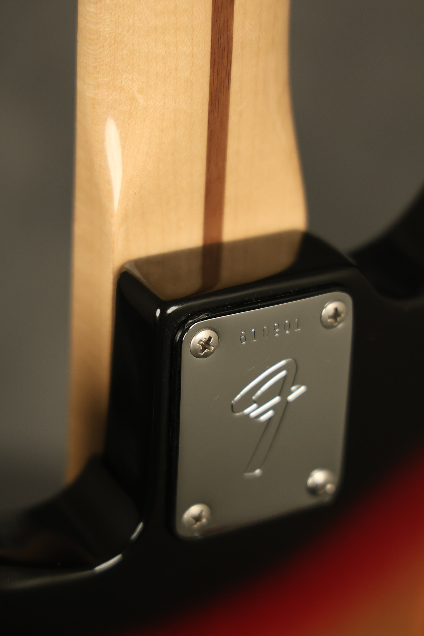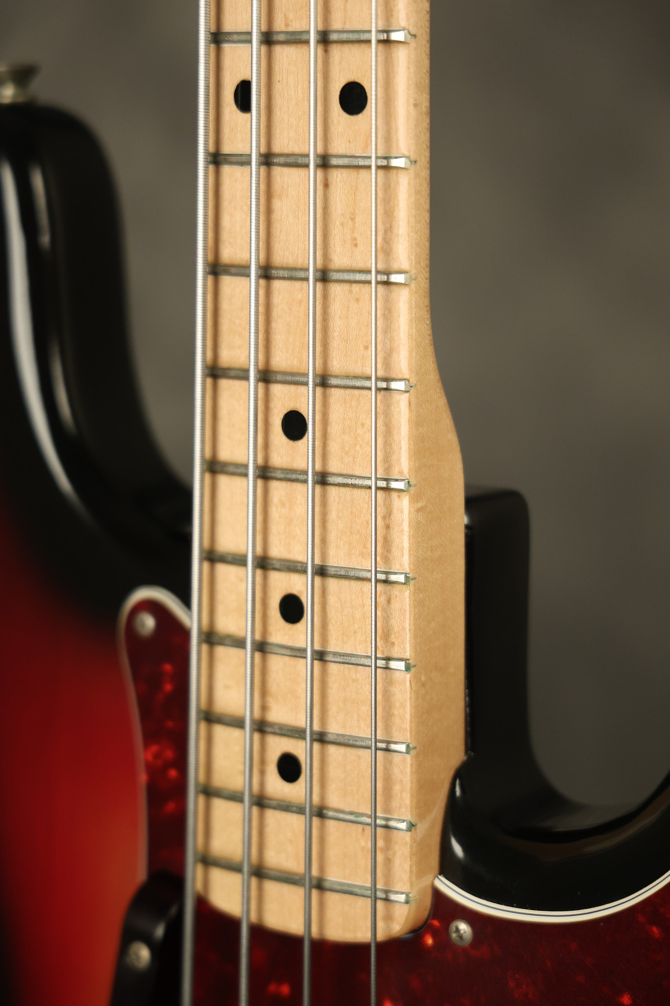 1974 Fender Precision Bass in its original Sunburst finish. It has a great playing neck with great frets. A shim has been placed at the top end of the neck pocket to allow more adjustment range for the bridge saddles. It's all original and 100% complete including both chrome covers, original owner's manual and the original hardshell case. It's in EXCELLENT condition with only some very minor nicks + dings and other very minor cosmetic wear including one tiny pickguard crack near the input jack. The guitar itself remains structurally sound with no cracks, breaks or repairs. All electronics work and sound great as it provides an authentic '70's P-Bass tone. The weight is 8 lbs. 6.2 oz without the chrome covers.