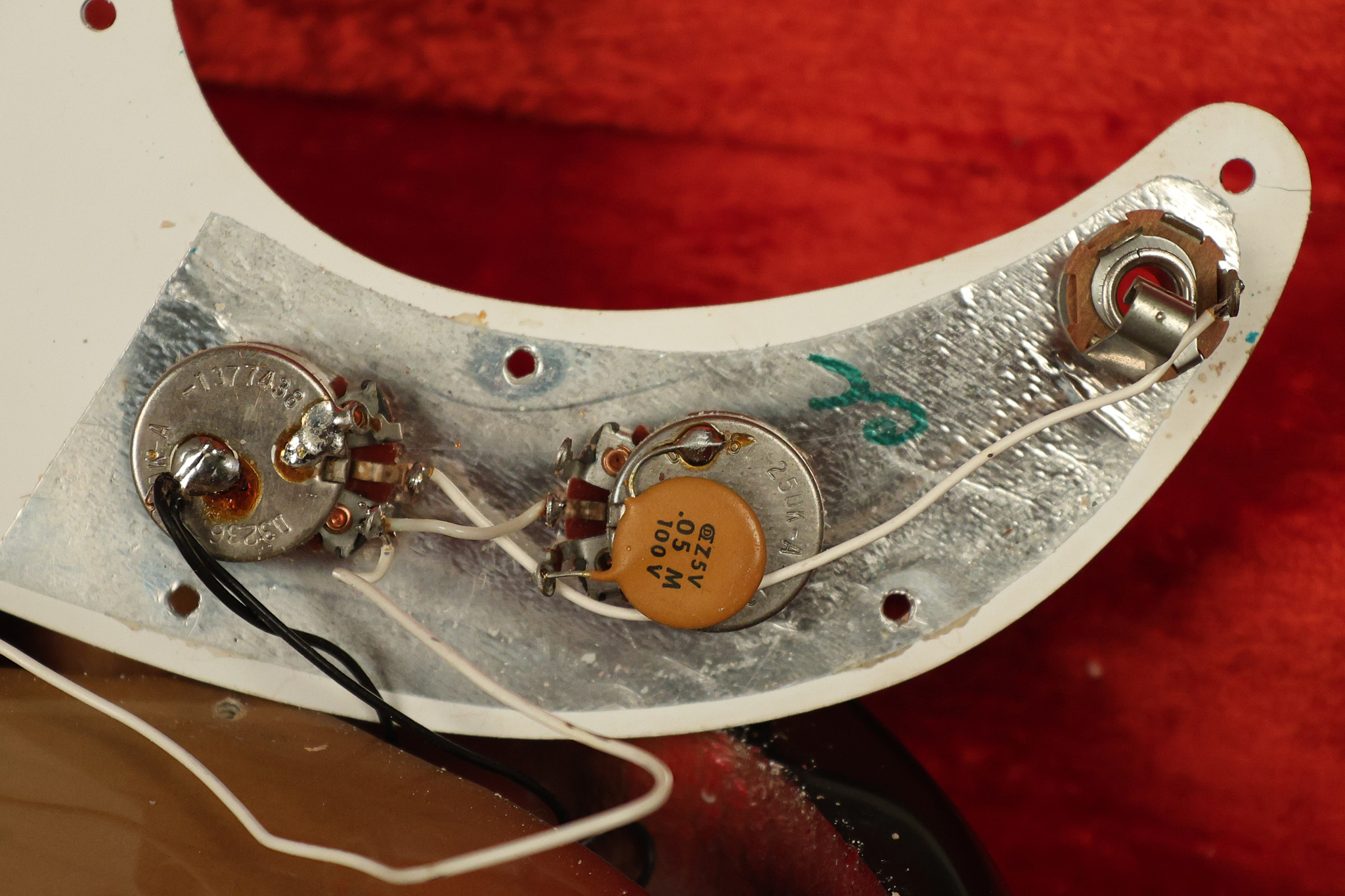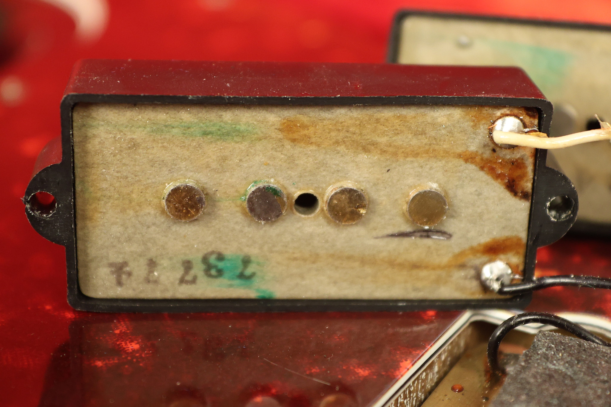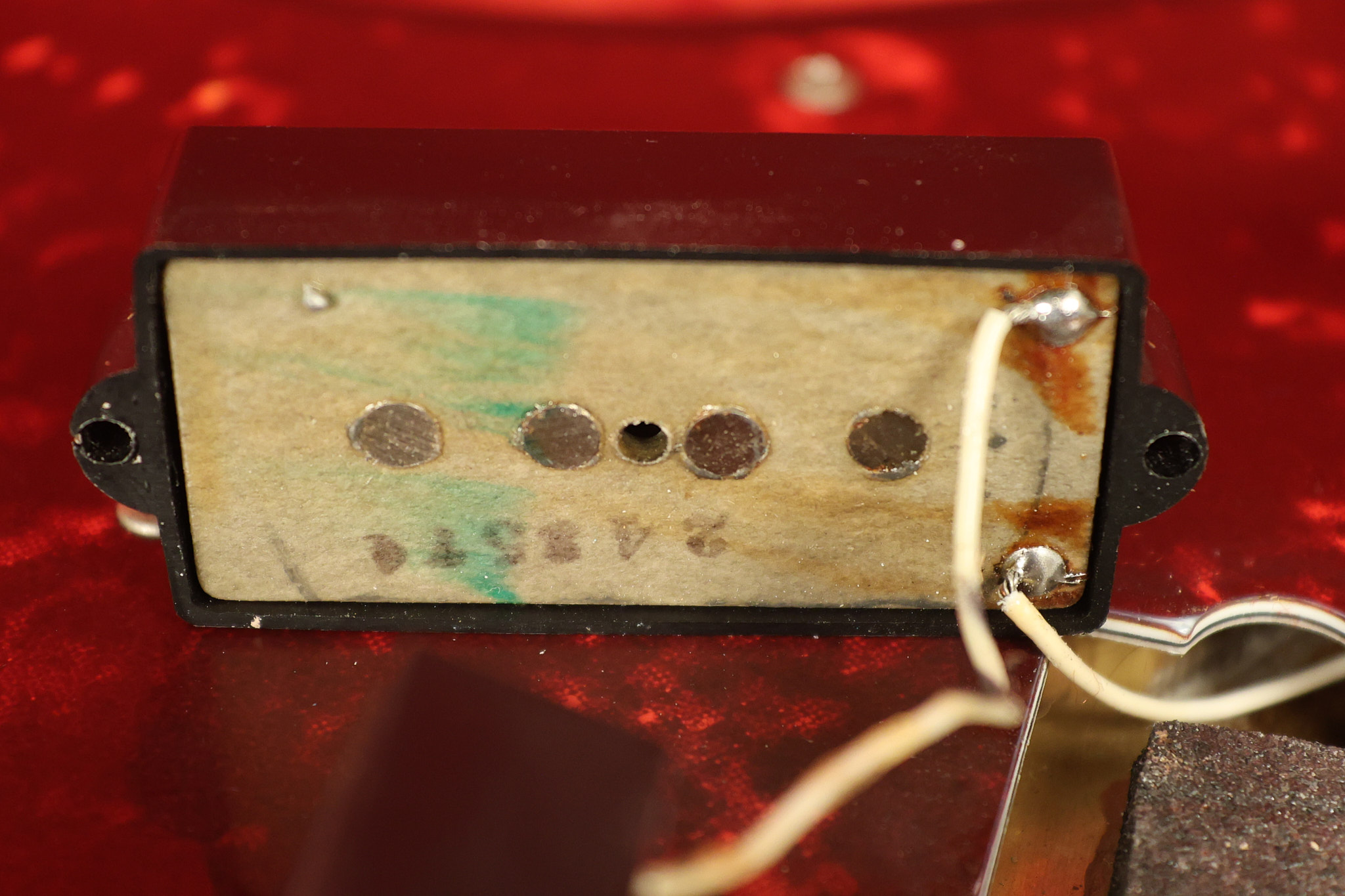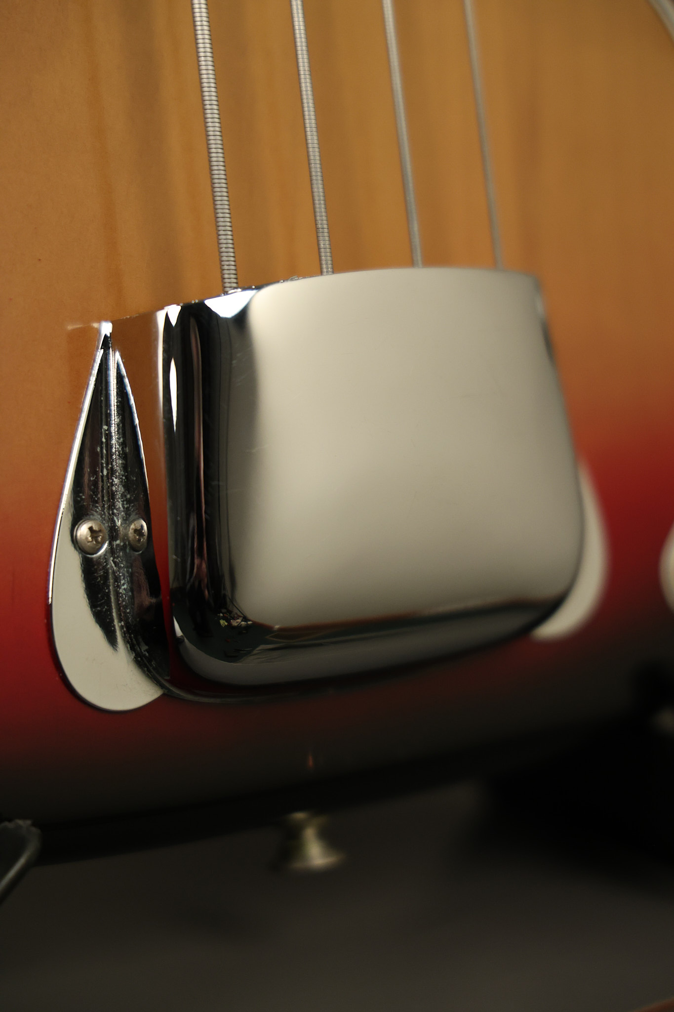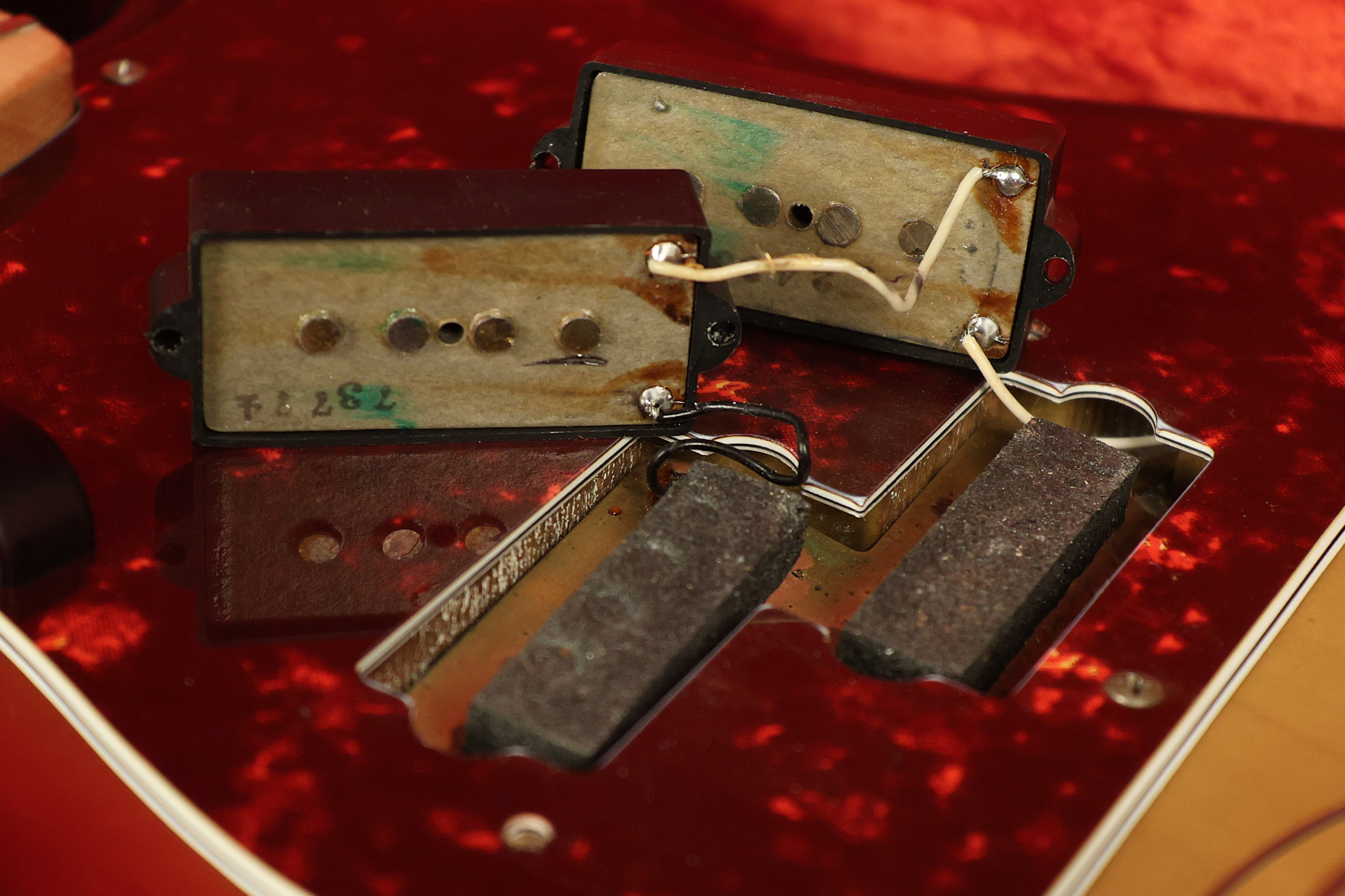 1974 Fender Precision Bass in its original Sunburst finish. It has a great playing neck with great frets. A shim has been placed at the top end of the neck pocket to allow more adjustment range for the bridge saddles. It's all original and 100% complete including both chrome covers, original owner's manual and the original hardshell case. It's in EXCELLENT condition with only some very minor nicks + dings and other very minor cosmetic wear including one tiny pickguard crack near the input jack. The guitar itself remains structurally sound with no cracks, breaks or repairs. All electronics work and sound great as it provides an authentic '70's P-Bass tone. The weight is 8 lbs. 6.2 oz without the chrome covers.