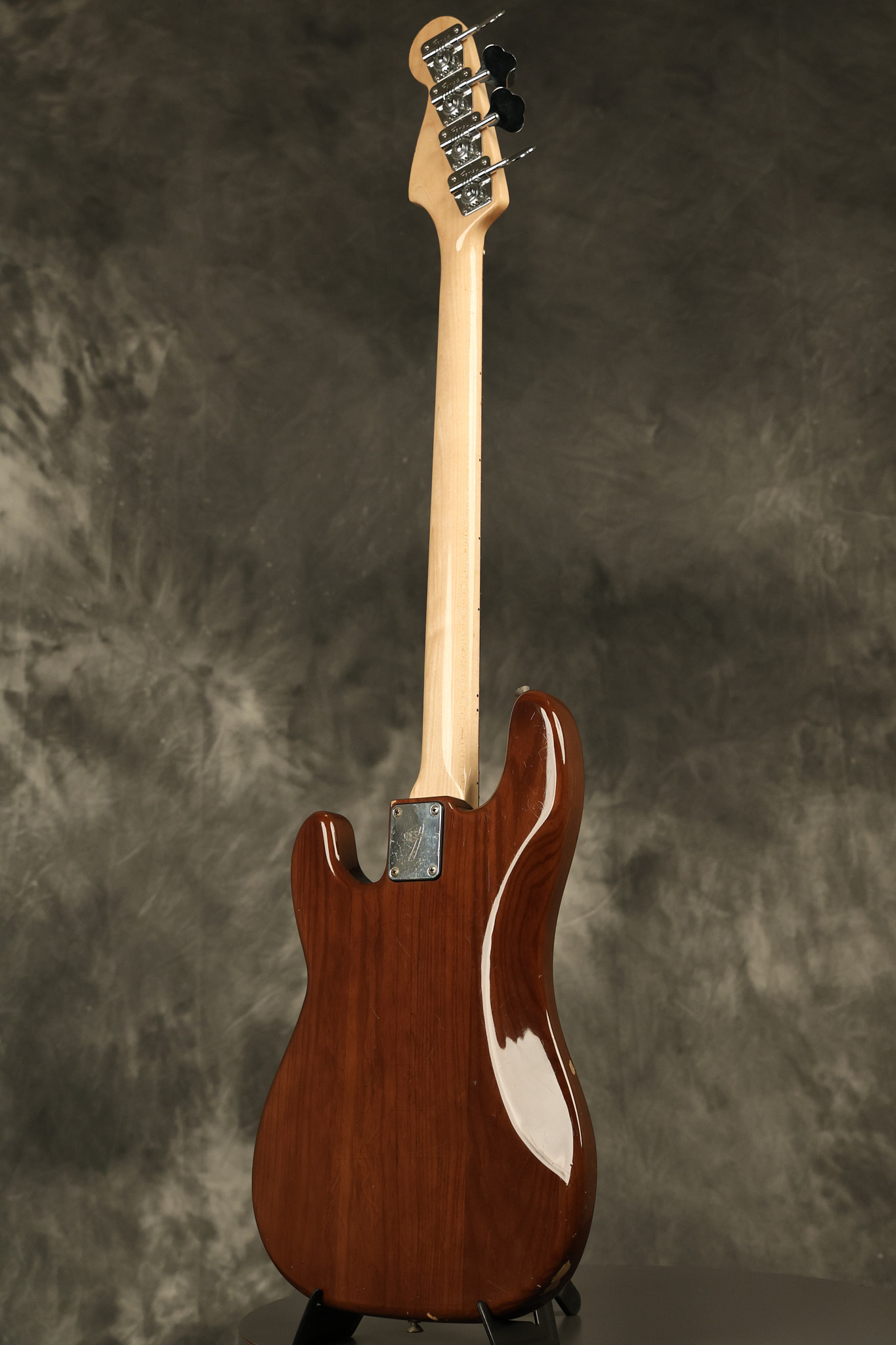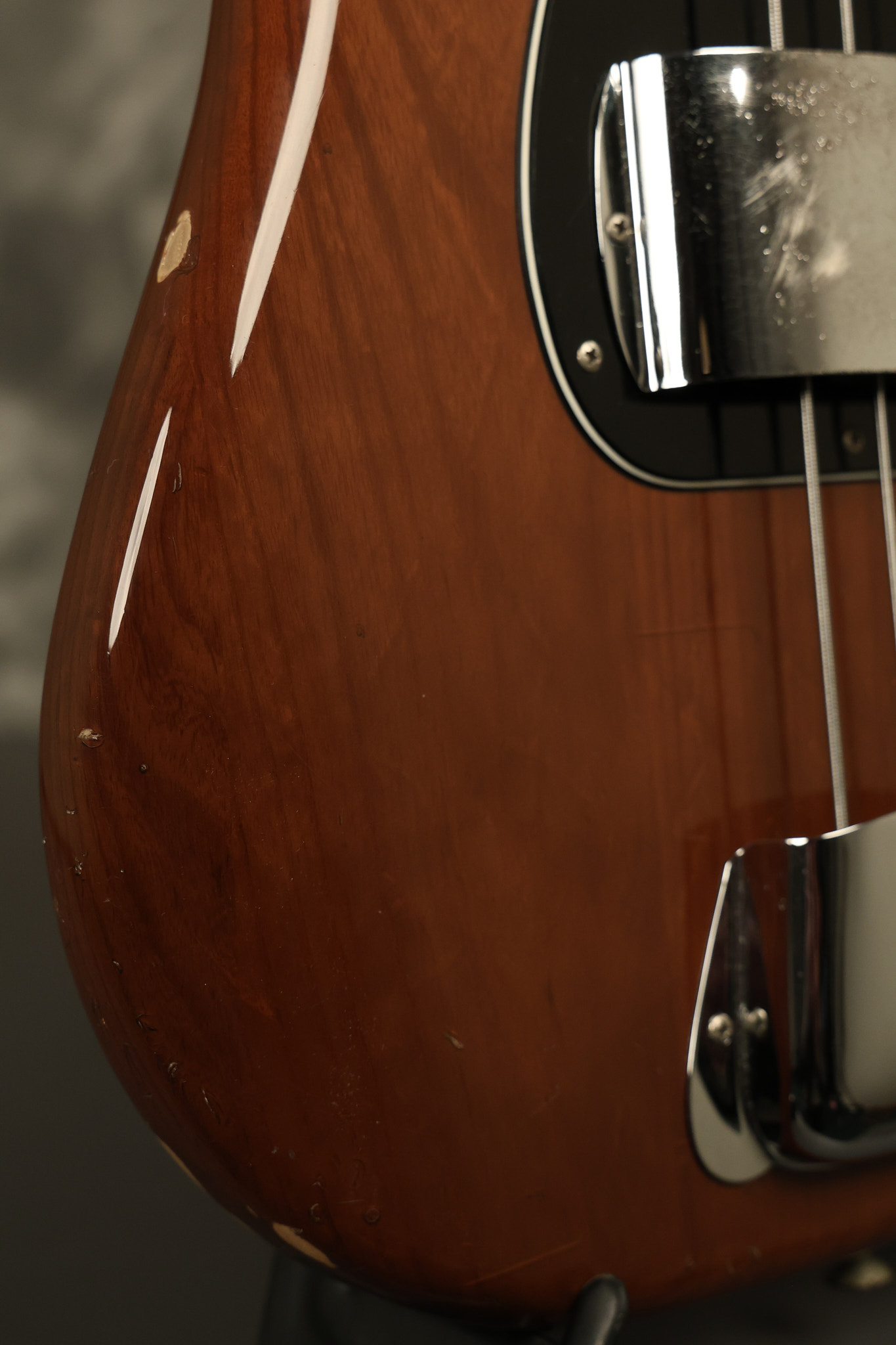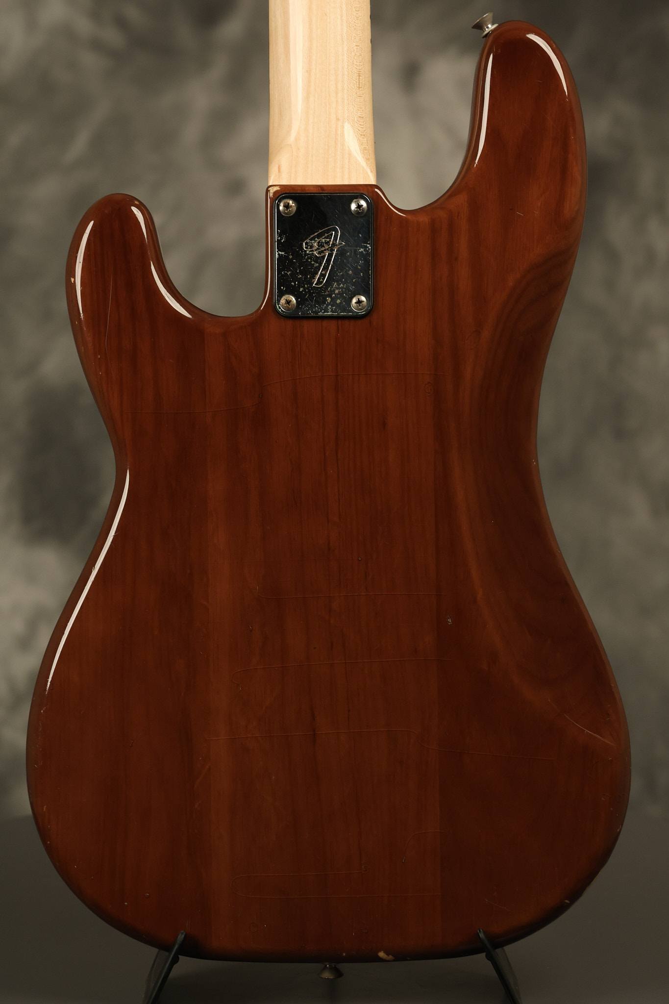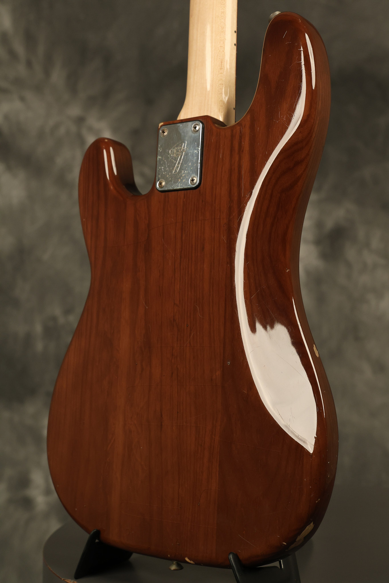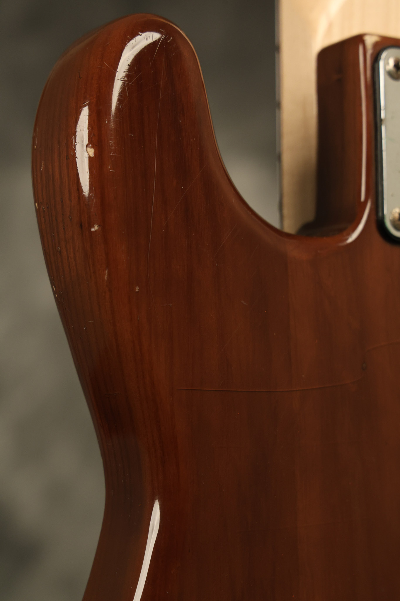1978 Fender Precision Bass in its original Walnut finish. It has a good playing neck with great frets. It's all original with the exception of the jack and a couple of wires. The treble side pickup has been professionally rewound. It's also 100% complete along with both chrome covers and the original hardshell case. There are nicks + dings, a few finish cracks on the back of the body and other cosmetic wear. The bass itself remains structurally sound with no cracks, breaks or repairs. All electronics work and sound great as it provides an authentic '70's P-Bass tone.