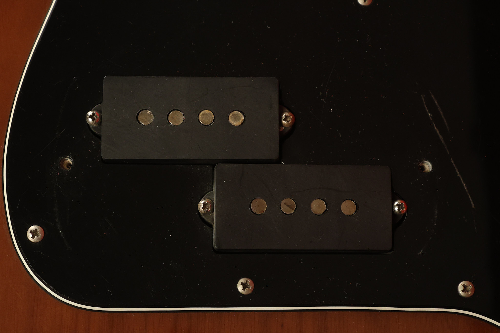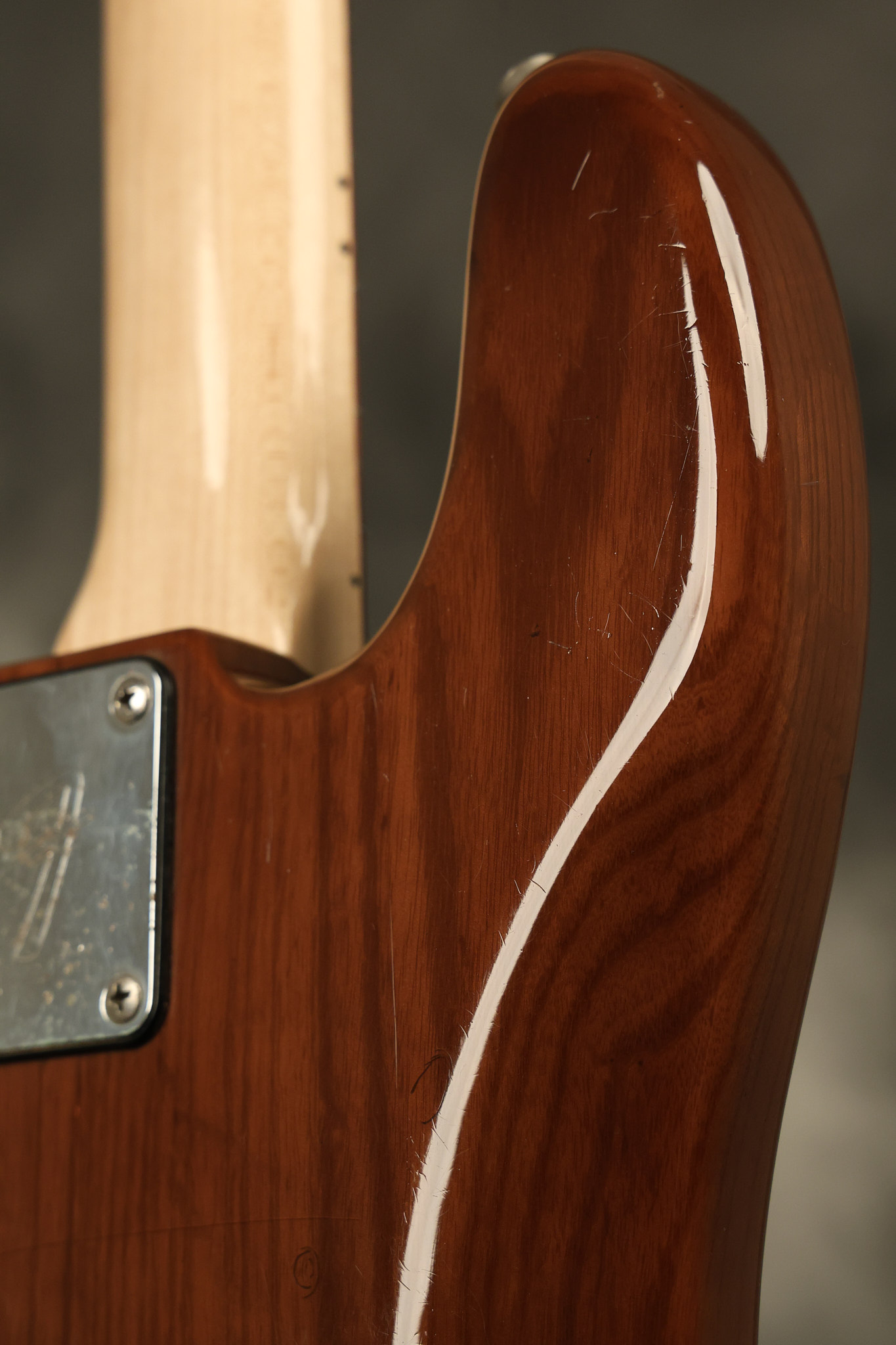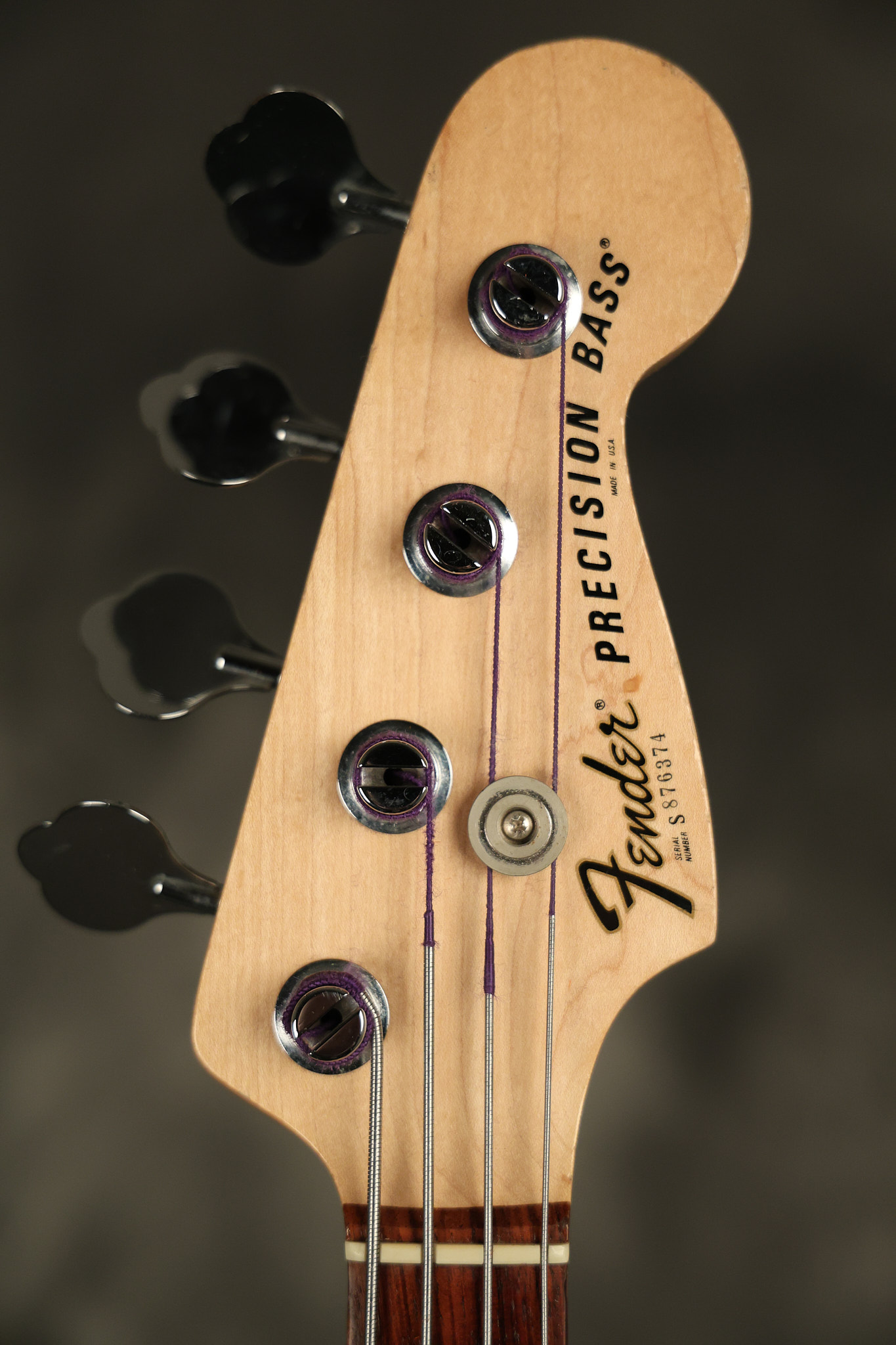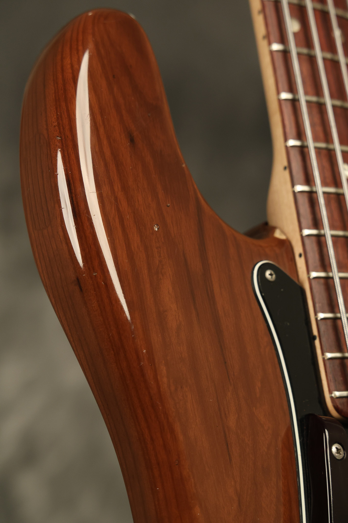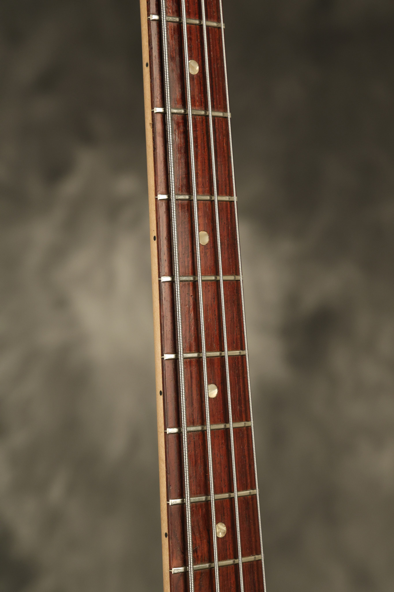 1978 Fender Precision Bass in its original Walnut finish. It has a good playing neck with great frets. It's all original with the exception of the jack and a couple of wires. The treble side pickup has been professionally rewound. It's also 100% complete along with both chrome covers and the original hardshell case. There are nicks + dings, a few finish cracks on the back of the body and other cosmetic wear. The bass itself remains structurally sound with no cracks, breaks or repairs. All electronics work and sound great as it provides an authentic '70's P-Bass tone.