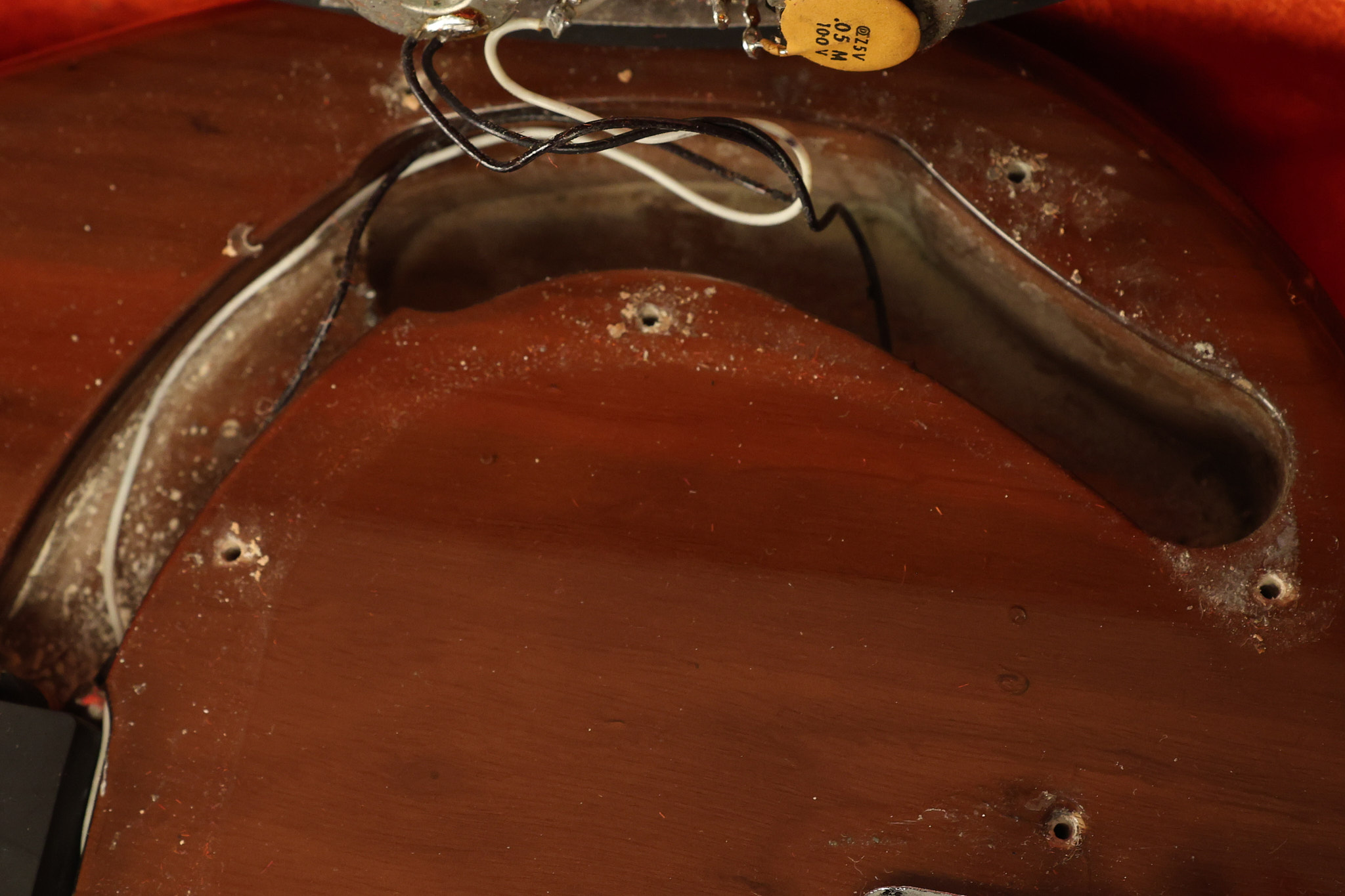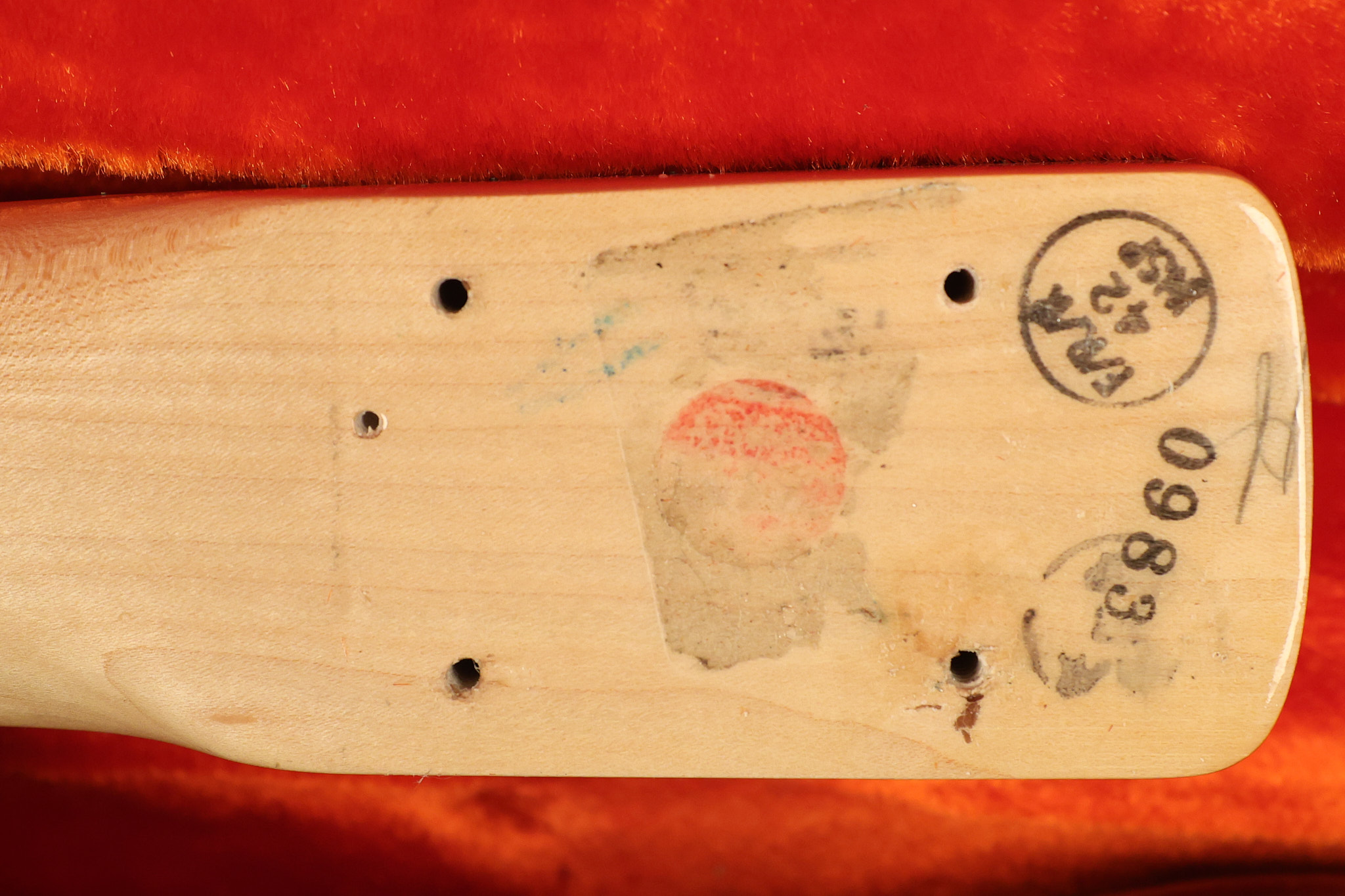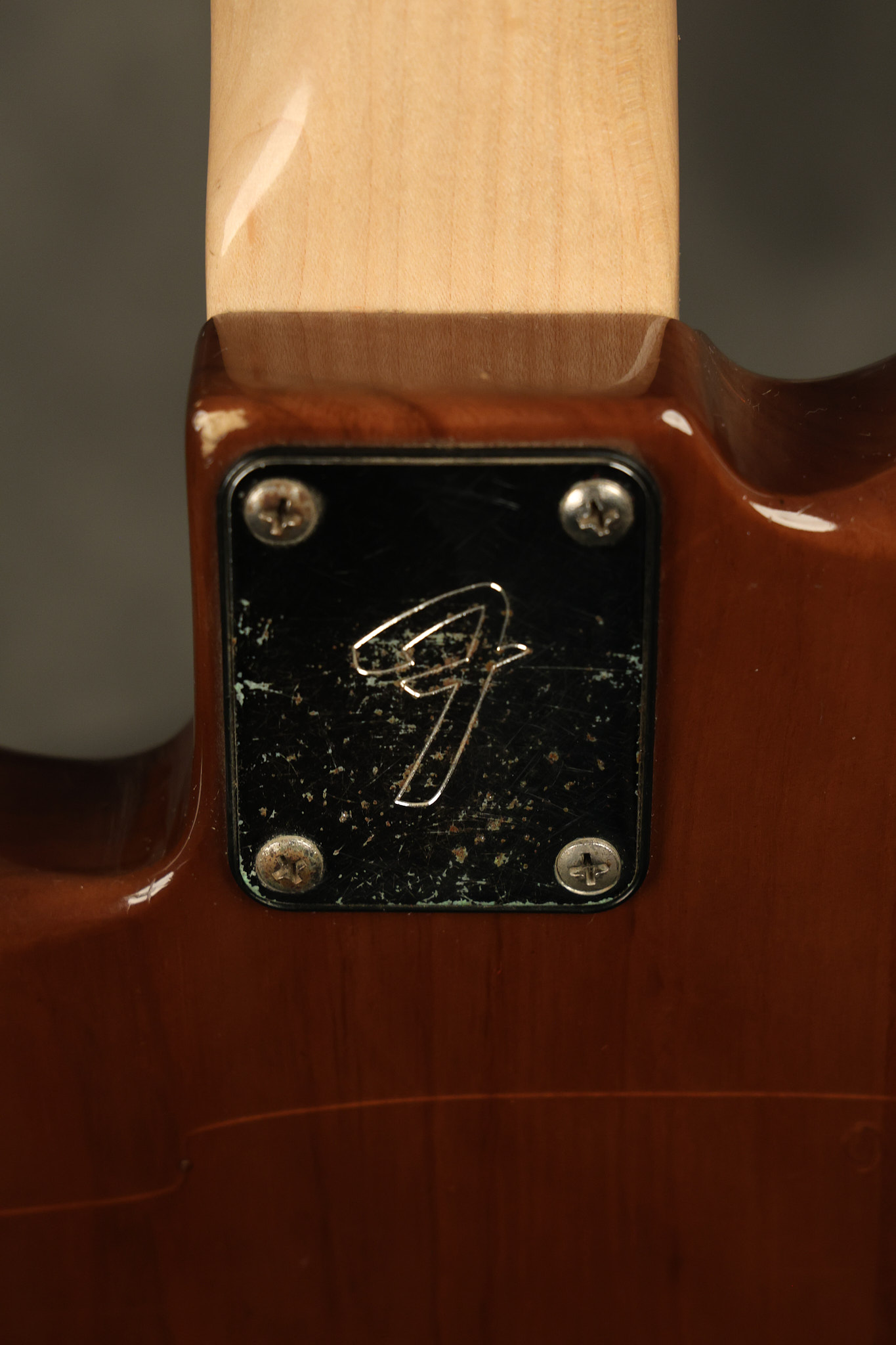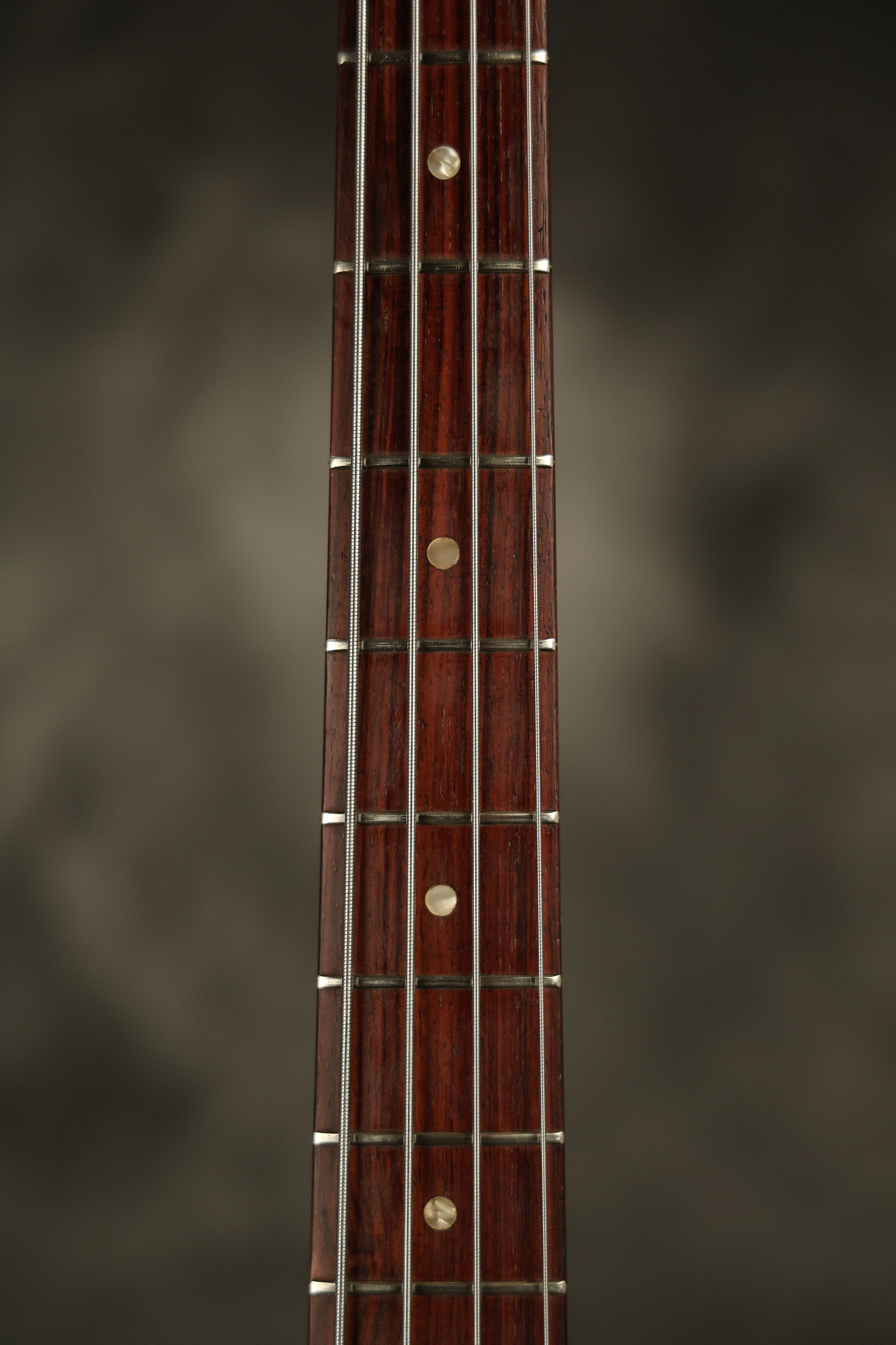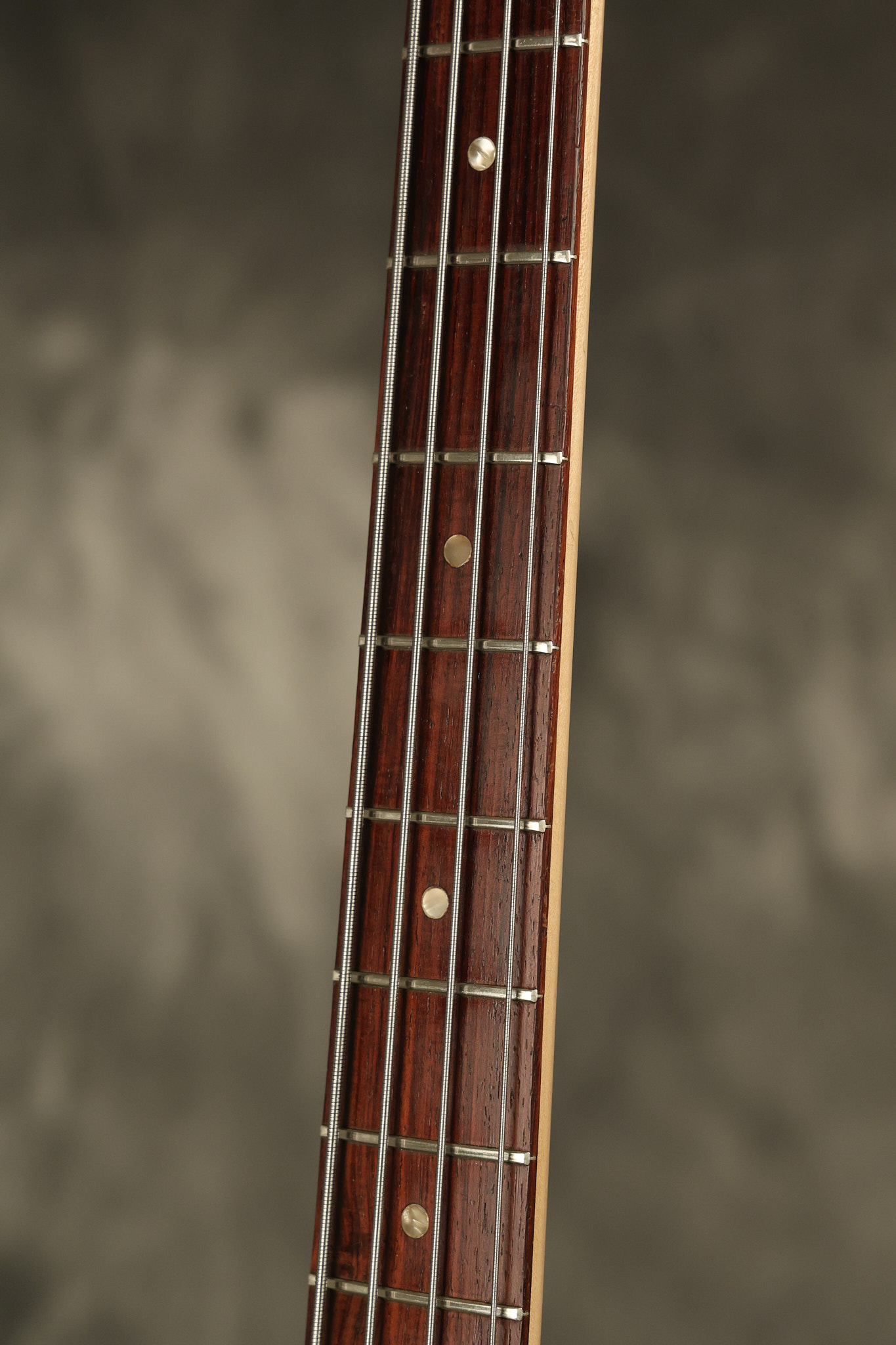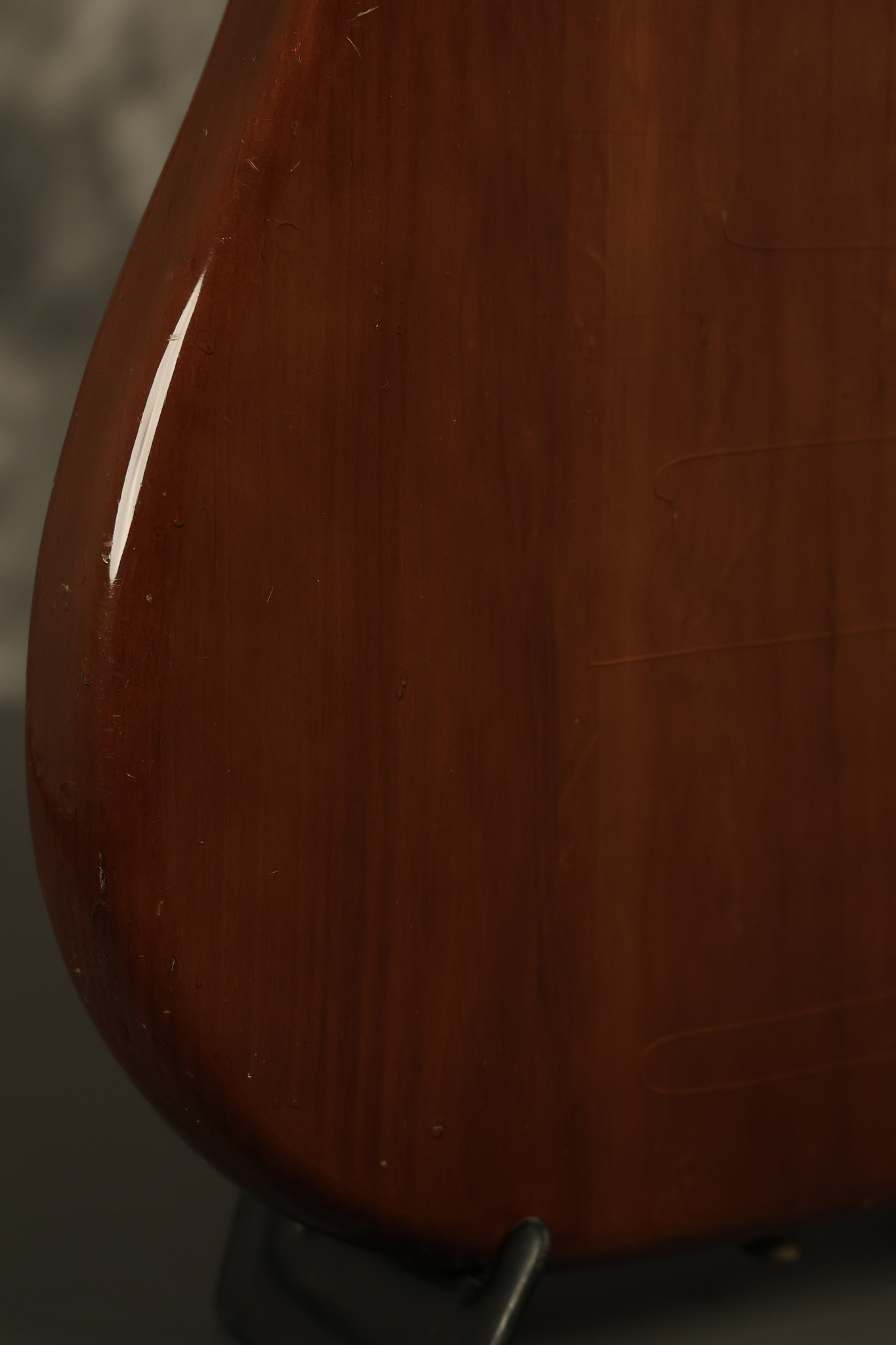 1978 Fender Precision Bass in its original Walnut finish. It has a good playing neck with great frets. It's all original with the exception of the jack and a couple of wires. The treble side pickup has been professionally rewound. It's also 100% complete along with both chrome covers and the original hardshell case. There are nicks + dings, a few finish cracks on the back of the body and other cosmetic wear. The bass itself remains structurally sound with no cracks, breaks or repairs. All electronics work and sound great as it provides an authentic '70's P-Bass tone.