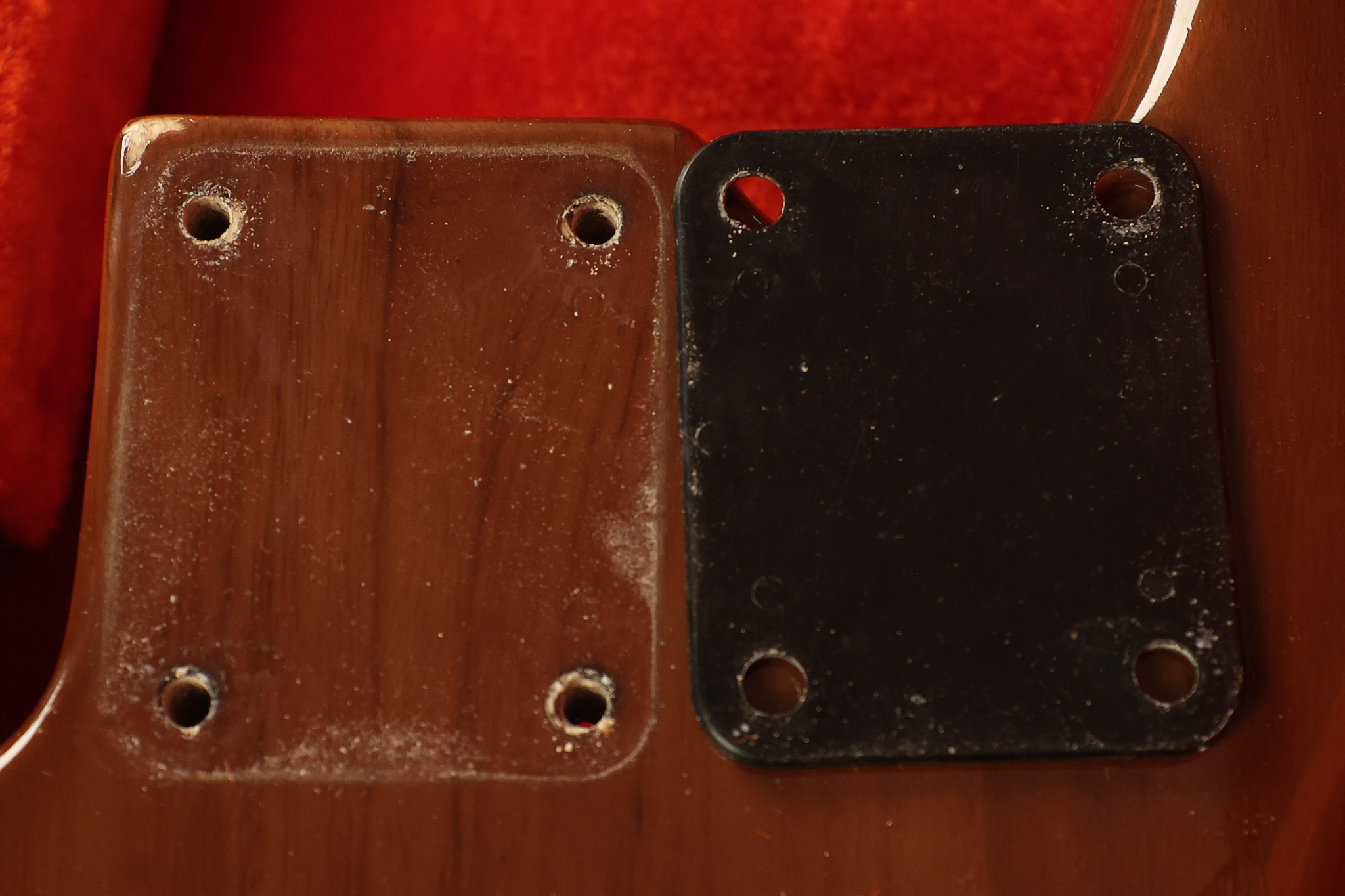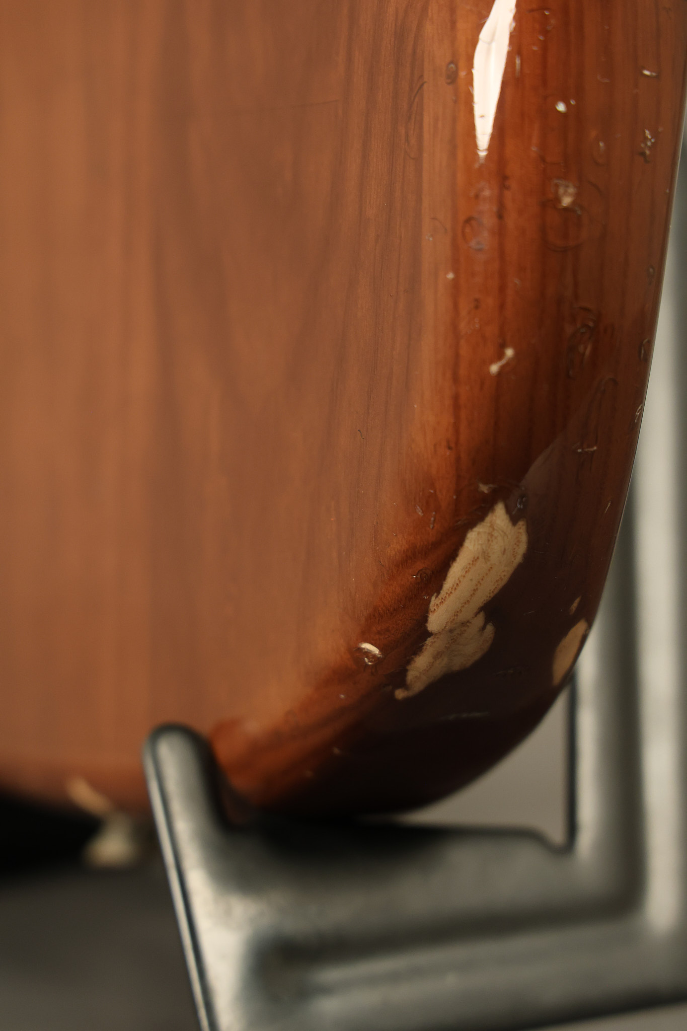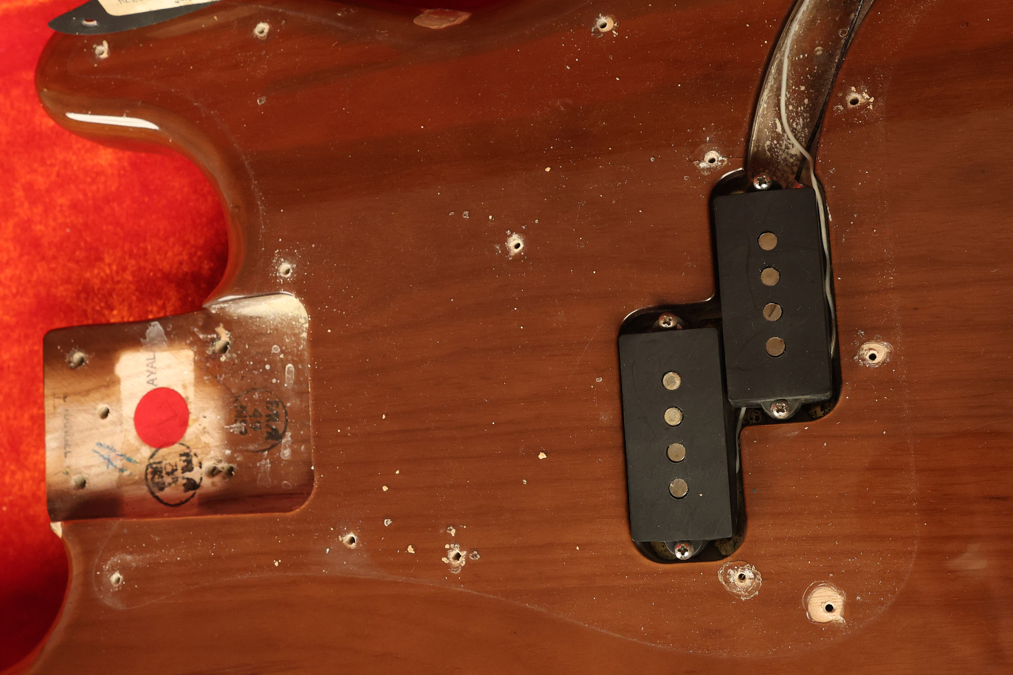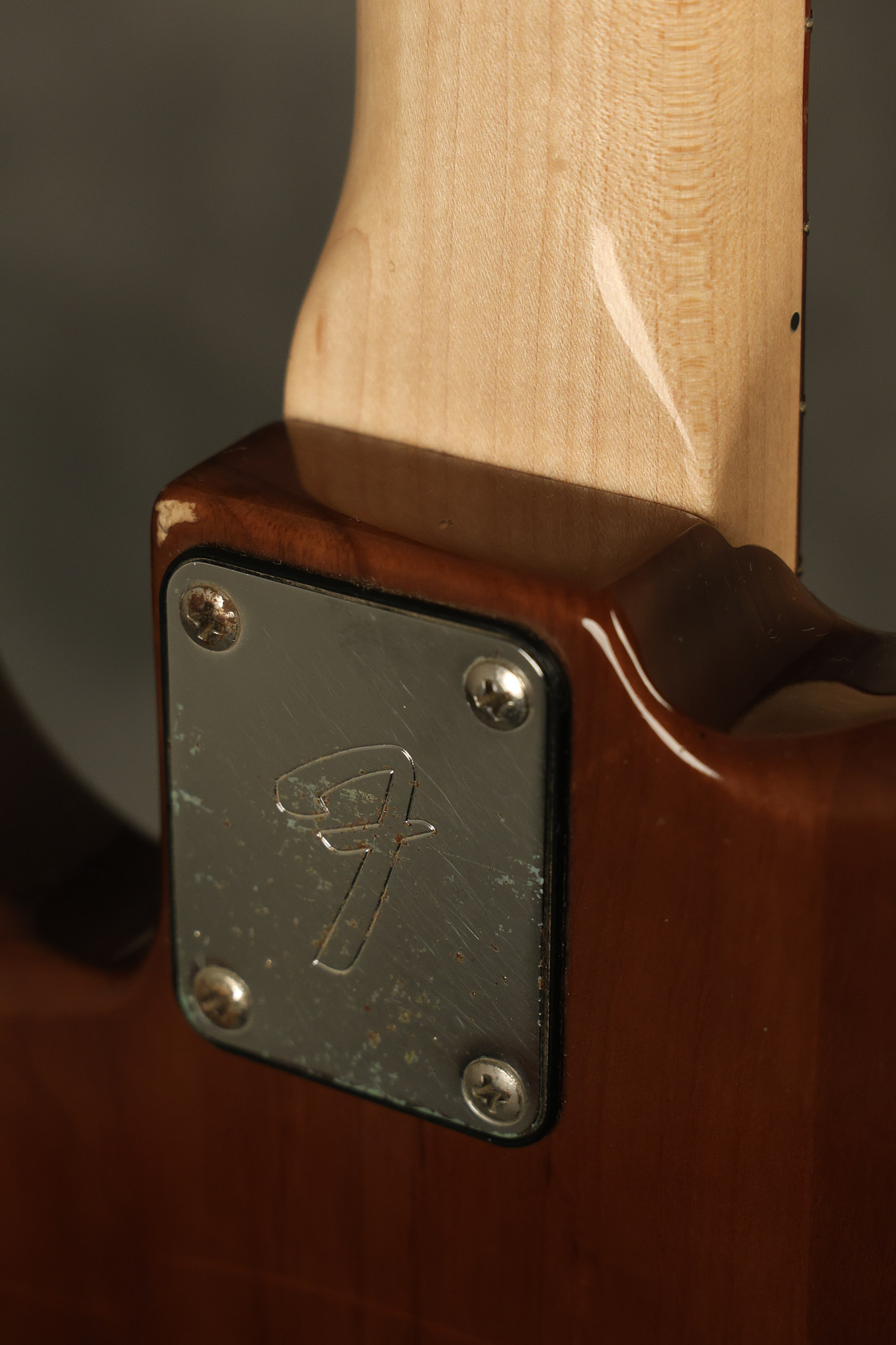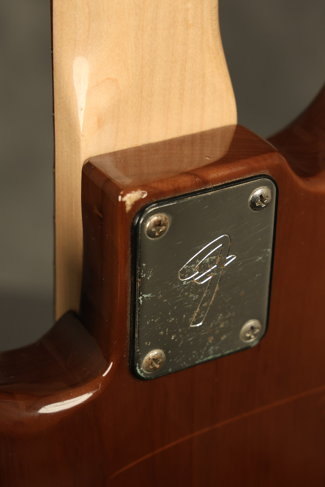 1978 Fender Precision Bass in its original Walnut finish. It has a good playing neck with great frets. It's all original with the exception of the jack and a couple of wires. The treble side pickup has been professionally rewound. It's also 100% complete along with both chrome covers and the original hardshell case. There are nicks + dings, a few finish cracks on the back of the body and other cosmetic wear. The bass itself remains structurally sound with no cracks, breaks or repairs. All electronics work and sound great as it provides an authentic '70's P-Bass tone.