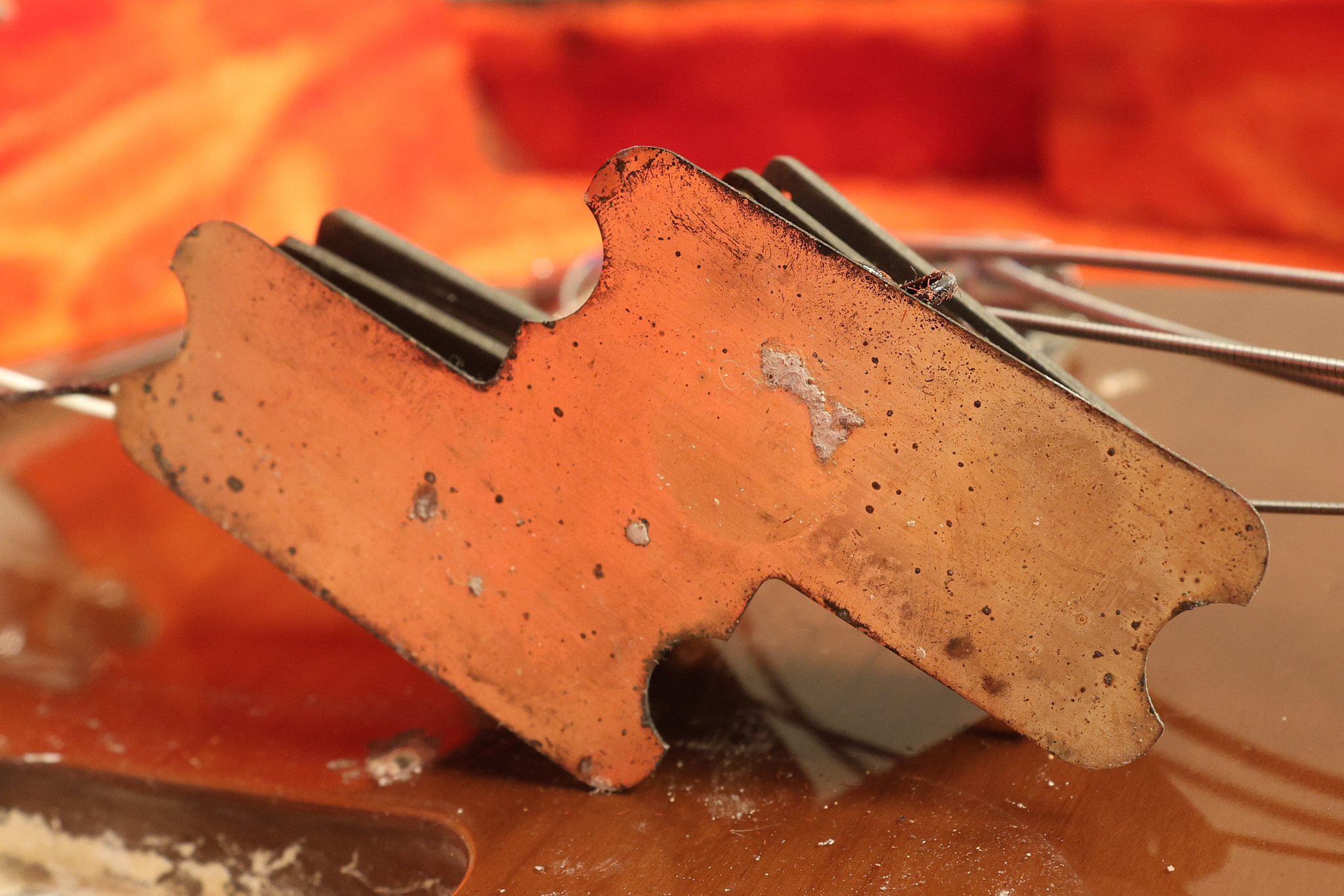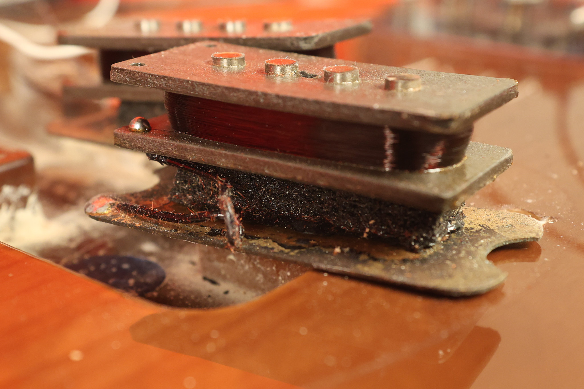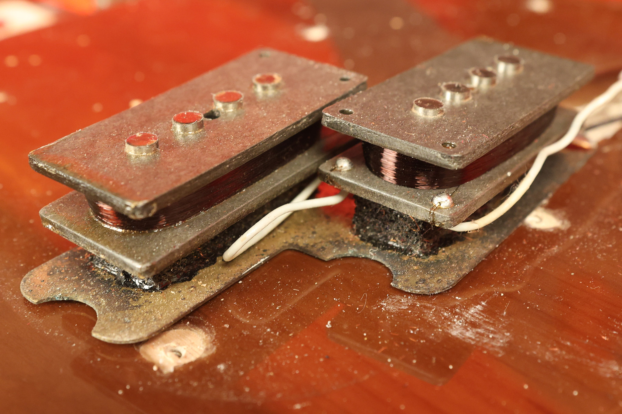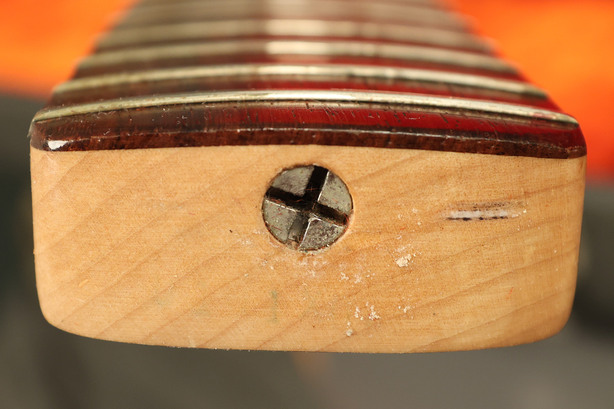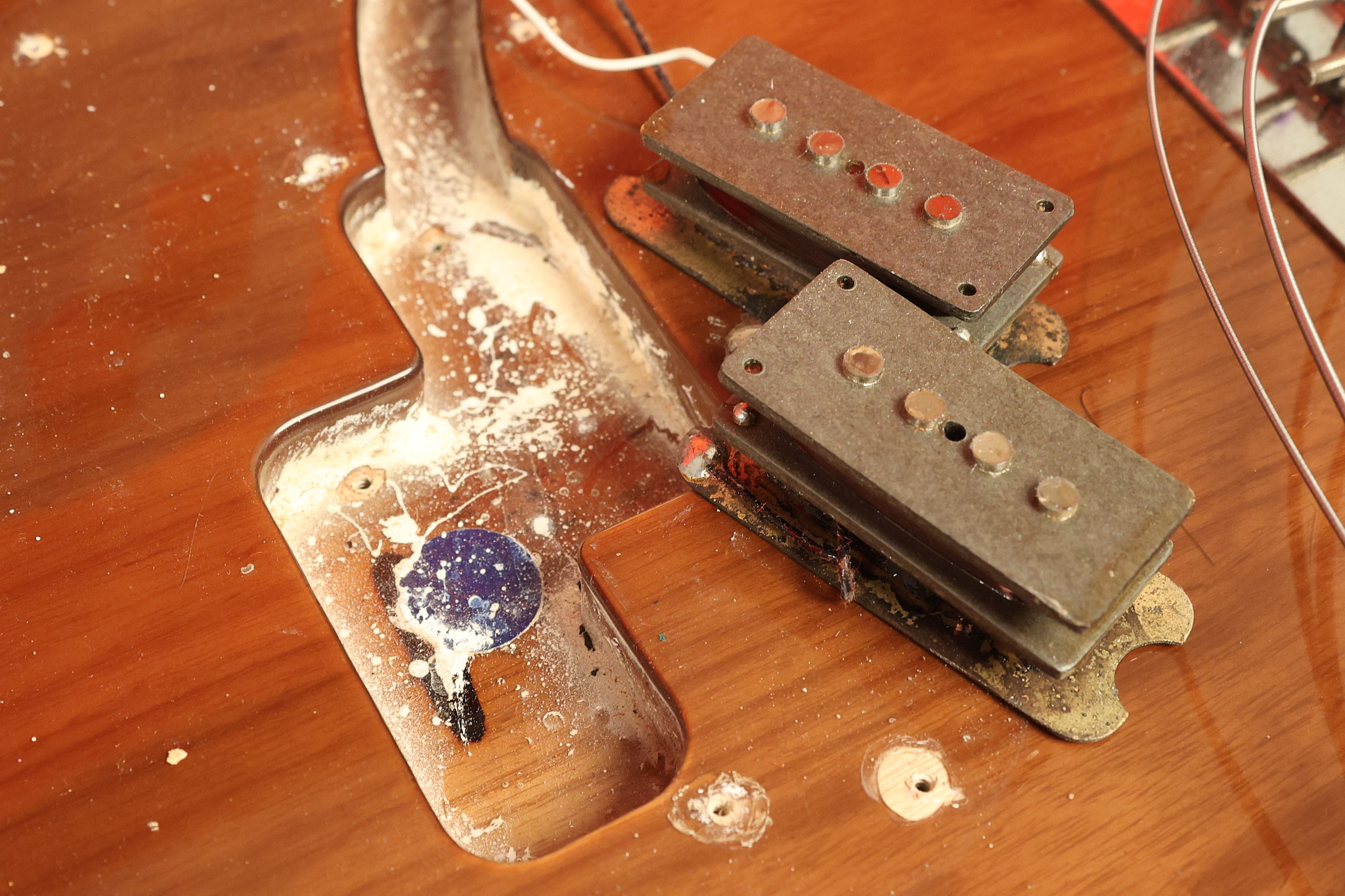 1978 Fender Precision Bass in its original Walnut finish. It has a good playing neck with great frets. It's all original with the exception of the jack and a couple of wires. The treble side pickup has been professionally rewound. It's also 100% complete along with both chrome covers and the original hardshell case. There are nicks + dings, a few finish cracks on the back of the body and other cosmetic wear. The bass itself remains structurally sound with no cracks, breaks or repairs. All electronics work and sound great as it provides an authentic '70's P-Bass tone.