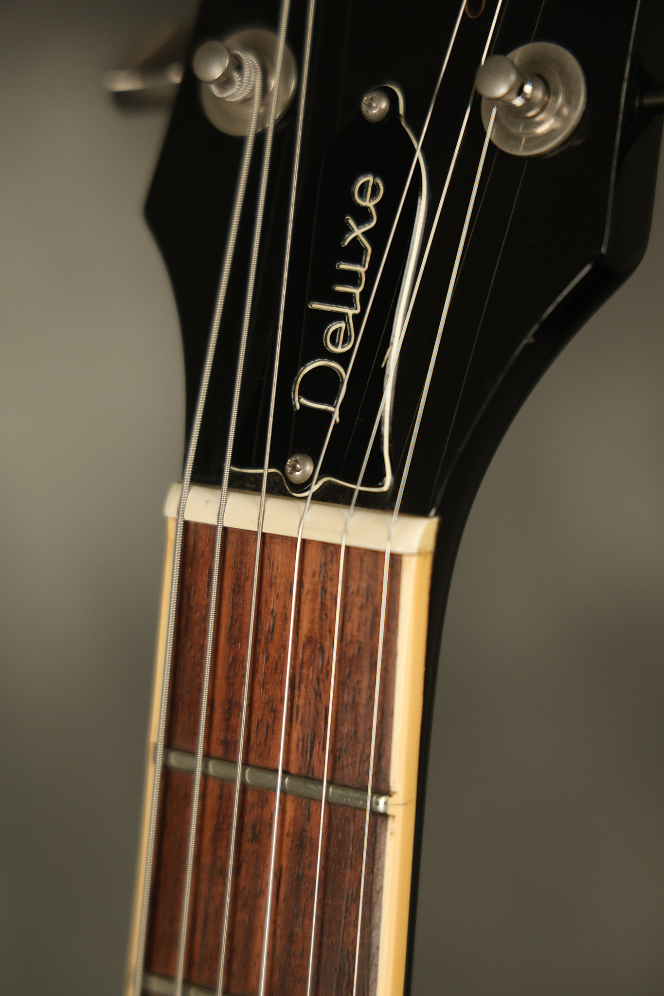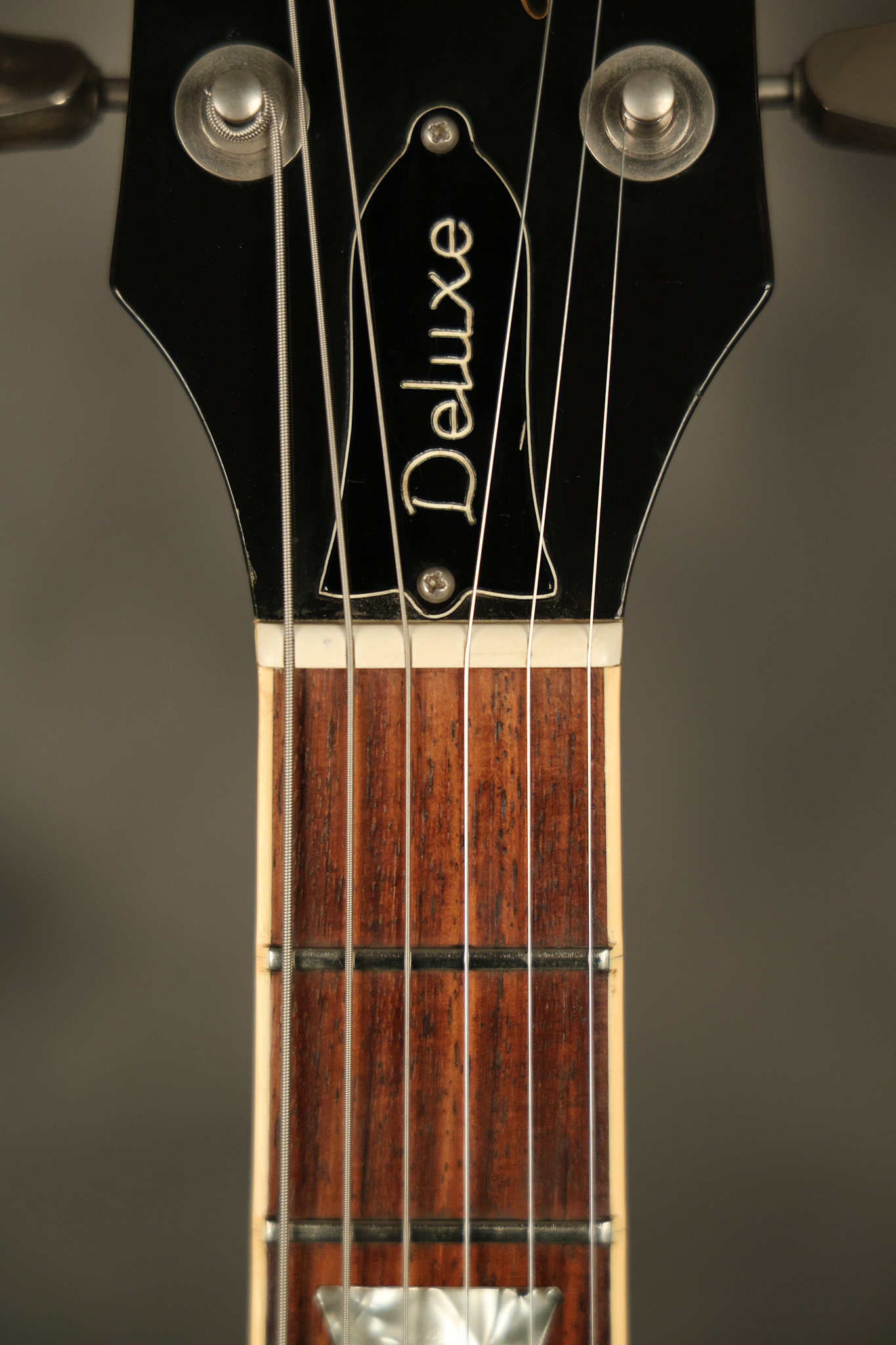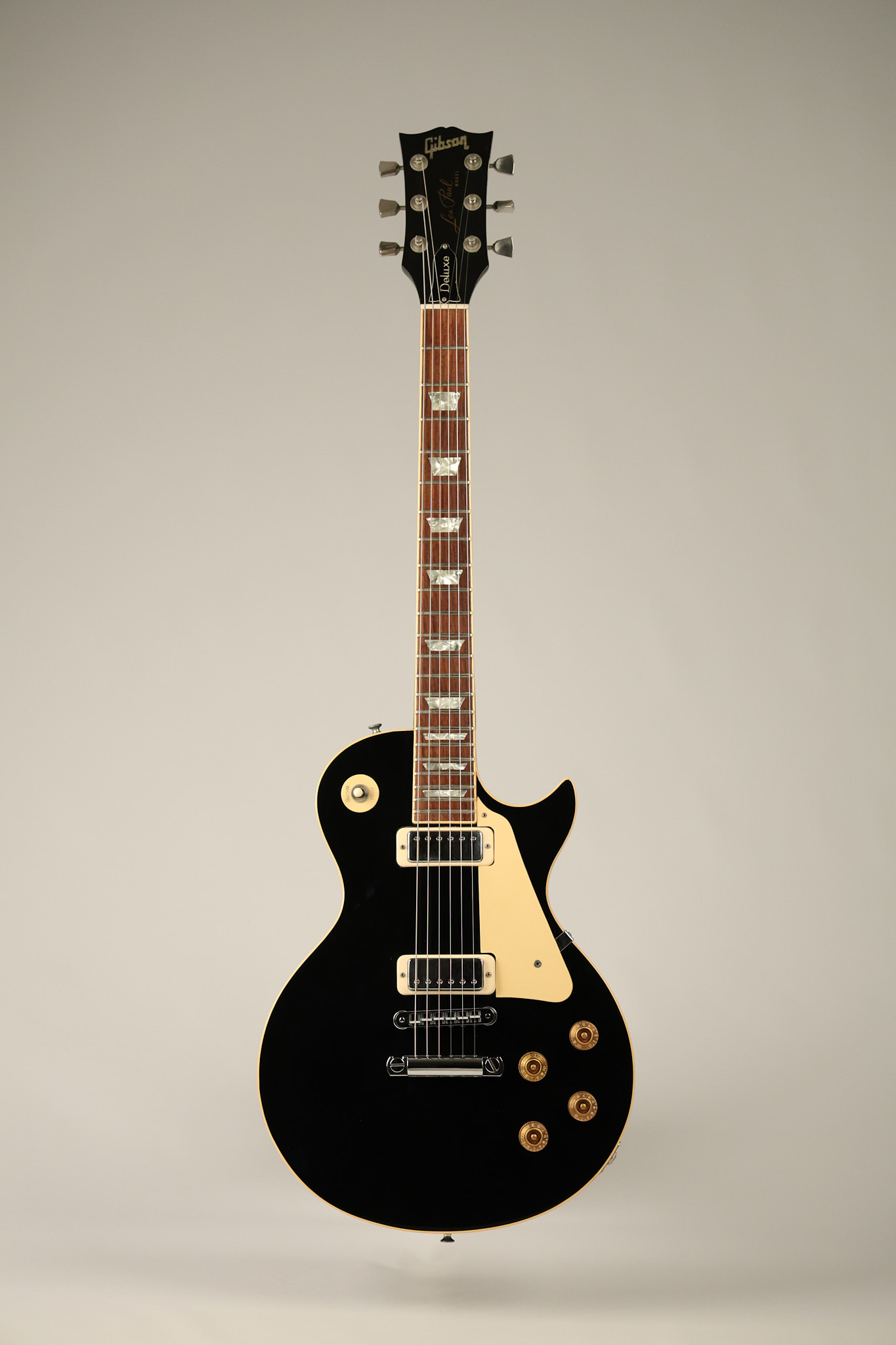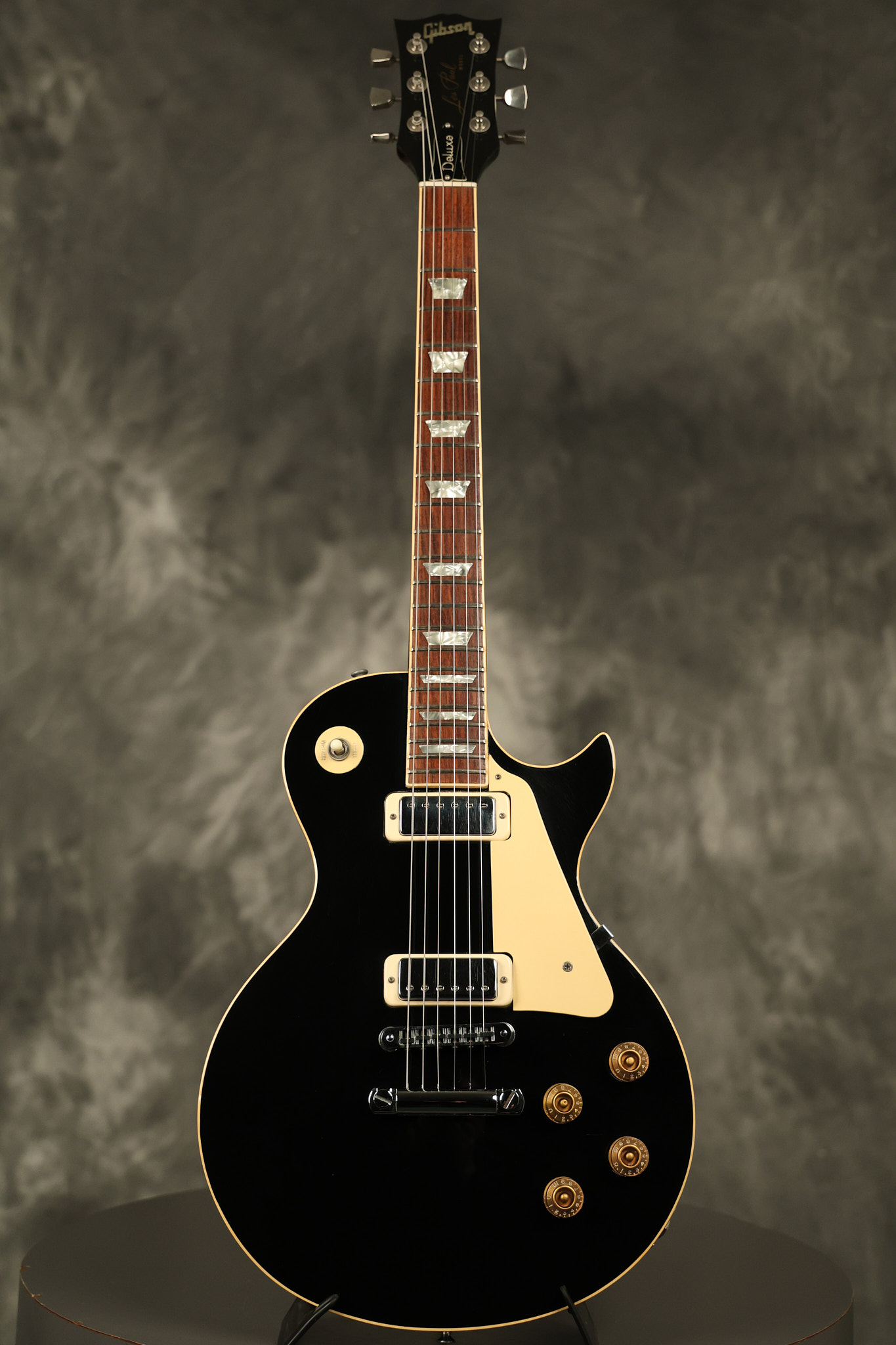 1980 Gibson Les Paul Deluxe in its original Black finish. It has a great playing neck with good frets. It's all original with the exception of the period correct strap buttons, and is 100% complete along with its original hardshell case. It's in very good condition with minor nicks + dings (a few have been touched-up), very light surface belt buckle wear and other minor cosmetic wear. Everything remains structurally sound with no cracks, breaks or repairs. All electronics work and sound great.