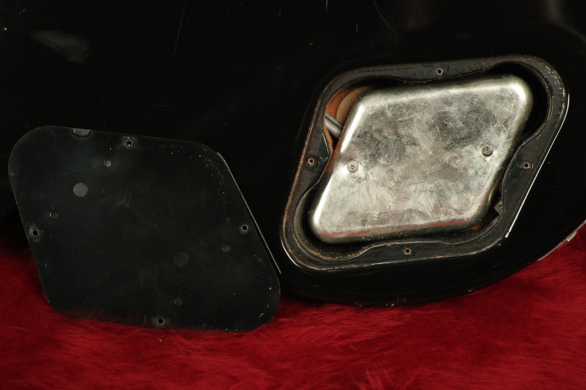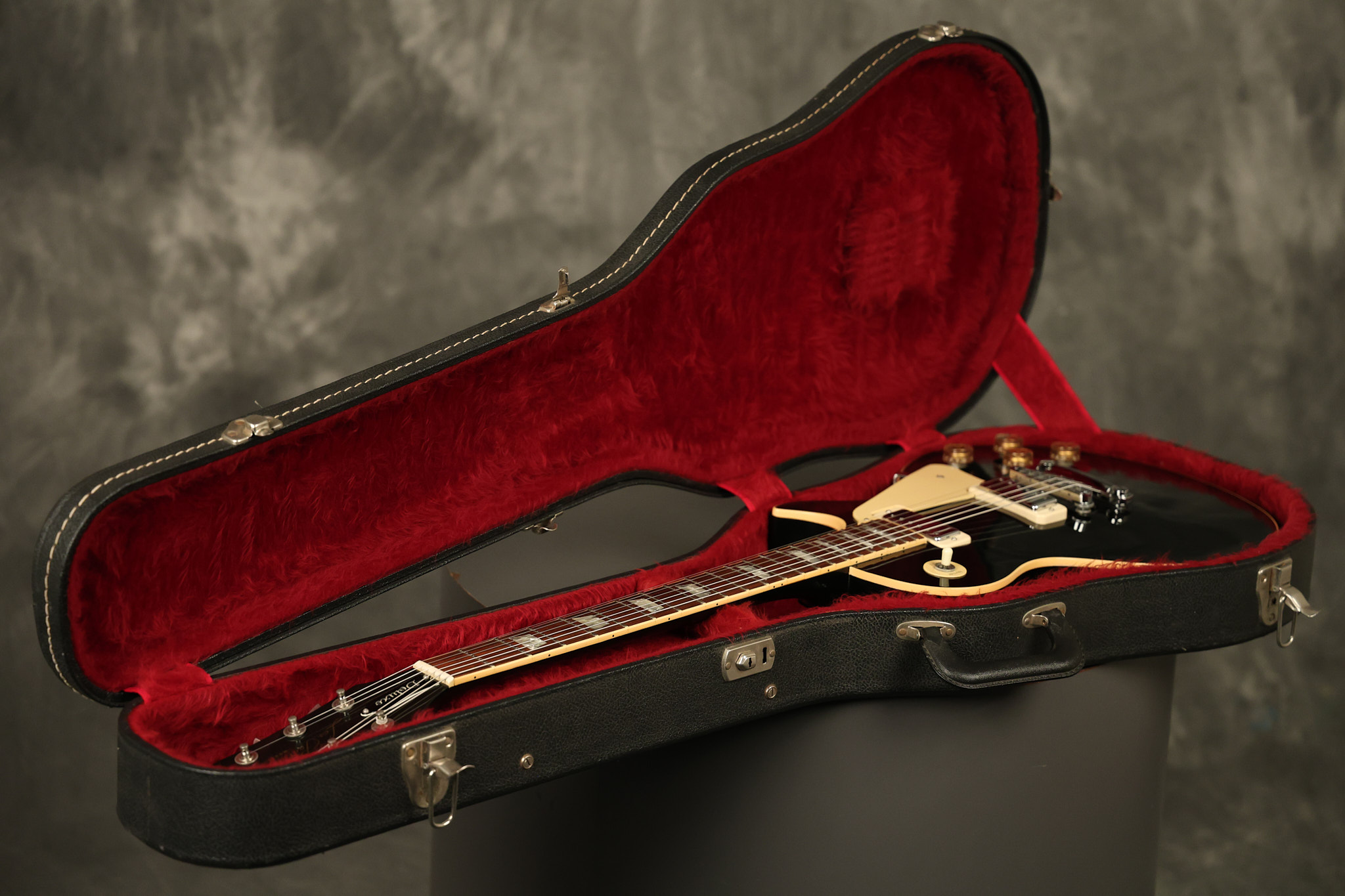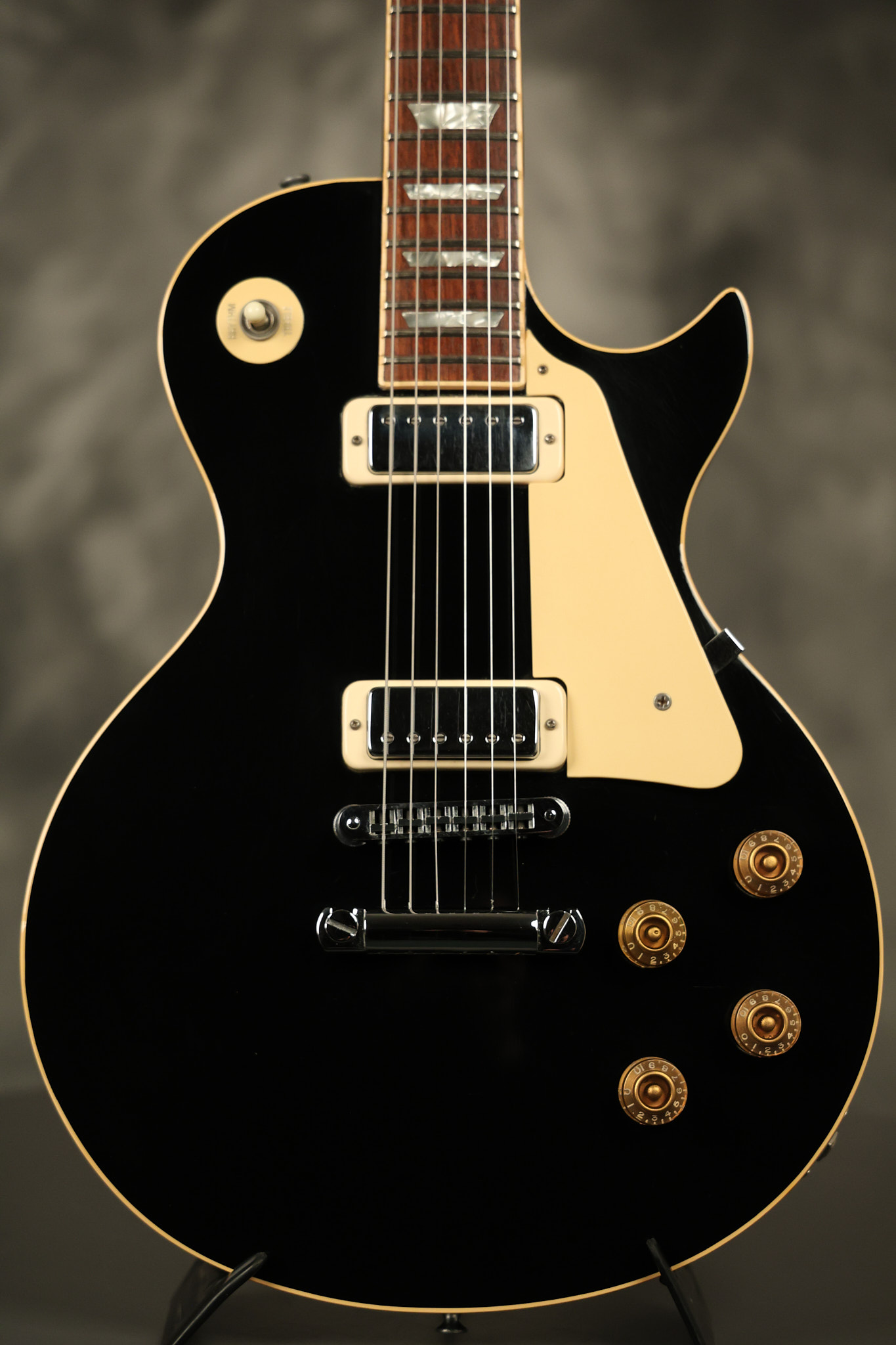 1980 Gibson Les Paul Deluxe in its original Black finish. It has a great playing neck with good frets. It's all original with the exception of the period correct strap buttons, and is 100% complete along with its original hardshell case. It's in very good condition with minor nicks + dings (a few have been touched-up), very light surface belt buckle wear and other minor cosmetic wear. Everything remains structurally sound with no cracks, breaks or repairs. All electronics work and sound great.