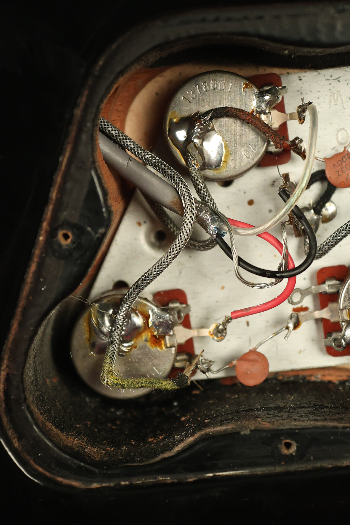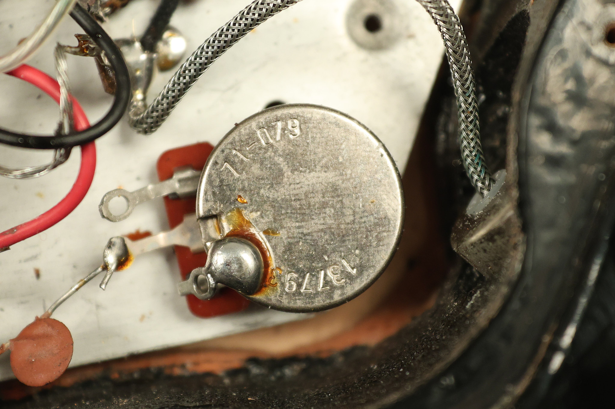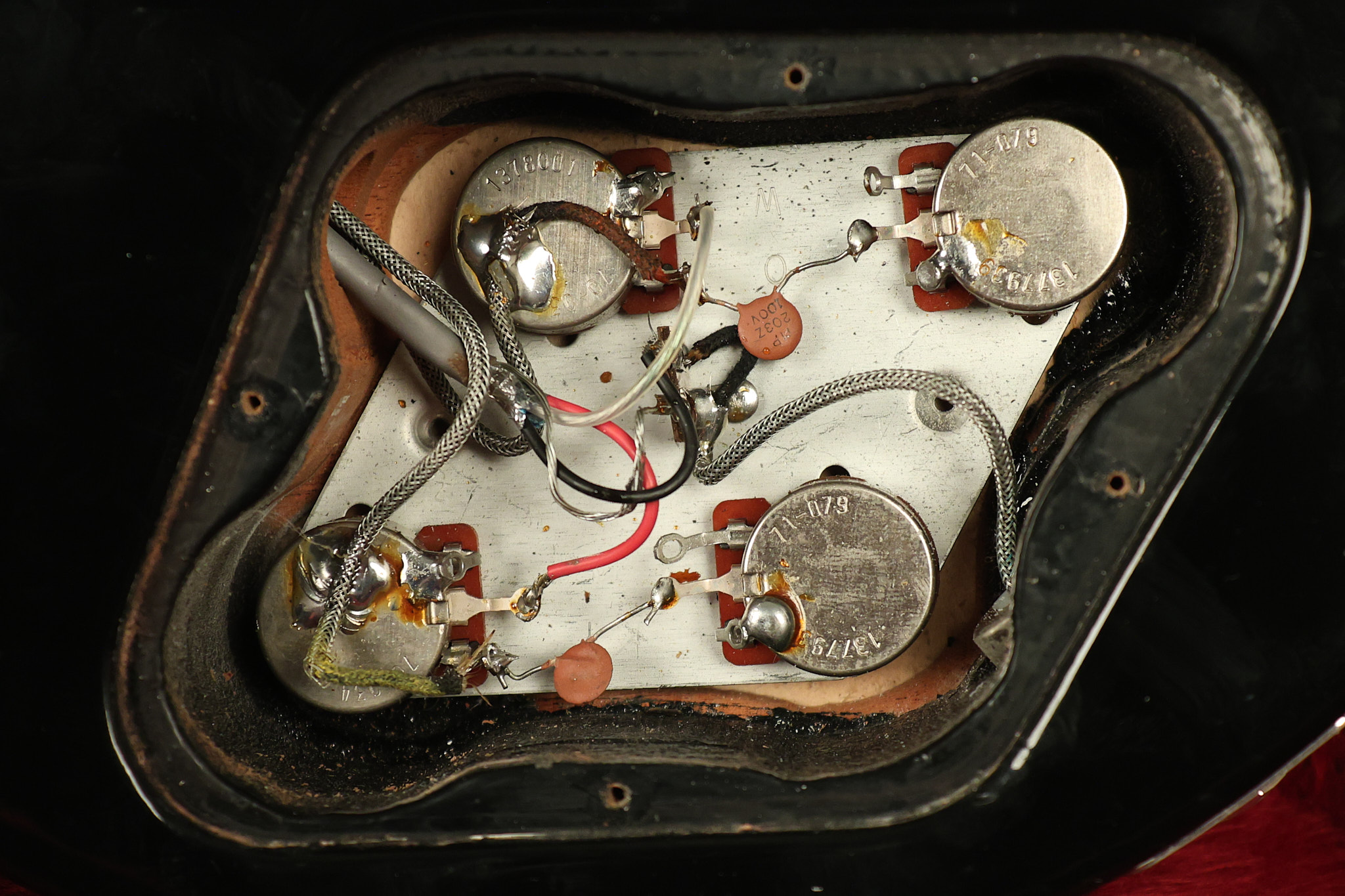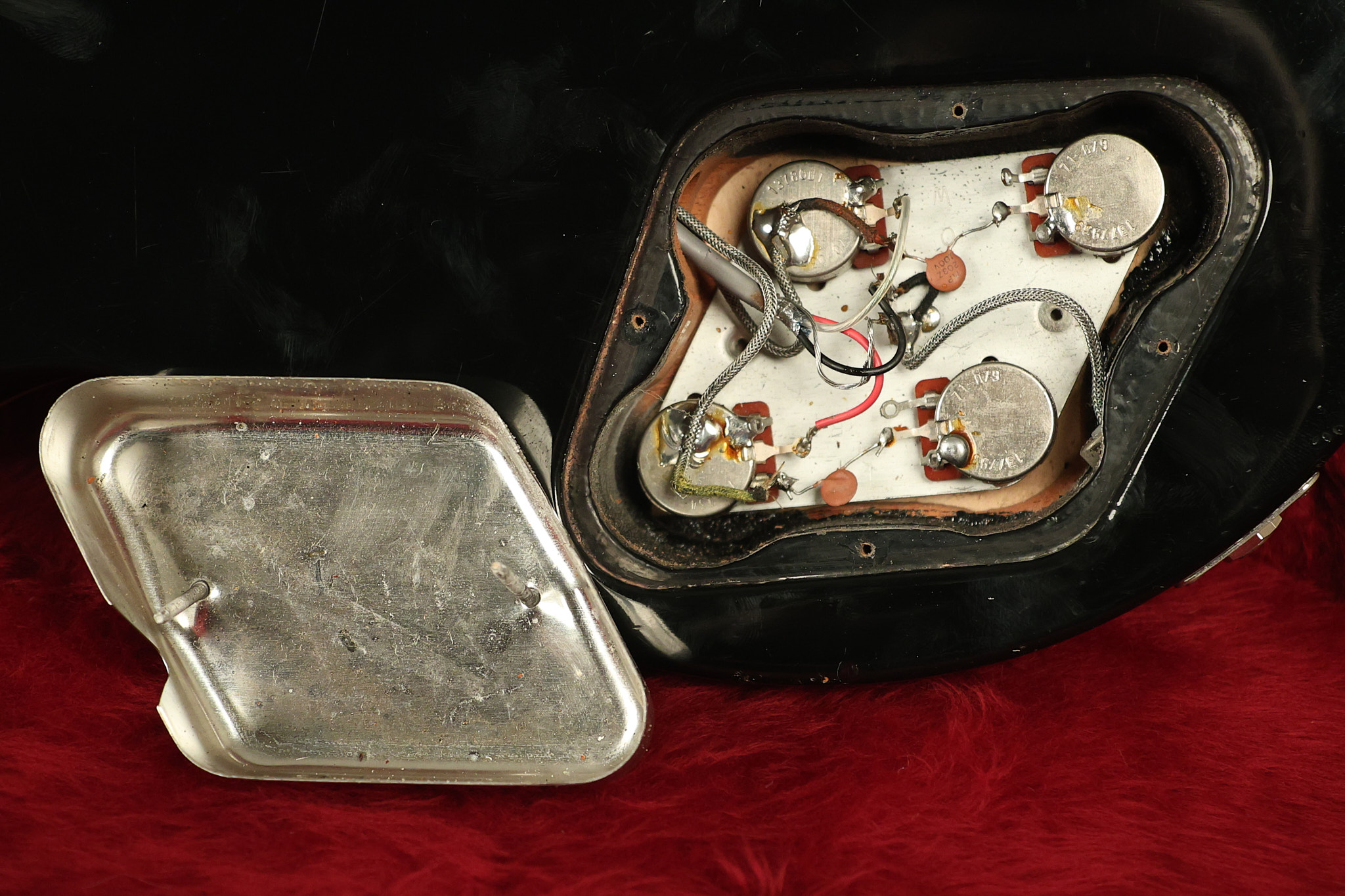 1980 Gibson Les Paul Deluxe in its original Black finish. It has a great playing neck with good frets. It's all original with the exception of the period correct strap buttons, and is 100% complete along with its original hardshell case. It's in very good condition with minor nicks + dings (a few have been touched-up), very light surface belt buckle wear and other minor cosmetic wear. Everything remains structurally sound with no cracks, breaks or repairs. All electronics work and sound great.