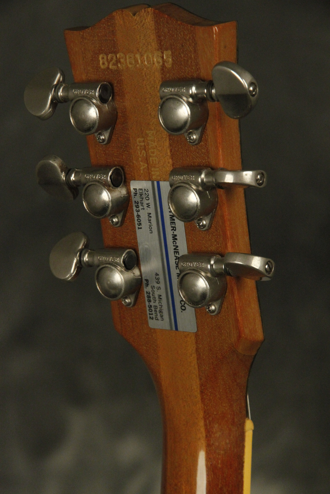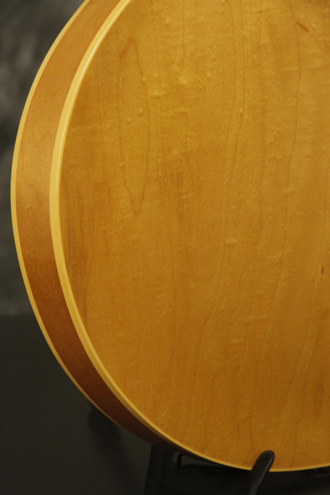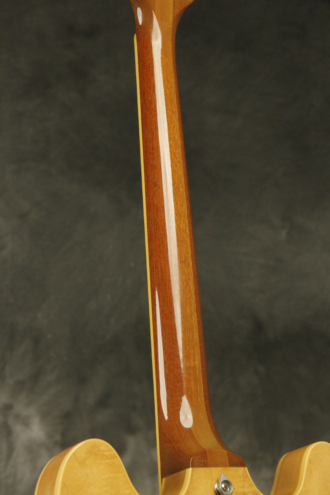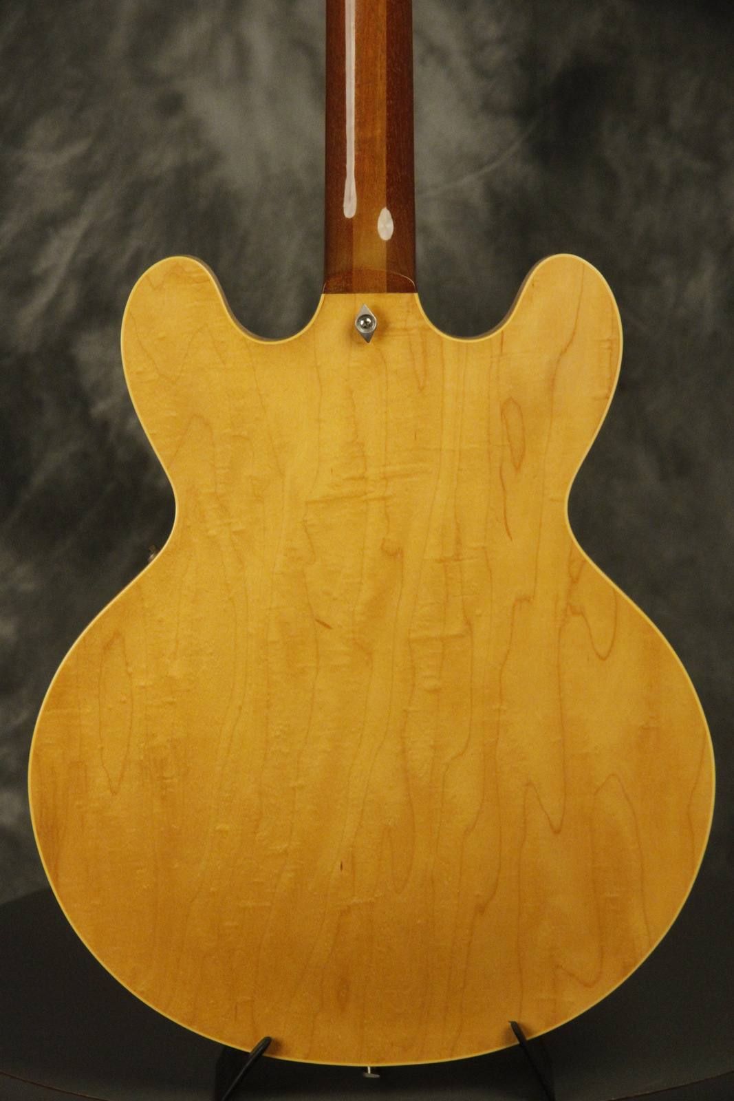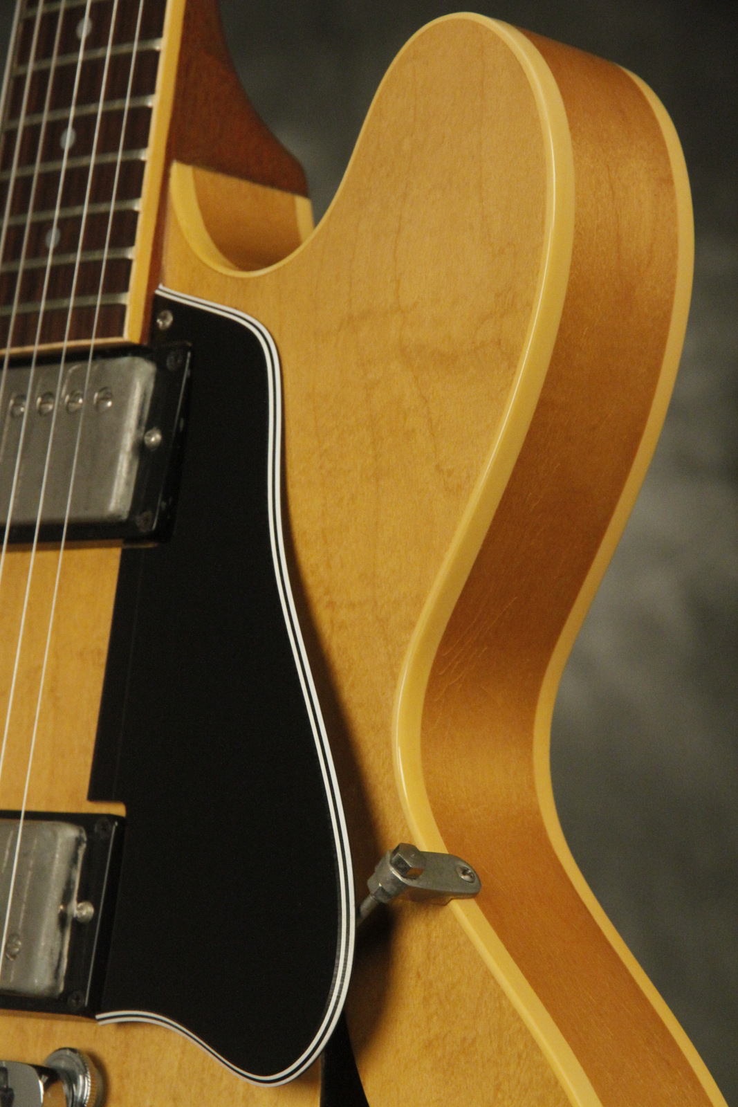 1981 Gibson ES-335 DOT reissue in its original Blonde finish. It has a great playing neck with good frets. It's all original and 100% complete along with its original hardshell case. It's in very good condition with surface wear on the hardware and other minor cosmetic wear. There is an old guitar store decal on the back of the headstock. Everything remains structurally sound with no cracks, breaks or repairs. All electronics work and sound great.