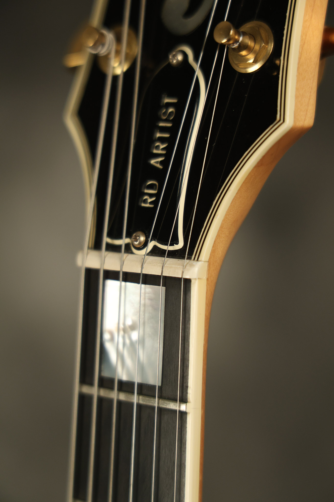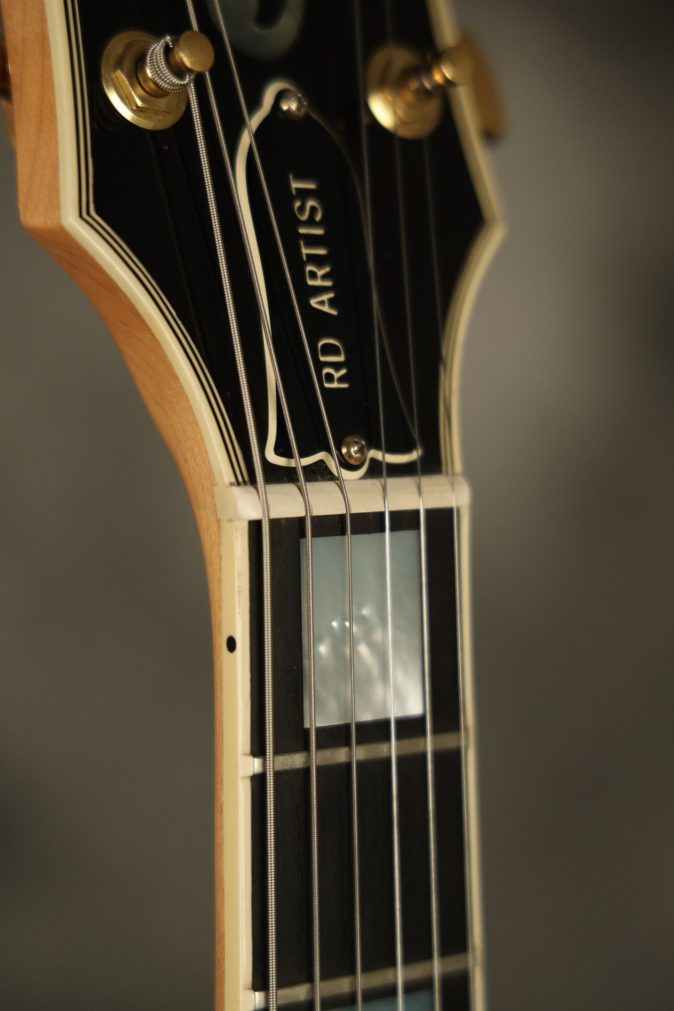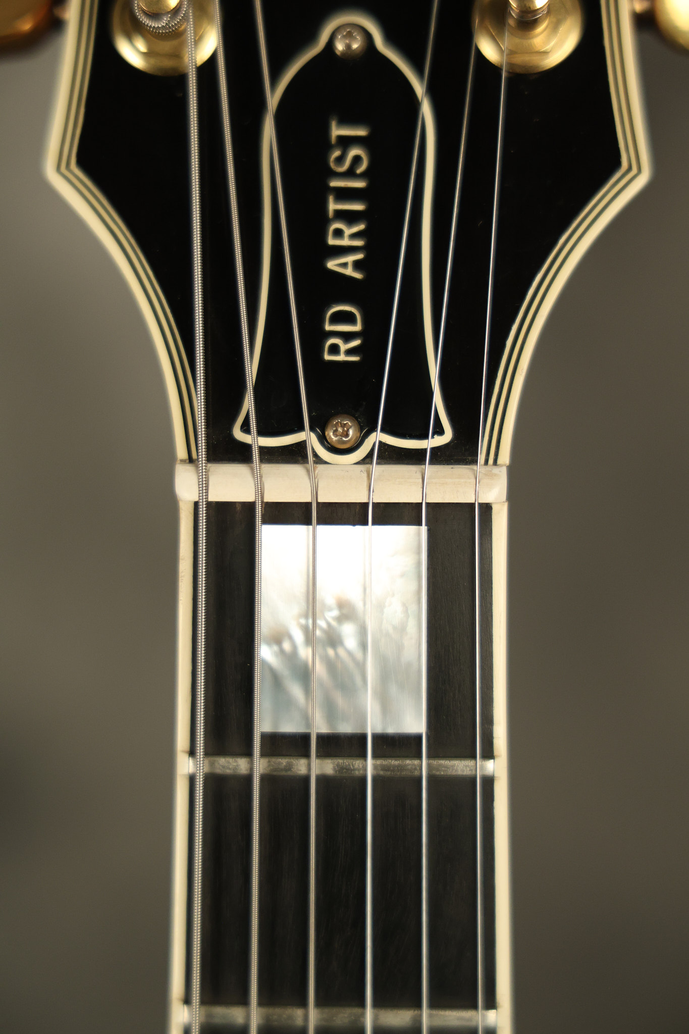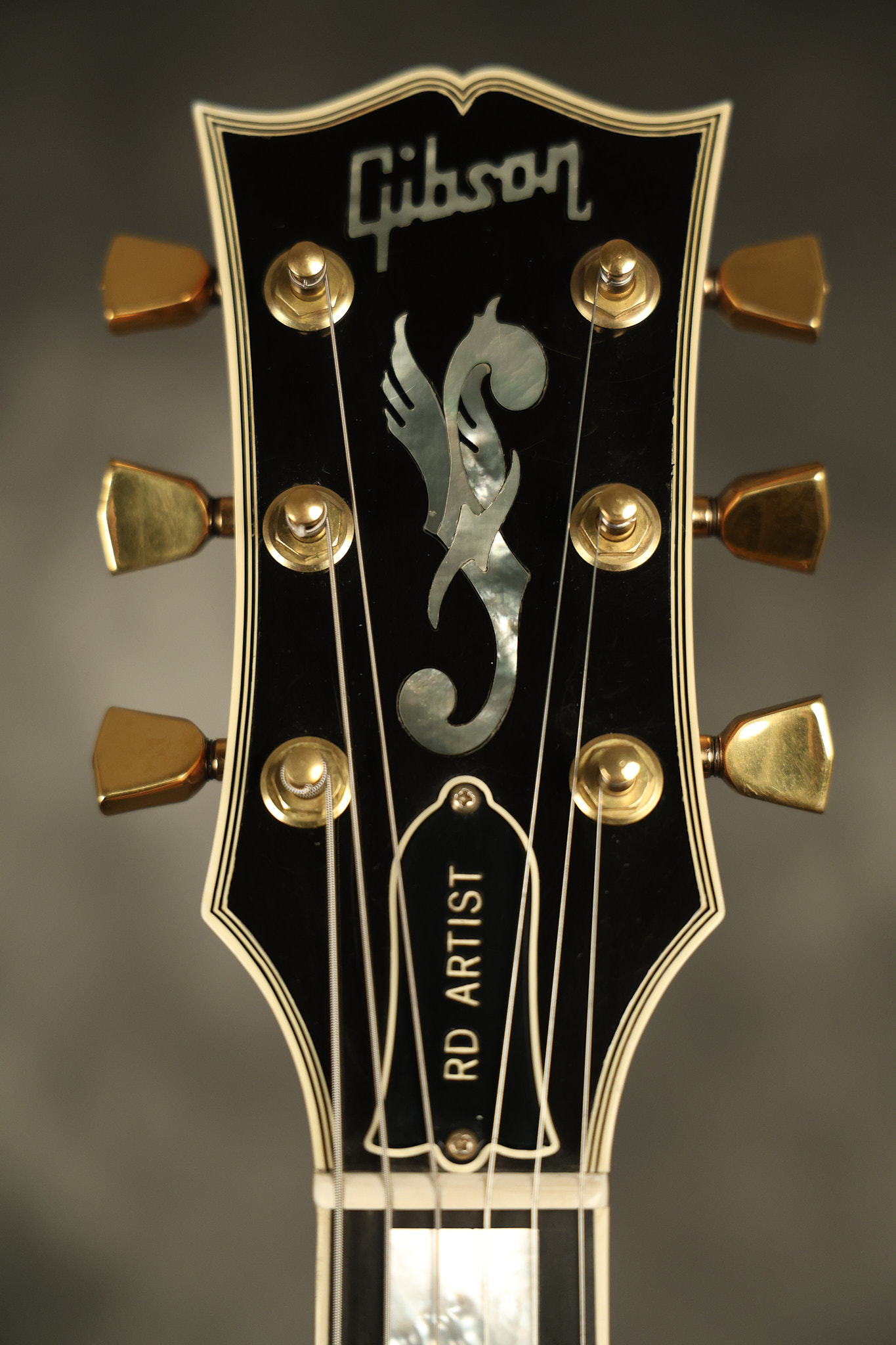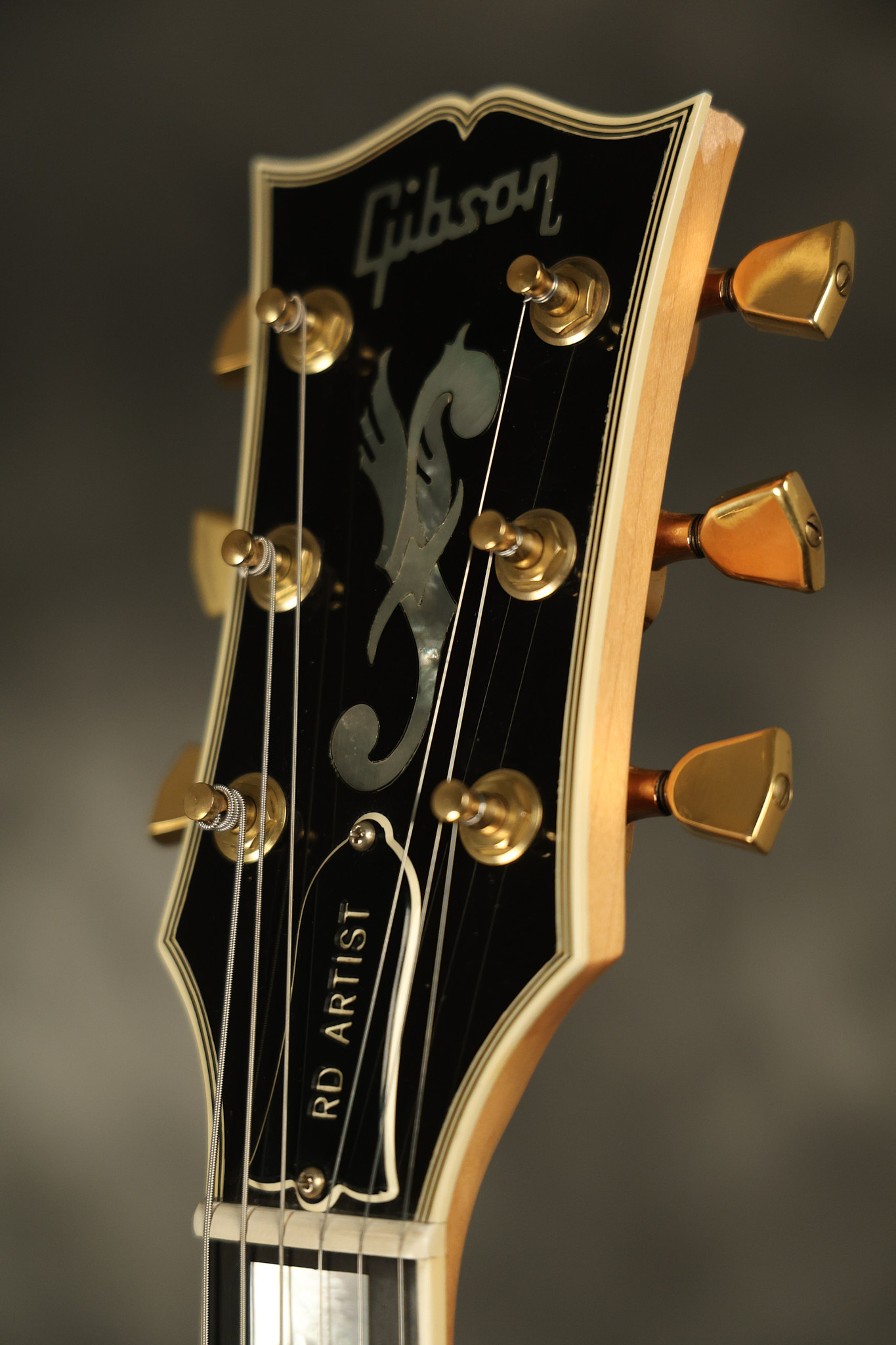 1981 Gibson RD Artist in its original Natural finish. It has a great playing neck with good frets. It's all original with the exception of the strap buttons. A non-original hardshell case is included and has one broken hinge on the bottom edge. The screw for the upper strap button had broken off inside the guitar and was extracted before the hole was filled with a hardwood dowel where the new strap button is now installed. This RD Artist is in very good condition with one small chip in the wood on the upper treble side corner of the headstock, some very minor nicks + dings, very light belt buckle wear and other cosmetic wear. The guitar itself remains structurally sound. All electronics work and sound great with its factory onboard Moog active electronics which provides both Compression and Expansion effects.