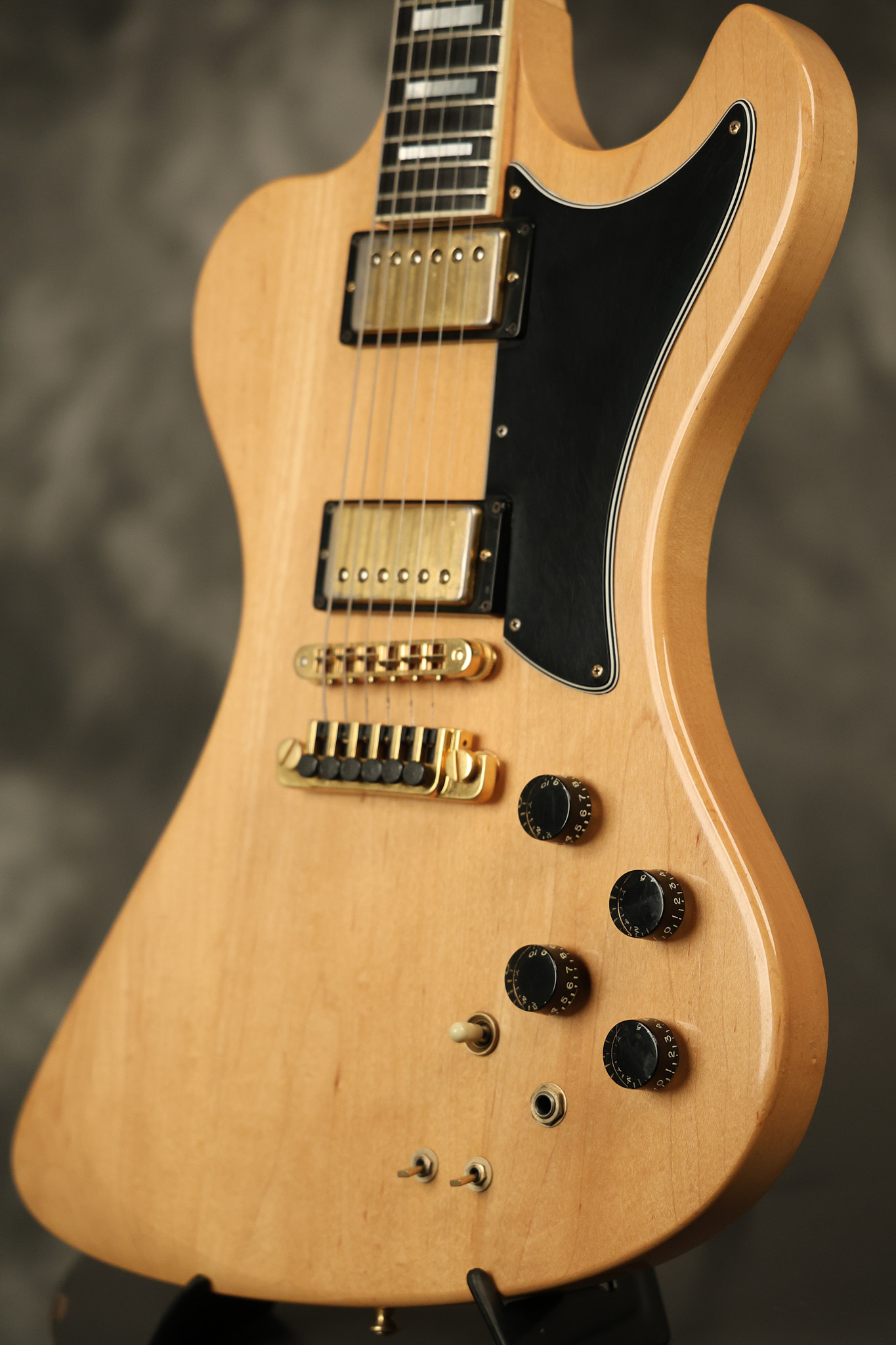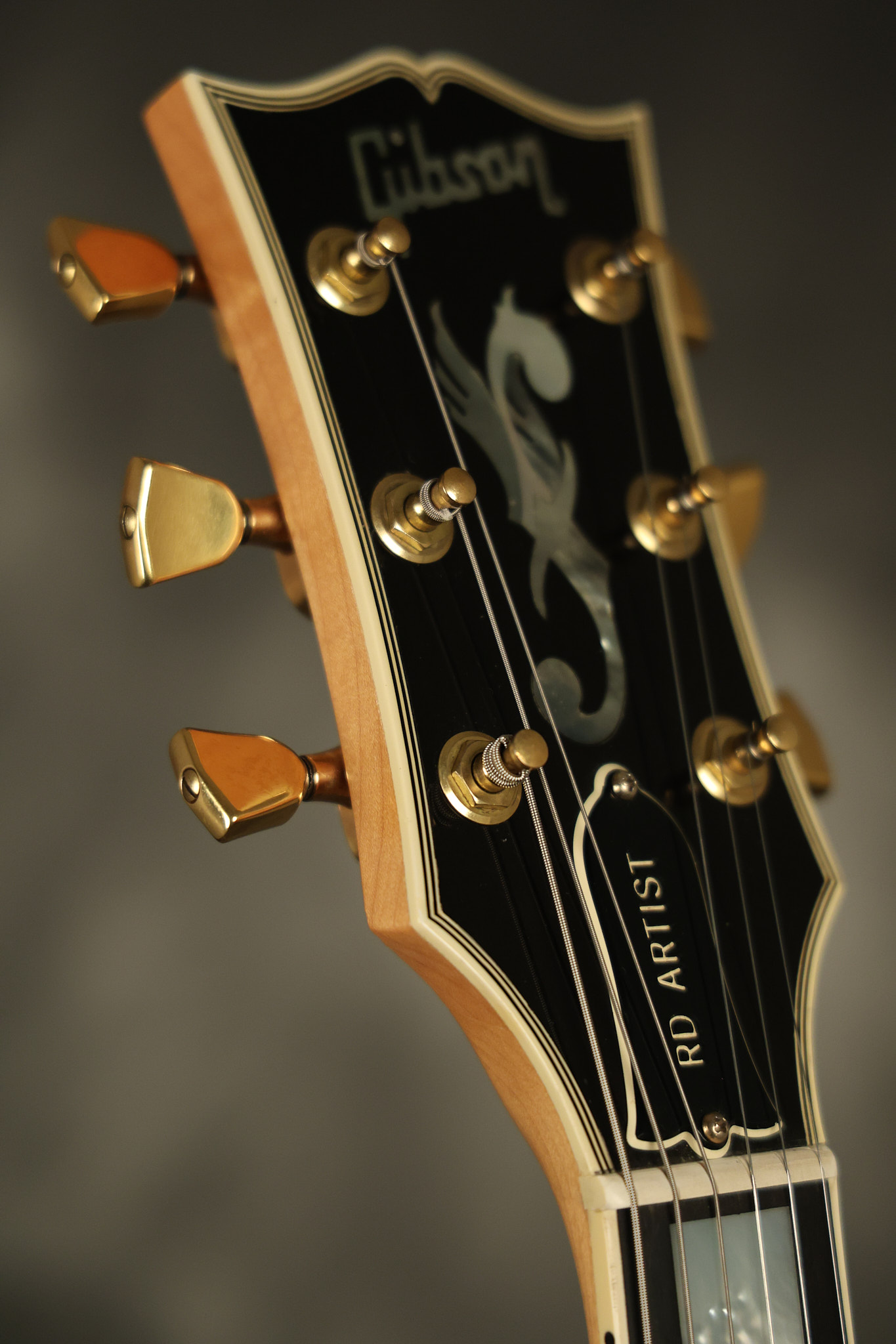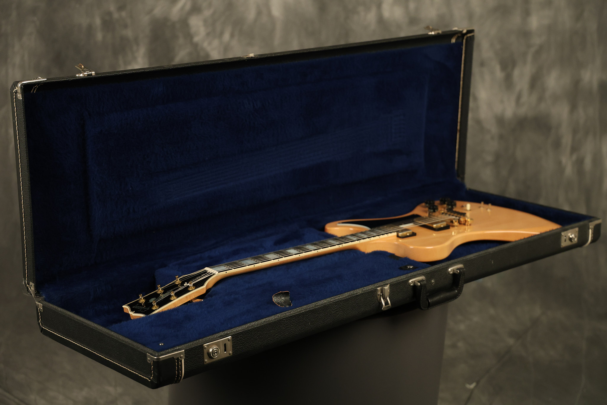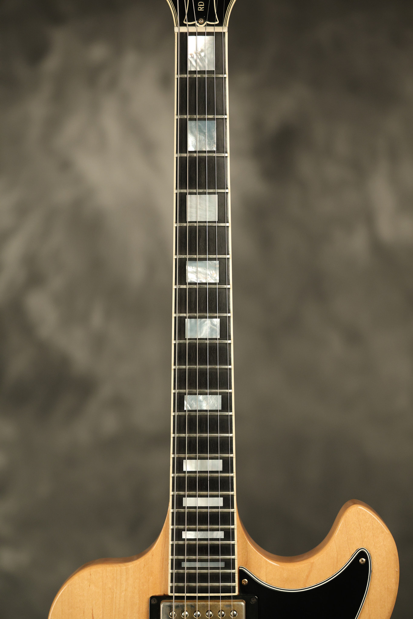 1981 Gibson RD Artist in its original Natural finish. It has a great playing neck with good frets. It's all original with the exception of the strap buttons. A non-original hardshell case is included and has one broken hinge on the bottom edge. The screw for the upper strap button had broken off inside the guitar and was extracted before the hole was filled with a hardwood dowel where the new strap button is now installed. This RD Artist is in very good condition with one small chip in the wood on the upper treble side corner of the headstock, some very minor nicks + dings, very light belt buckle wear and other cosmetic wear. The guitar itself remains structurally sound. All electronics work and sound great with its factory onboard Moog active electronics which provides both Compression and Expansion effects.