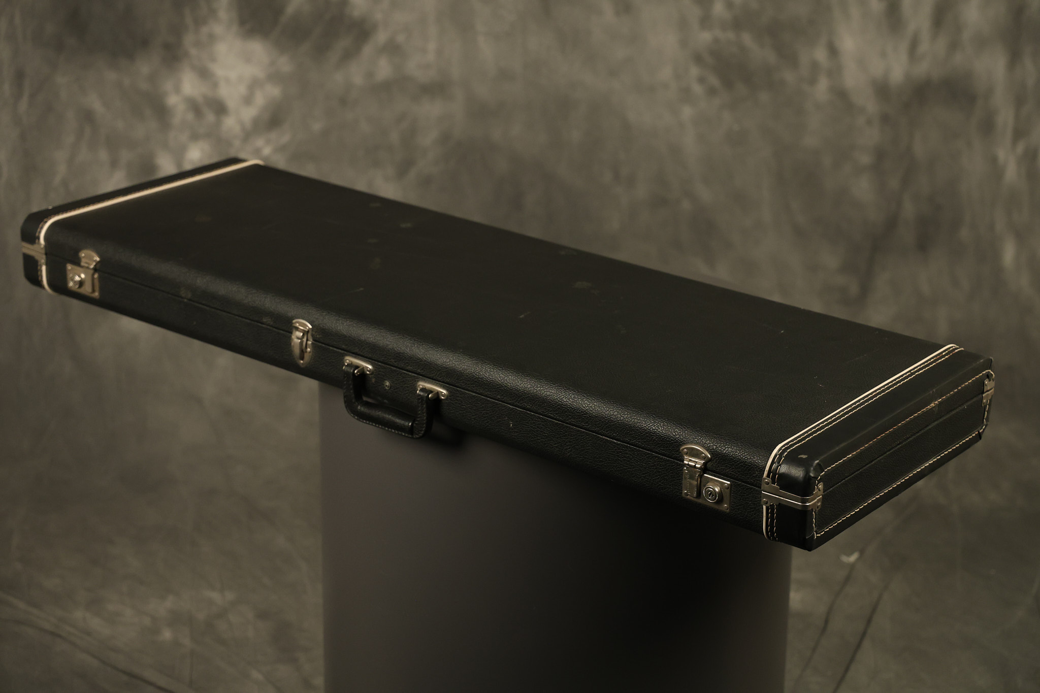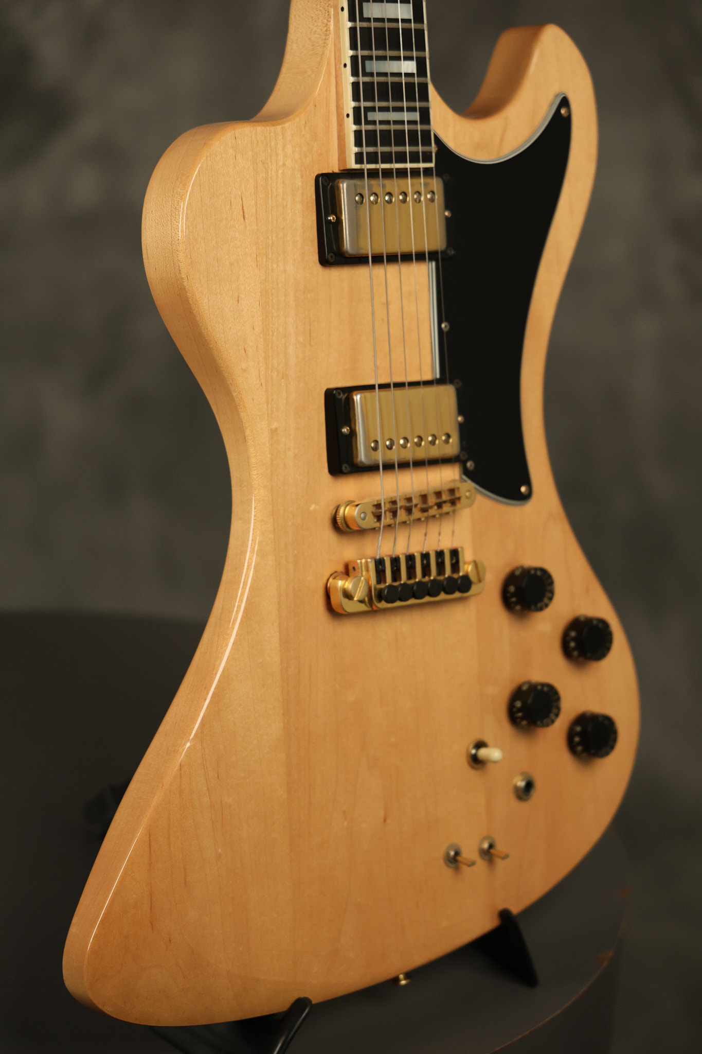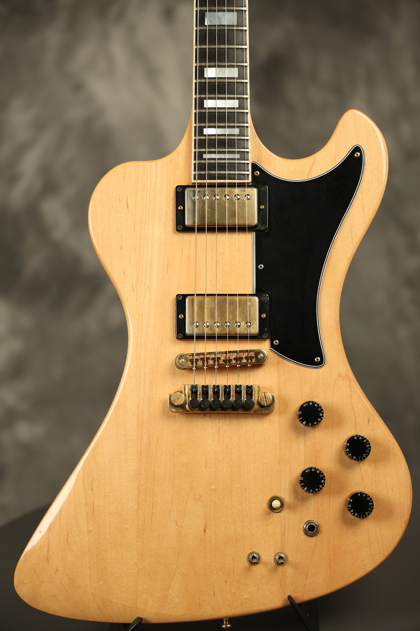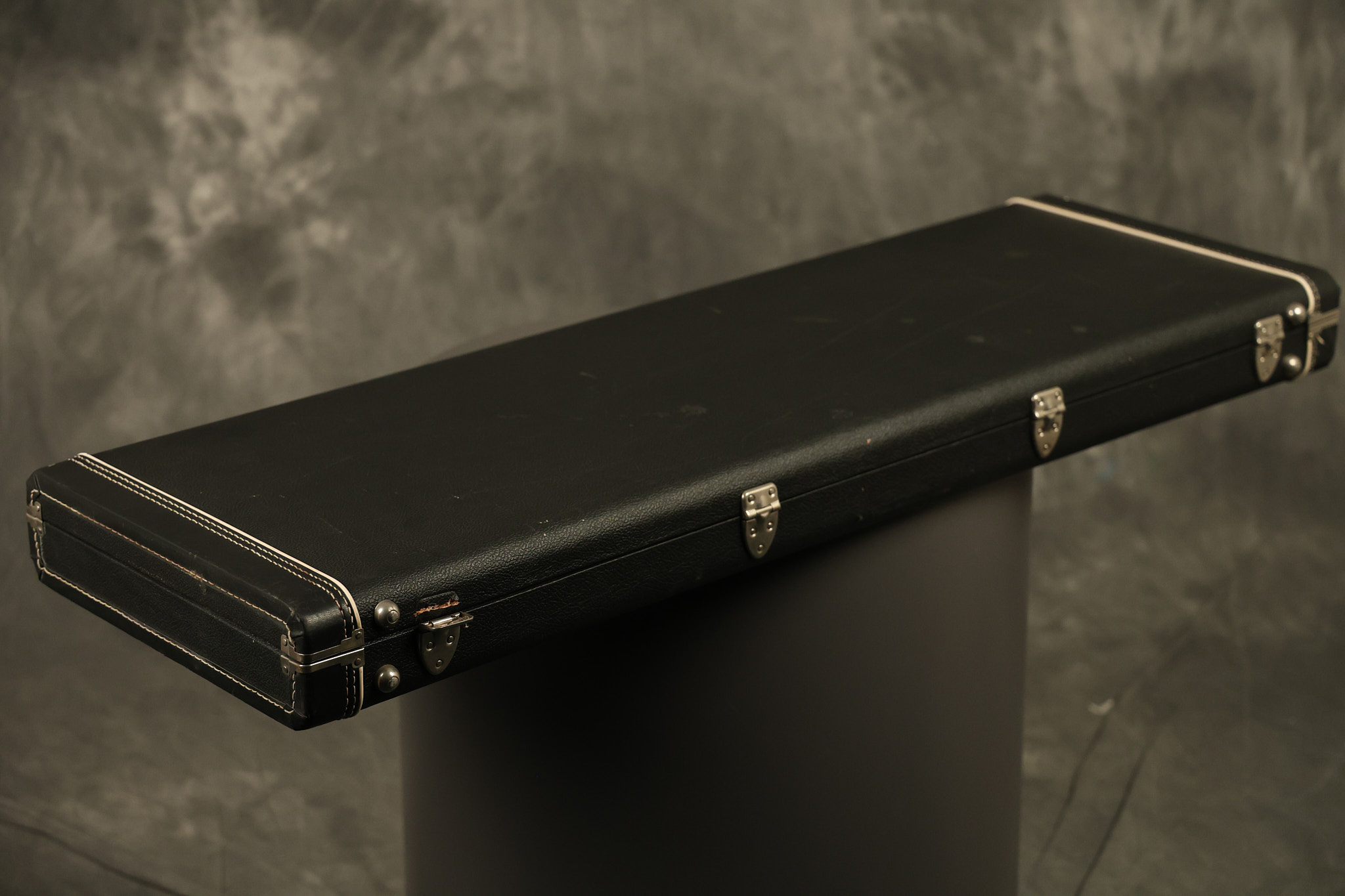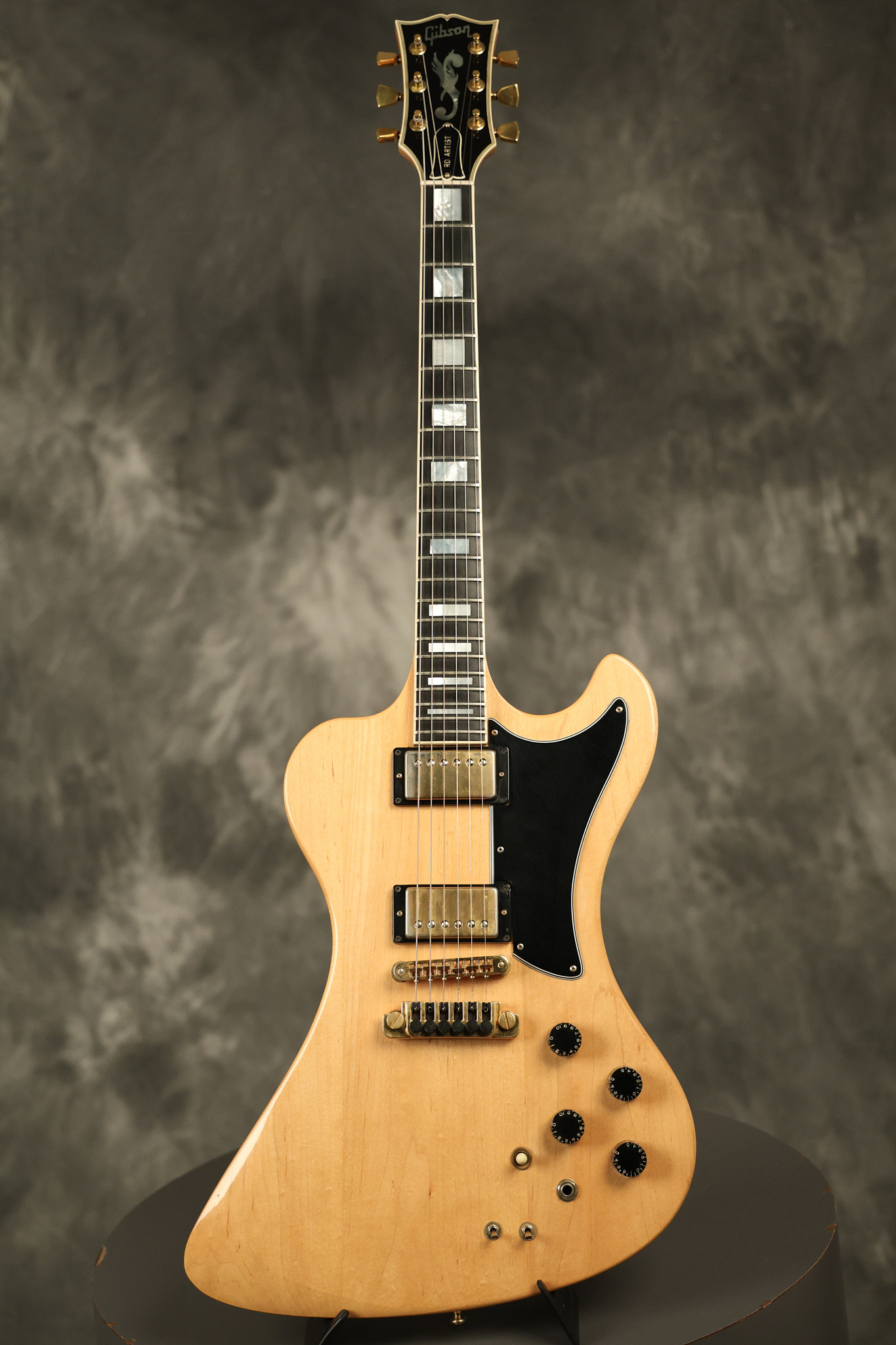 1981 Gibson RD Artist in its original Natural finish. It has a great playing neck with good frets. It's all original with the exception of the strap buttons. A non-original hardshell case is included and has one broken hinge on the bottom edge. The screw for the upper strap button had broken off inside the guitar and was extracted before the hole was filled with a hardwood dowel where the new strap button is now installed. This RD Artist is in very good condition with one small chip in the wood on the upper treble side corner of the headstock, some very minor nicks + dings, very light belt buckle wear and other cosmetic wear. The guitar itself remains structurally sound. All electronics work and sound great with its factory onboard Moog active electronics which provides both Compression and Expansion effects.