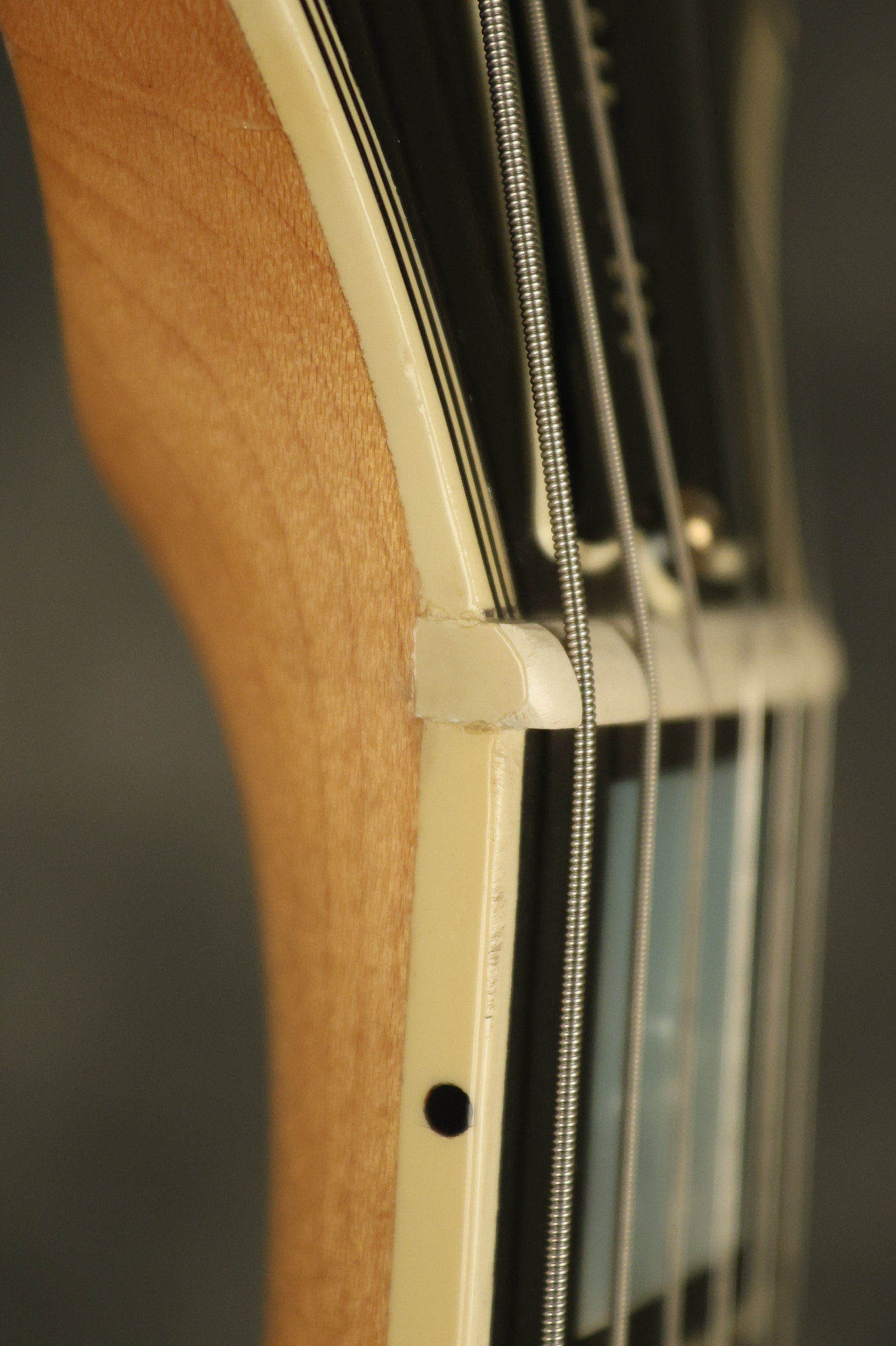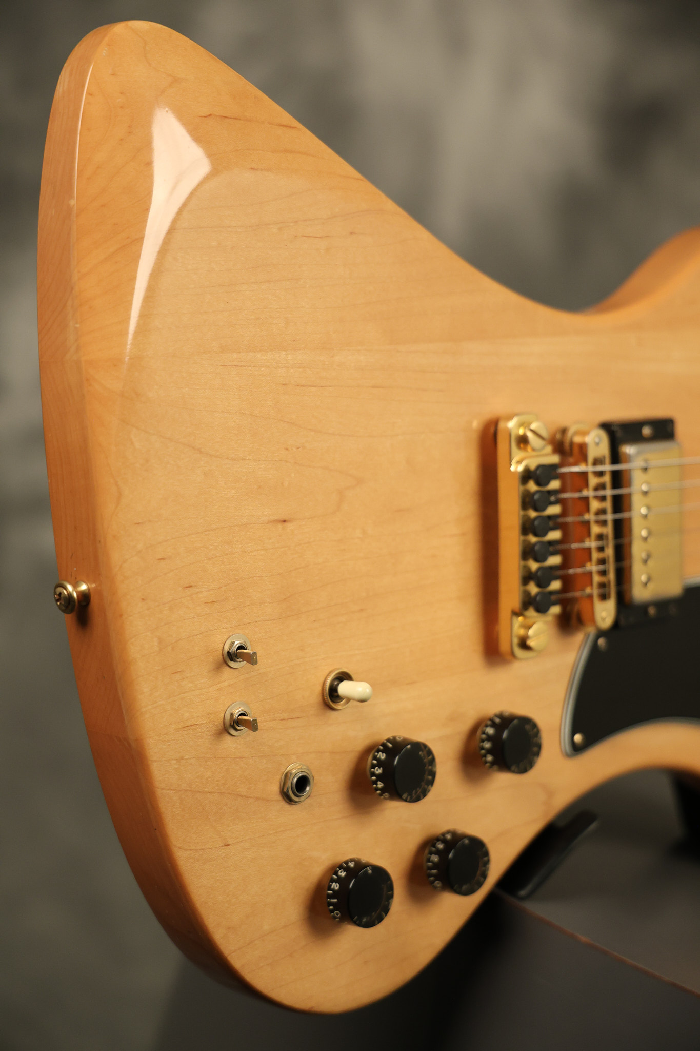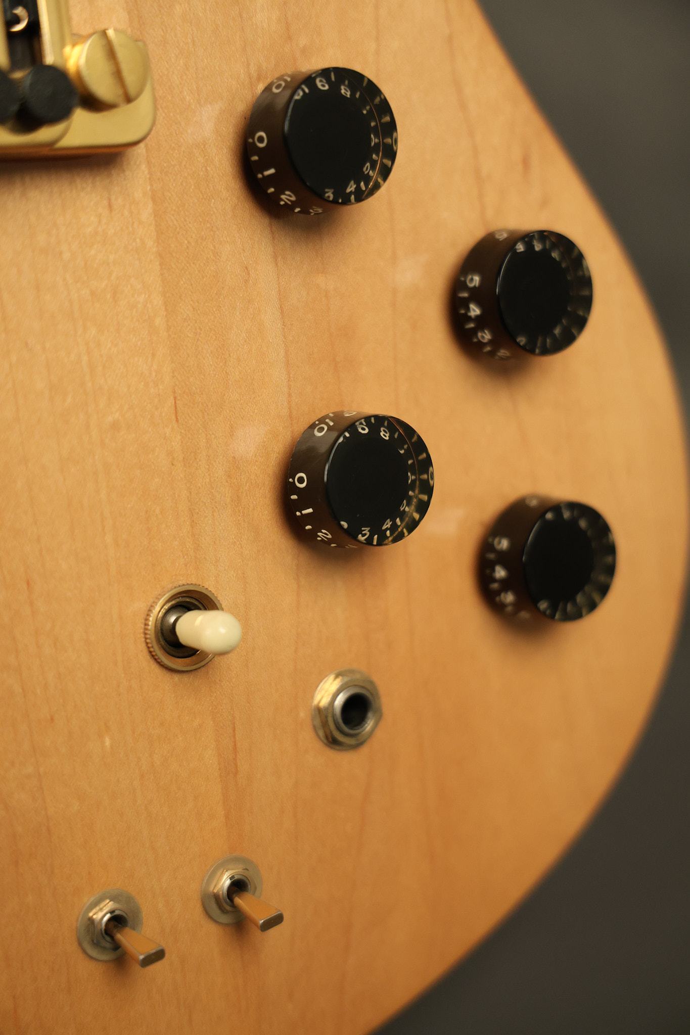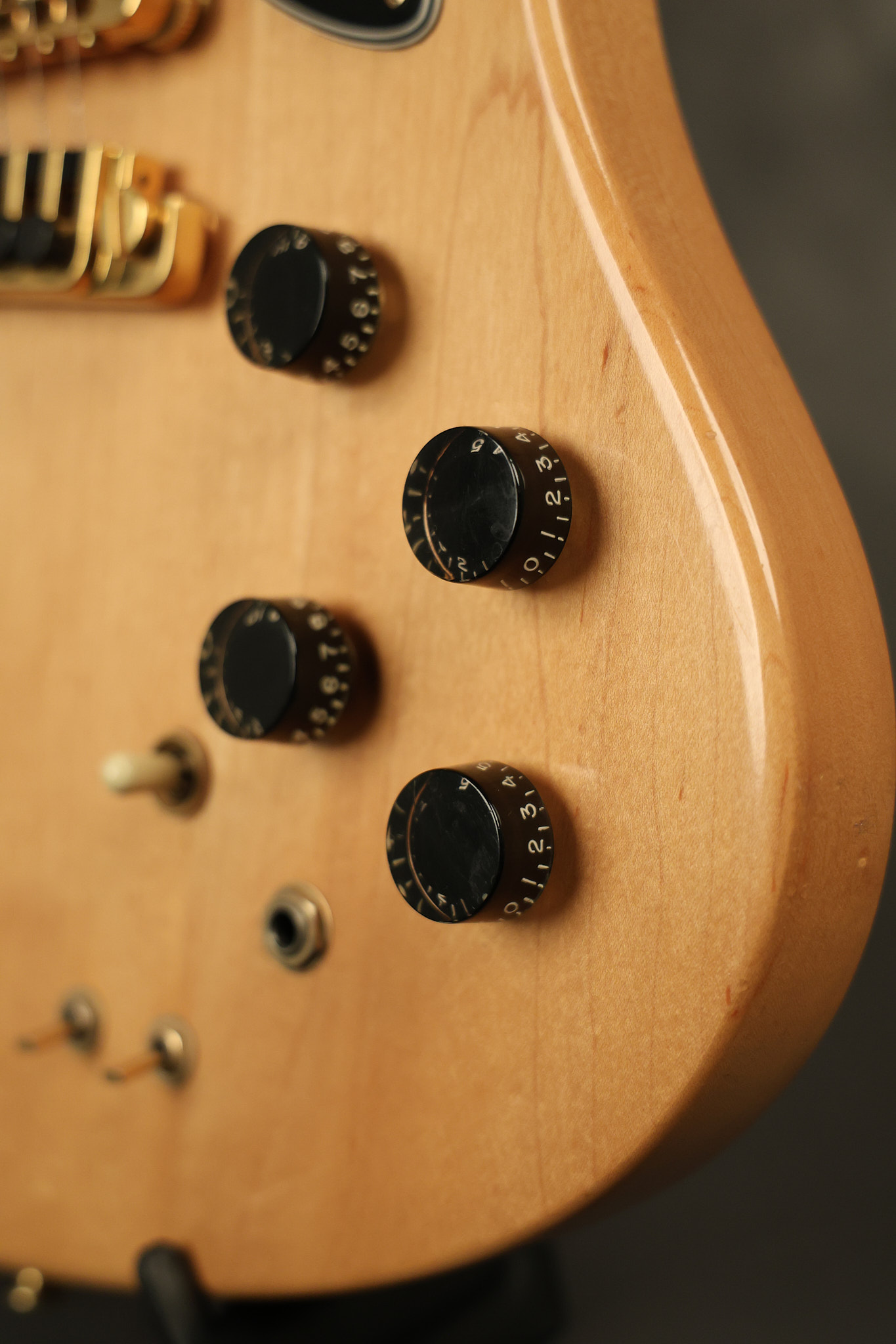 1981 Gibson RD Artist in its original Natural finish. It has a great playing neck with good frets. It's all original with the exception of the strap buttons. A non-original hardshell case is included and has one broken hinge on the bottom edge. The screw for the upper strap button had broken off inside the guitar and was extracted before the hole was filled with a hardwood dowel where the new strap button is now installed. This RD Artist is in very good condition with one small chip in the wood on the upper treble side corner of the headstock, some very minor nicks + dings, very light belt buckle wear and other cosmetic wear. The guitar itself remains structurally sound. All electronics work and sound great with its factory onboard Moog active electronics which provides both Compression and Expansion effects.