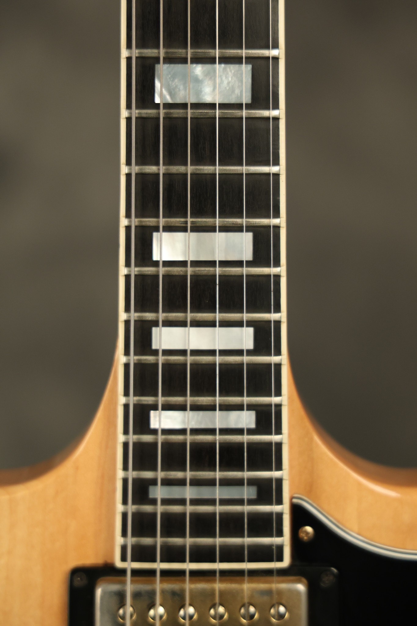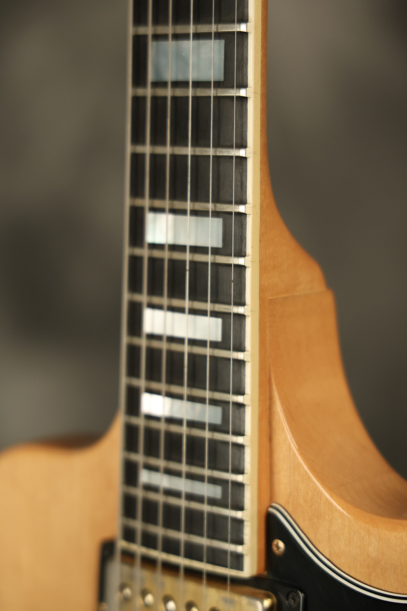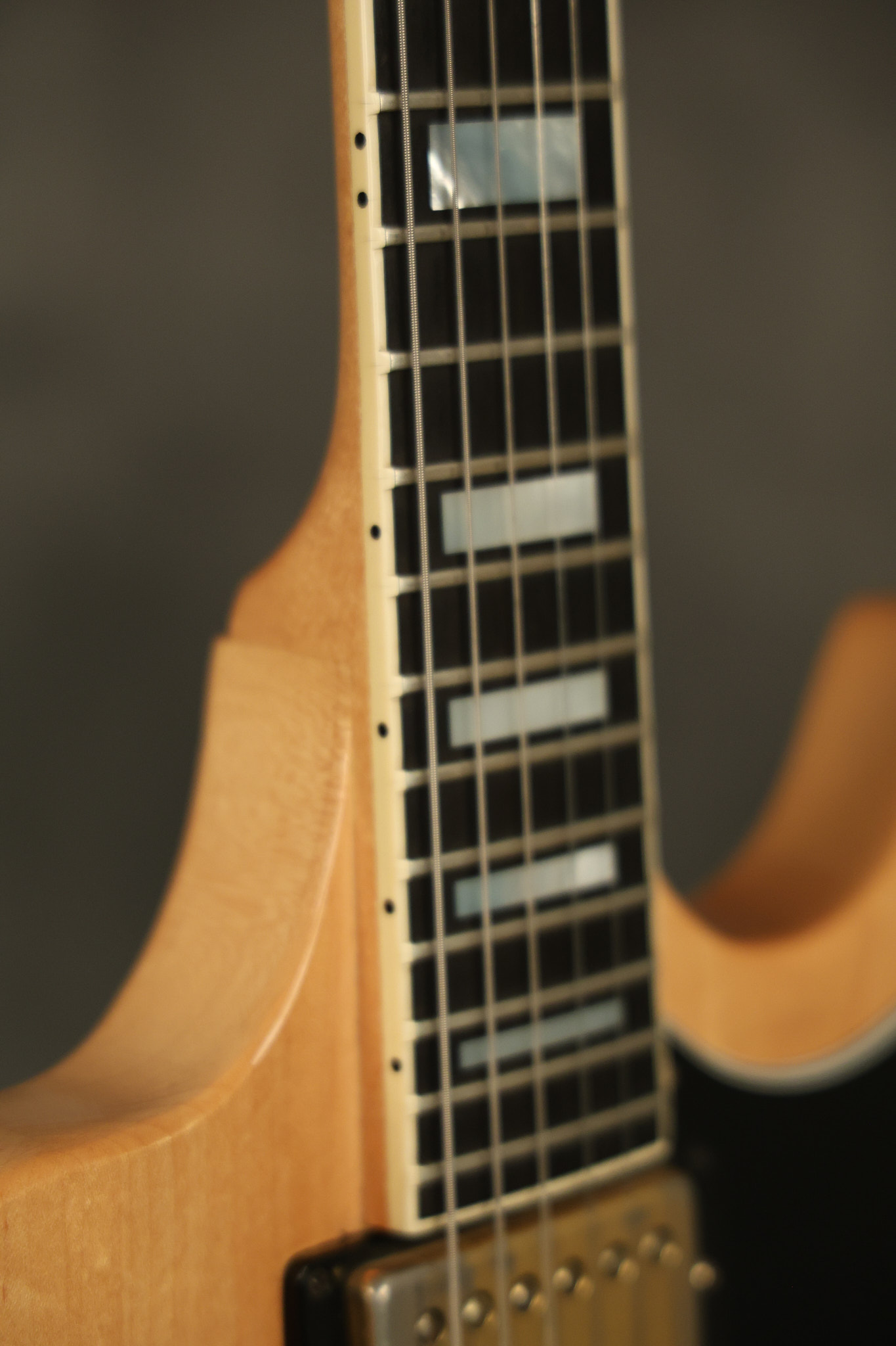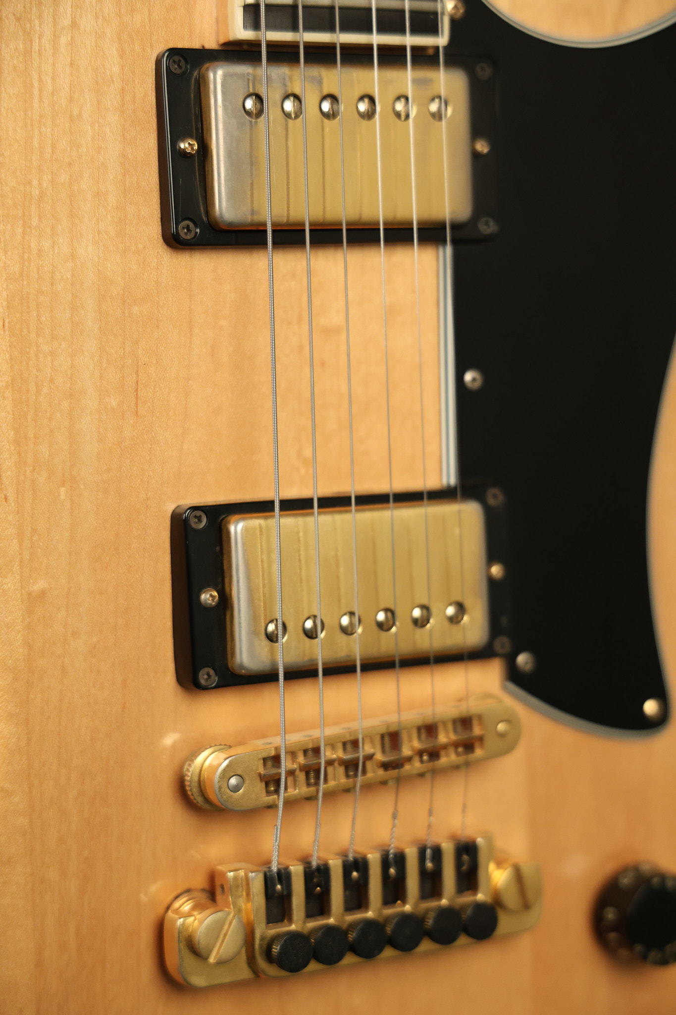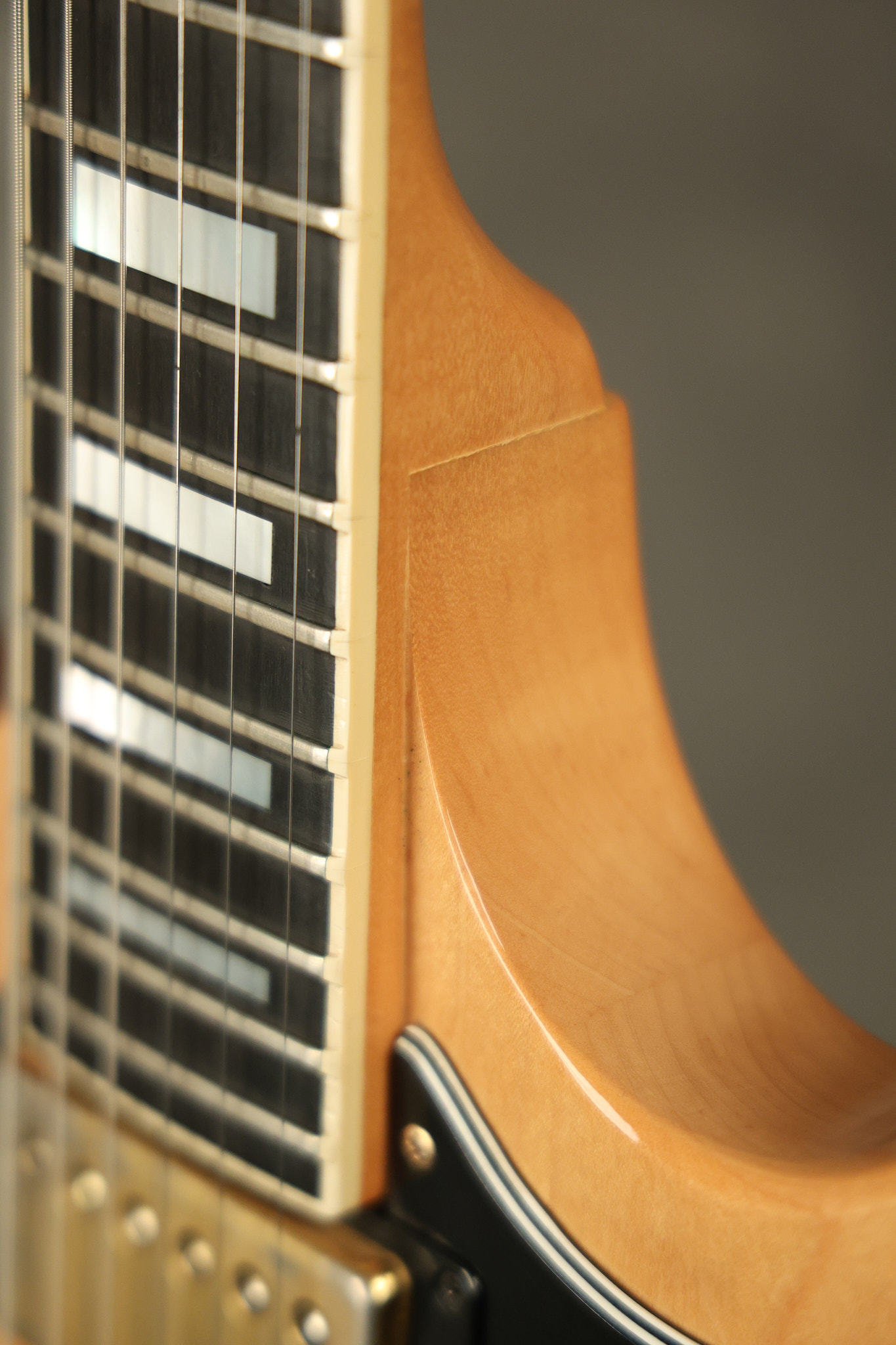 1981 Gibson RD Artist in its original Natural finish. It has a great playing neck with good frets. It's all original with the exception of the strap buttons. A non-original hardshell case is included and has one broken hinge on the bottom edge. The screw for the upper strap button had broken off inside the guitar and was extracted before the hole was filled with a hardwood dowel where the new strap button is now installed. This RD Artist is in very good condition with one small chip in the wood on the upper treble side corner of the headstock, some very minor nicks + dings, very light belt buckle wear and other cosmetic wear. The guitar itself remains structurally sound. All electronics work and sound great with its factory onboard Moog active electronics which provides both Compression and Expansion effects.