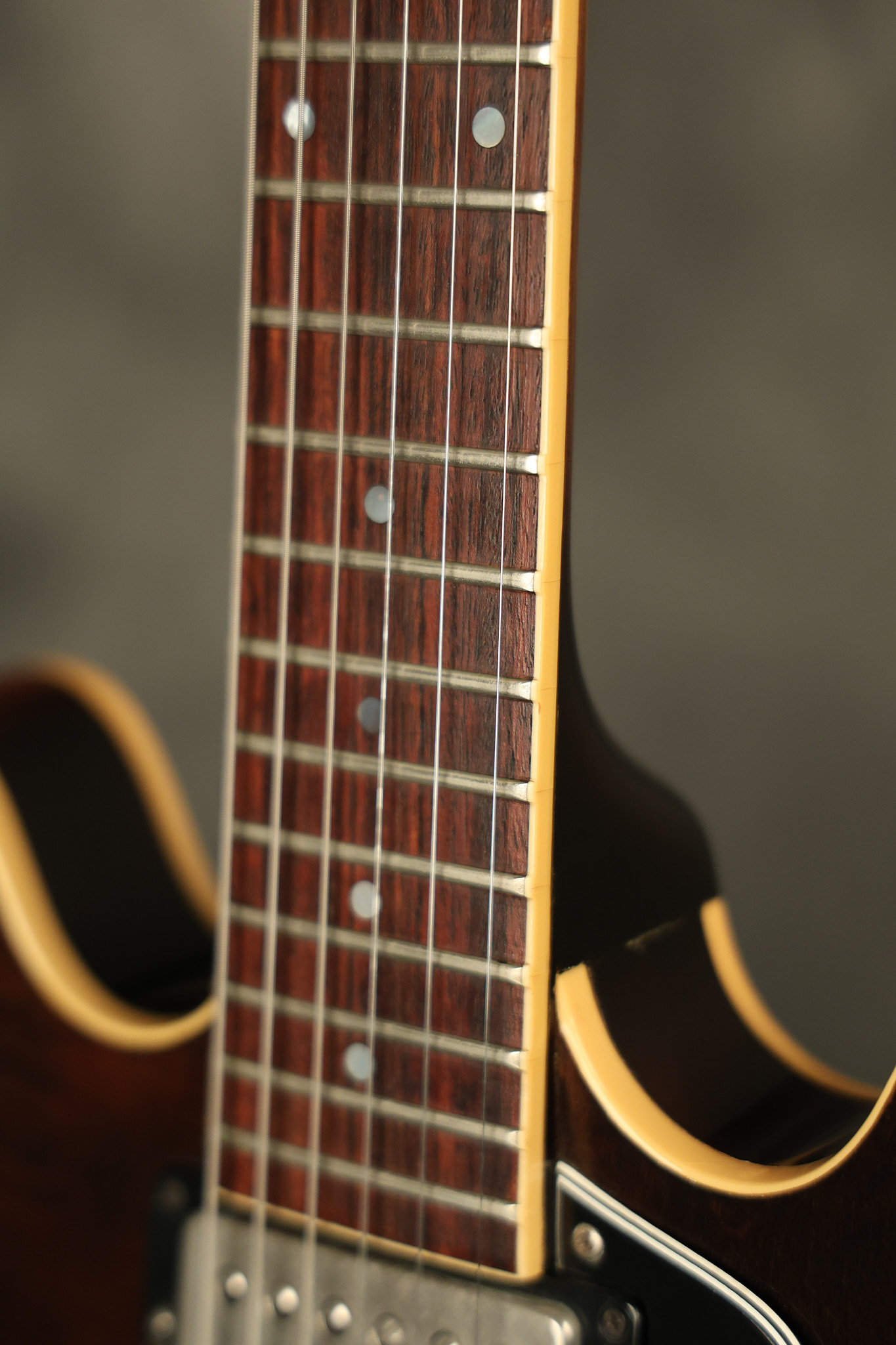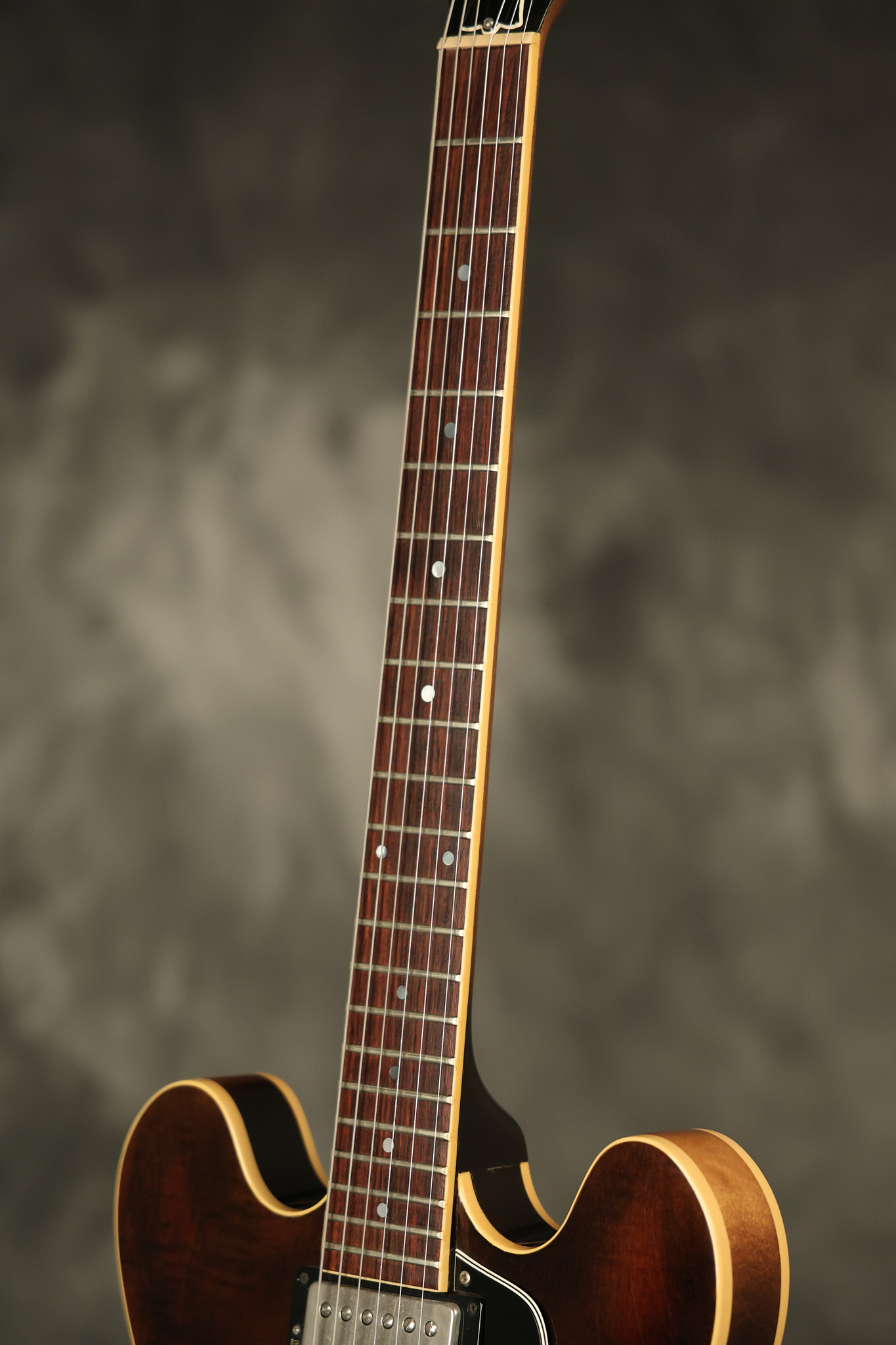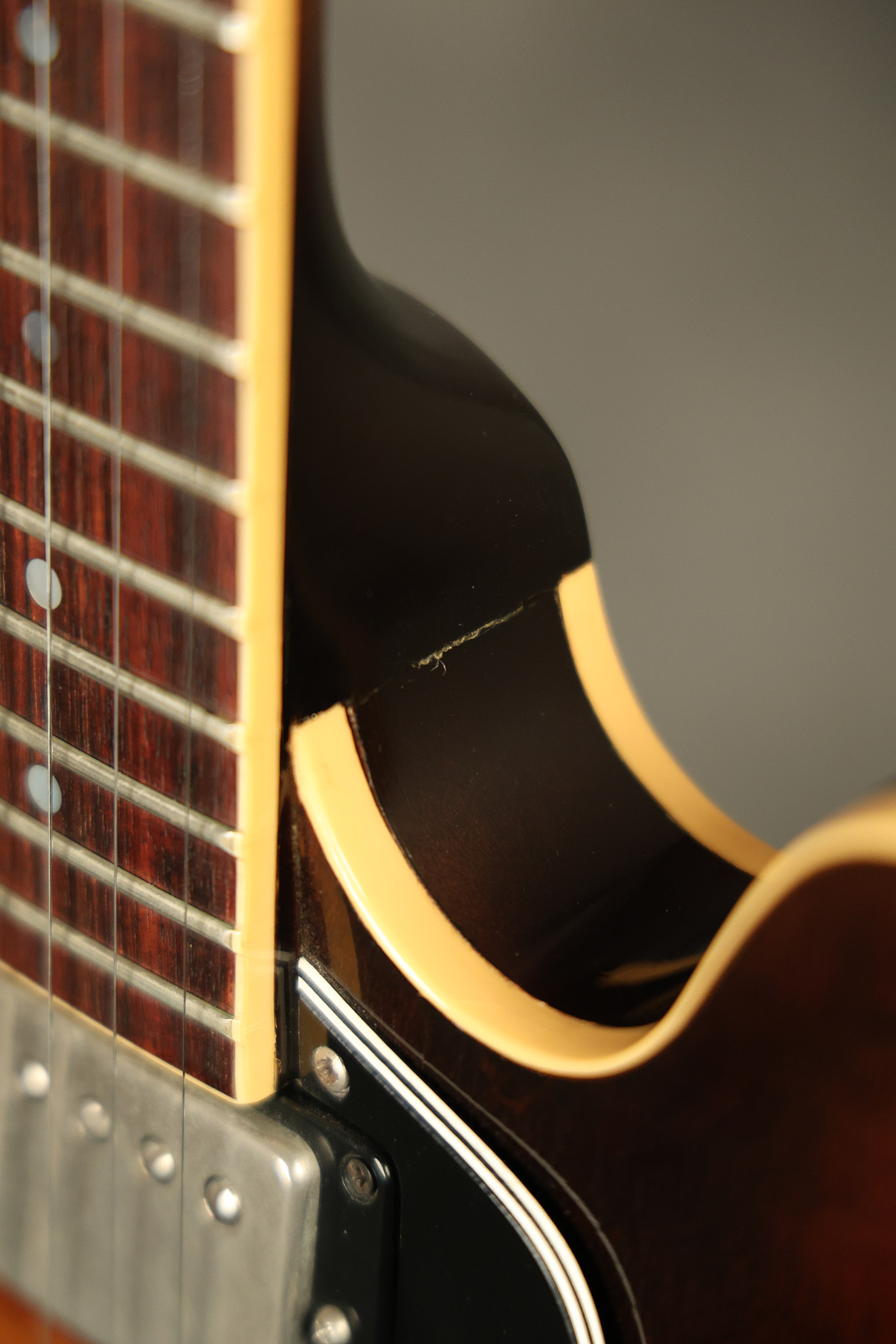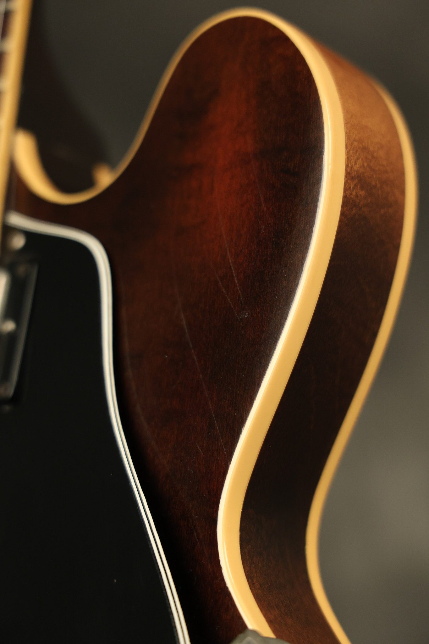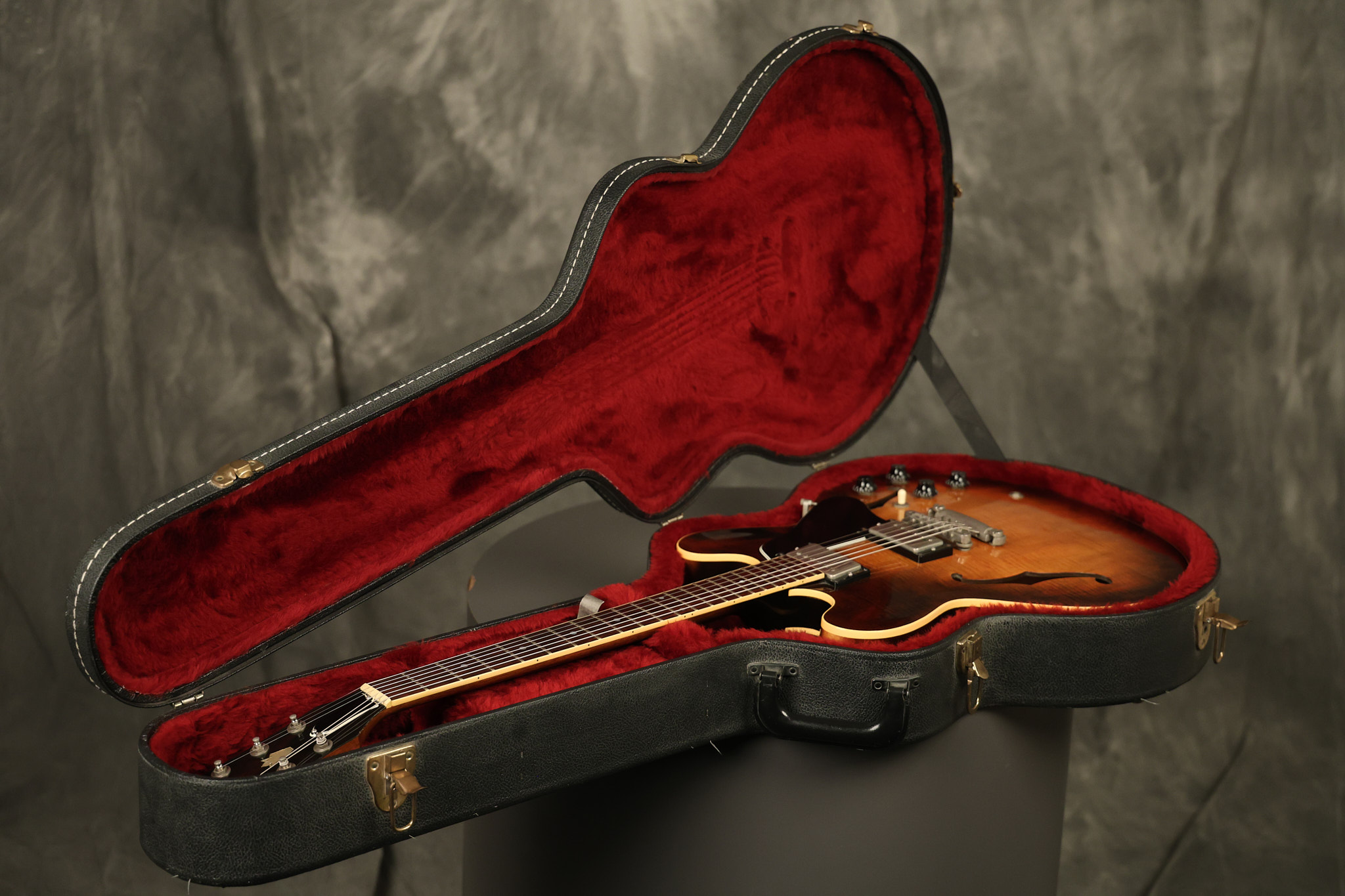 1985 Gibson Custom Shop ES-335 DOT reissue in its original Vintage Sunburst finish. It has a great playing neck with great frets. It's all original and 100% complete along with its original hardshell case. Both of the PAF stickers are still on the pickup surrounds. This early Custom Shop DOT looks great with a few very minor nicks + dings, a lot of finish checking on the top + back of the body and other cosmetic wear including some scratches around the lower tone knob. Everything remains structurally sound with no cracks, breaks or repairs. All electronics work and sound great.