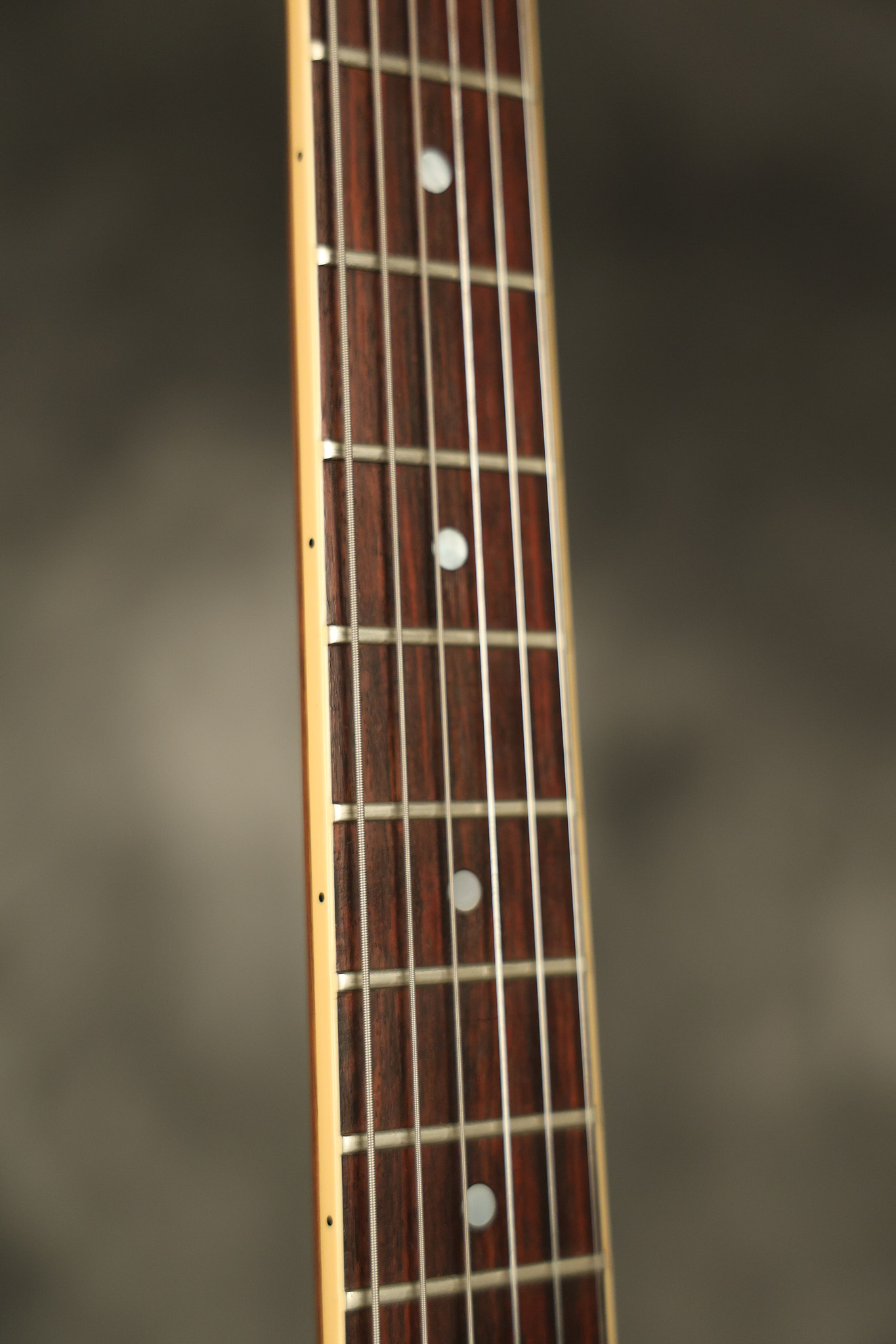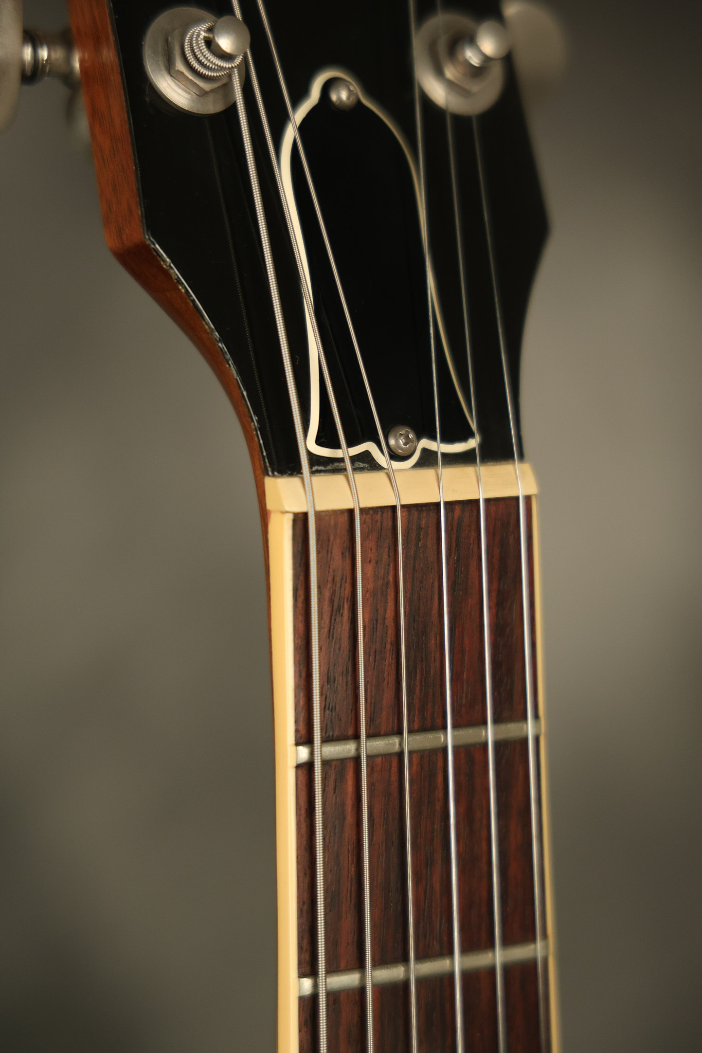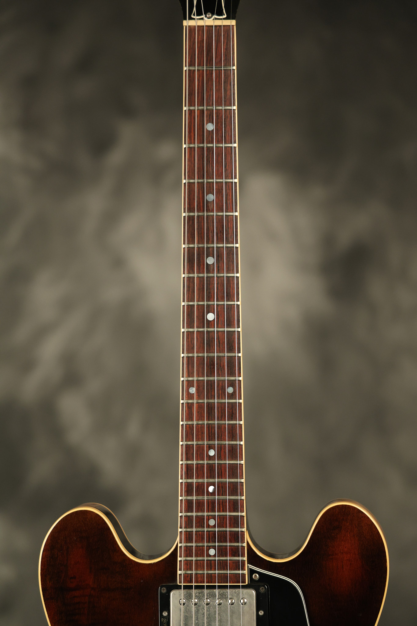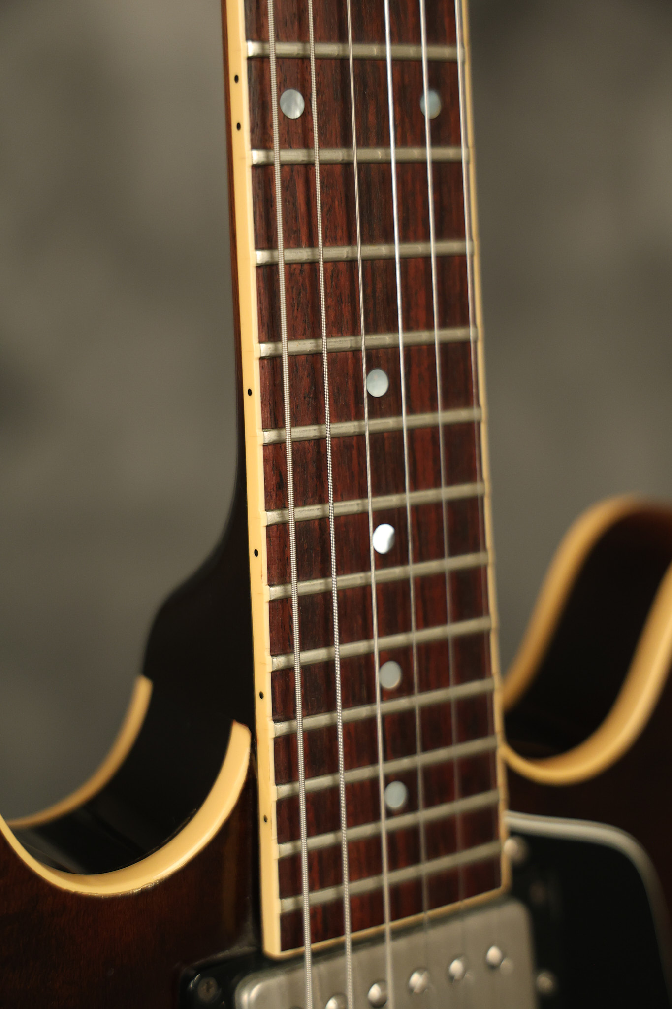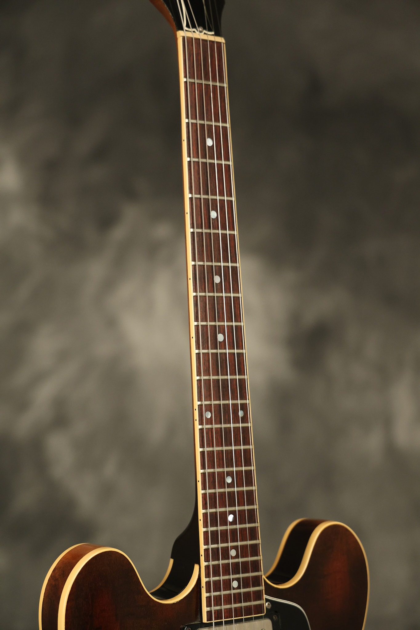 1985 Gibson Custom Shop ES-335 DOT reissue in its original Vintage Sunburst finish. It has a great playing neck with great frets. It's all original and 100% complete along with its original hardshell case. Both of the PAF stickers are still on the pickup surrounds. This early Custom Shop DOT looks great with a few very minor nicks + dings, a lot of finish checking on the top + back of the body and other cosmetic wear including some scratches around the lower tone knob. Everything remains structurally sound with no cracks, breaks or repairs. All electronics work and sound great.