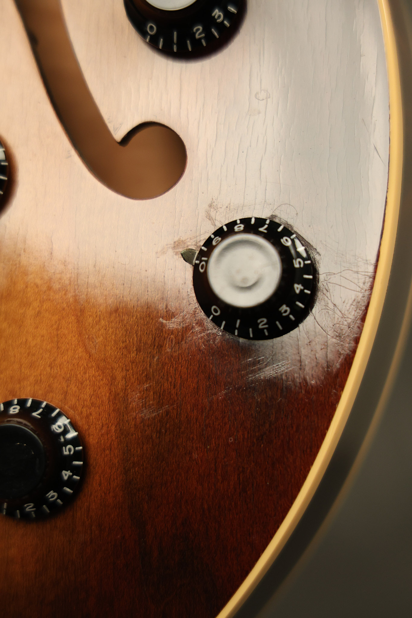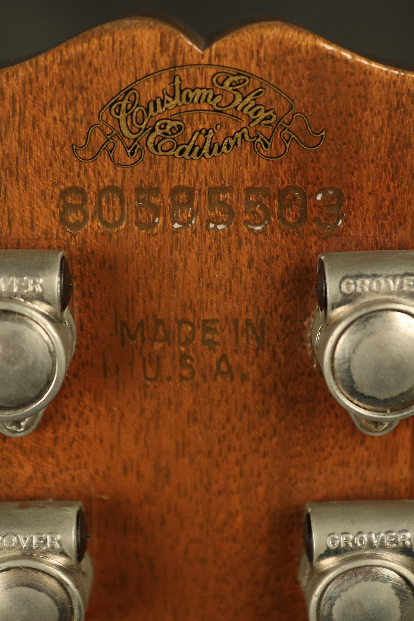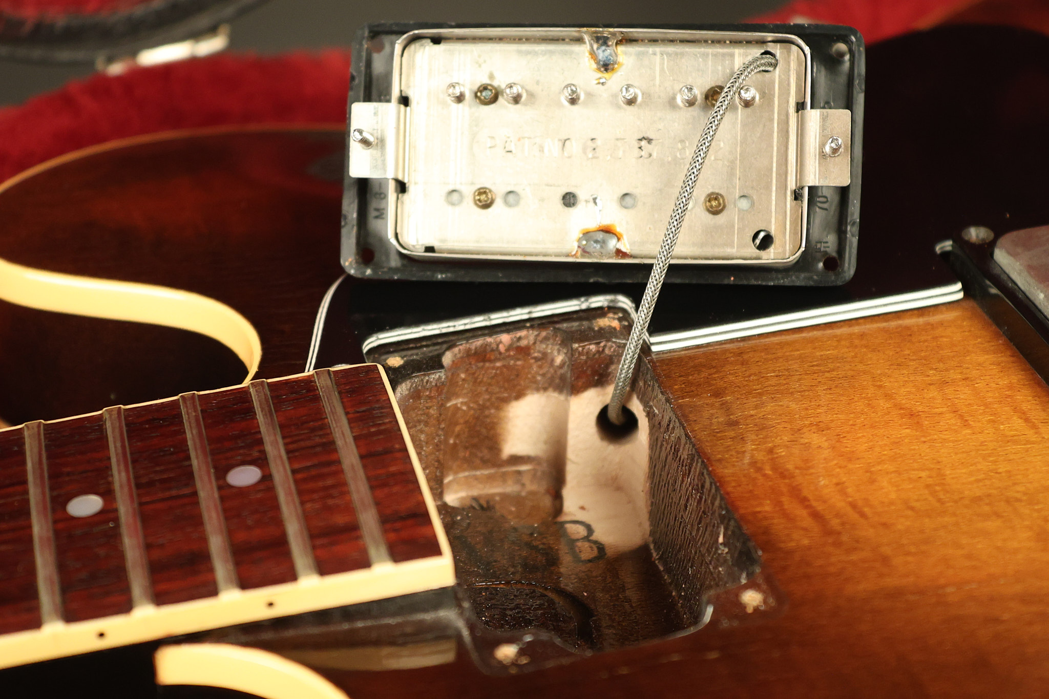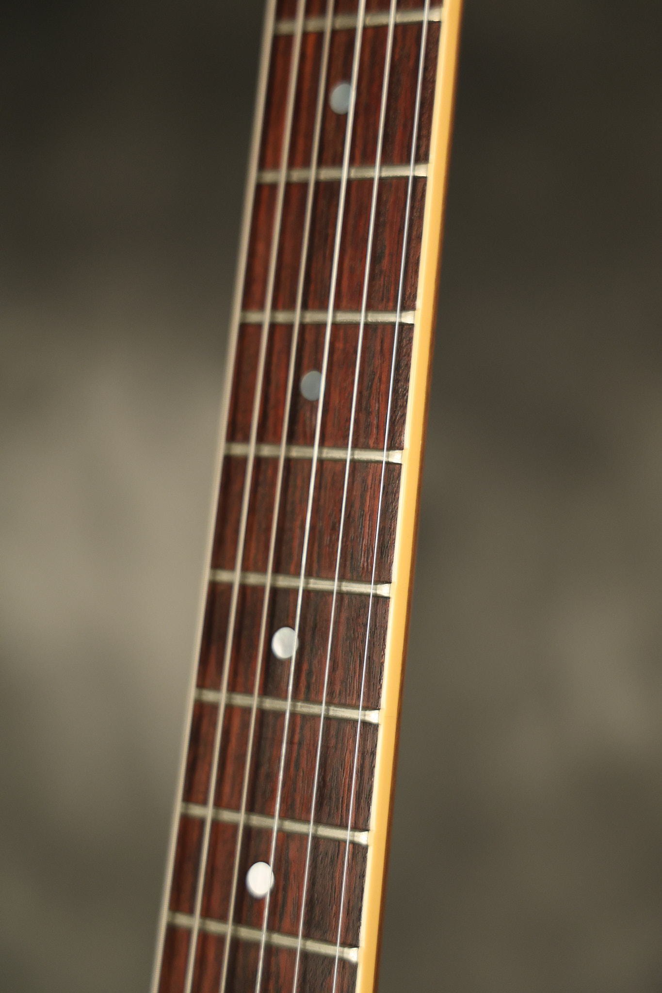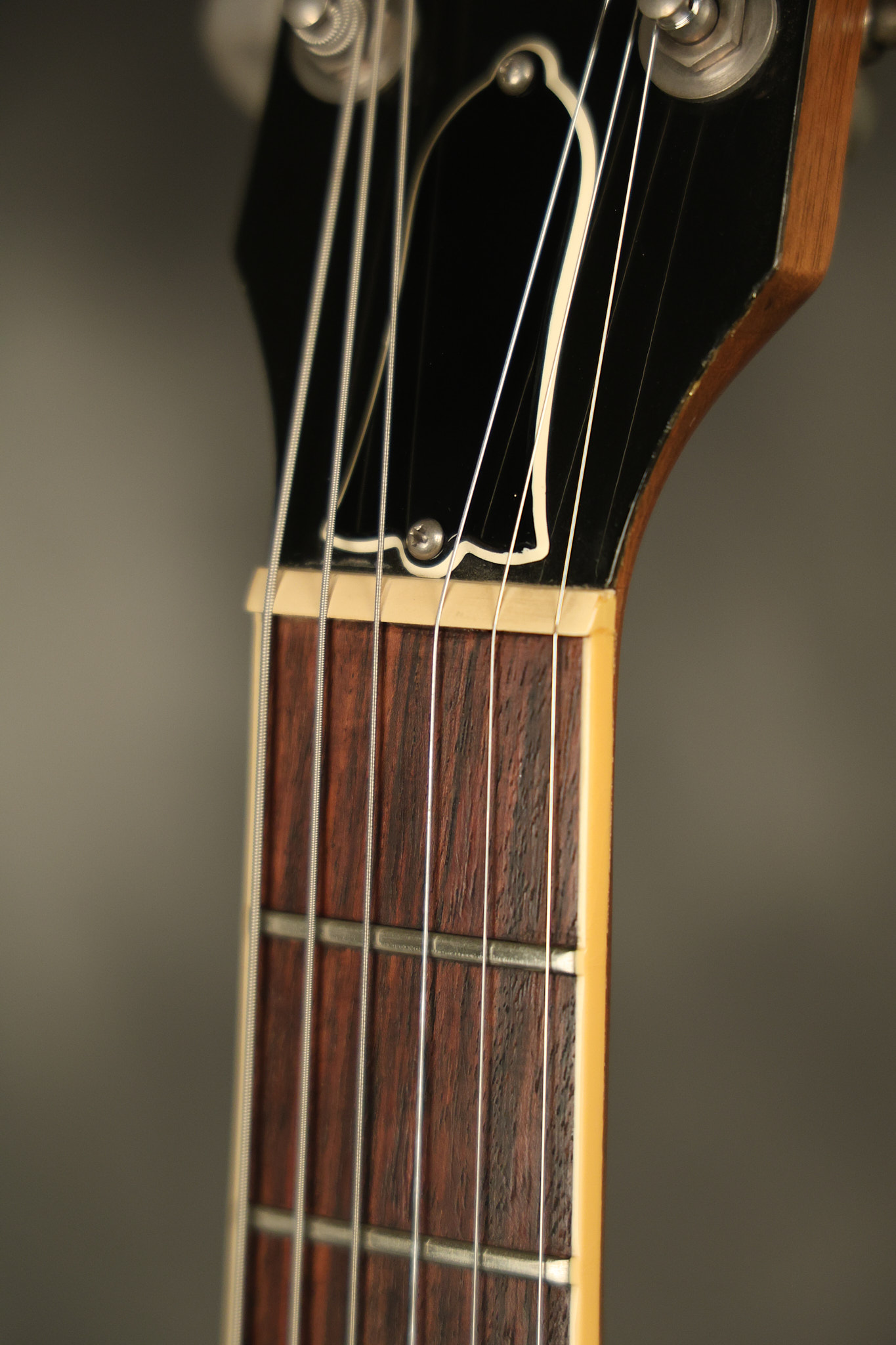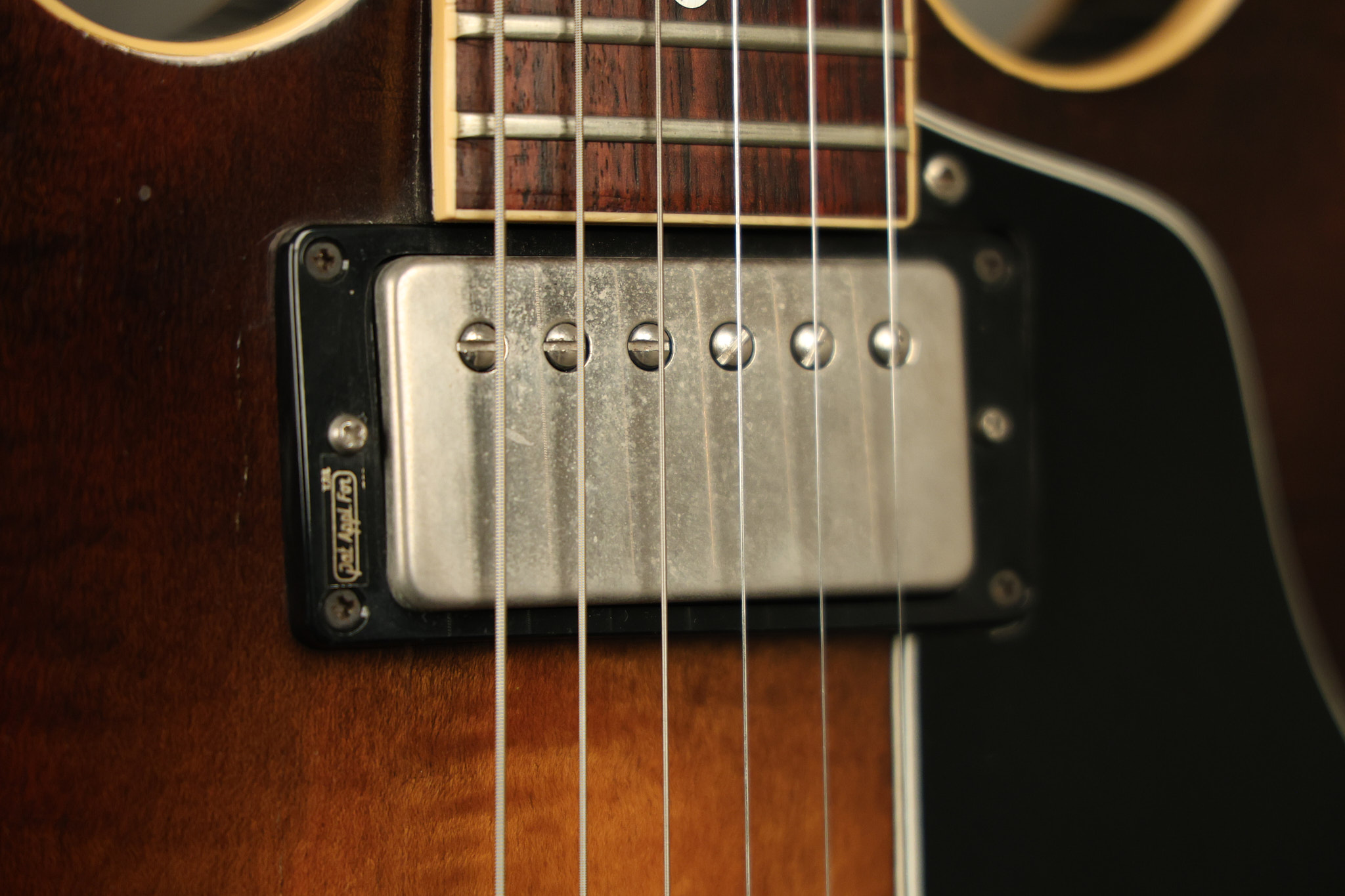 1985 Gibson Custom Shop ES-335 DOT reissue in its original Vintage Sunburst finish. It has a great playing neck with great frets. It's all original and 100% complete along with its original hardshell case. Both of the PAF stickers are still on the pickup surrounds. This early Custom Shop DOT looks great with a few very minor nicks + dings, a lot of finish checking on the top + back of the body and other cosmetic wear including some scratches around the lower tone knob. Everything remains structurally sound with no cracks, breaks or repairs. All electronics work and sound great.
