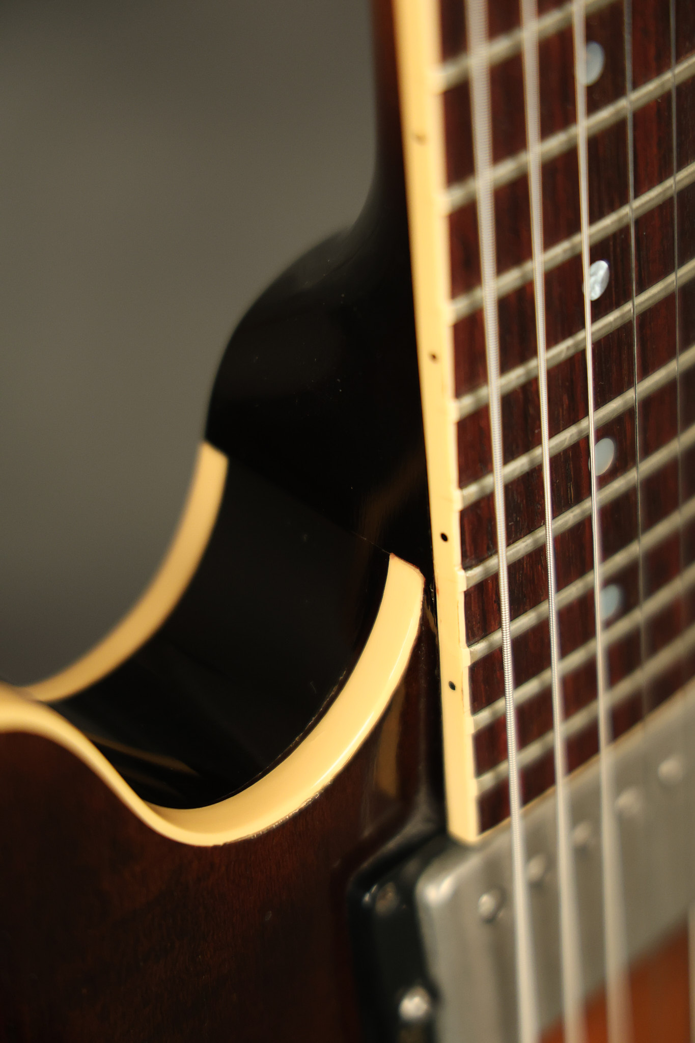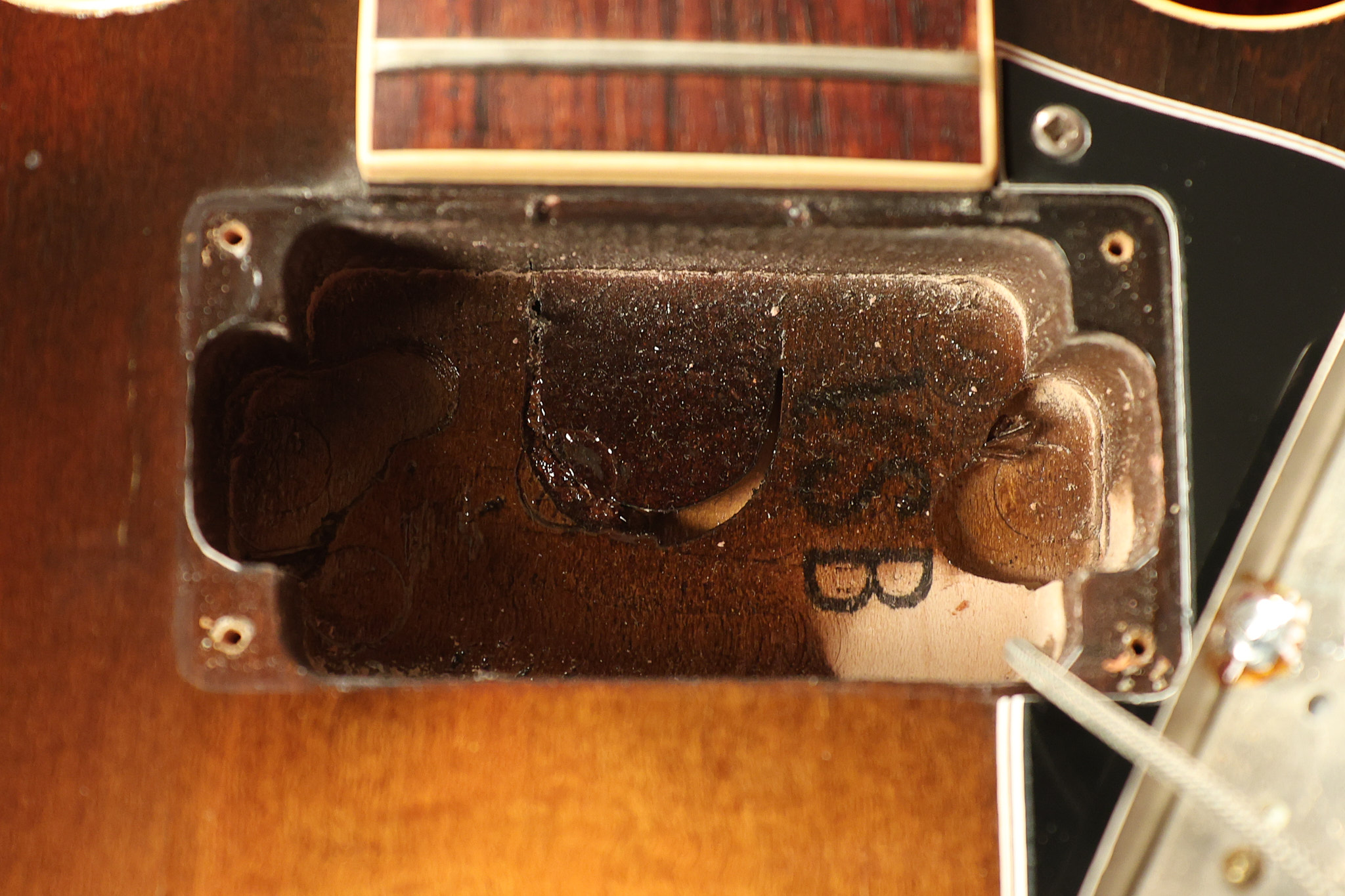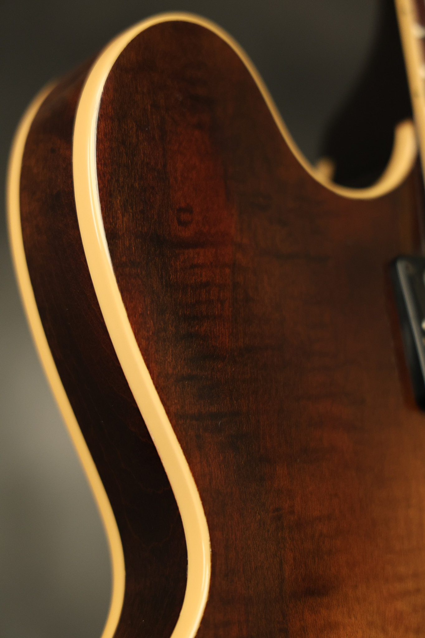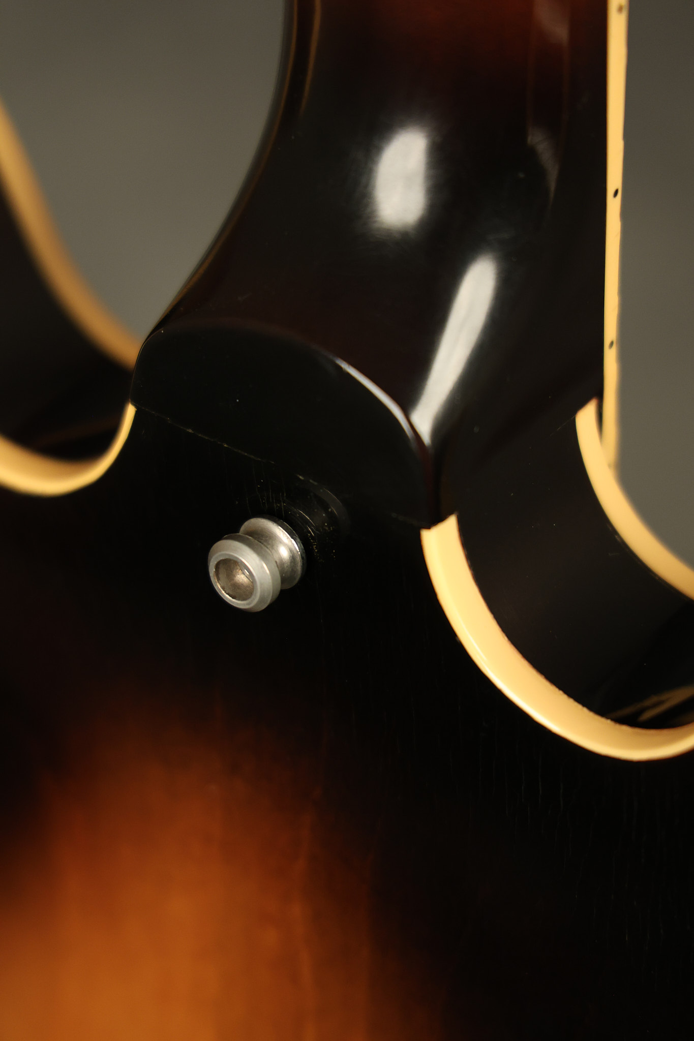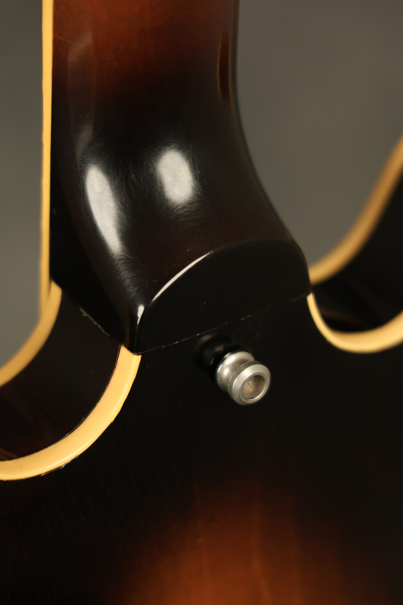 1985 Gibson Custom Shop ES-335 DOT reissue in its original Vintage Sunburst finish. It has a great playing neck with great frets. It's all original and 100% complete along with its original hardshell case. Both of the PAF stickers are still on the pickup surrounds. This early Custom Shop DOT looks great with a few very minor nicks + dings, a lot of finish checking on the top + back of the body and other cosmetic wear including some scratches around the lower tone knob. Everything remains structurally sound with no cracks, breaks or repairs. All electronics work and sound great.