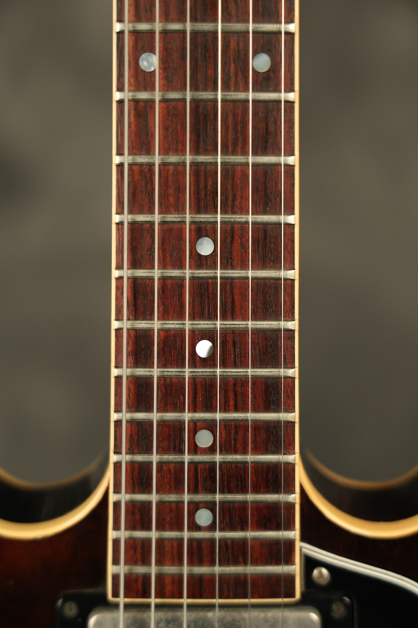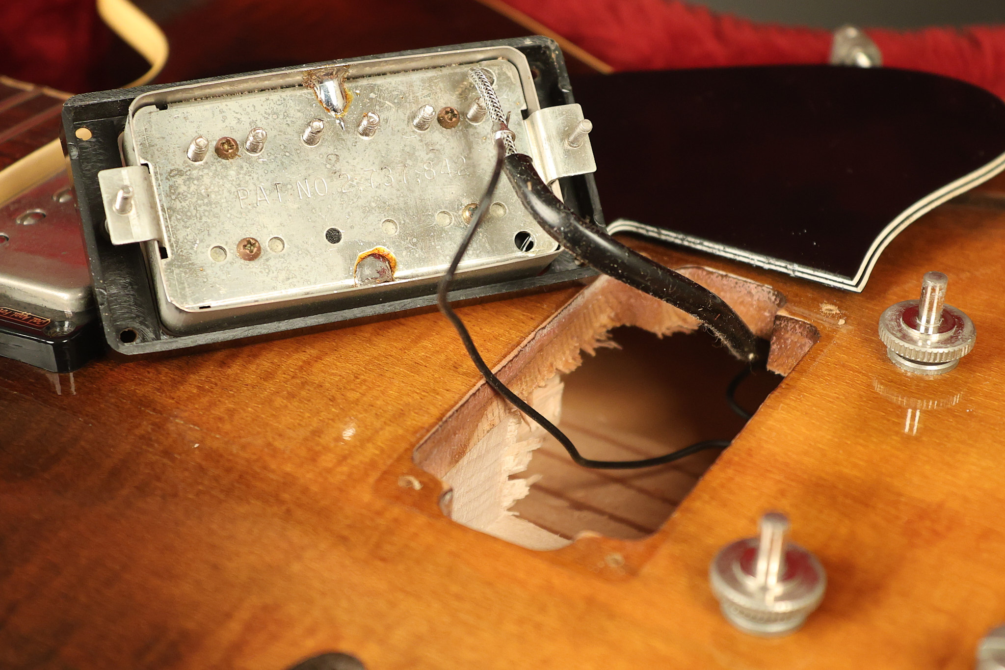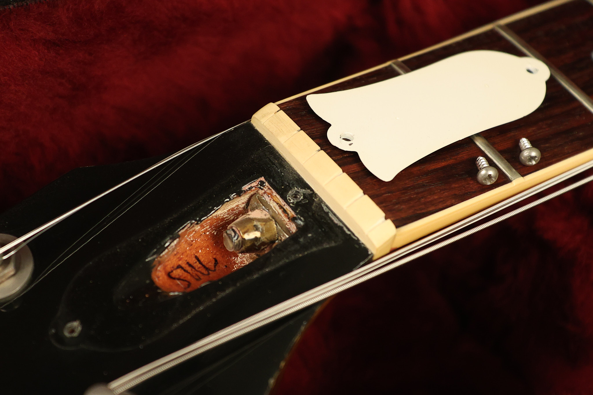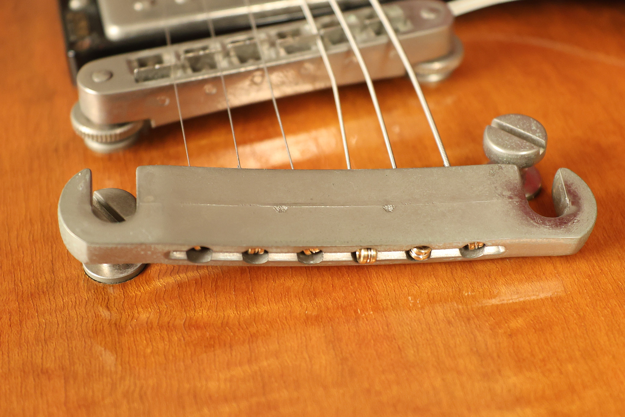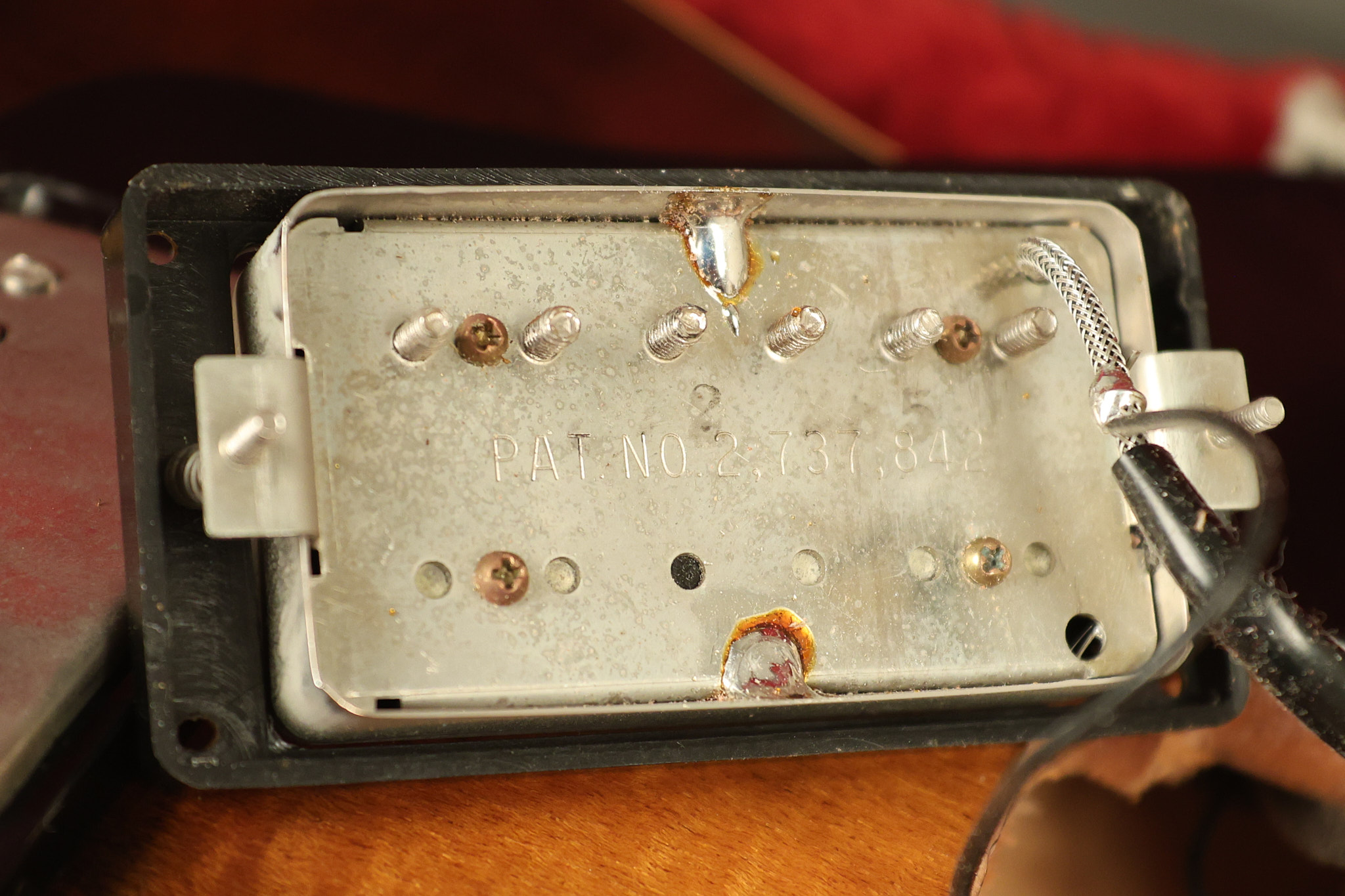 1985 Gibson Custom Shop ES-335 DOT reissue in its original Vintage Sunburst finish. It has a great playing neck with great frets. It's all original and 100% complete along with its original hardshell case. Both of the PAF stickers are still on the pickup surrounds. This early Custom Shop DOT looks great with a few very minor nicks + dings, a lot of finish checking on the top + back of the body and other cosmetic wear including some scratches around the lower tone knob. Everything remains structurally sound with no cracks, breaks or repairs. All electronics work and sound great.