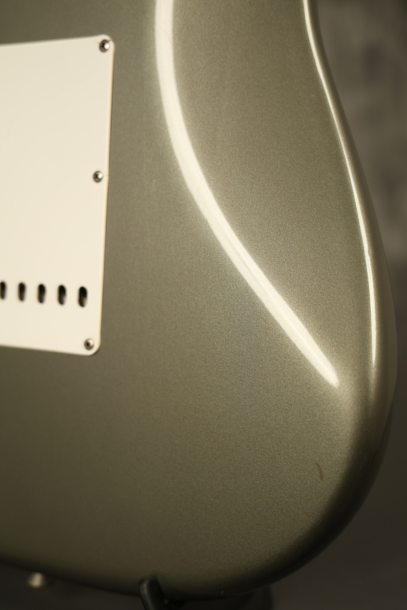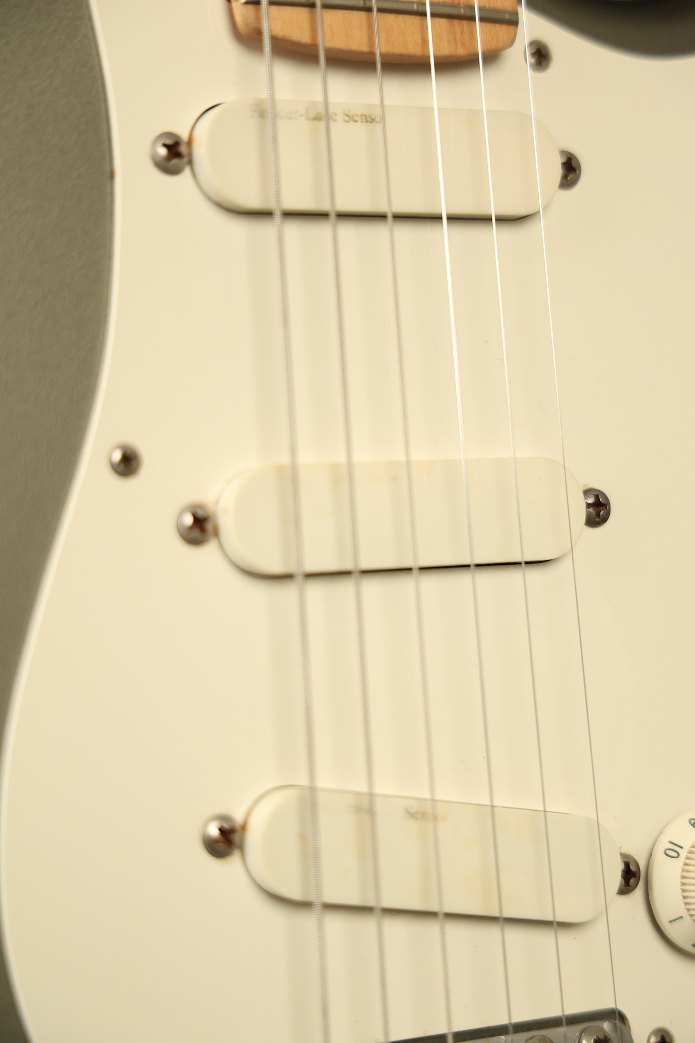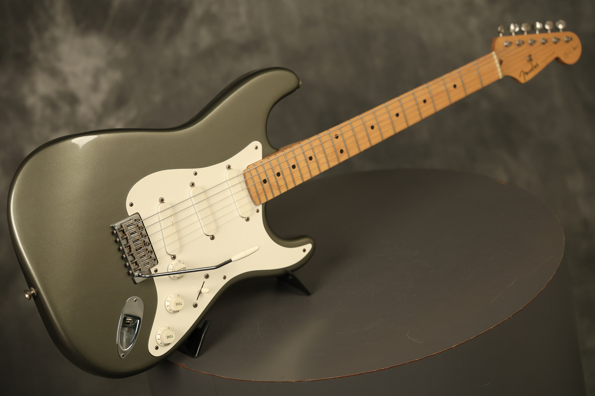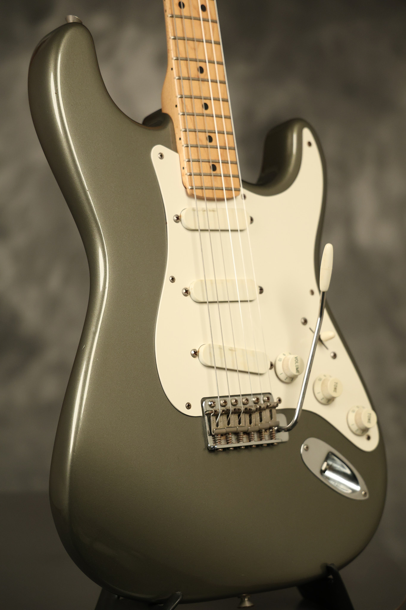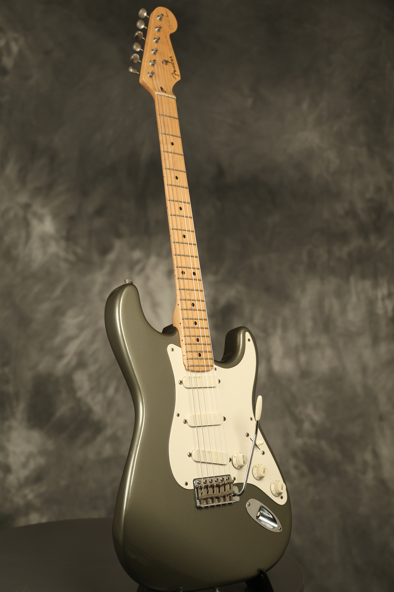 1988 Fender Eric Clapton signature Stratocaster in its original Pewter finish. It has a great playing neck with good frets. It's all original and includes the original tweed hardshell case. It's in very good condition with some minor nicks + dings, a deeper mark in the wood on the lower treble edge of the body, cracked corners on the plastic tremolo cover on back and other cosmetic wear including some tiny very light marks in the finish on the back of the neck behind the 5th/6th fret area. The guitar itself remains structurally sound with no cracks, breaks or repairs. All electronics work and sound great.