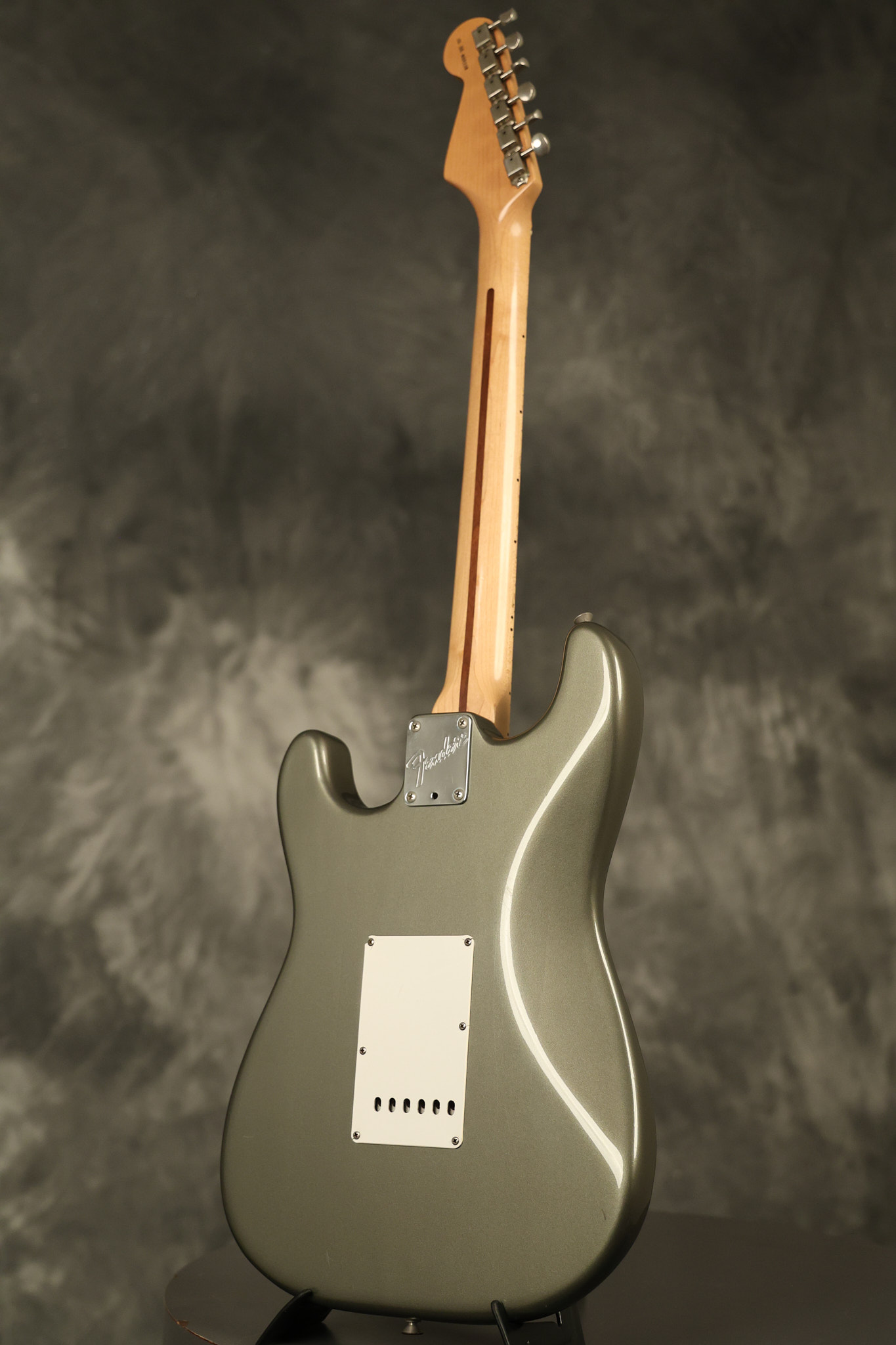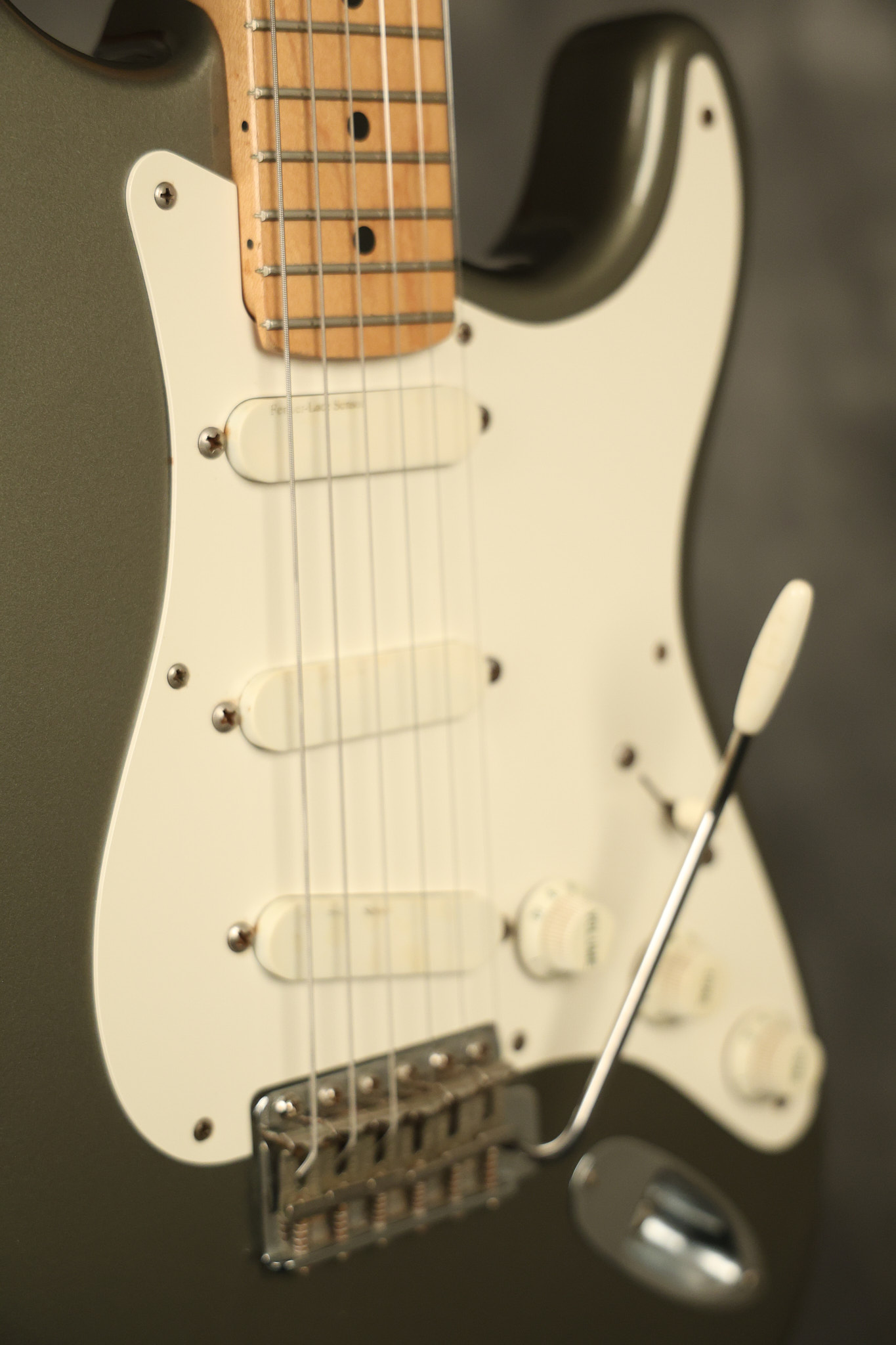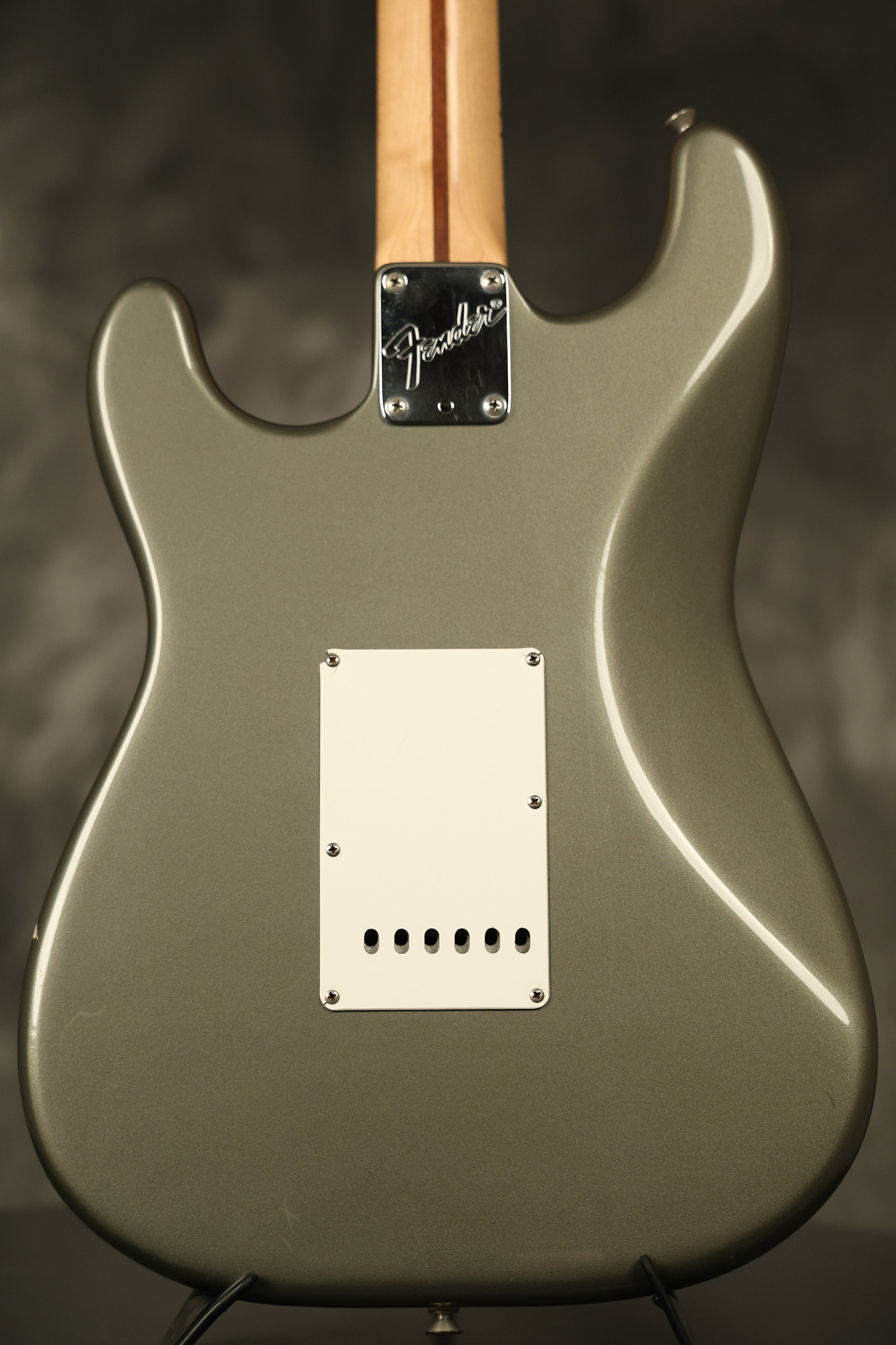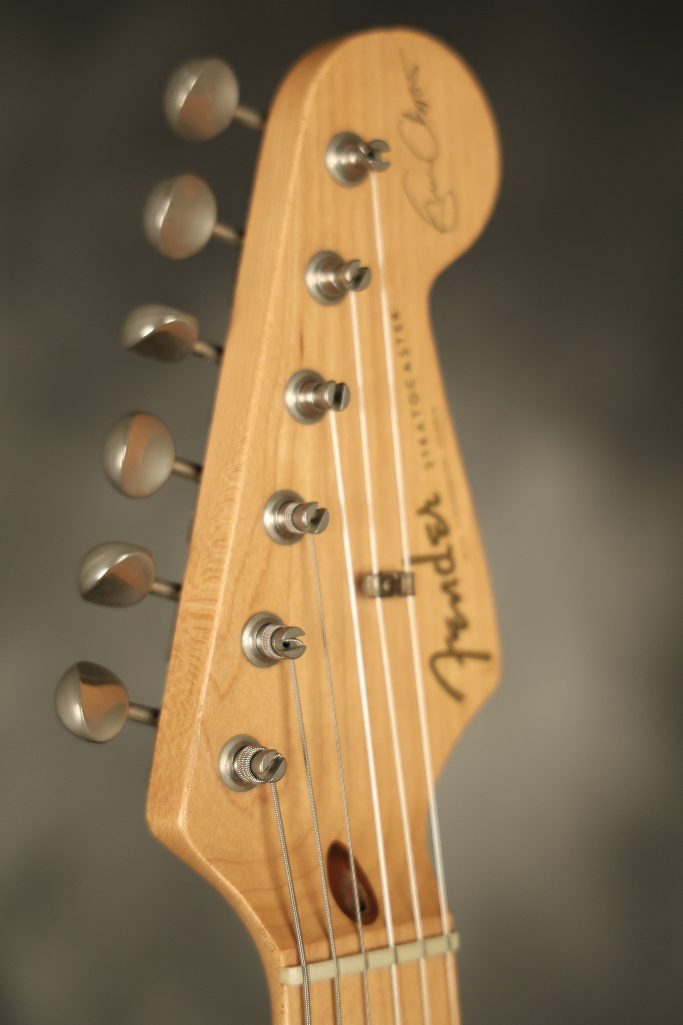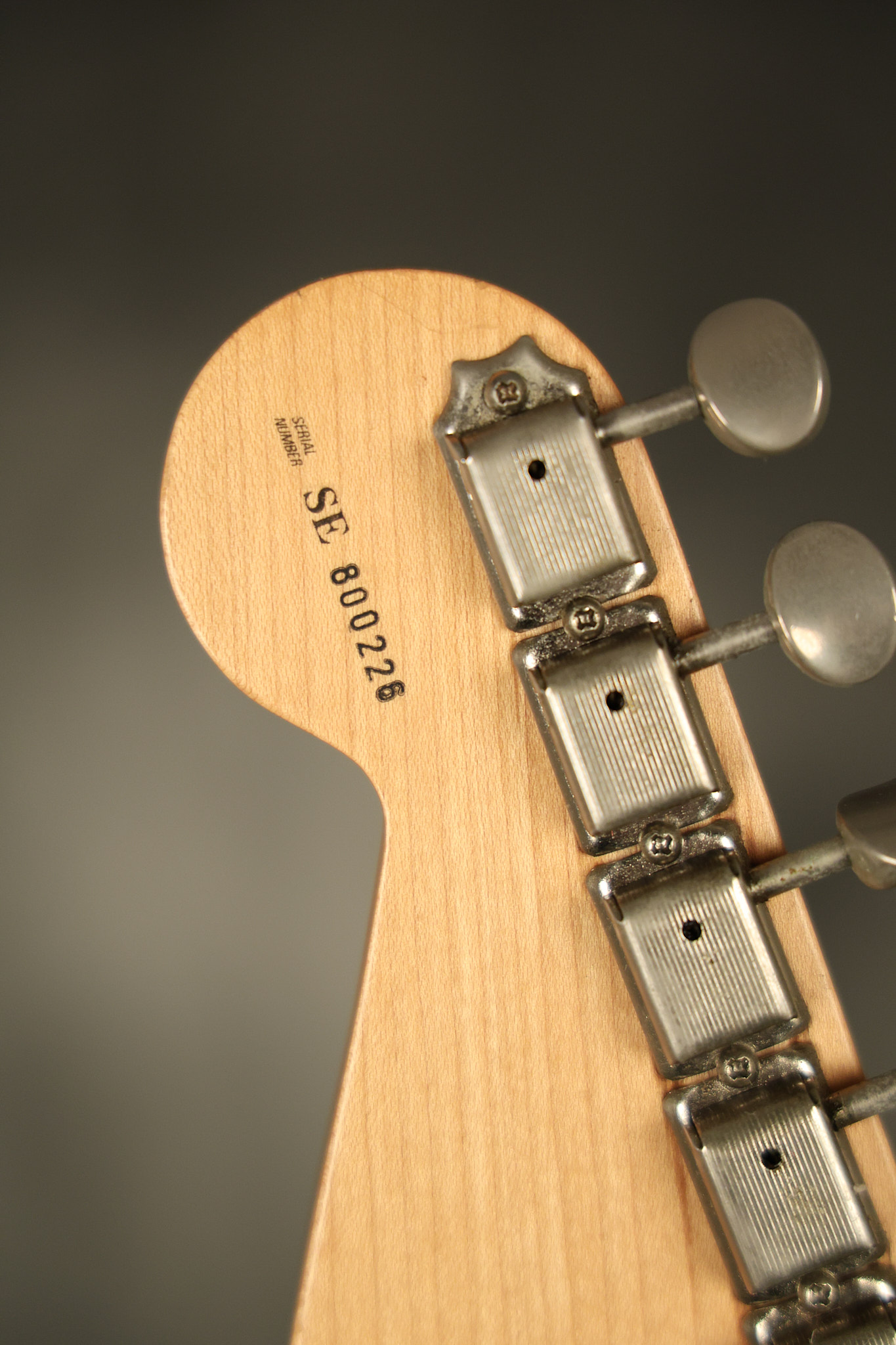 1988 Fender Eric Clapton signature Stratocaster in its original Pewter finish. It has a great playing neck with good frets. It's all original and includes the original tweed hardshell case. It's in very good condition with some minor nicks + dings, a deeper mark in the wood on the lower treble edge of the body, cracked corners on the plastic tremolo cover on back and other cosmetic wear including some tiny very light marks in the finish on the back of the neck behind the 5th/6th fret area. The guitar itself remains structurally sound with no cracks, breaks or repairs. All electronics work and sound great.