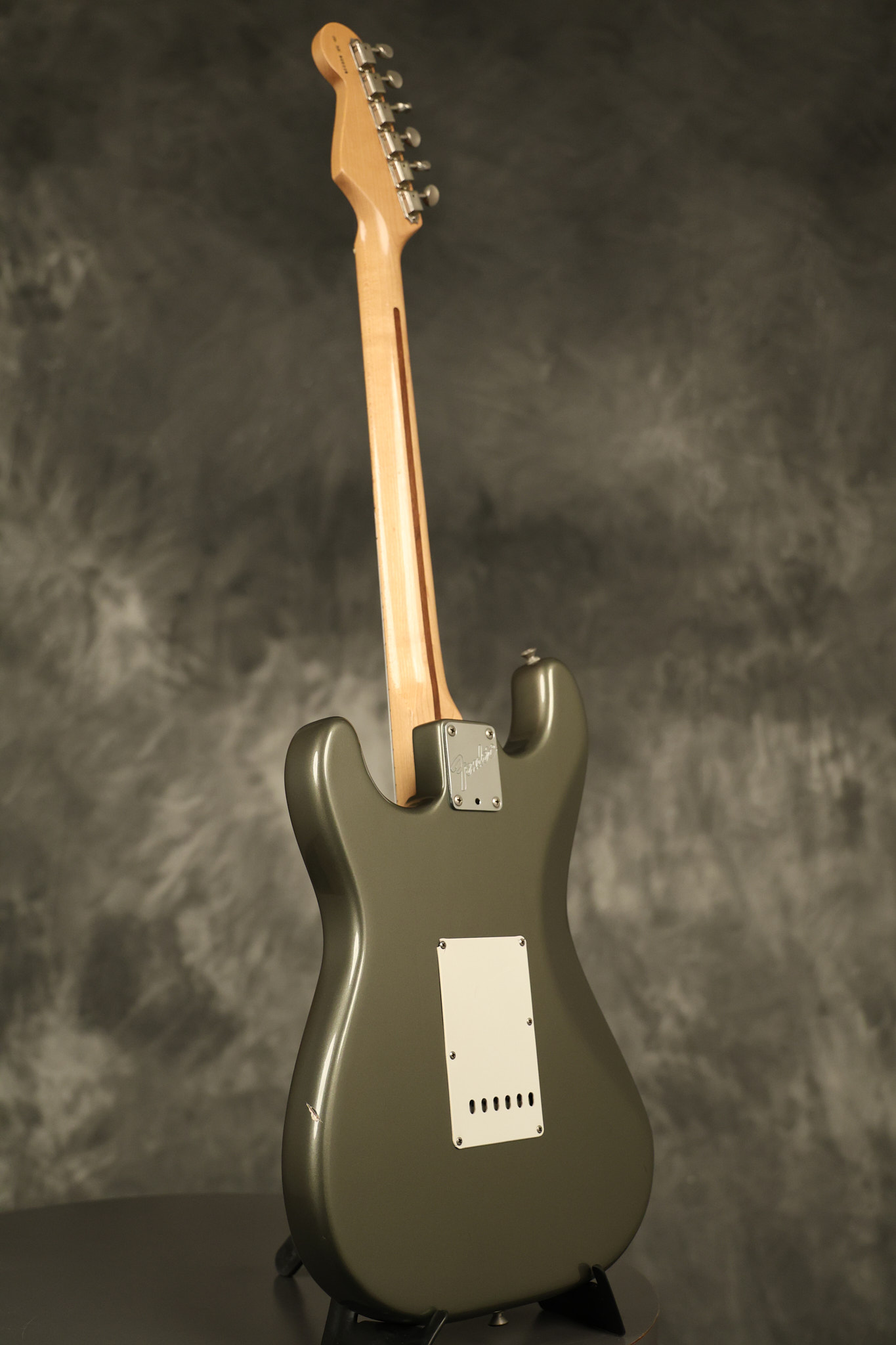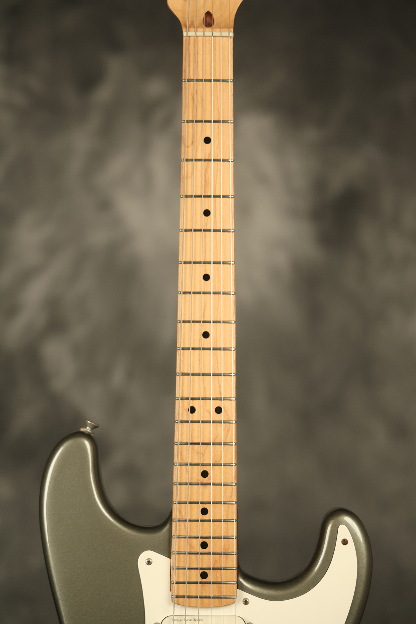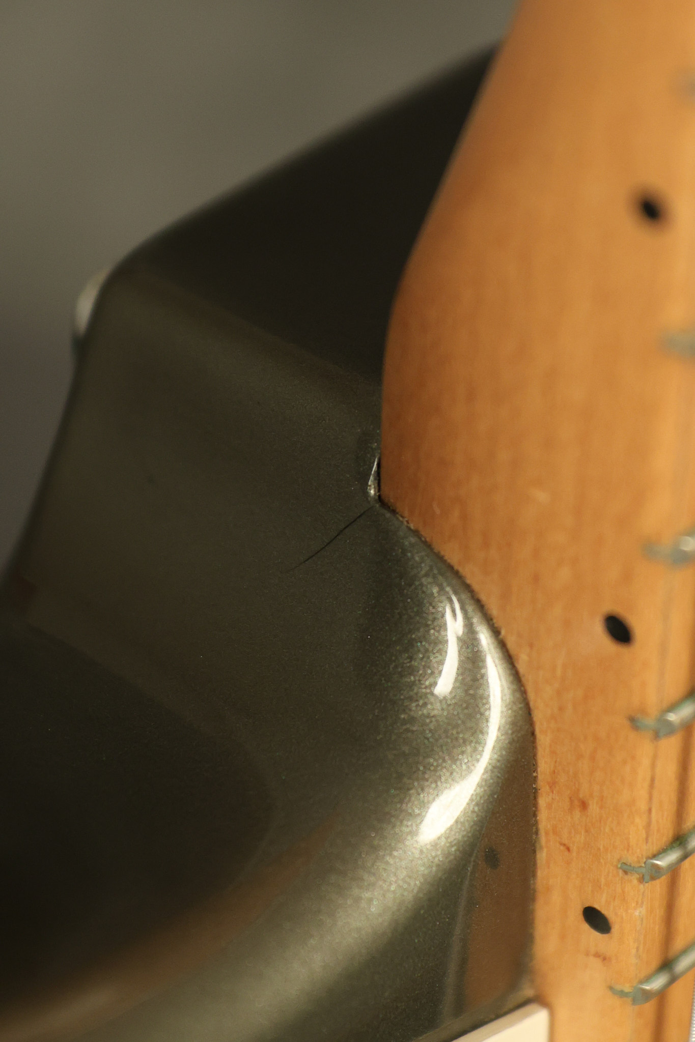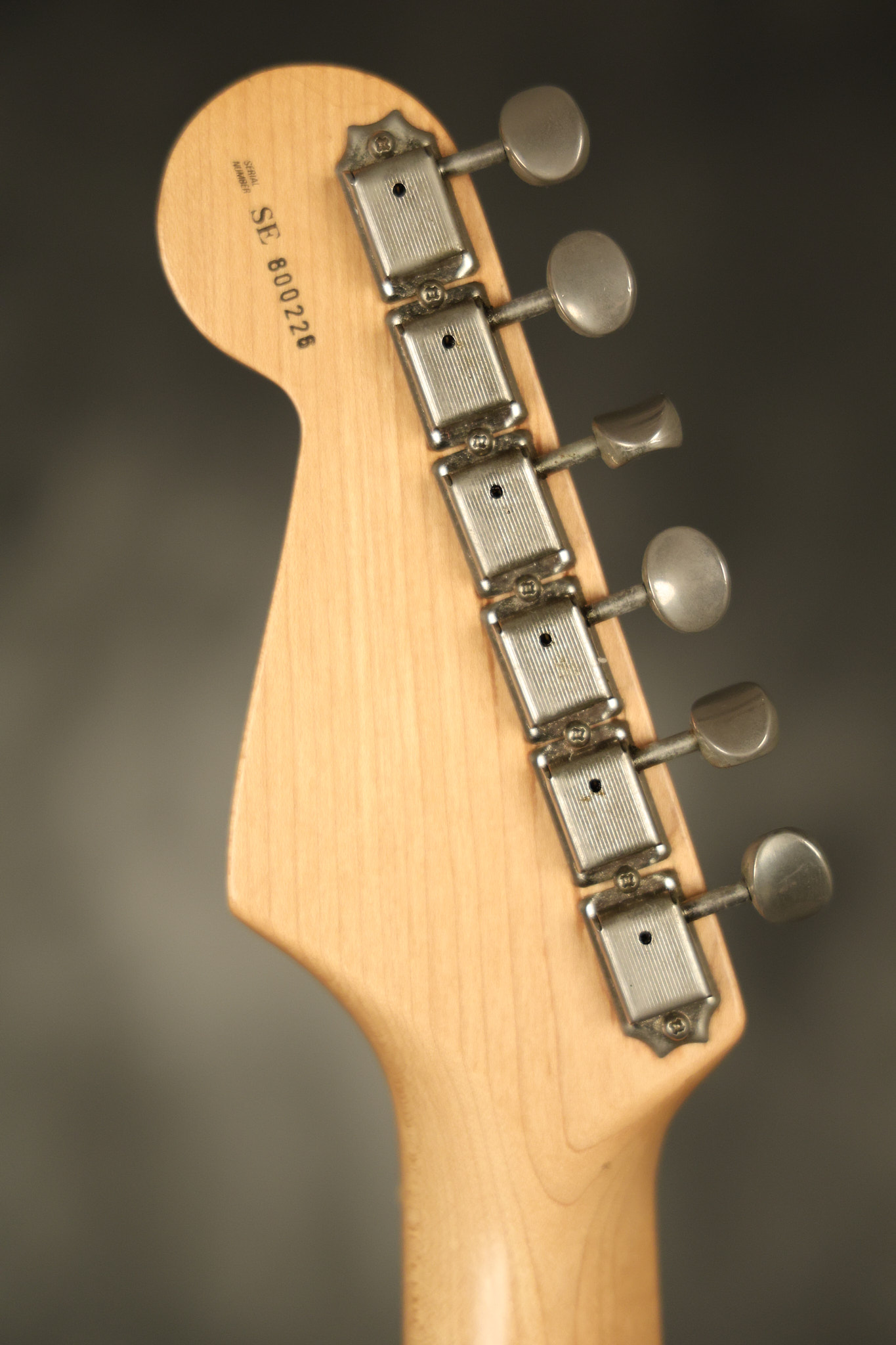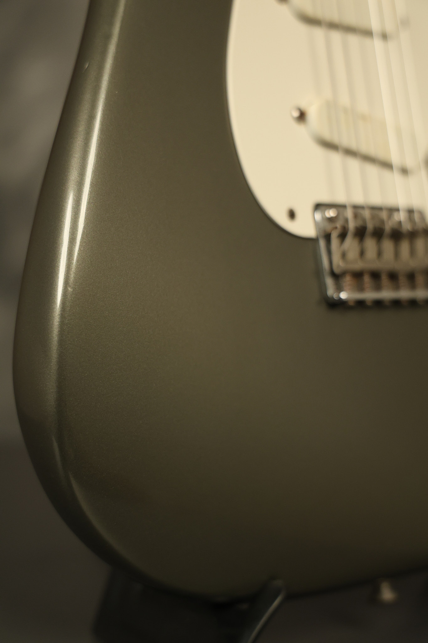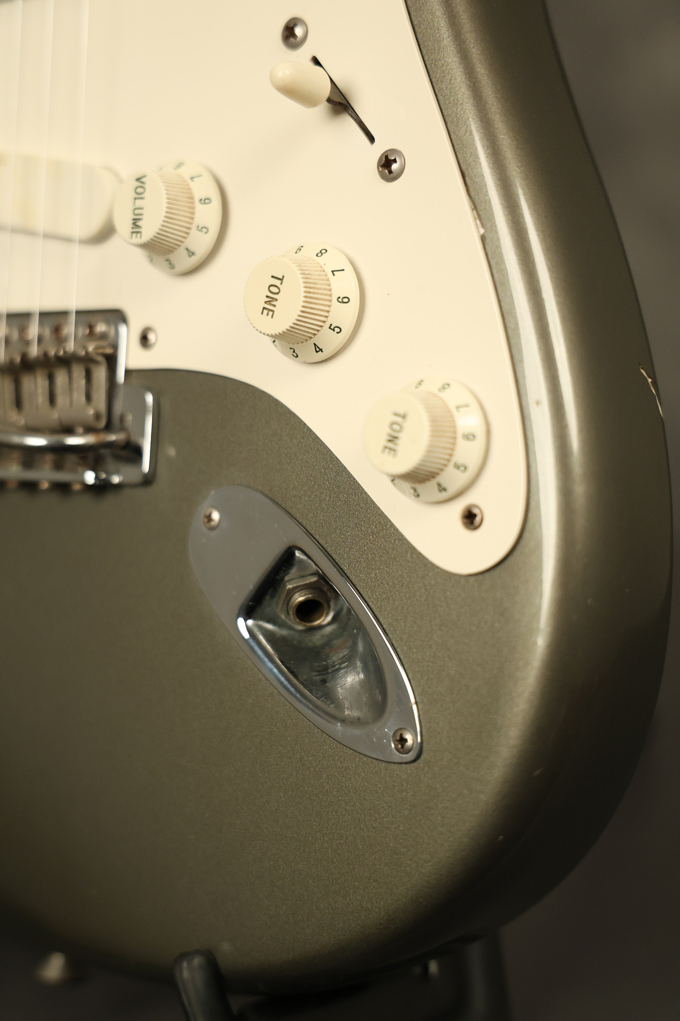 1988 Fender Eric Clapton signature Stratocaster in its original Pewter finish. It has a great playing neck with good frets. It's all original and includes the original tweed hardshell case. It's in very good condition with some minor nicks + dings, a deeper mark in the wood on the lower treble edge of the body, cracked corners on the plastic tremolo cover on back and other cosmetic wear including some tiny very light marks in the finish on the back of the neck behind the 5th/6th fret area. The guitar itself remains structurally sound with no cracks, breaks or repairs. All electronics work and sound great.