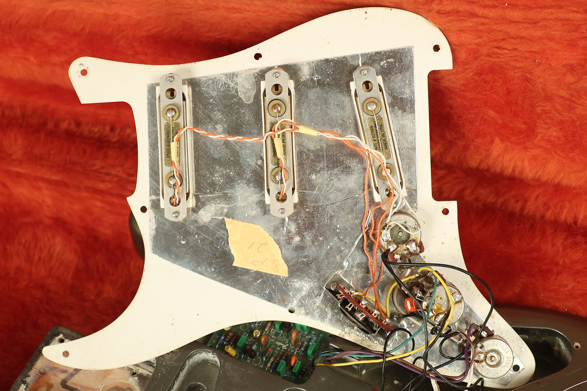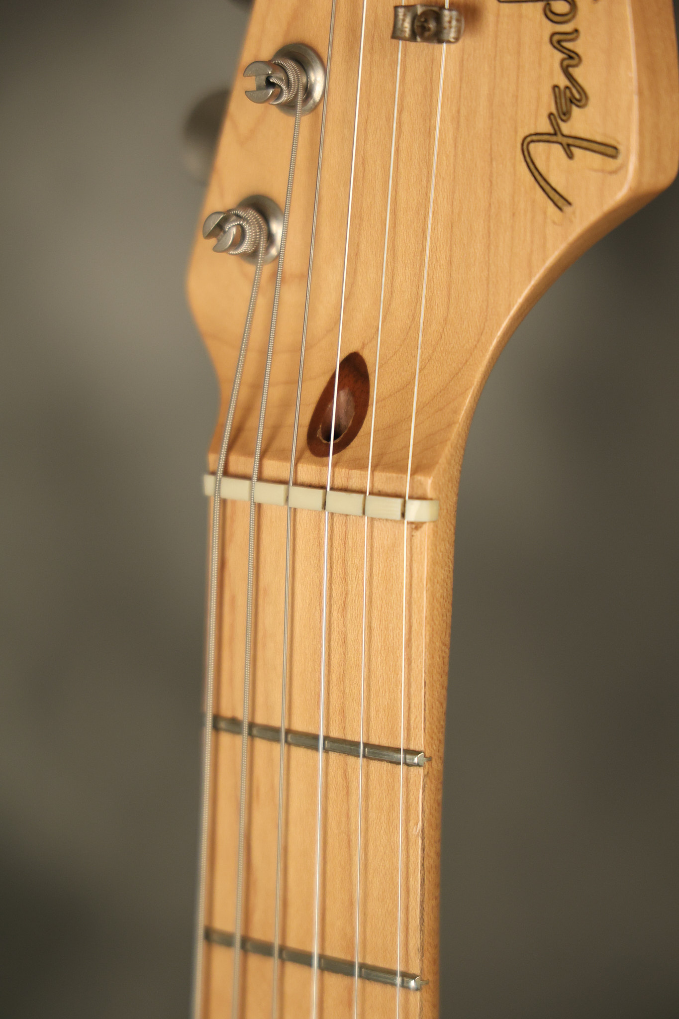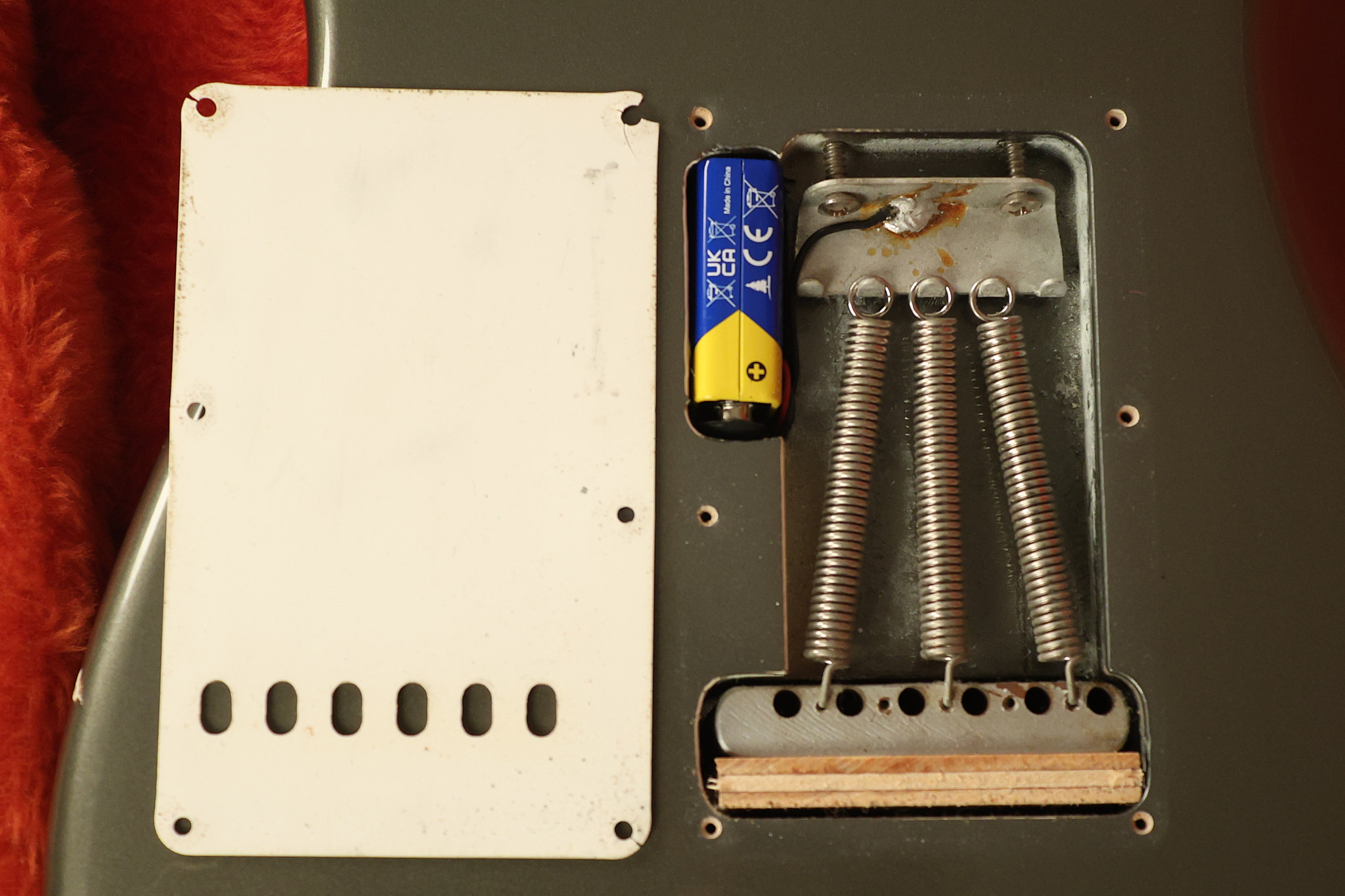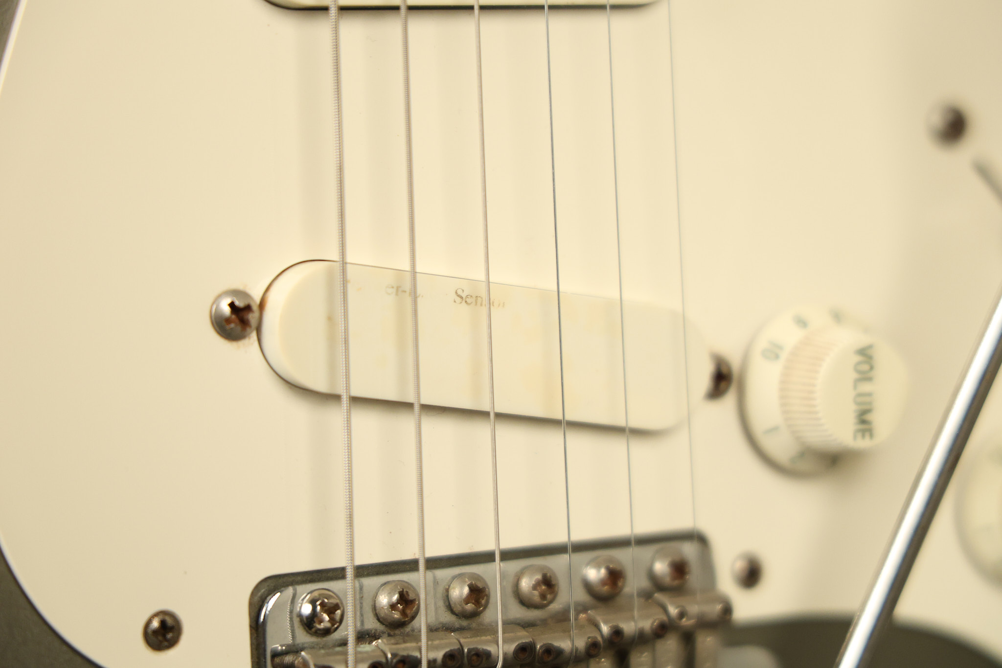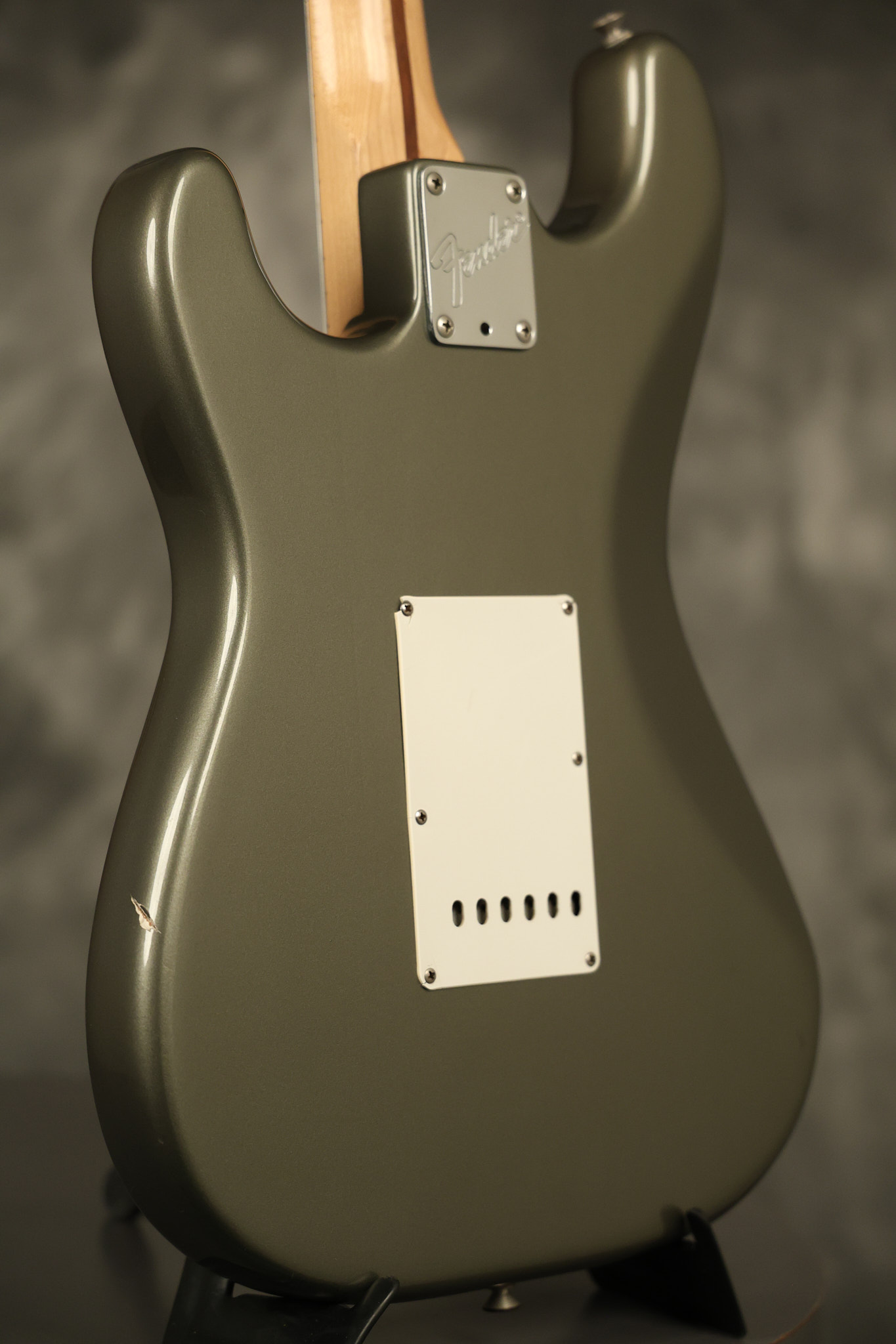 1988 Fender Eric Clapton signature Stratocaster in its original Pewter finish. It has a great playing neck with good frets. It's all original and includes the original tweed hardshell case. It's in very good condition with some minor nicks + dings, a deeper mark in the wood on the lower treble edge of the body, cracked corners on the plastic tremolo cover on back and other cosmetic wear including some tiny very light marks in the finish on the back of the neck behind the 5th/6th fret area. The guitar itself remains structurally sound with no cracks, breaks or repairs. All electronics work and sound great.