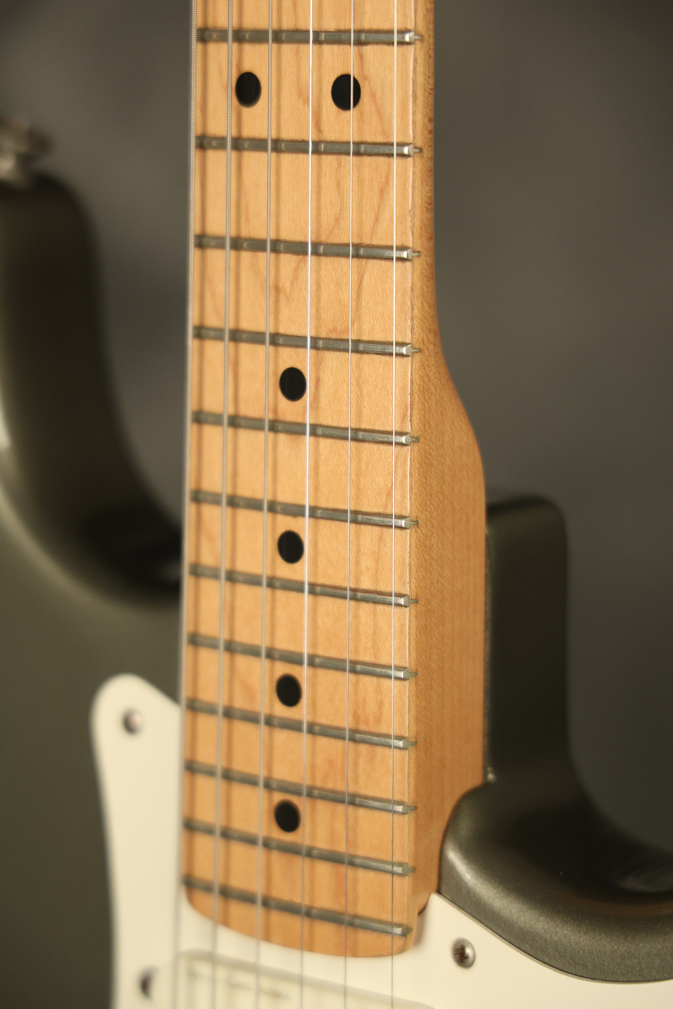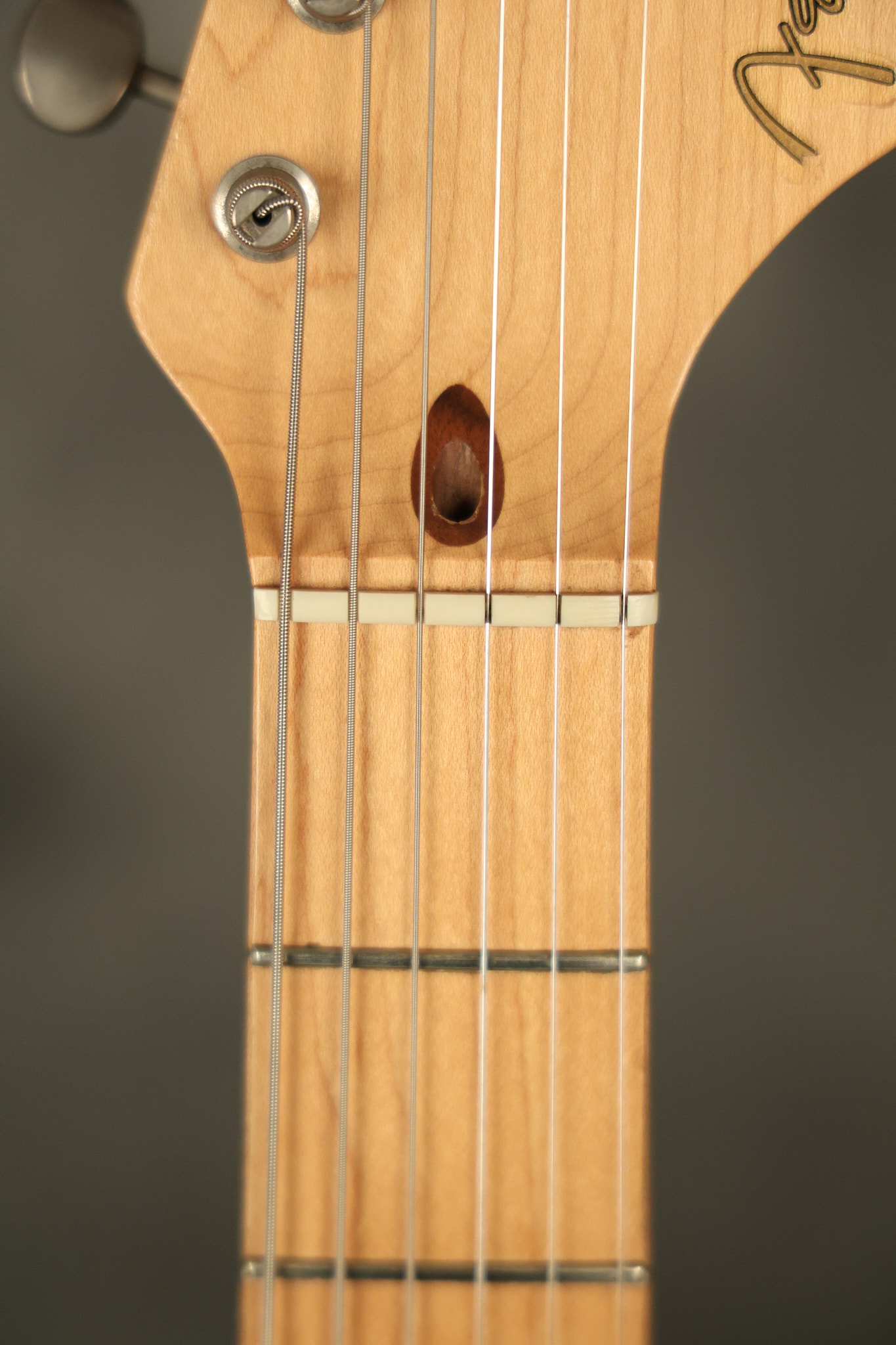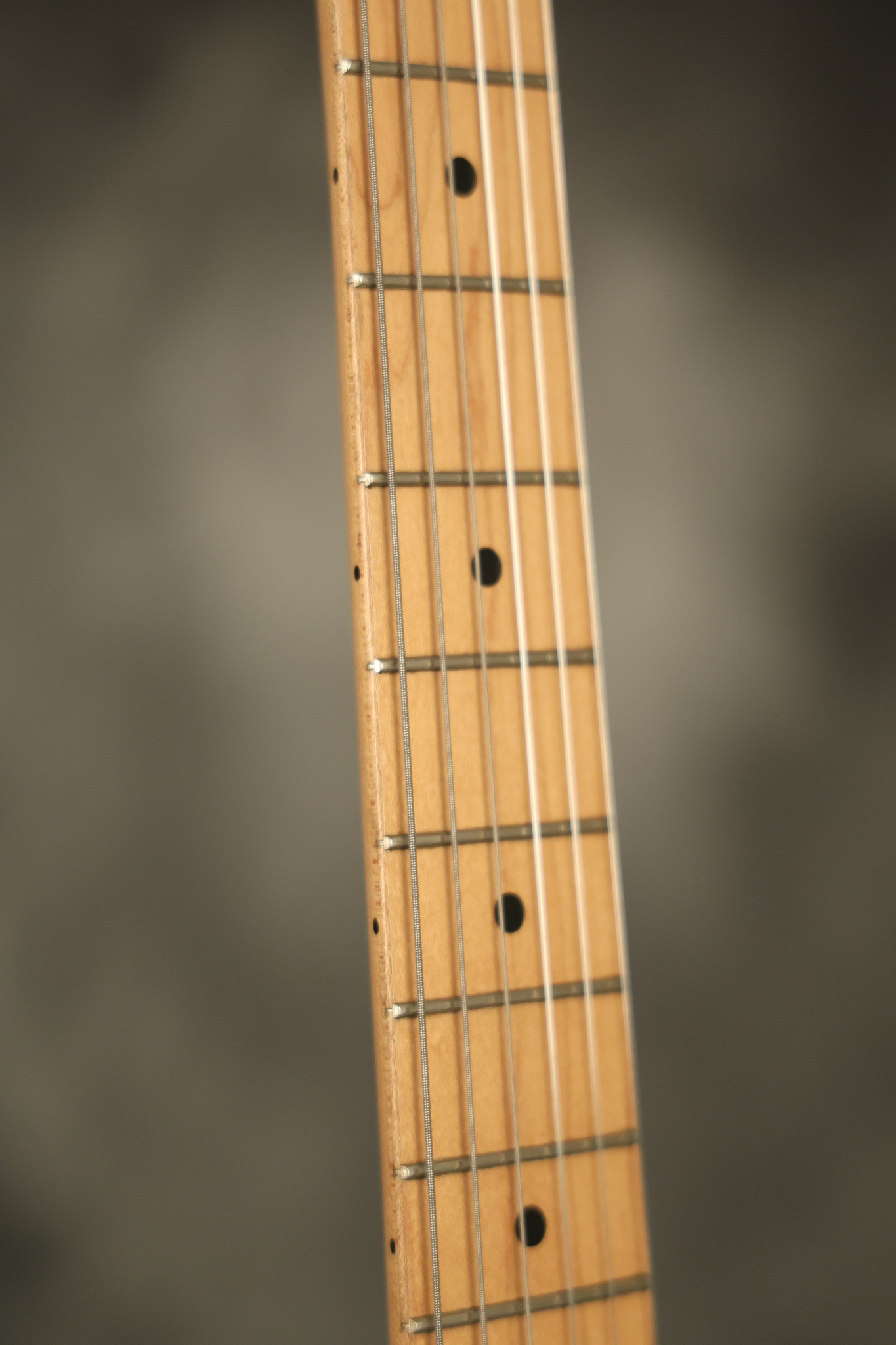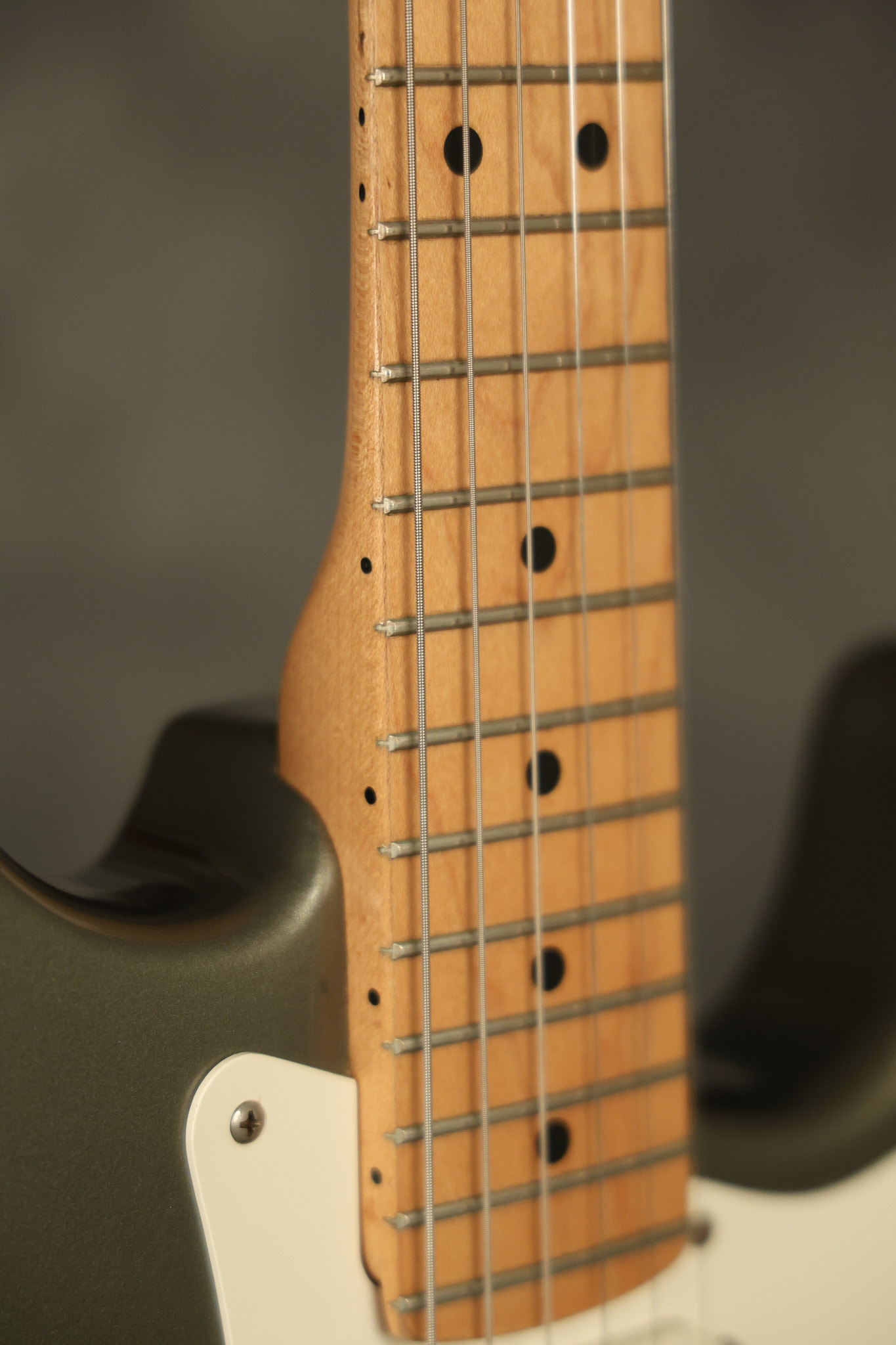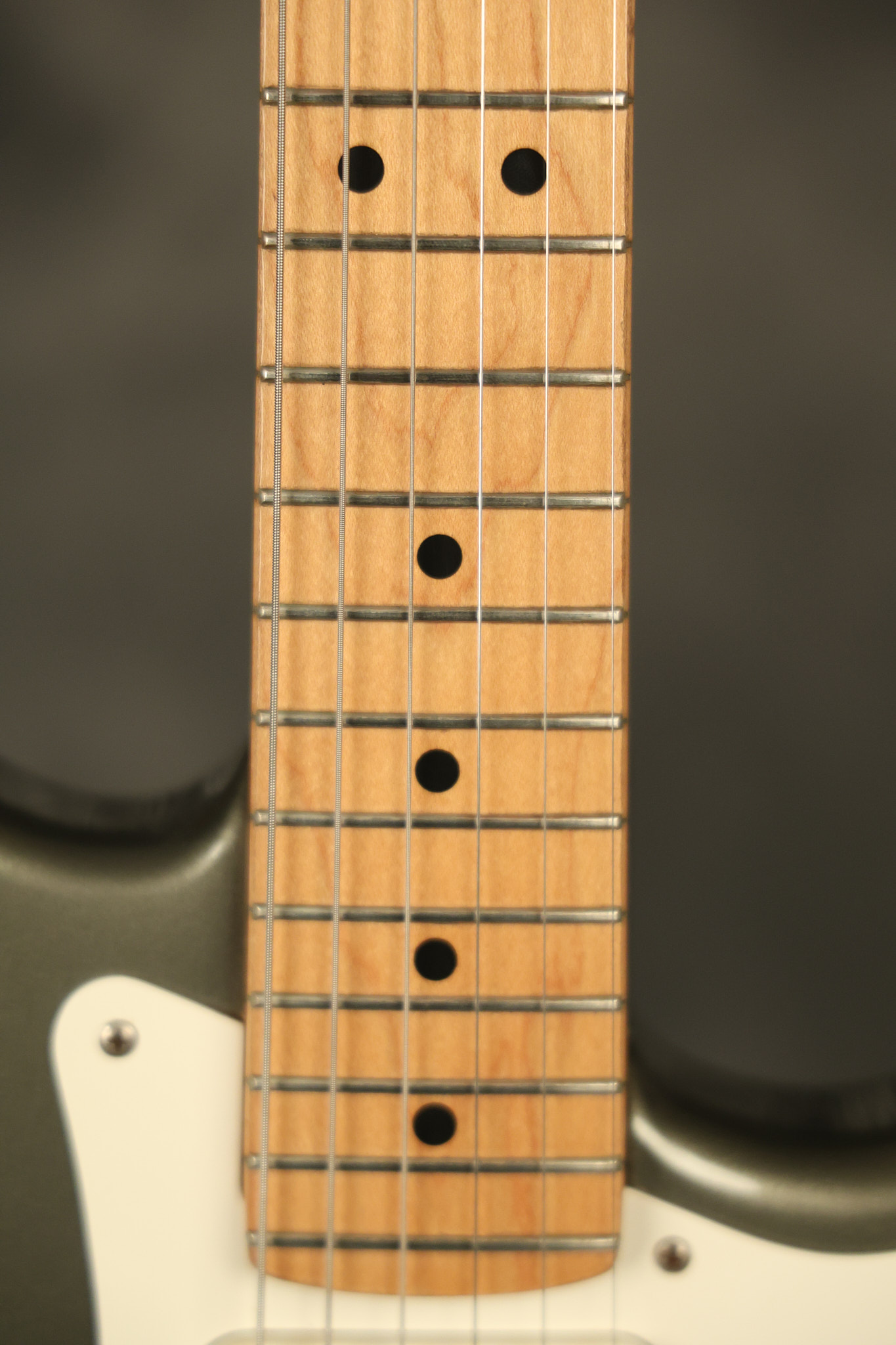1988 Fender Eric Clapton signature Stratocaster in its original Pewter finish. It has a great playing neck with good frets. It's all original and includes the original tweed hardshell case. It's in very good condition with some minor nicks + dings, a deeper mark in the wood on the lower treble edge of the body, cracked corners on the plastic tremolo cover on back and other cosmetic wear including some tiny very light marks in the finish on the back of the neck behind the 5th/6th fret area. The guitar itself remains structurally sound with no cracks, breaks or repairs. All electronics work and sound great.