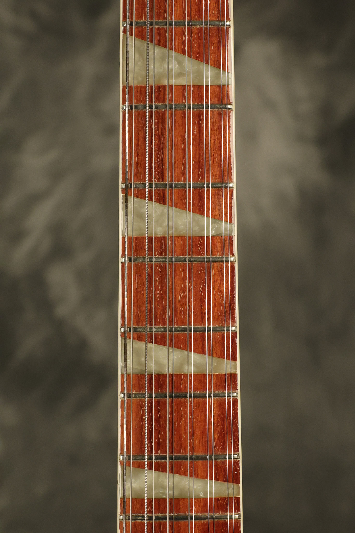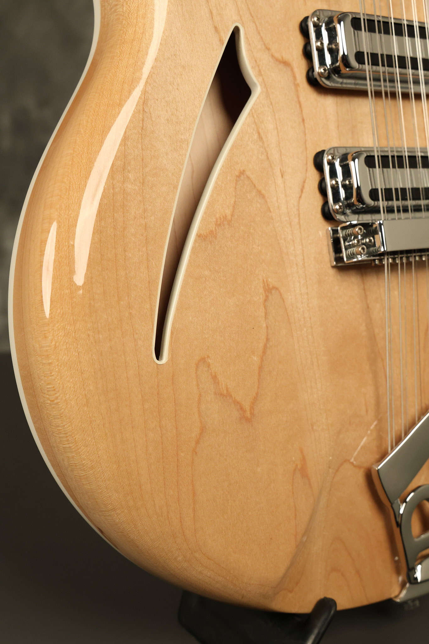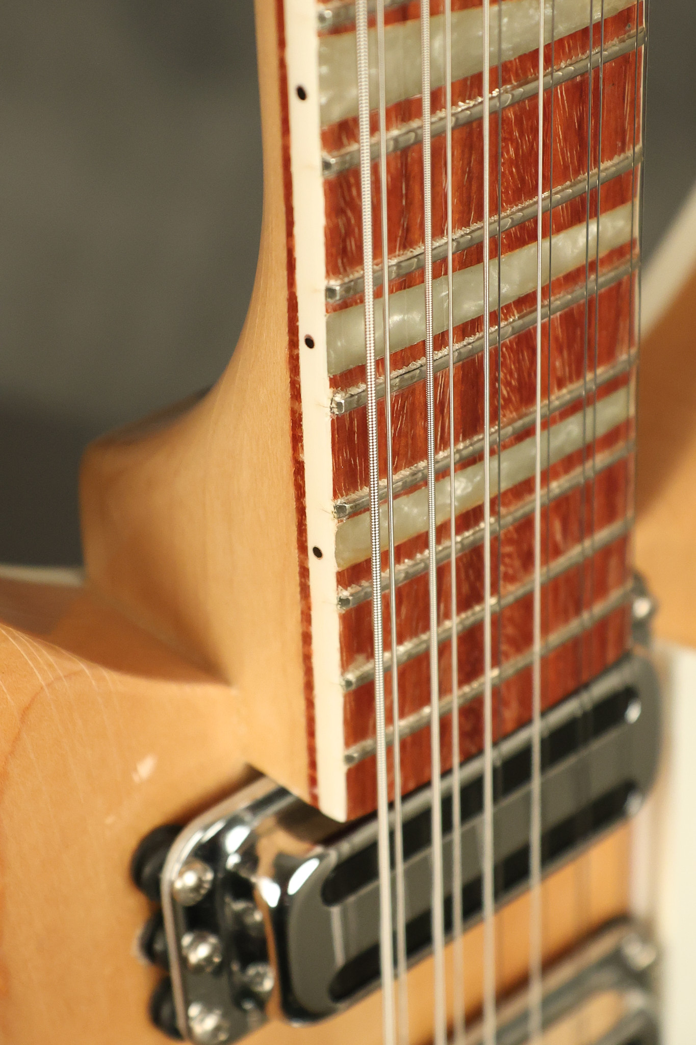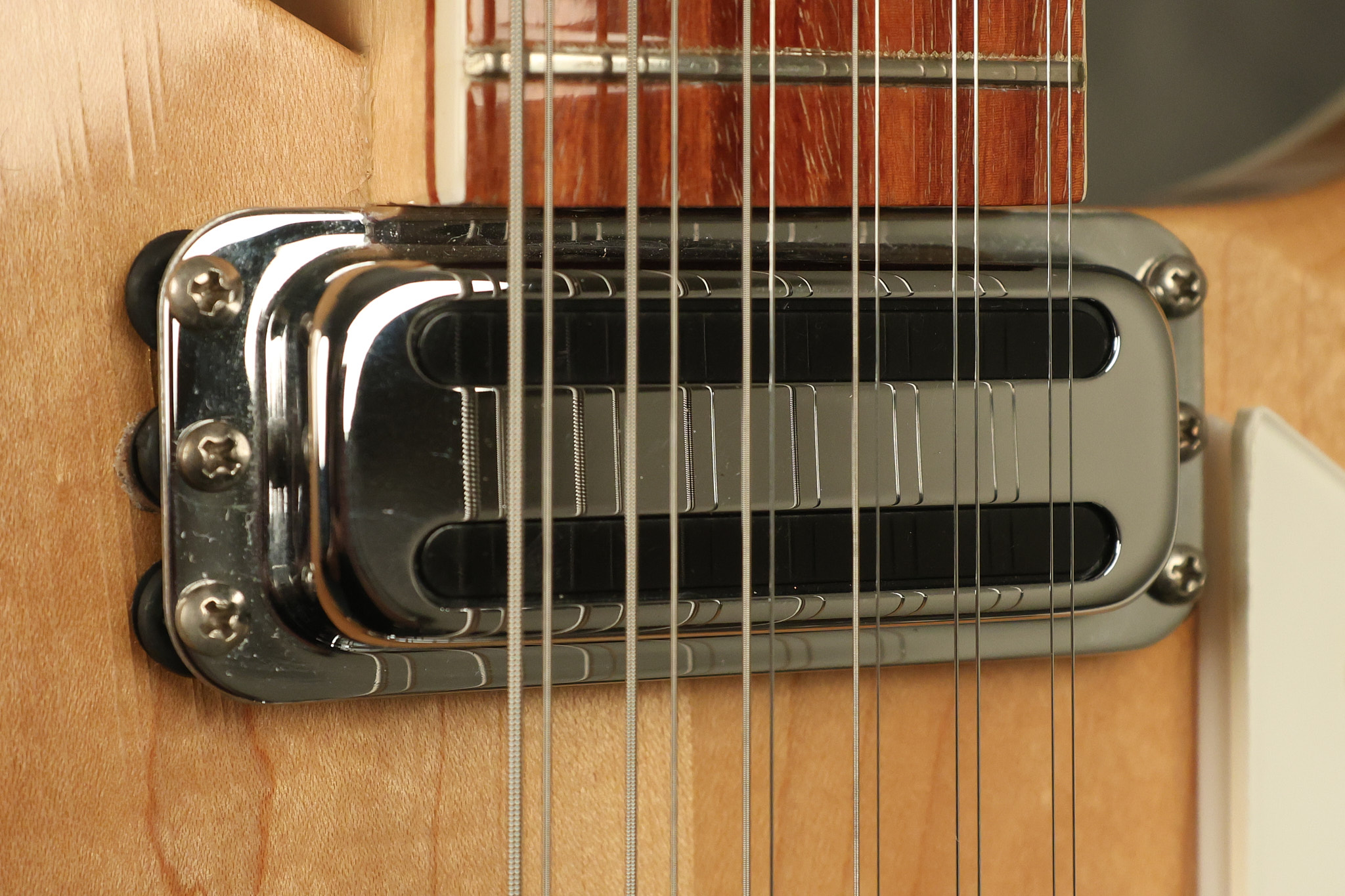 1989 Rickenbacker Roger McGuinn signature model 370/12RM in Mapleglo. It has a great playing neck with great frets. It's all original and 100% complete with the exception of the certificate of authenticity. The original hardshell case is included. It's in very good condition with lots of very minor finish checking, one 4" finish crack on the back of the neck and other extremely minor surface wear. The guitar itself remains structurally sound with no cracks, breaks or repairs. All electronics work and sound great.