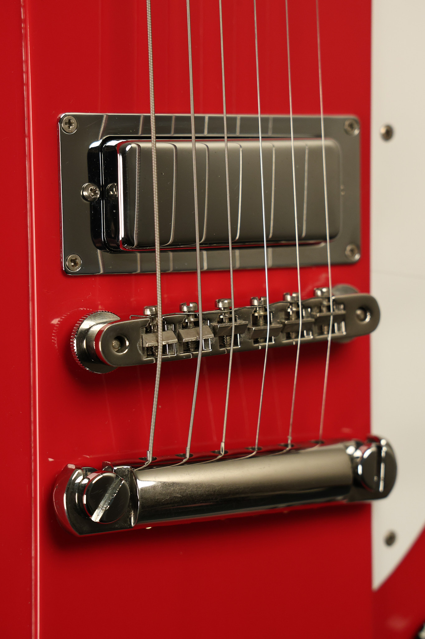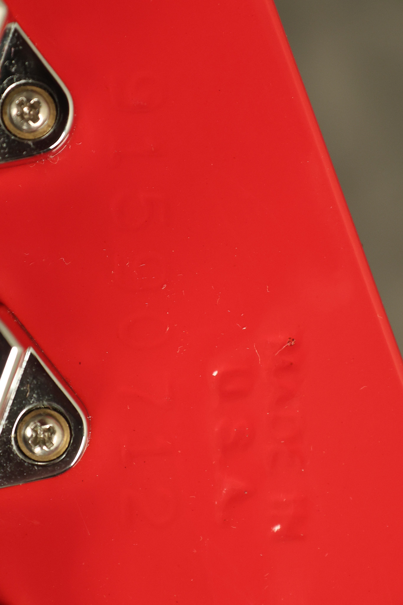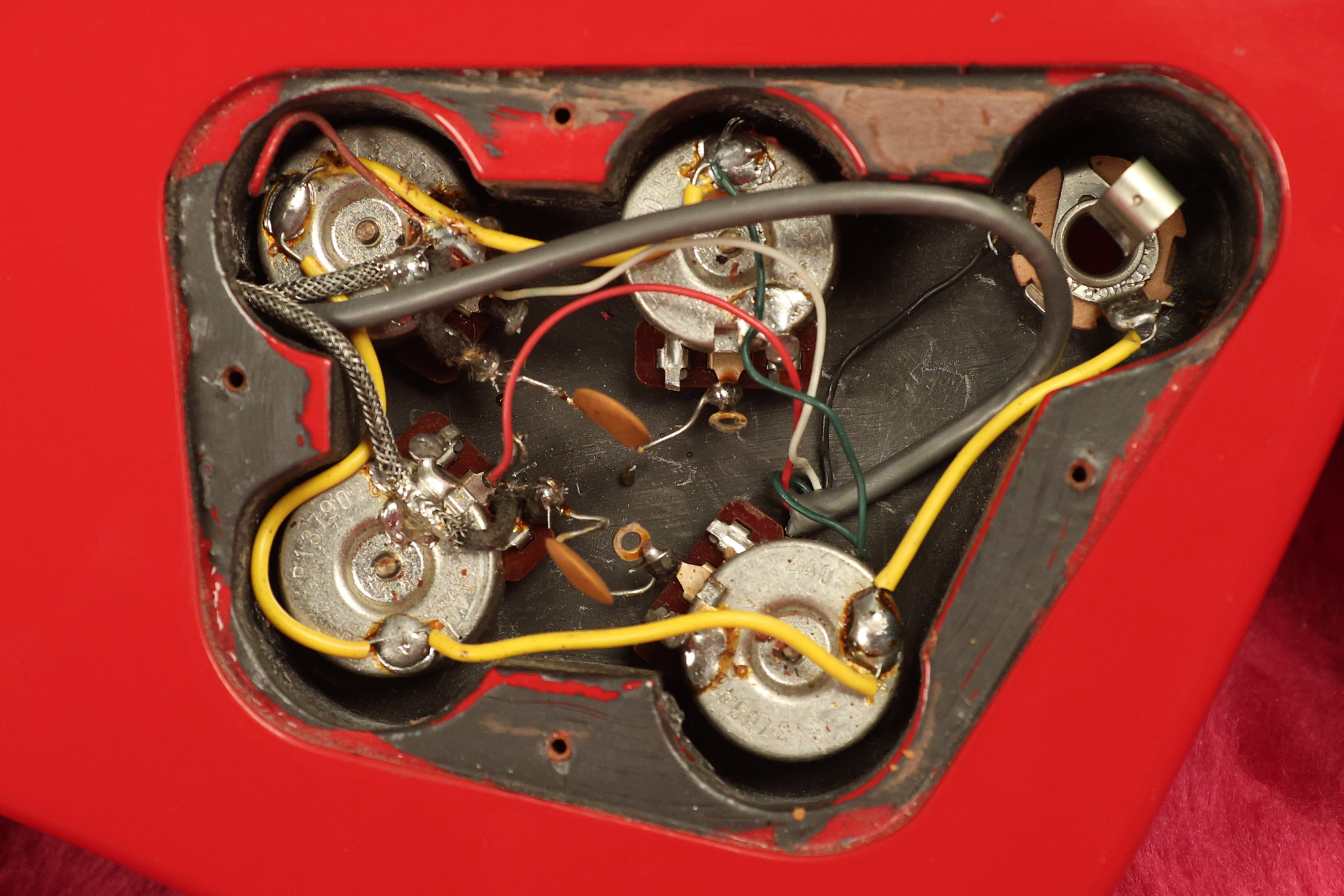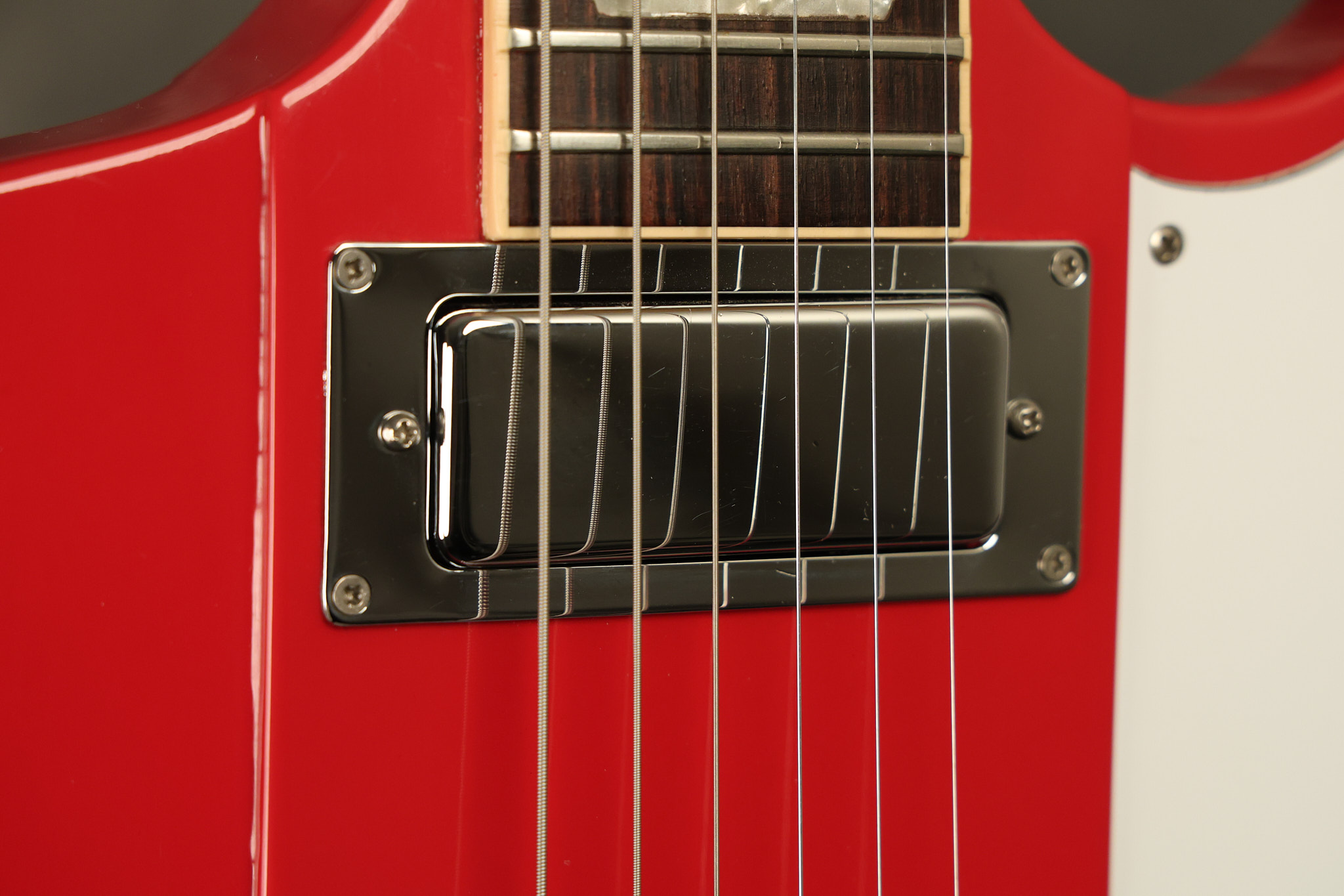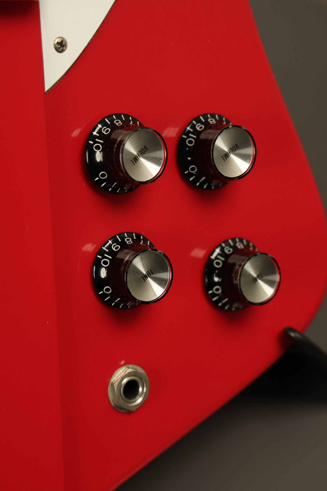 1990 Gibson Firebird V in its original Cardinal Red finish. It has a good playing neck with good frets. It's all original and 100% complete along with its original hardshell case. It's in very good condition with a couple of cracks through the pickguard, some very minor nicks + dings and other very minor cosmetic wear. The guitar itself remains structurally sound with no cracks, breaks or repairs. All electronics work and sound great.