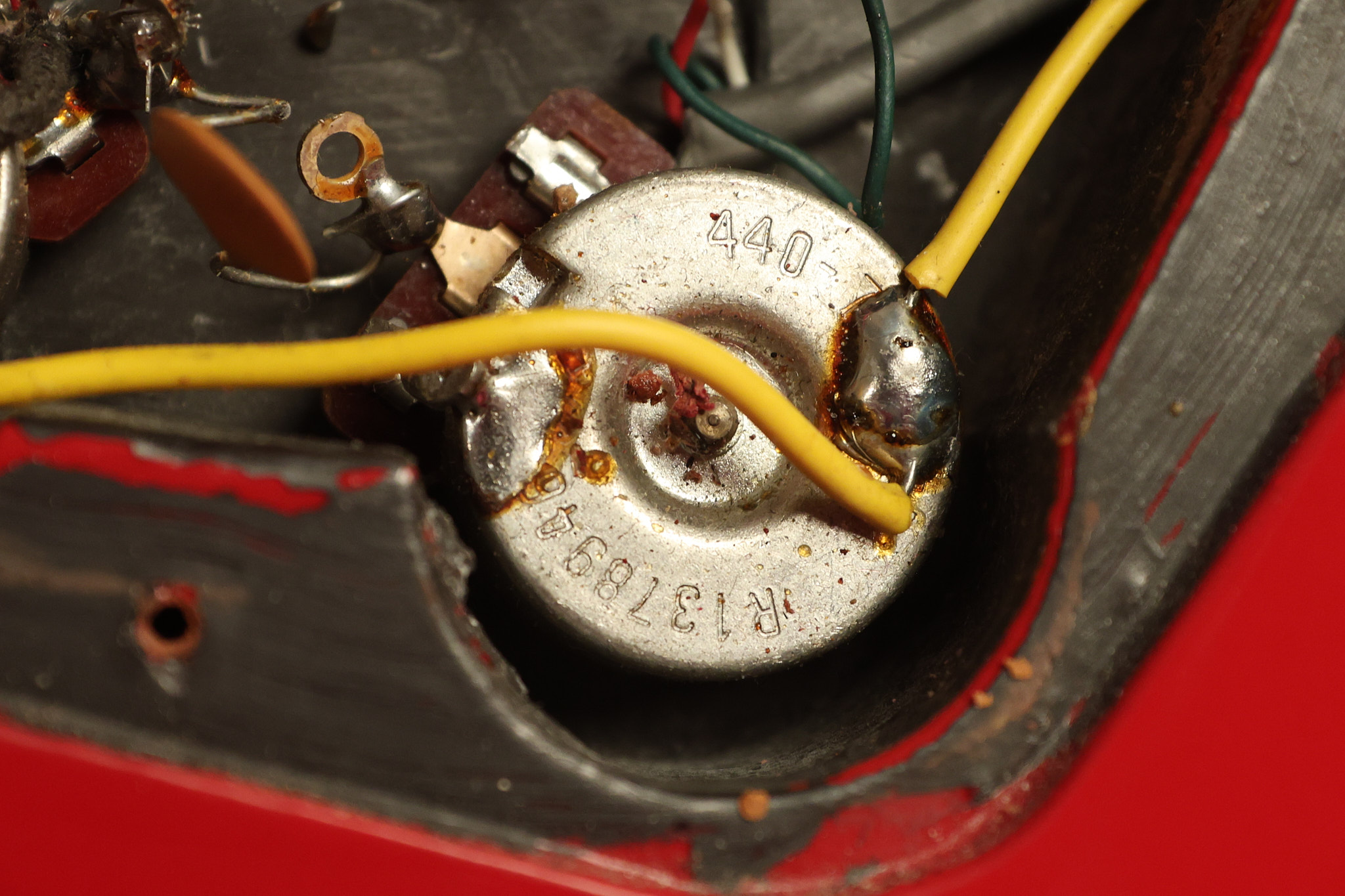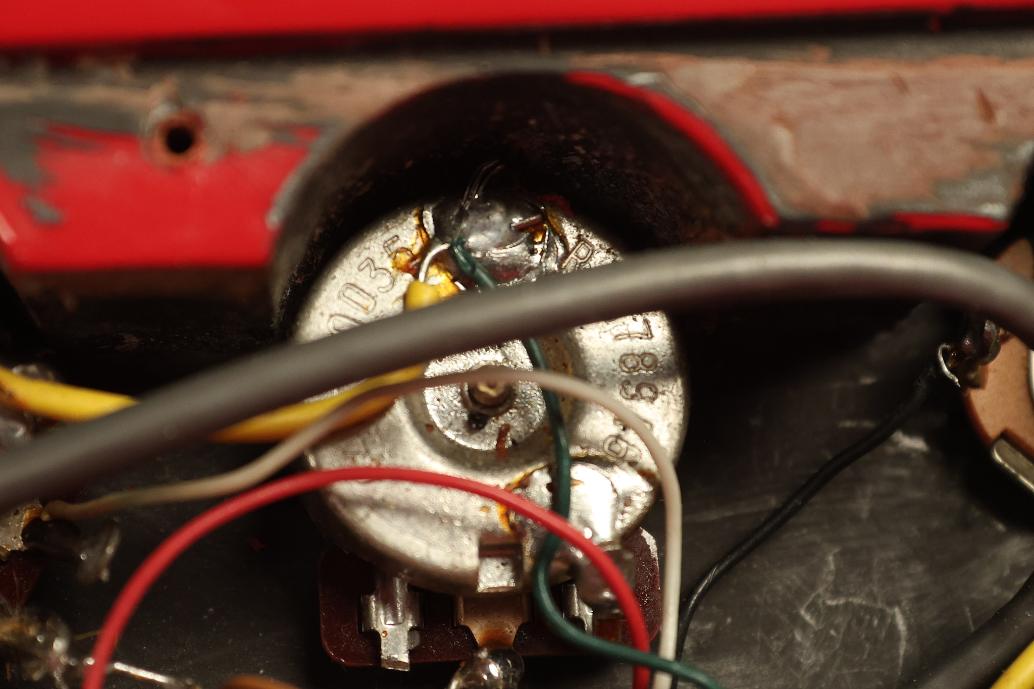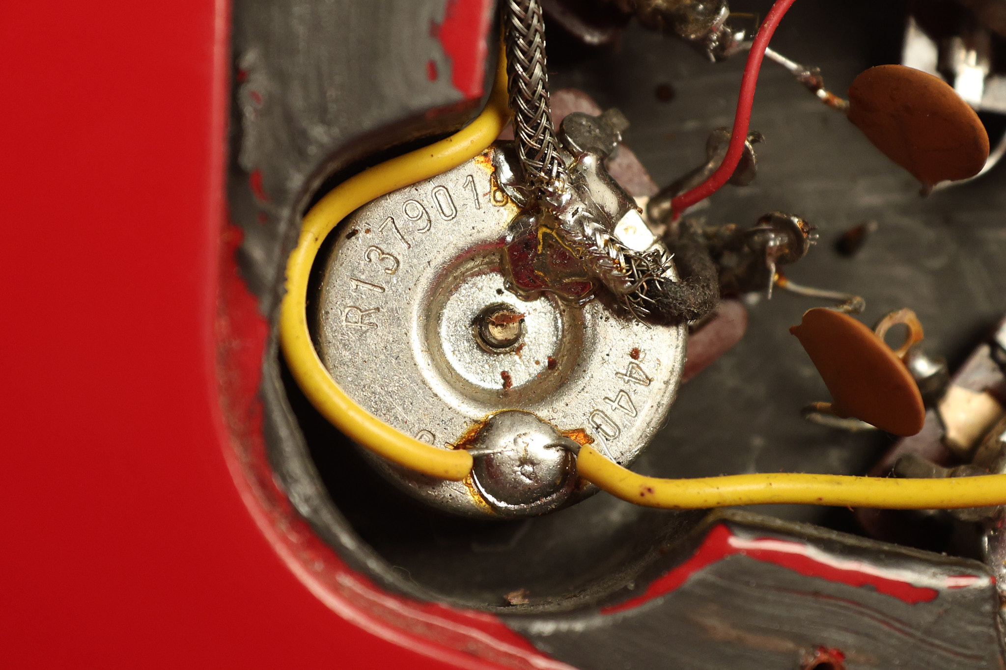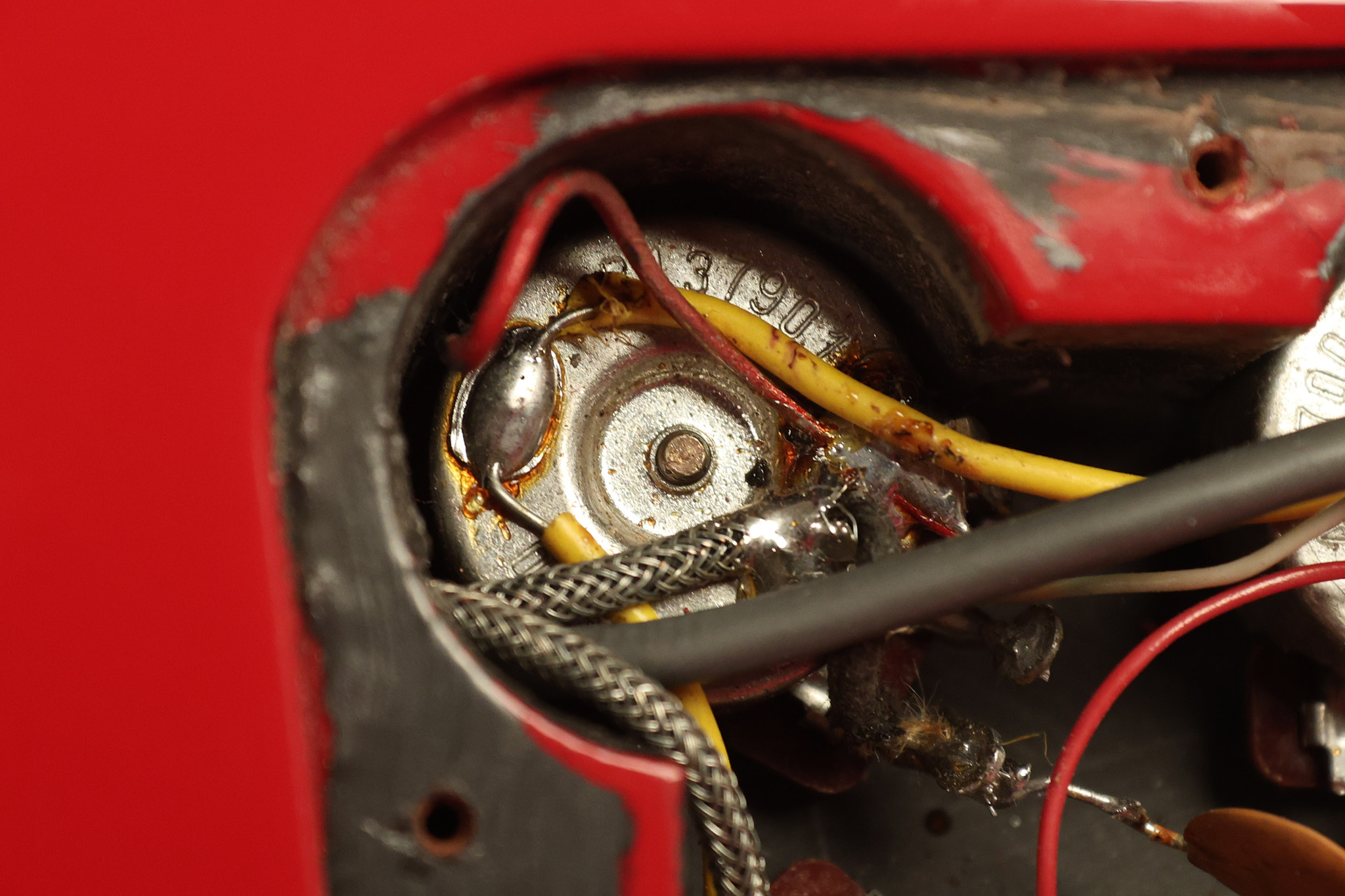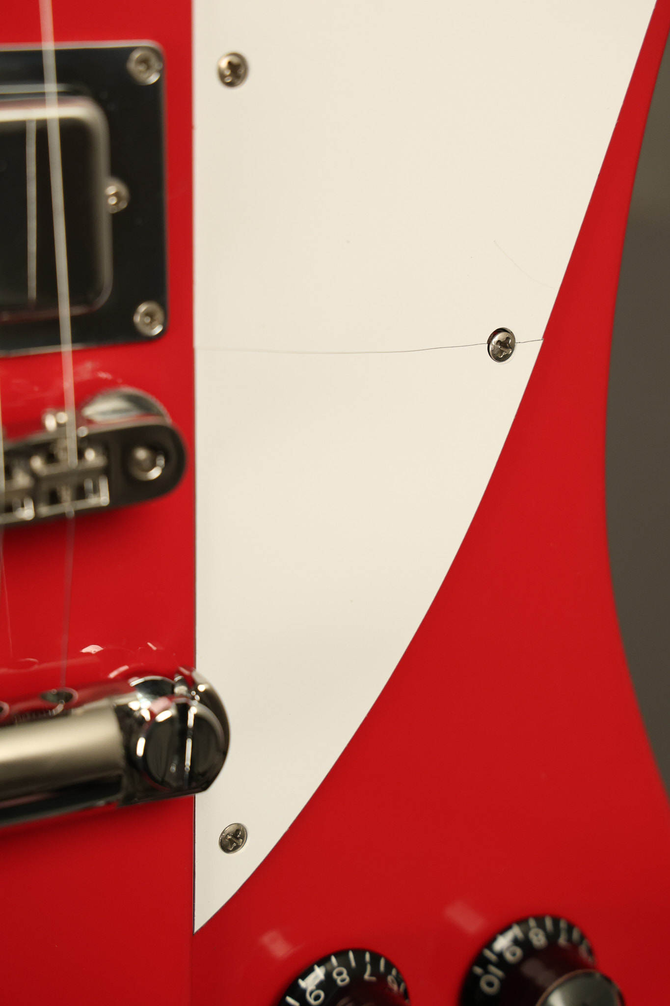 1990 Gibson Firebird V in its original Cardinal Red finish. It has a good playing neck with good frets. It's all original and 100% complete along with its original hardshell case. It's in very good condition with a couple of cracks through the pickguard, some very minor nicks + dings and other very minor cosmetic wear. The guitar itself remains structurally sound with no cracks, breaks or repairs. All electronics work and sound great.