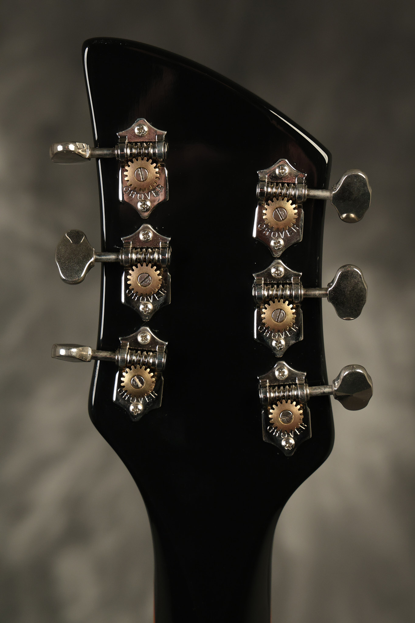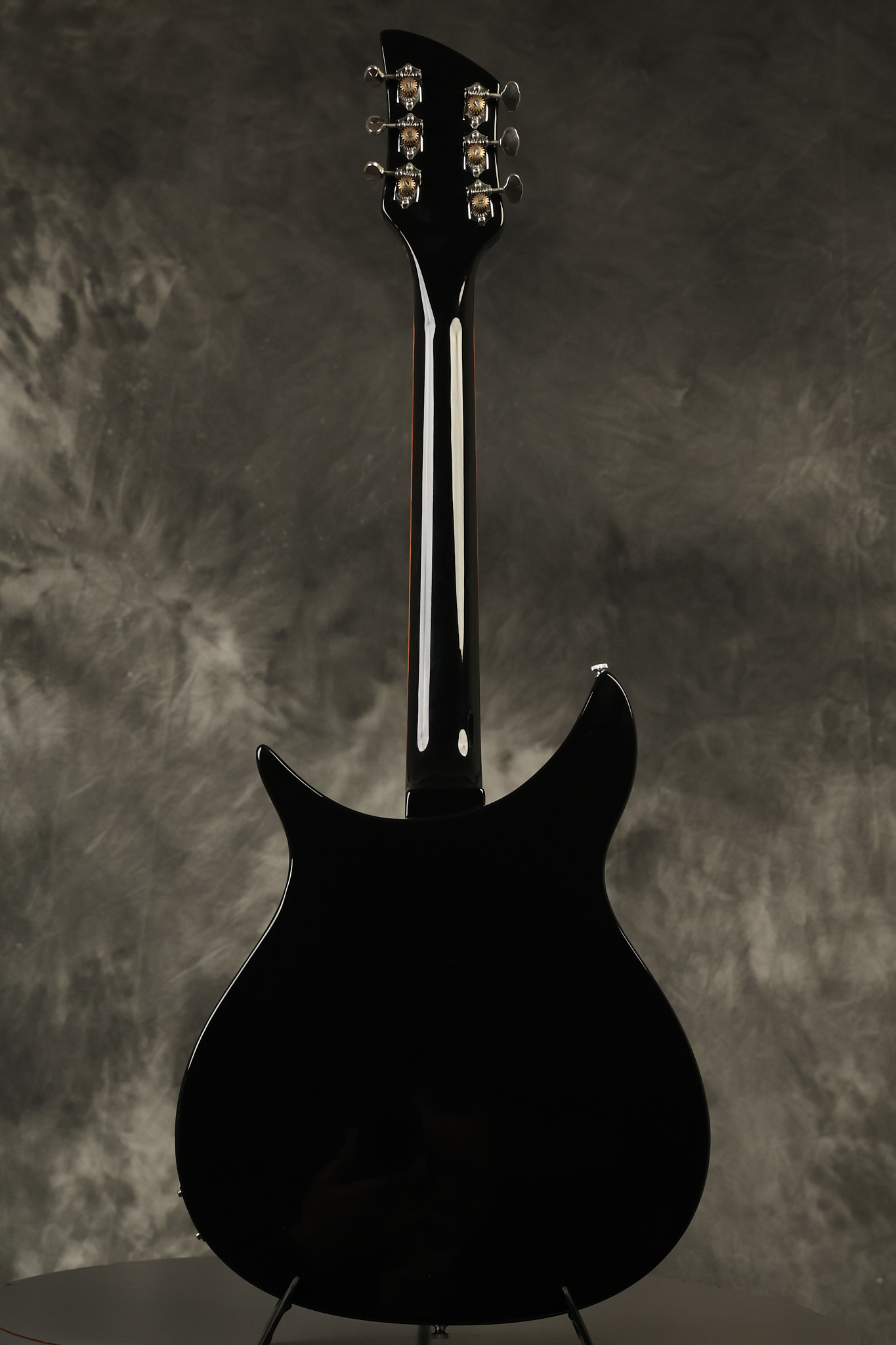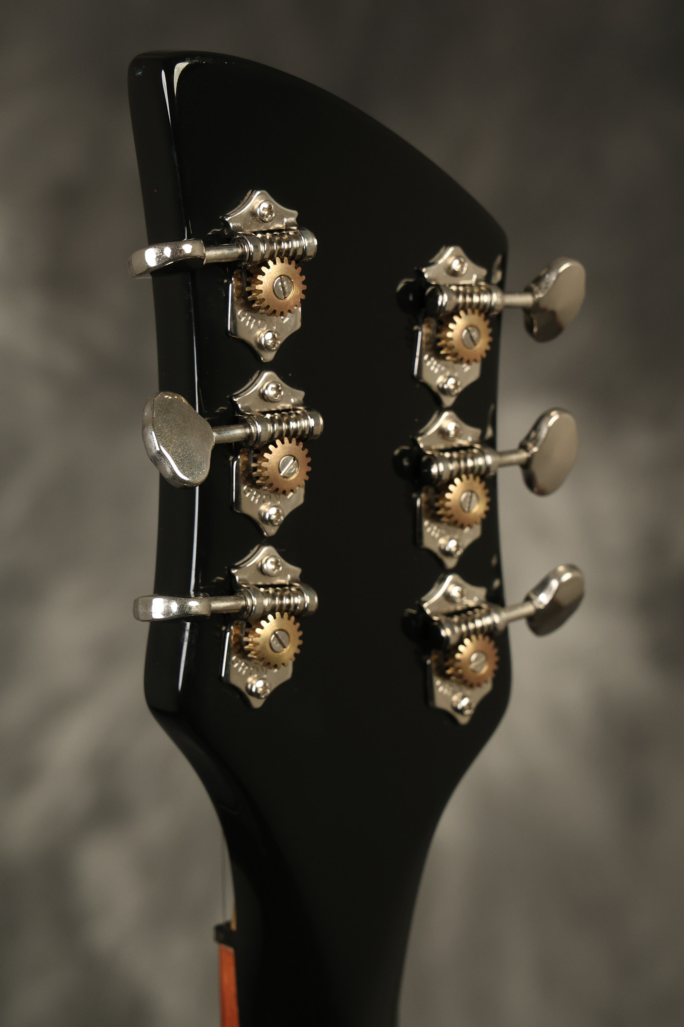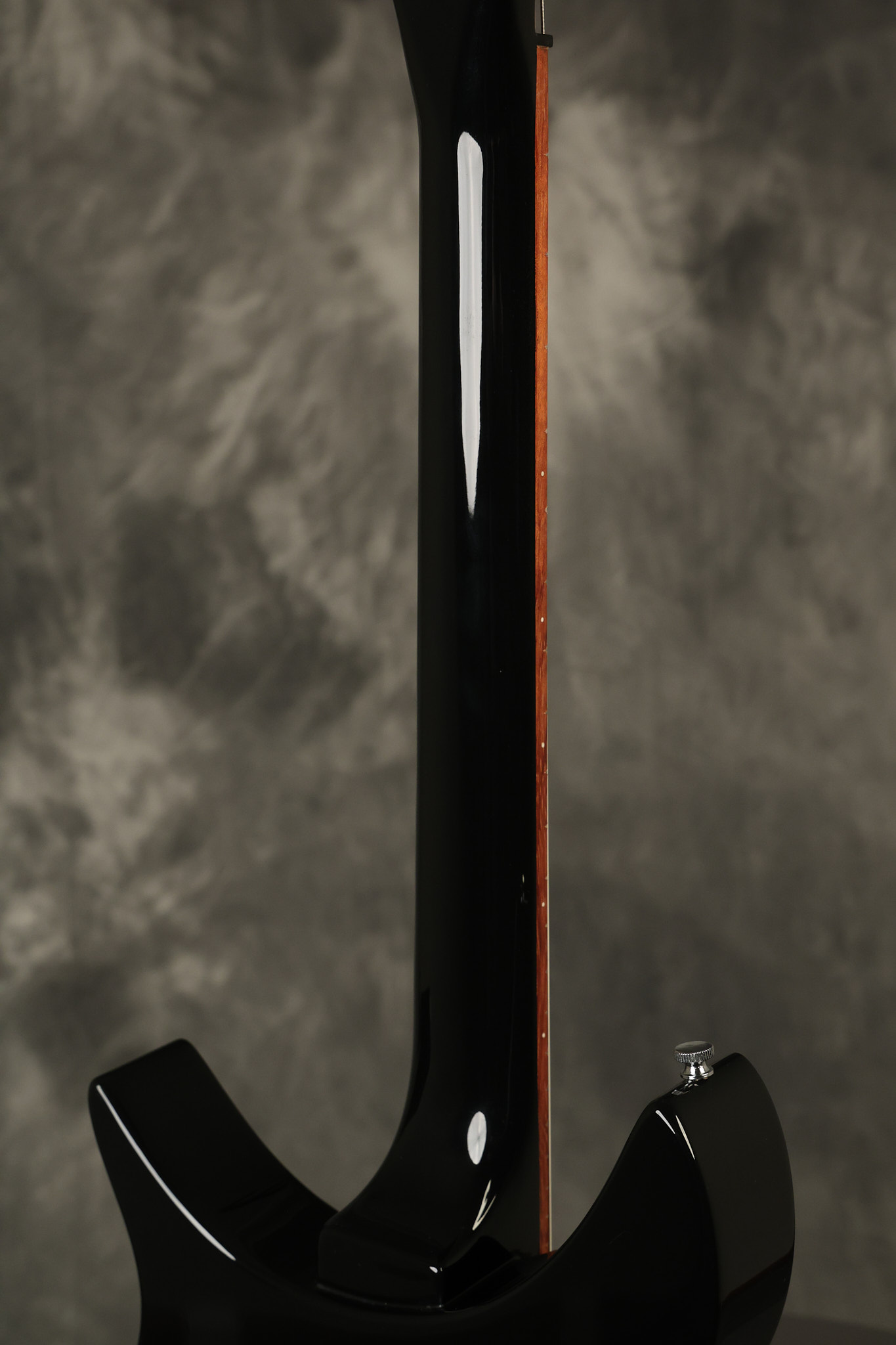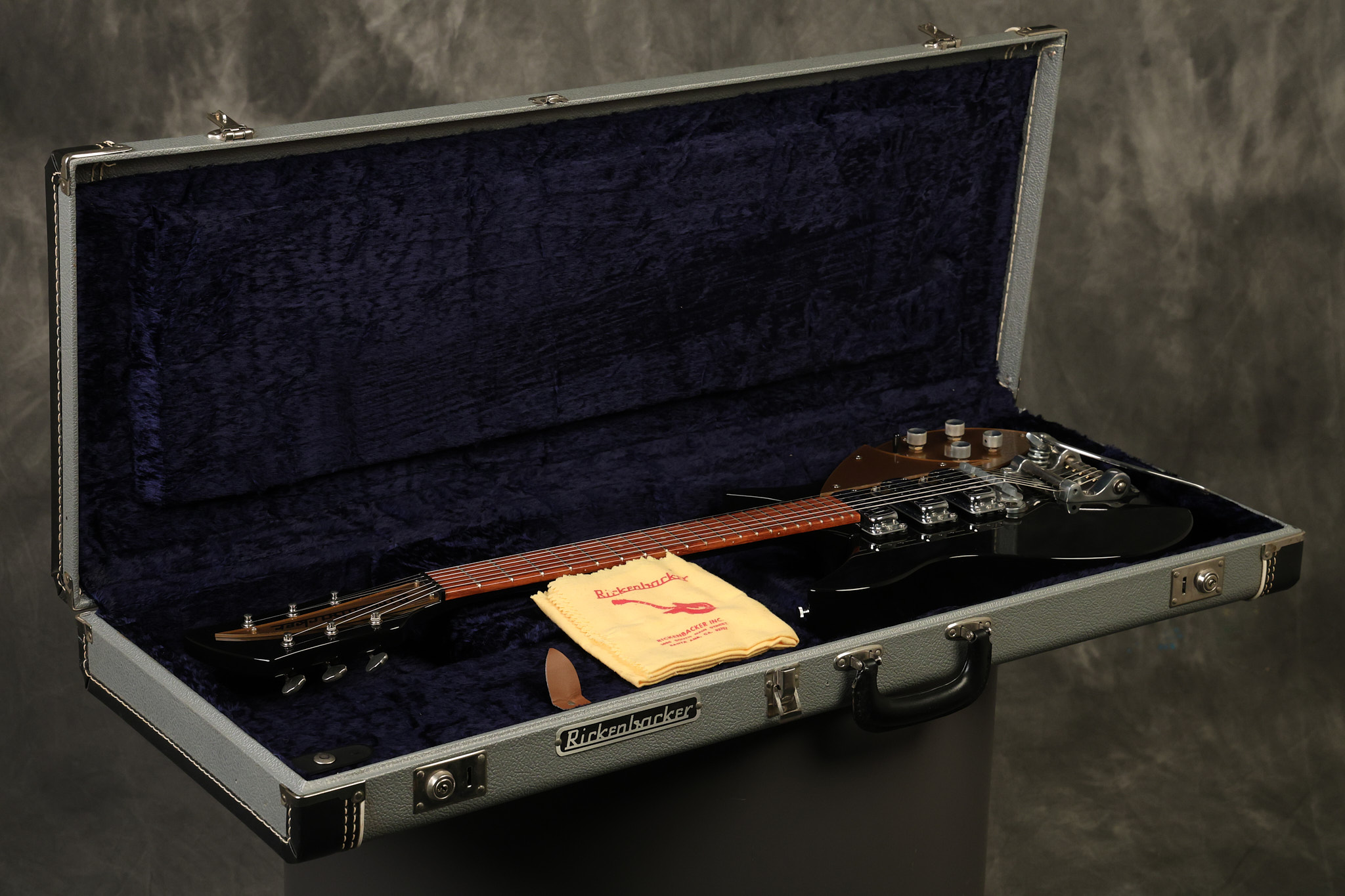 1994 Rickenbacker 325V59 in Jetglo that has had parts changed (Burns volume and tone knobs, Sorkin bridge, and open back Grover tuners) to resemble the specs of John Lennon's 1958 Rickenbacker model 325, with the exception of the upper portion of the pickguard being left on. It has a great playing neck with great frets. It's all original and 100% complete along with its original hardshell case. It's in EXCELLENT condition with only very little extremely minor surface wear. Pads were placed underneath the bridge to help protect the finish. Everything remains structurally sound with no cracks, breaks or repairs. All electronics work and sound great.