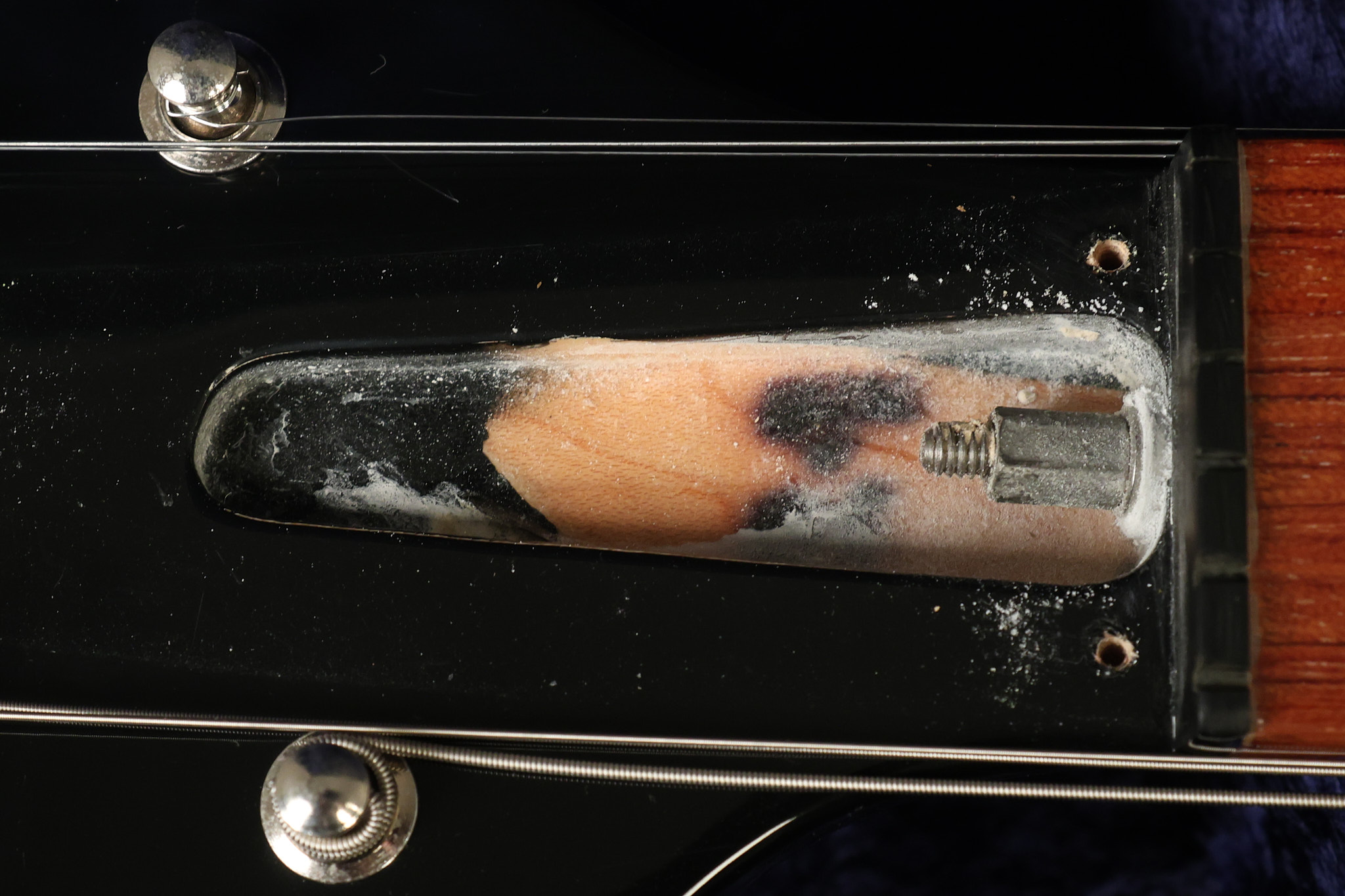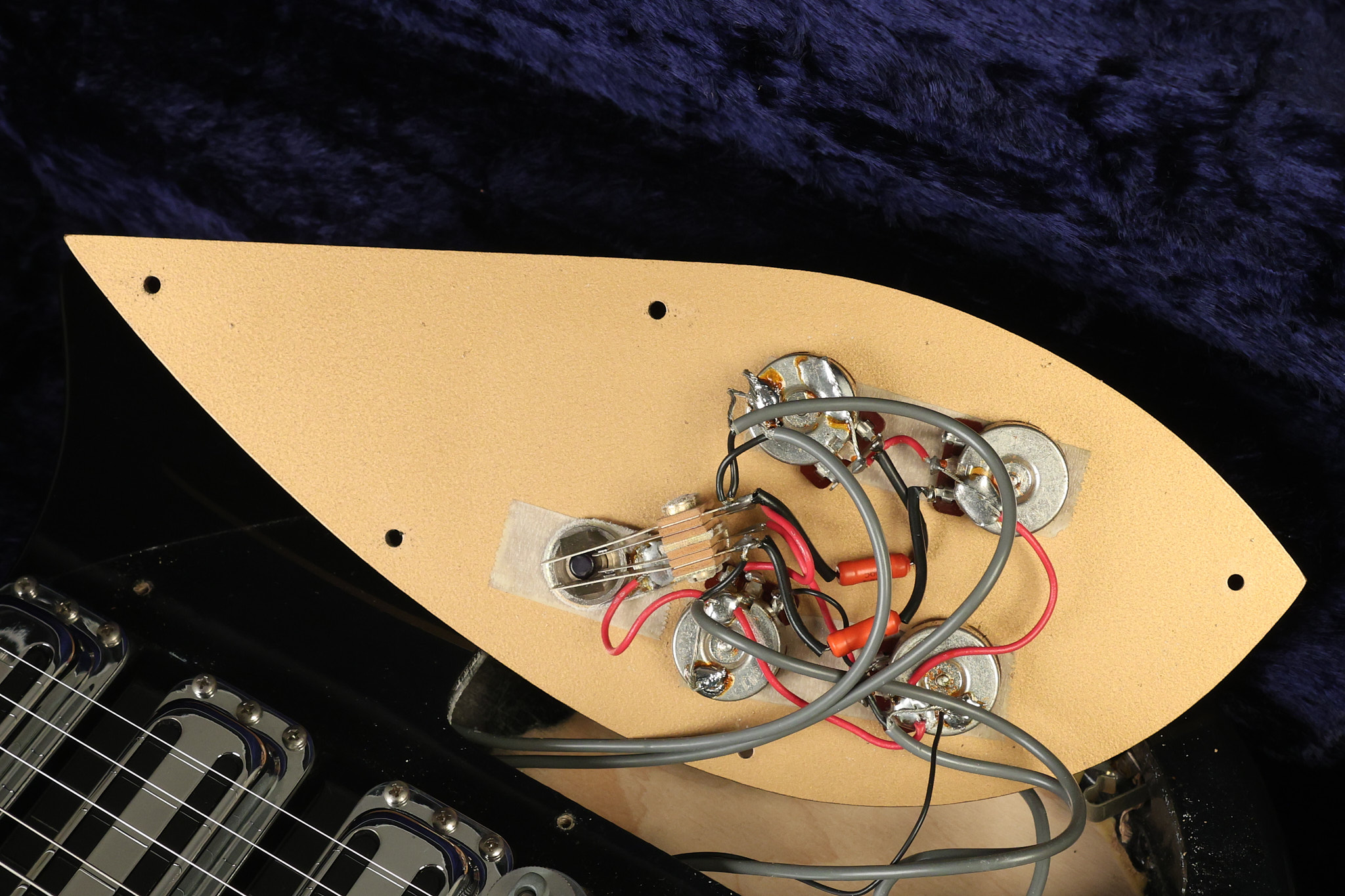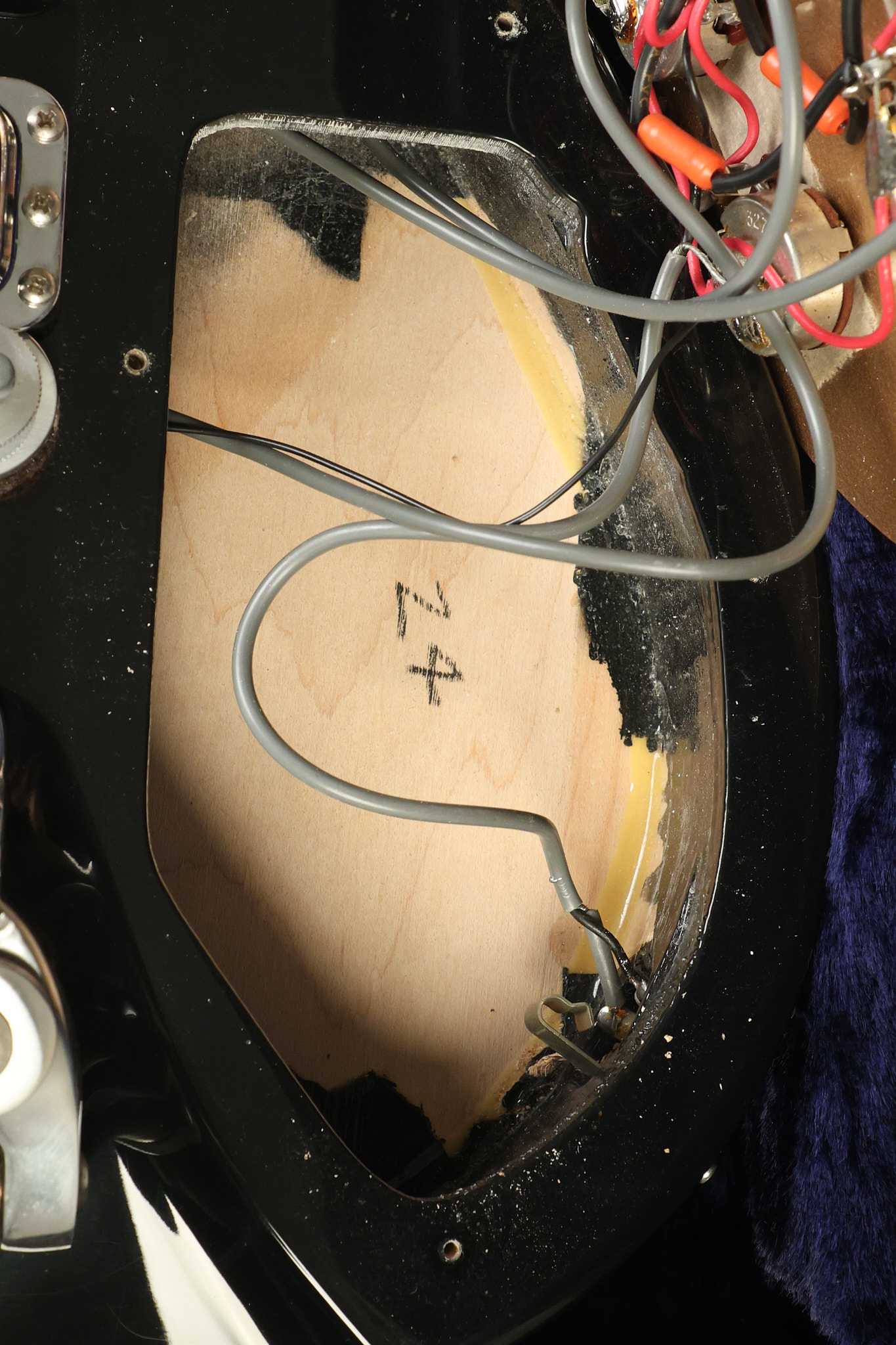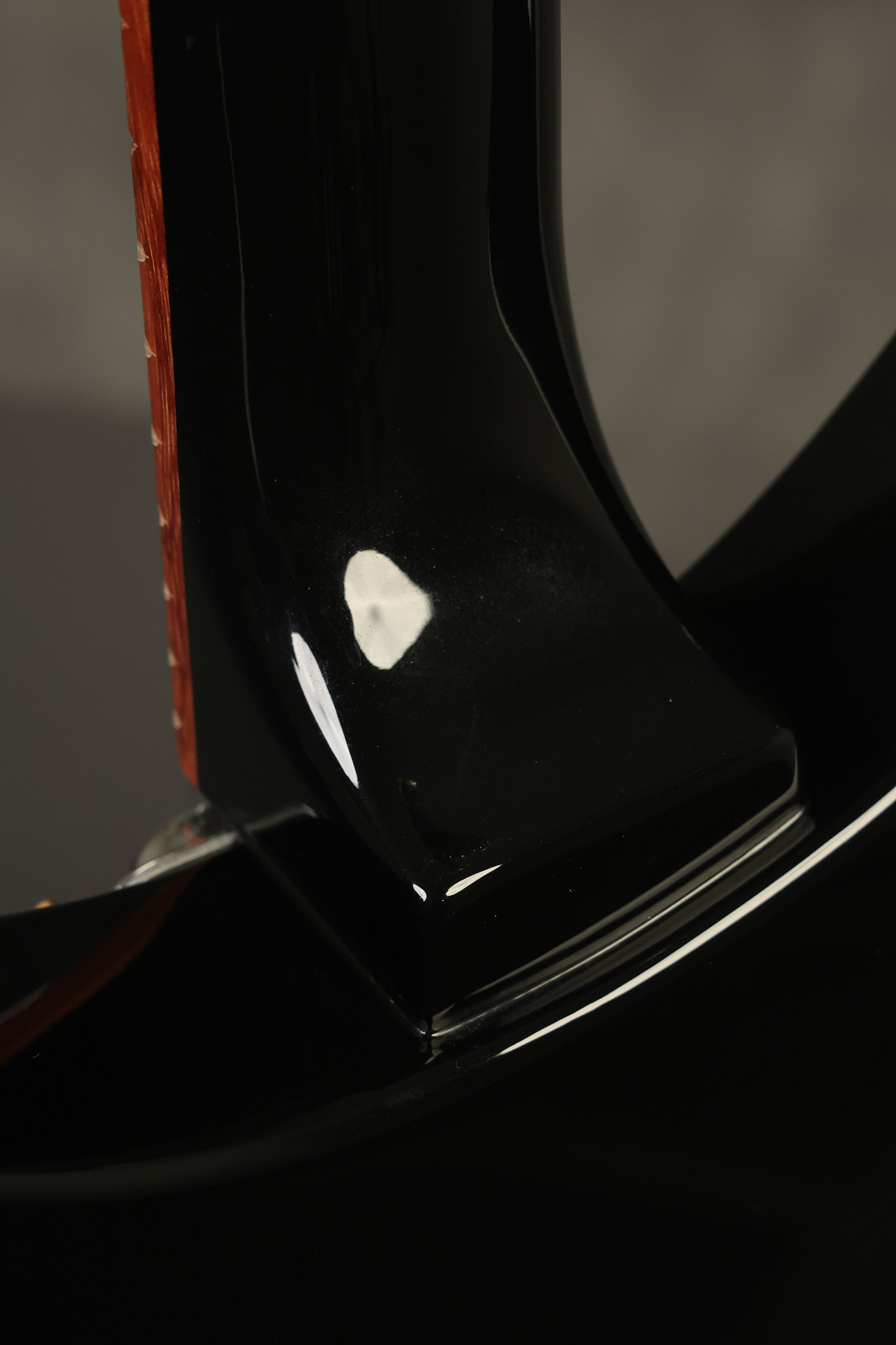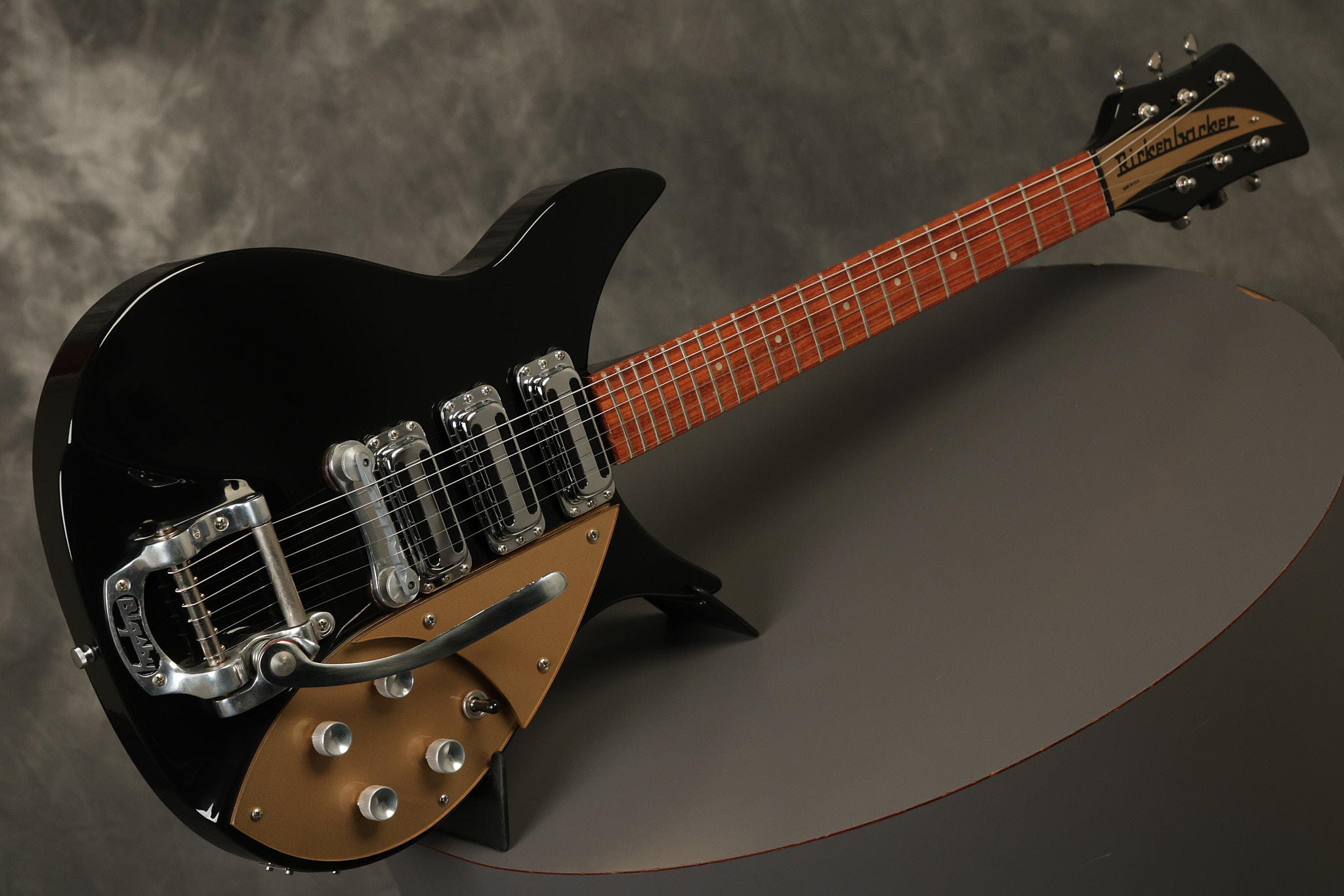 1994 Rickenbacker 325V59 in Jetglo that has had parts changed (Burns volume and tone knobs, Sorkin bridge, and open back Grover tuners) to resemble the specs of John Lennon's 1958 Rickenbacker model 325, with the exception of the upper portion of the pickguard being left on. It has a great playing neck with great frets. It's all original and 100% complete along with its original hardshell case. It's in EXCELLENT condition with only very little extremely minor surface wear. Pads were placed underneath the bridge to help protect the finish. Everything remains structurally sound with no cracks, breaks or repairs. All electronics work and sound great.
